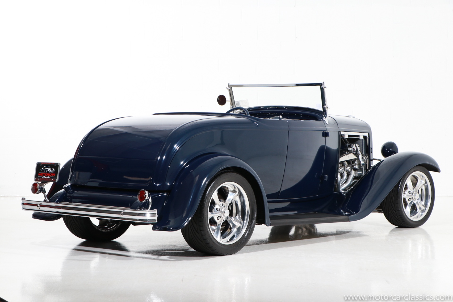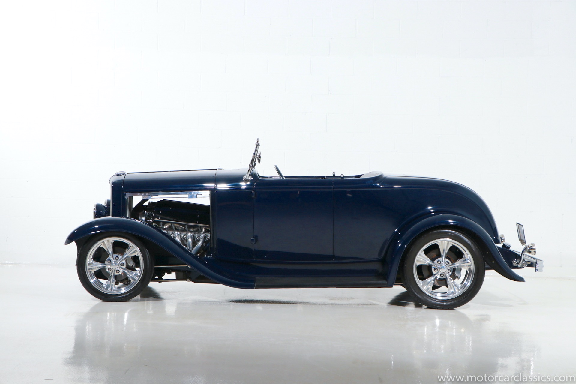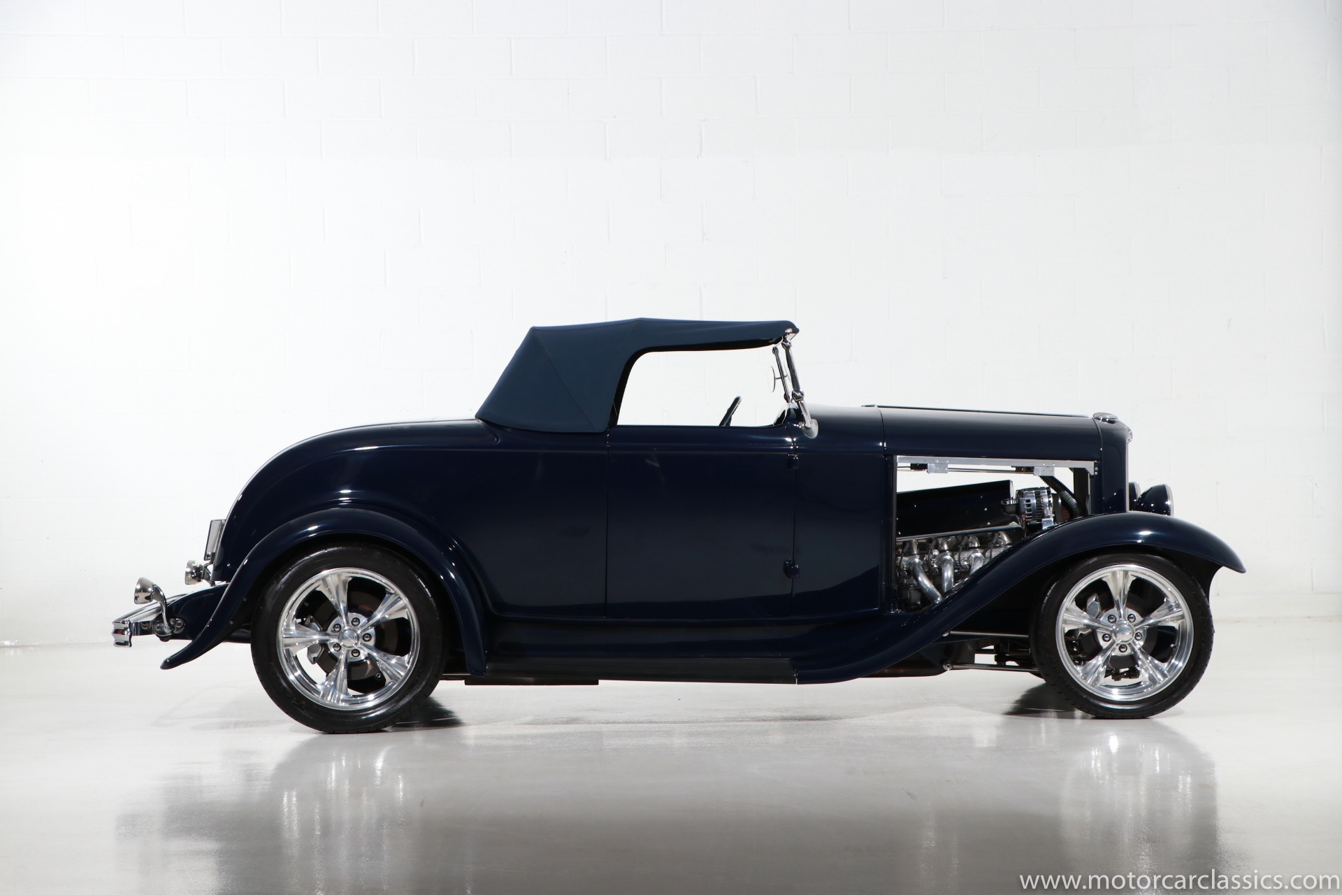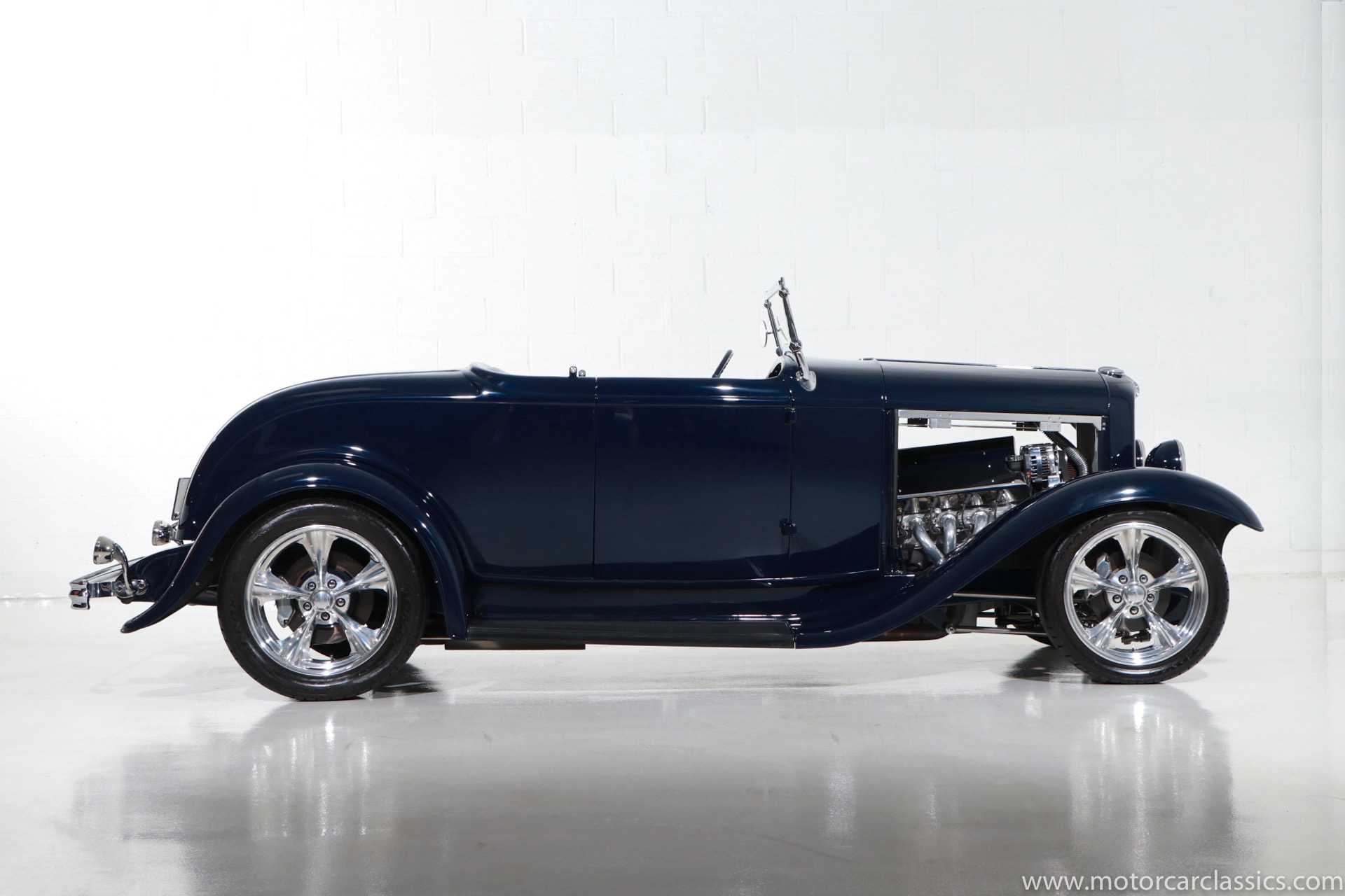 1932 Ford Roadster Rod for sale! Motorcar Classics is thrilled to offer this stunning 1932 Ford Roadster presented in single stage Cobalt Blue with matching blue interior. This all-steel rod was built by Bodie Stroud Industries of Los Angeles. Bodie Stroud is well-known for the creations he has built for film and some of Hollywood™s best known names, and is a TV personality in his own right. Equipped with an aluminum block LS Corvette engine and TH350 transmission, this Roadster has only 3,860 miles! The rear end is a Ford 9" with 4-link rear suspension and coil over shocks. The wheels are Billet Specialties "Dagger" forged billet wheels. The impressive interior is full multicolor leather with contoured seats. There is also a matching rumble seat in the car. Options include: Stewart Warner Power Series gauges, Locker shifter, Billet Specialties Stiletto steering wheel, Pioneer stereo with navigation and backup camera, power steering, full chrome serpentine system, Tibbets wheel, Painless wiring, stainless steel Borla exhaust, Brookville chassis, Wilwood 4-wheel disc brakes, stainless steel lines, and more. This handsome roadster is well-sorted, comfortable, and a delight to drive. This car was originally built for a respected film producer and executive. This is a tremendous value in a car that was built right by one of the most respected craftsmen in the business.