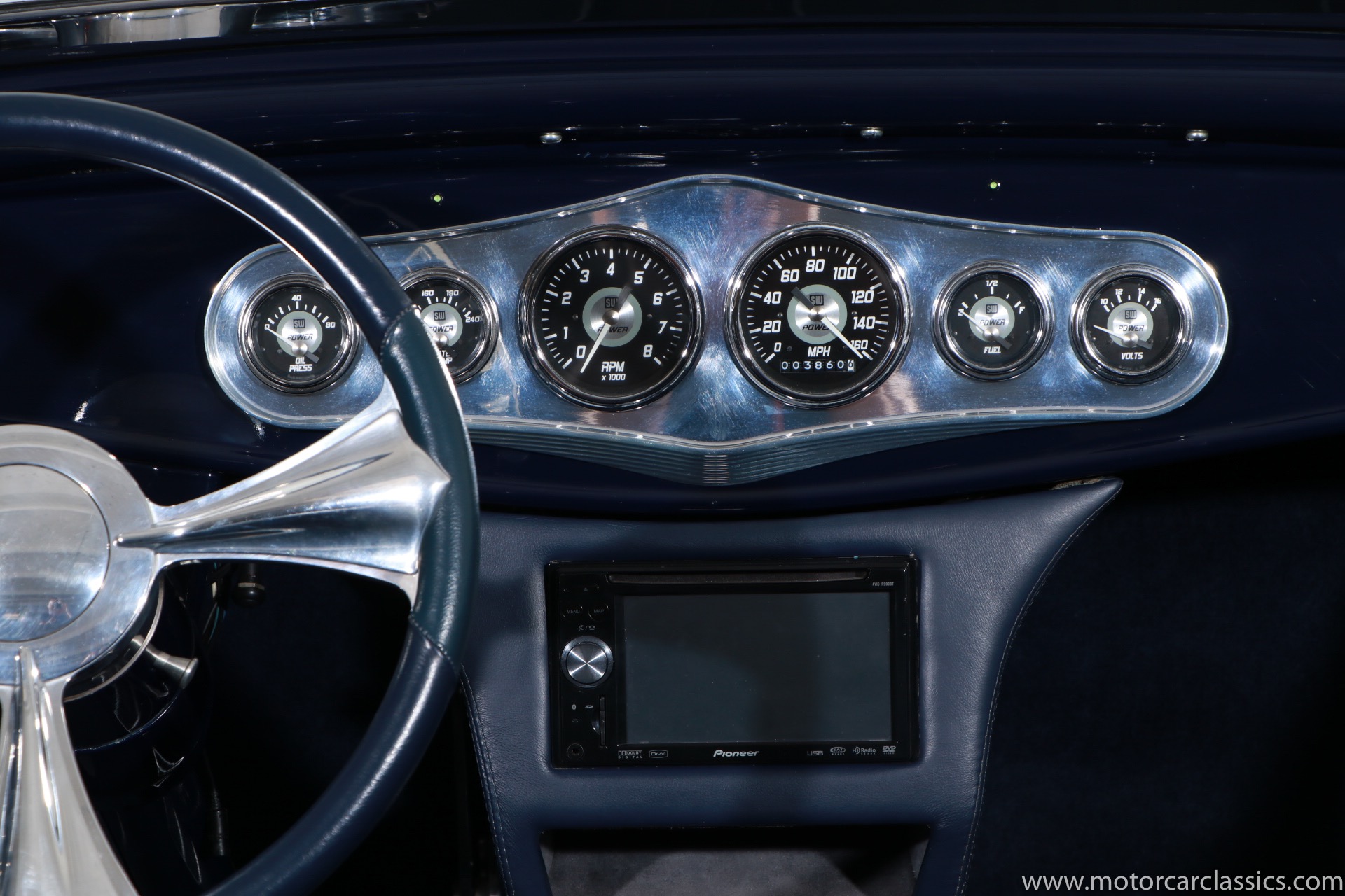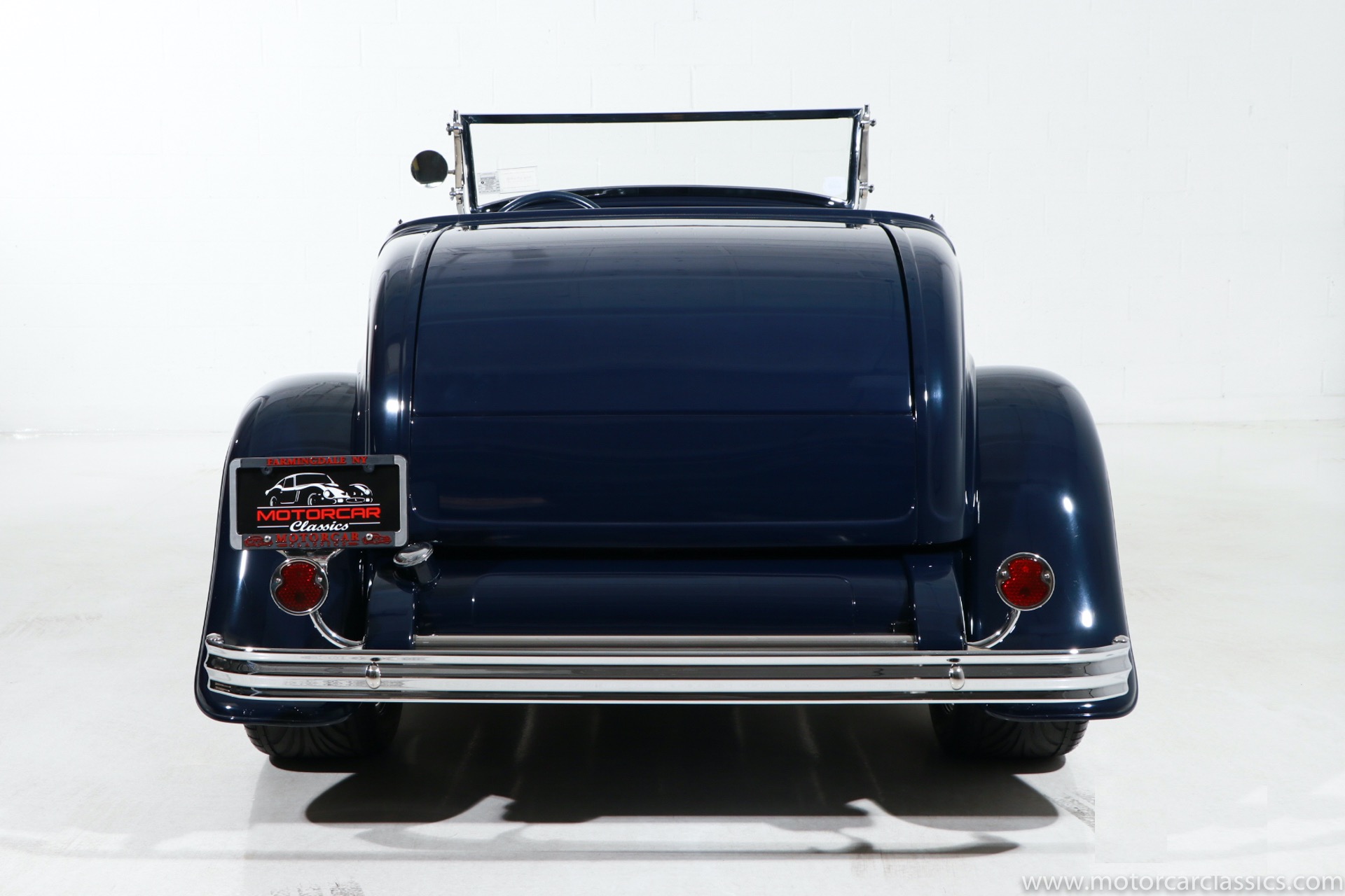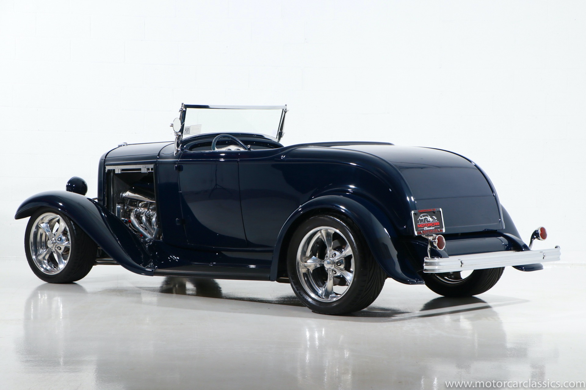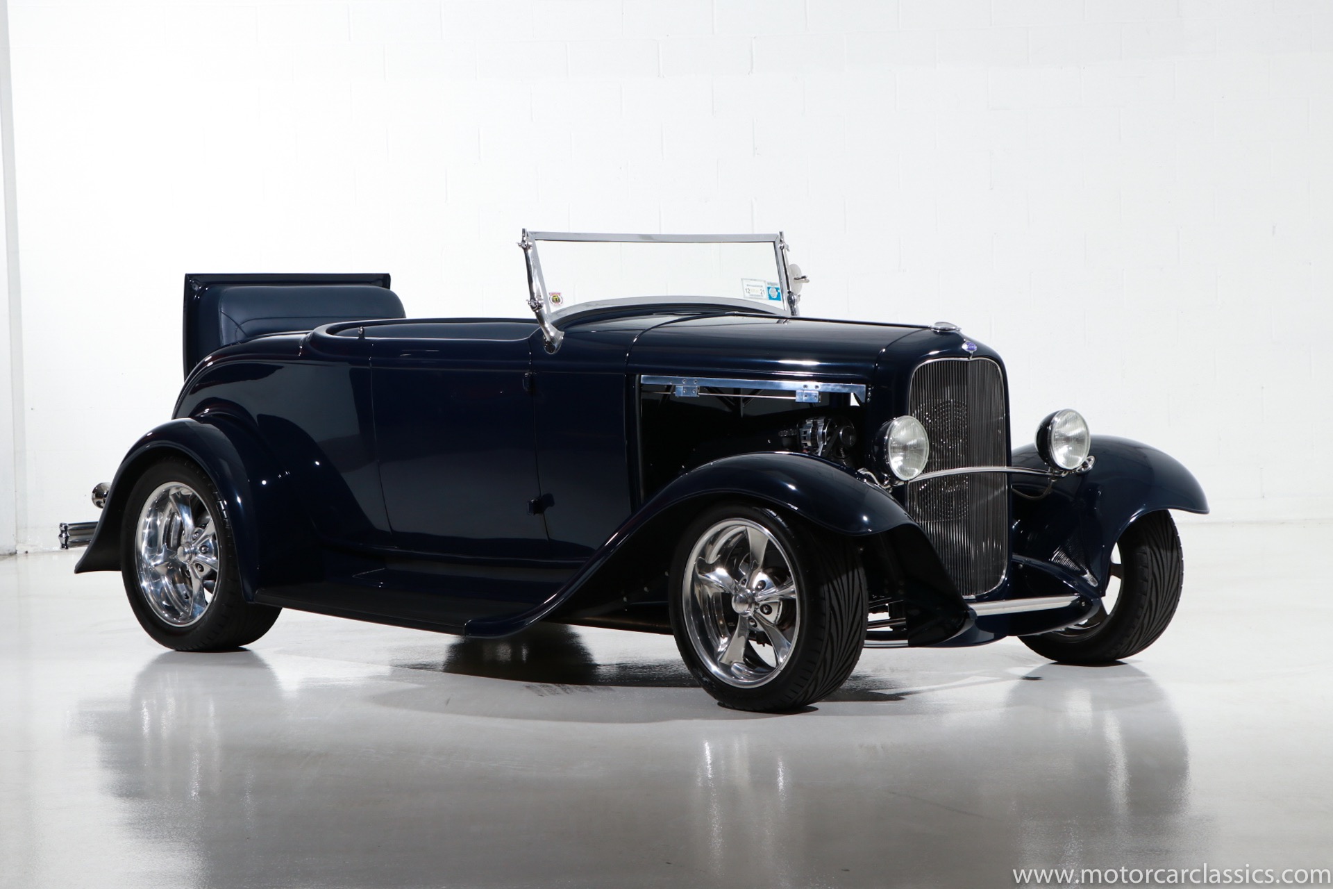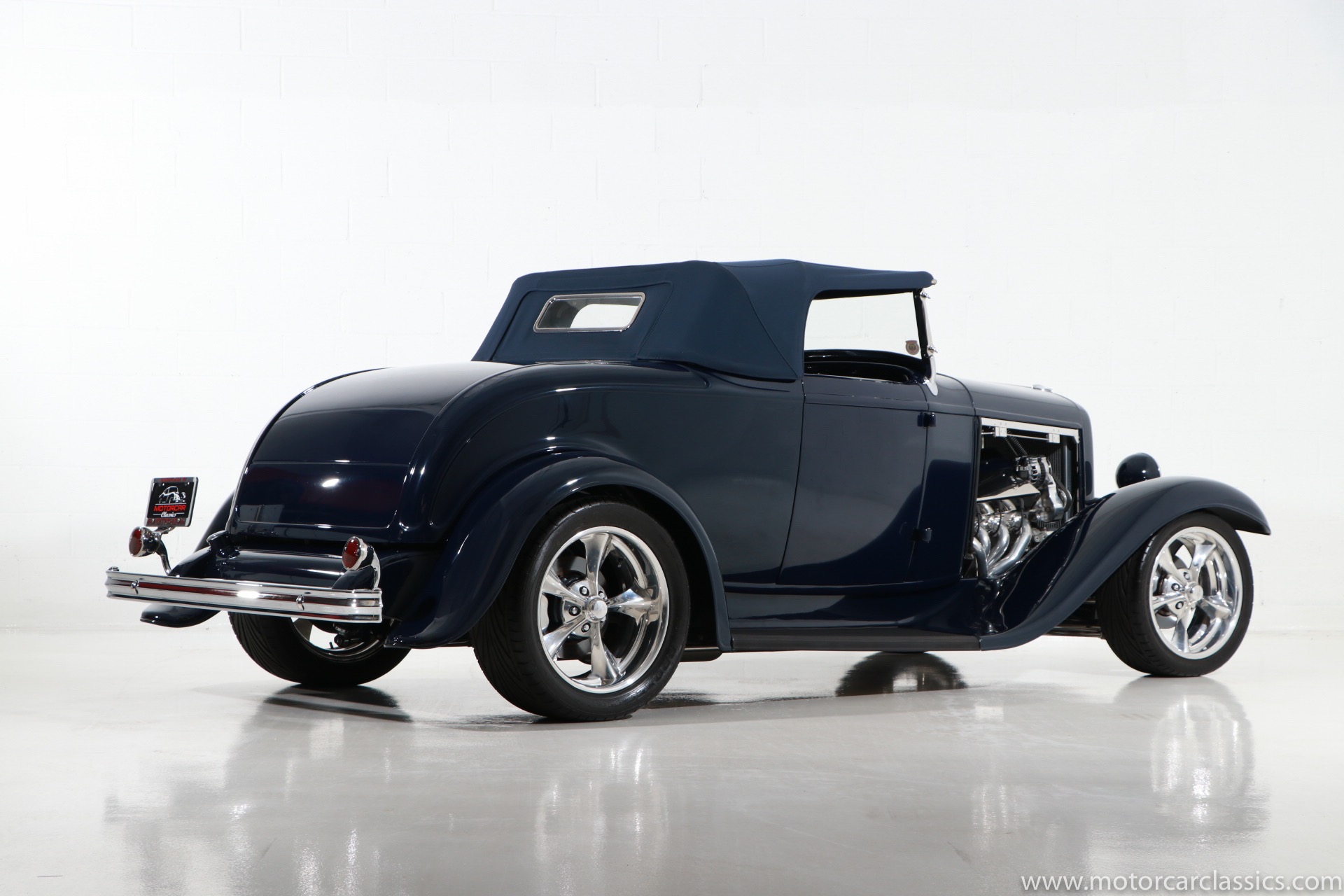 1932 Ford Roadster Rod for sale! Motorcar Classics is thrilled to offer this stunning 1932 Ford Roadster presented in single stage Cobalt Blue with matching blue interior. This all-steel rod was built by Bodie Stroud Industries of Los Angeles. Bodie Stroud is well-known for the creations he has built for film and some of Hollywood™s best known names, and is a TV personality in his own right. Equipped with an aluminum block LS Corvette engine and TH350 transmission, this Roadster has only 3,860 miles! The rear end is a Ford 9" with 4-link rear suspension and coil over shocks. The wheels are Billet Specialties "Dagger" forged billet wheels. The impressive interior is full multicolor leather with contoured seats. There is also a matching rumble seat in the car. Options include: Stewart Warner Power Series gauges, Locker shifter, Billet Specialties Stiletto steering wheel, Pioneer stereo with navigation and backup camera, power steering, full chrome serpentine system, Tibbets wheel, Painless wiring, stainless steel Borla exhaust, Brookville chassis, Wilwood 4-wheel disc brakes, stainless steel lines, and more. This handsome roadster is well-sorted, comfortable, and a delight to drive. This car was originally built for a respected film producer and executive. This is a tremendous value in a car that was built right by one of the most respected craftsmen in the business.