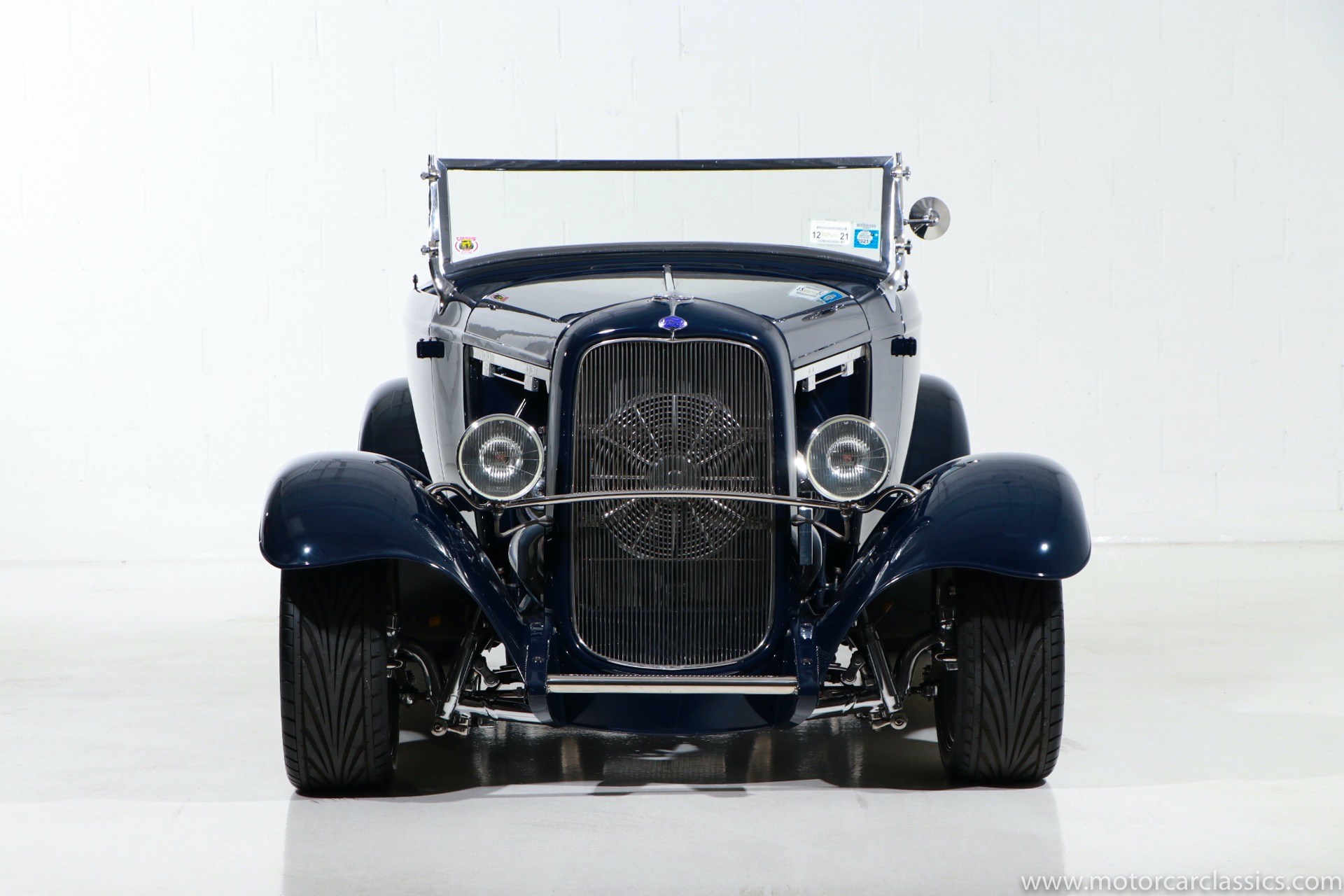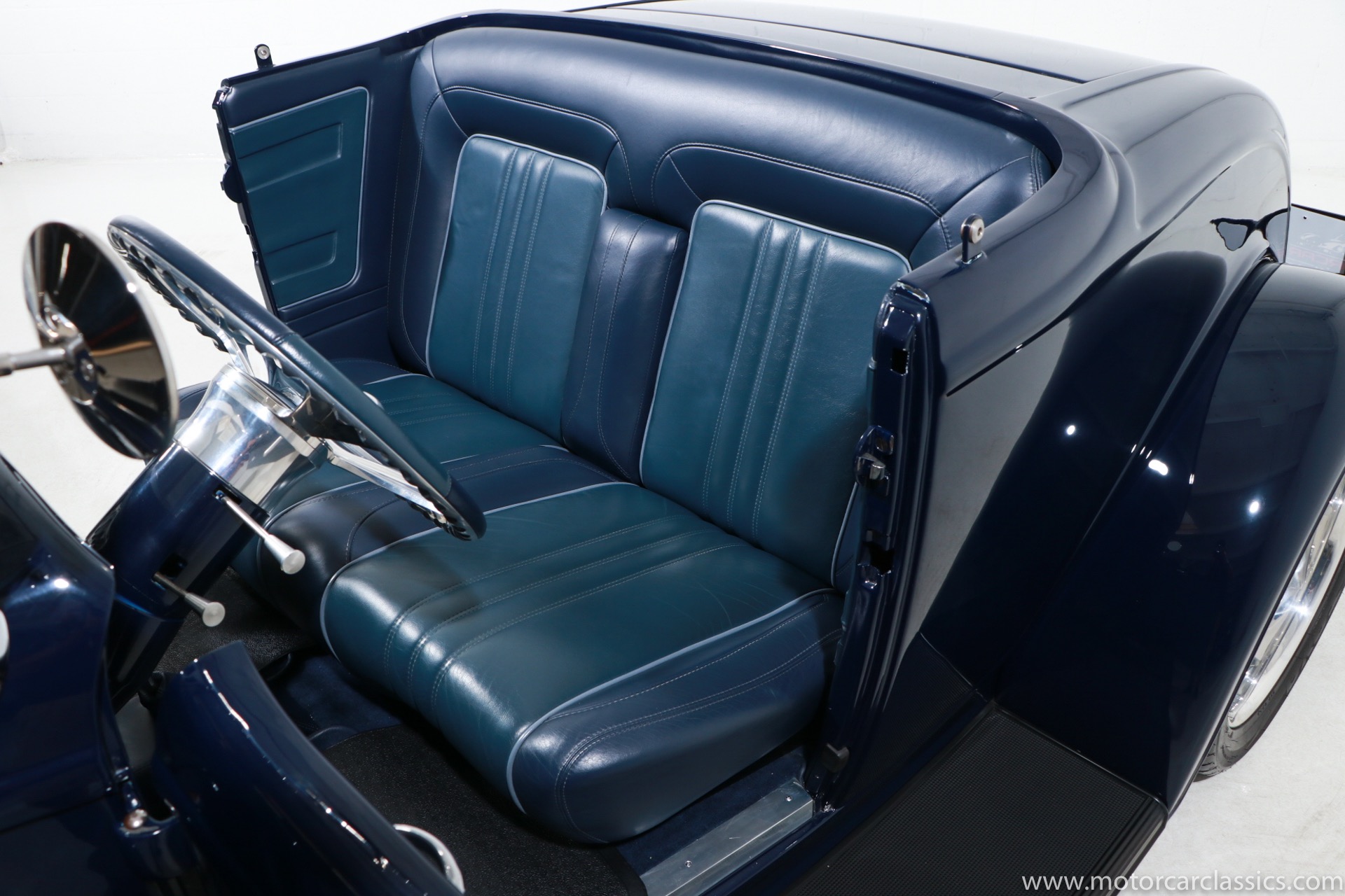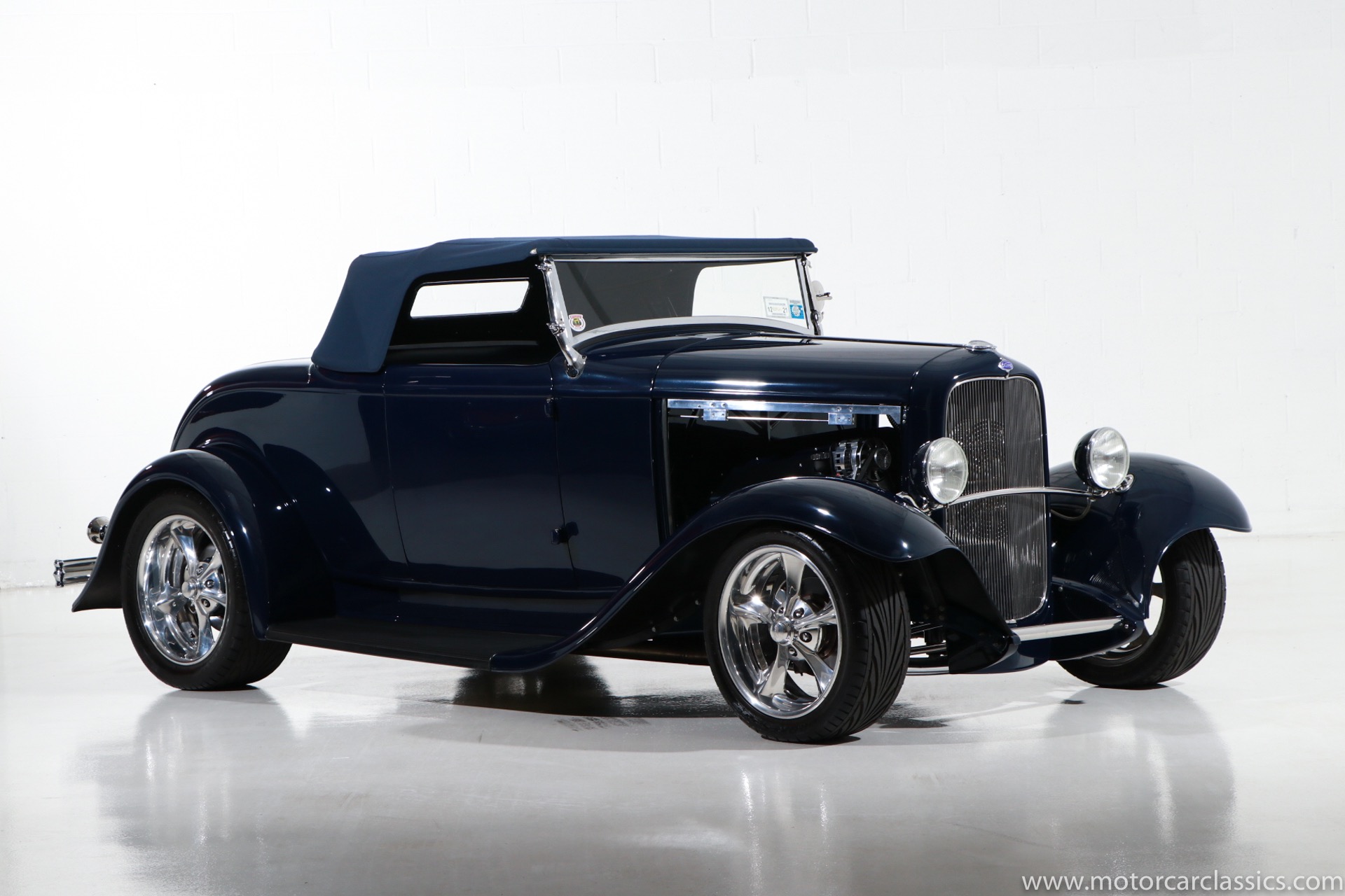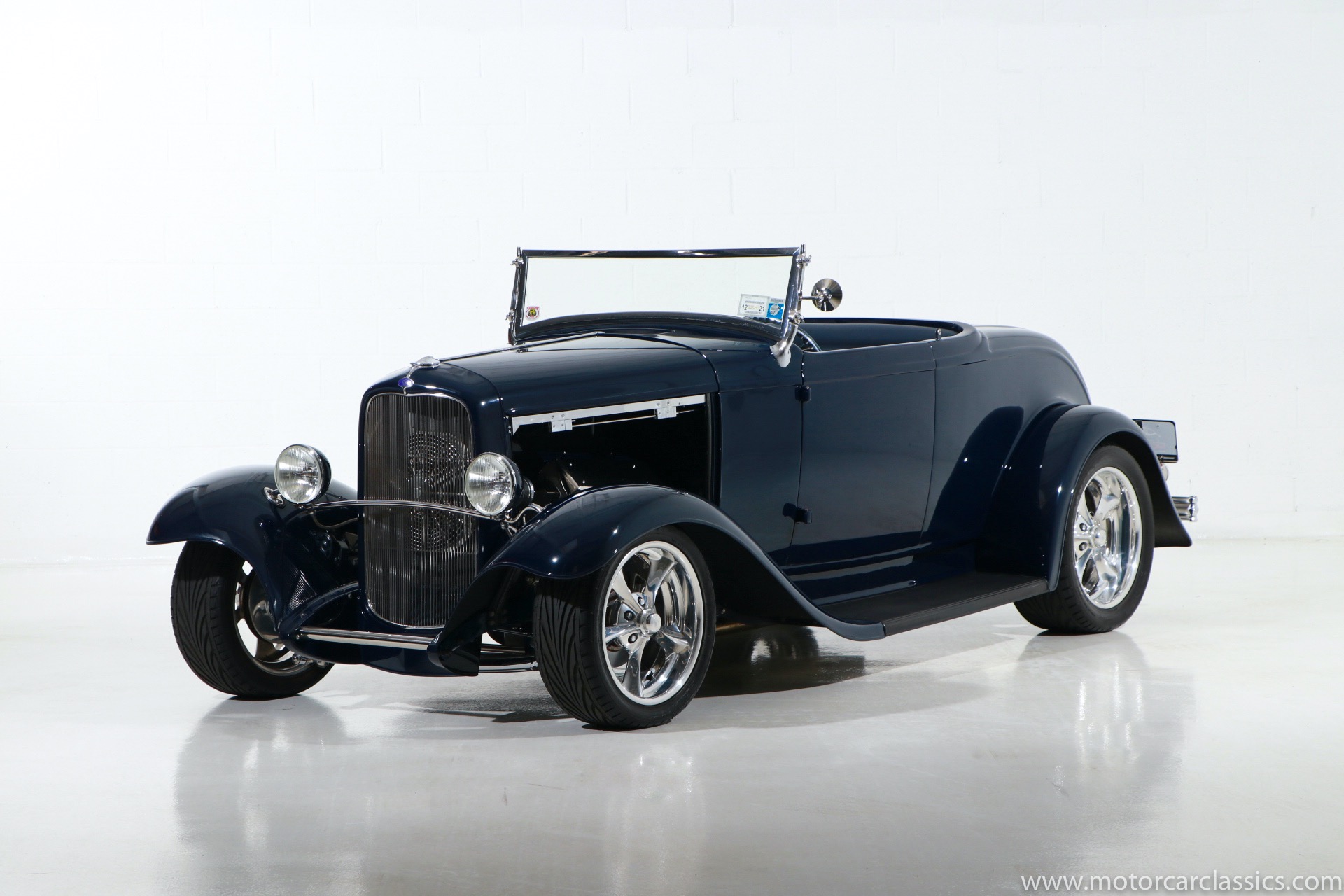 1932 Ford Roadster Rod for sale! Motorcar Classics is thrilled to offer this stunning 1932 Ford Roadster presented in single stage Cobalt Blue with matching blue interior. This all-steel rod was built by Bodie Stroud Industries of Los Angeles. Bodie Stroud is well-known for the creations he has built for film and some of Hollywood™s best known names, and is a TV personality in his own right. Equipped with an aluminum block LS Corvette engine and TH350 transmission, this Roadster has only 3,860 miles! The rear end is a Ford 9" with 4-link rear suspension and coil over shocks. The wheels are Billet Specialties "Dagger" forged billet wheels. The impressive interior is full multicolor leather with contoured seats. There is also a matching rumble seat in the car. Options include: Stewart Warner Power Series gauges, Locker shifter, Billet Specialties Stiletto steering wheel, Pioneer stereo with navigation and backup camera, power steering, full chrome serpentine system, Tibbets wheel, Painless wiring, stainless steel Borla exhaust, Brookville chassis, Wilwood 4-wheel disc brakes, stainless steel lines, and more. This handsome roadster is well-sorted, comfortable, and a delight to drive. This car was originally built for a respected film producer and executive. This is a tremendous value in a car that was built right by one of the most respected craftsmen in the business.