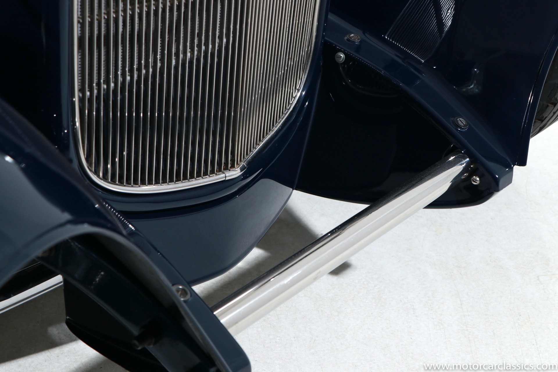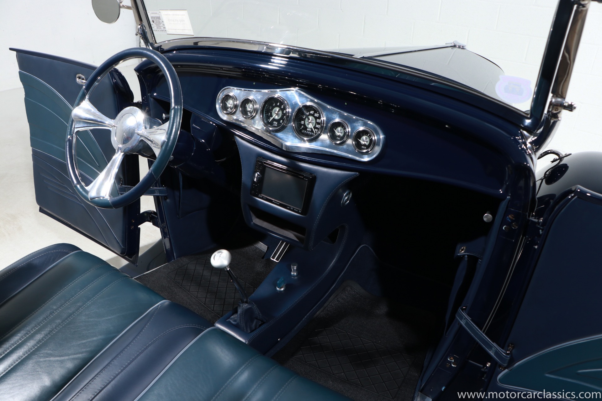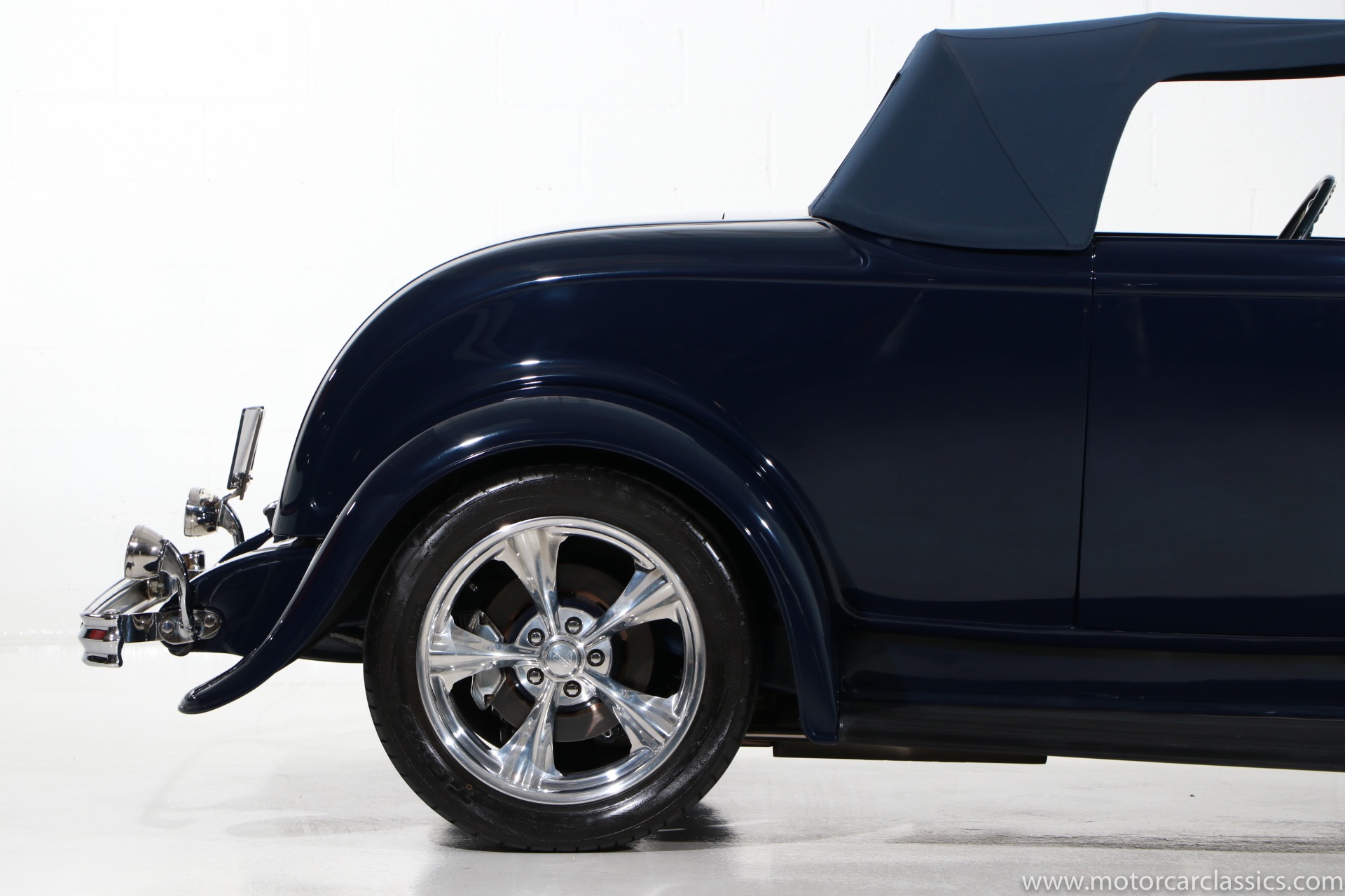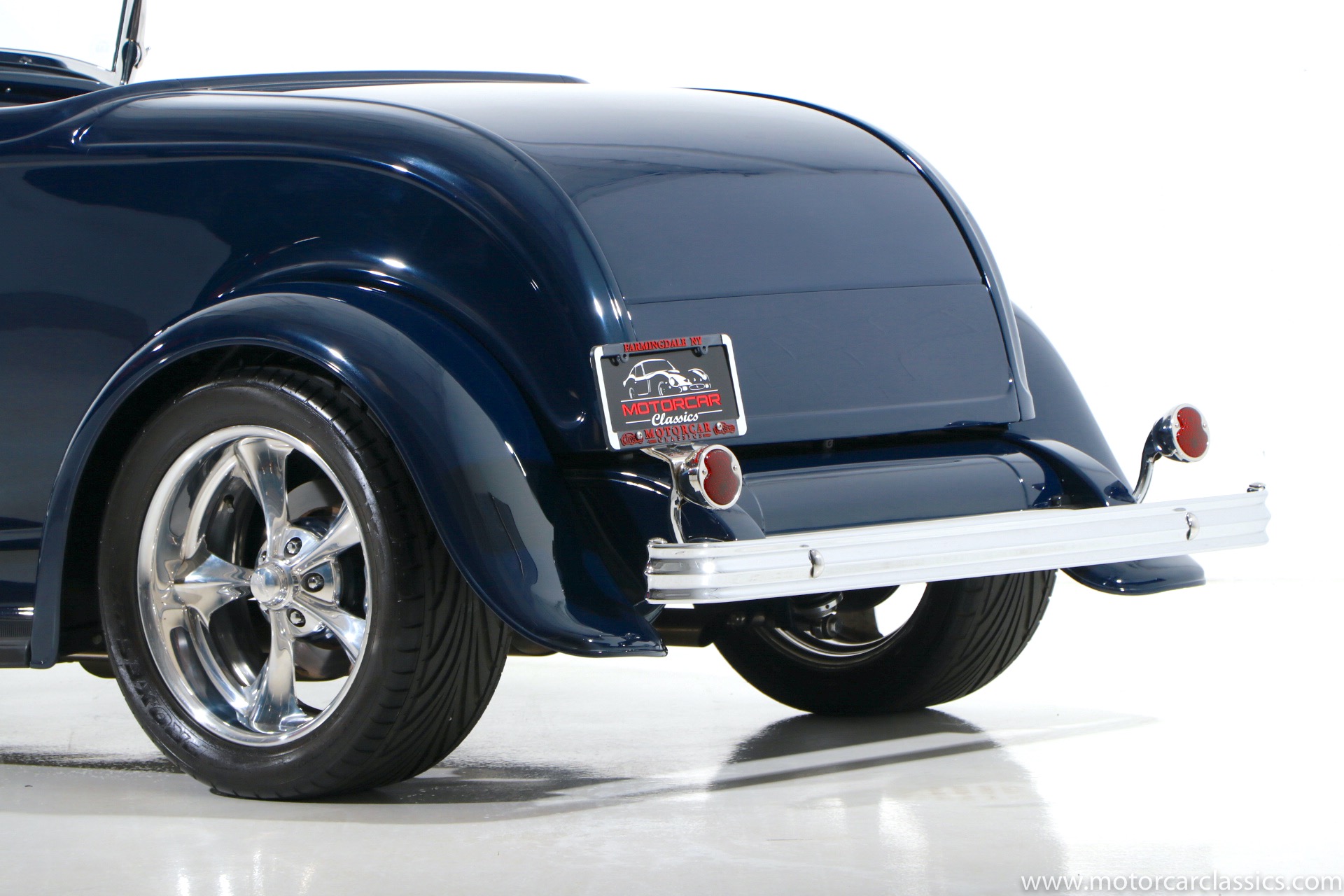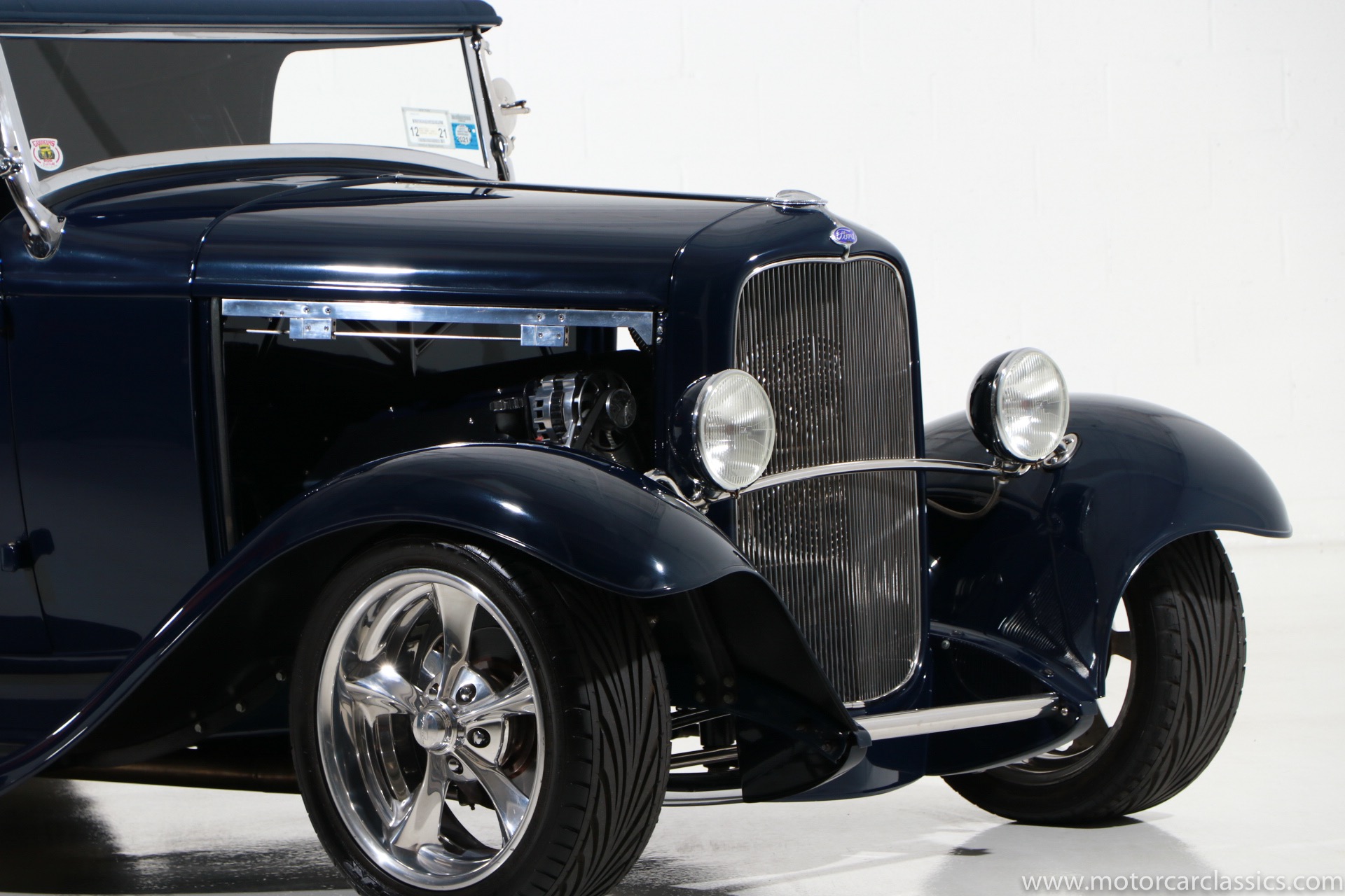 1932 Ford Roadster Rod for sale! Motorcar Classics is thrilled to offer this stunning 1932 Ford Roadster presented in single stage Cobalt Blue with matching blue interior. This all-steel rod was built by Bodie Stroud Industries of Los Angeles. Bodie Stroud is well-known for the creations he has built for film and some of Hollywood™s best known names, and is a TV personality in his own right. Equipped with an aluminum block LS Corvette engine and TH350 transmission, this Roadster has only 3,860 miles! The rear end is a Ford 9" with 4-link rear suspension and coil over shocks. The wheels are Billet Specialties "Dagger" forged billet wheels. The impressive interior is full multicolor leather with contoured seats. There is also a matching rumble seat in the car. Options include: Stewart Warner Power Series gauges, Locker shifter, Billet Specialties Stiletto steering wheel, Pioneer stereo with navigation and backup camera, power steering, full chrome serpentine system, Tibbets wheel, Painless wiring, stainless steel Borla exhaust, Brookville chassis, Wilwood 4-wheel disc brakes, stainless steel lines, and more. This handsome roadster is well-sorted, comfortable, and a delight to drive. This car was originally built for a respected film producer and executive. This is a tremendous value in a car that was built right by one of the most respected craftsmen in the business.