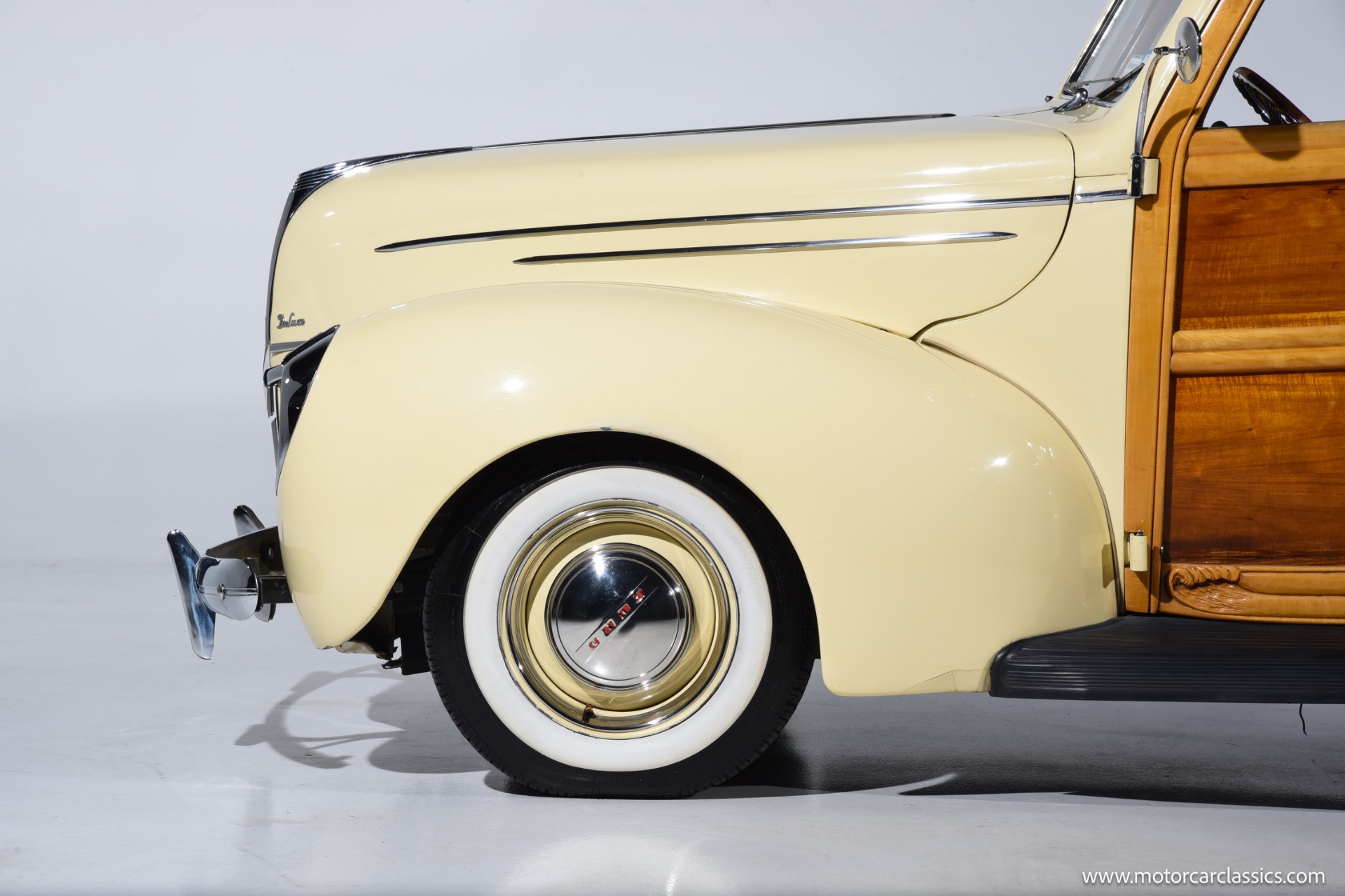 1939 Ford Woodie Wagon for sale! Motorcar Classics is proud to present this 1939 Ford Deluxe Woodie Wagon restomod, a meticulously crafted classic with iconic styling reminiscent of the renowned Eugene Gregory wood-bodied Fords. This particular model holds a special place in Ford history, as the Deluxe variant represented the highest level of trim and luxury in the 1937-1939 Ford lineup. The 1939 Ford Woodie station wagon was part of a limited production run with only 9,432 units built, making it a very desirable classic car today.