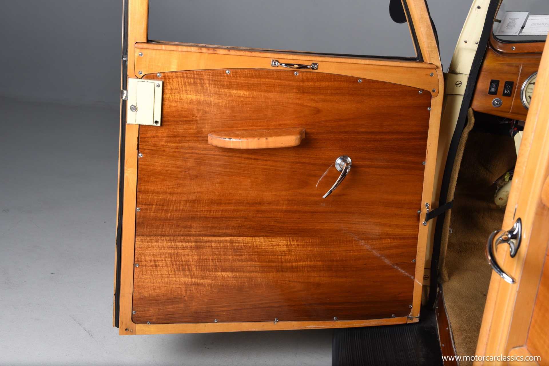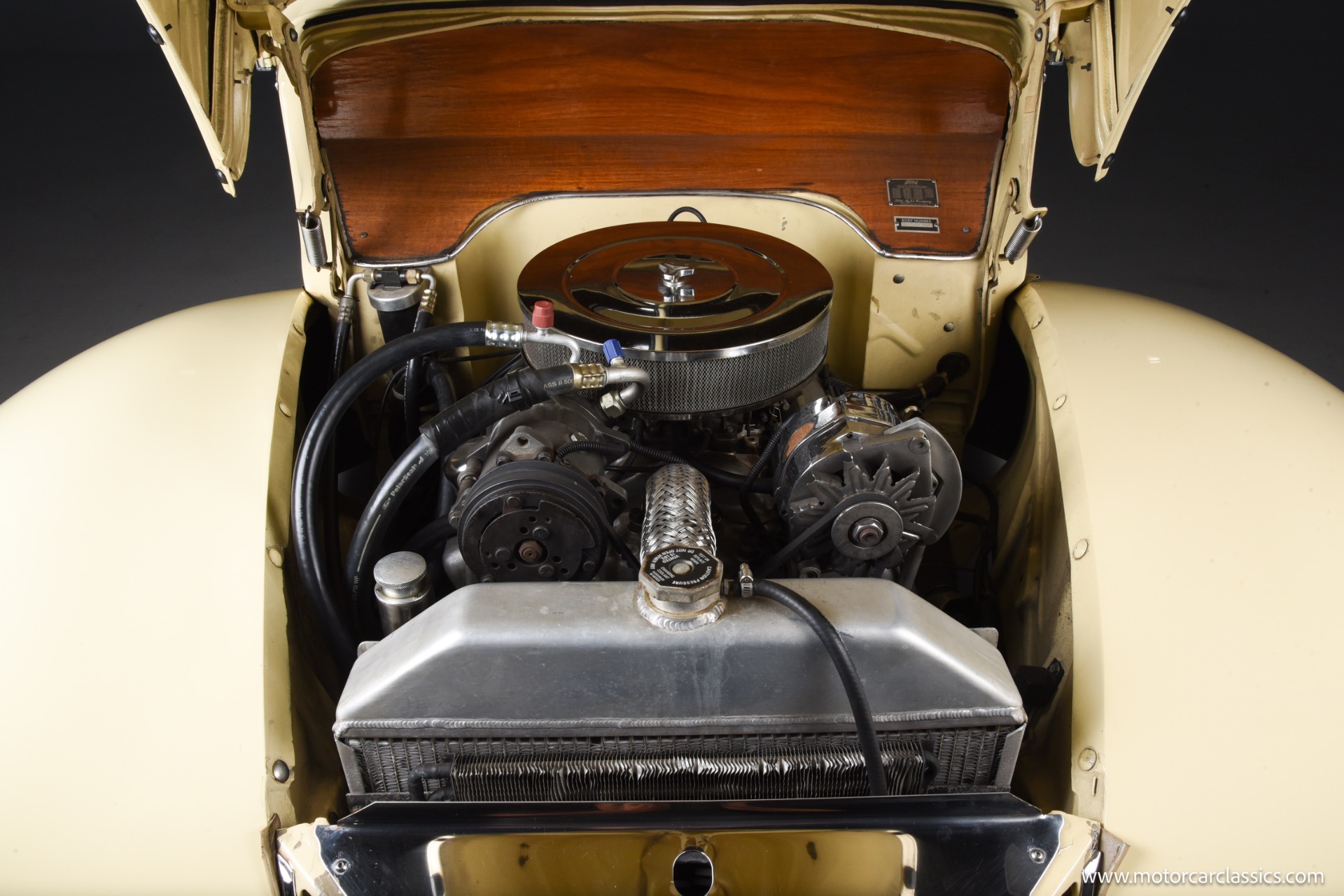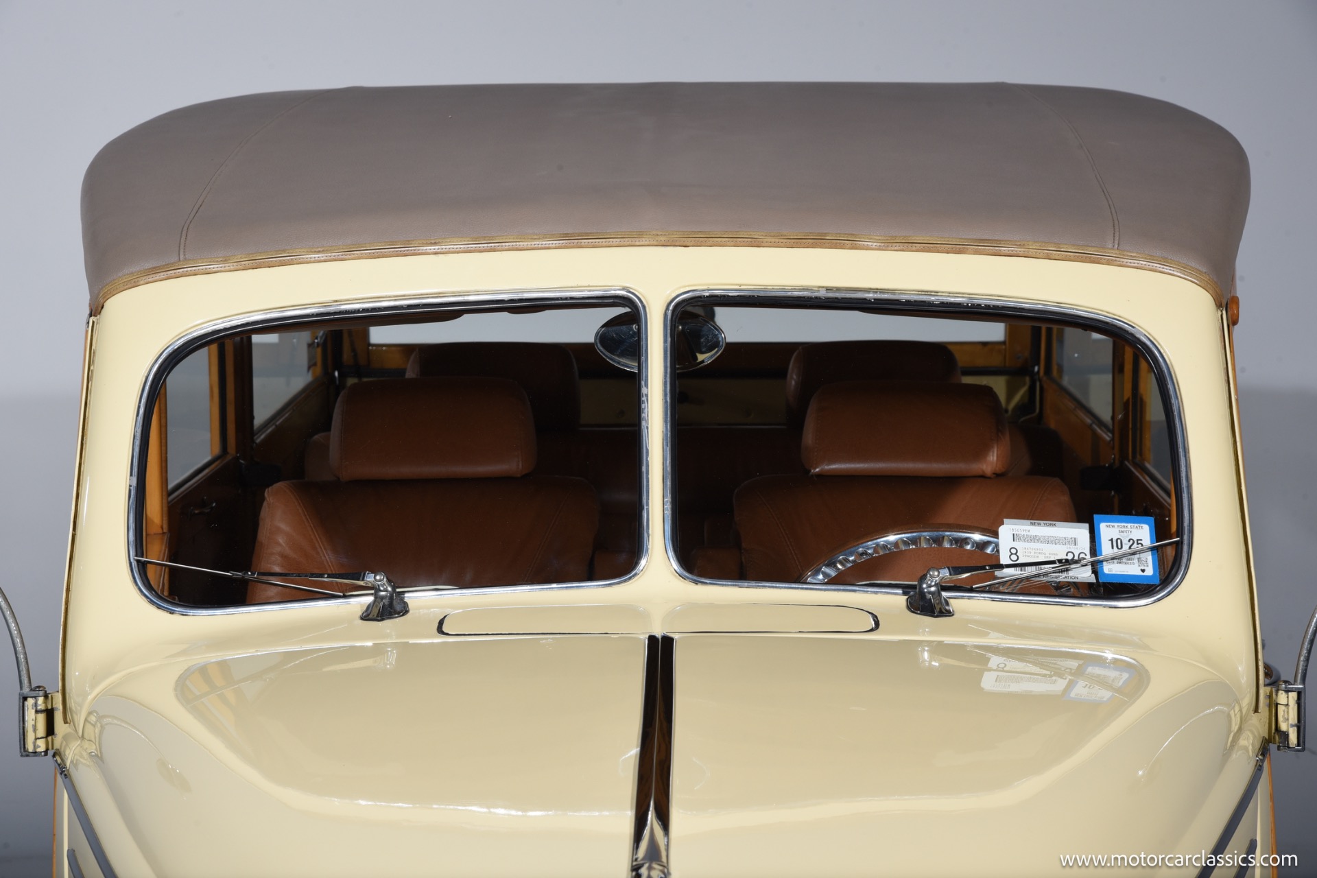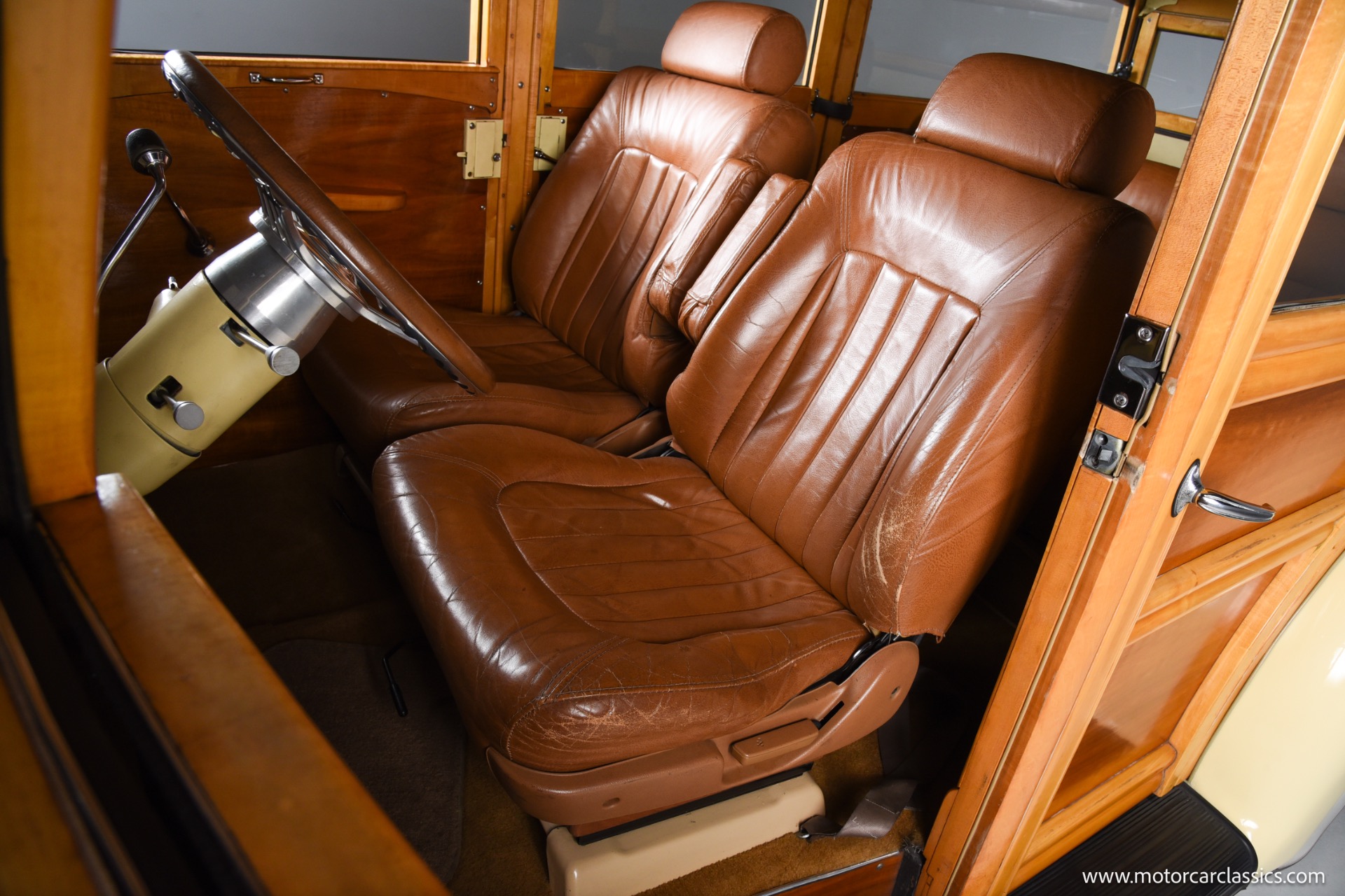 This restomod features a magnificent wood body in excellent condition, staying true to the original charm while benefiting from a series of upgrades that significantly enhance performance, comfort, and reliability. The car underwent an older restoration starting in the early 1980s, including a repaint in the original factory cream color and extensive interior refurbishment. The seats are sourced from a 1976 Mercedes, offering a blend of vintage style with modern comfort. Added conveniences include air conditioning and a Sony CD player with speakers, integrating classic appeal with today's technology.
