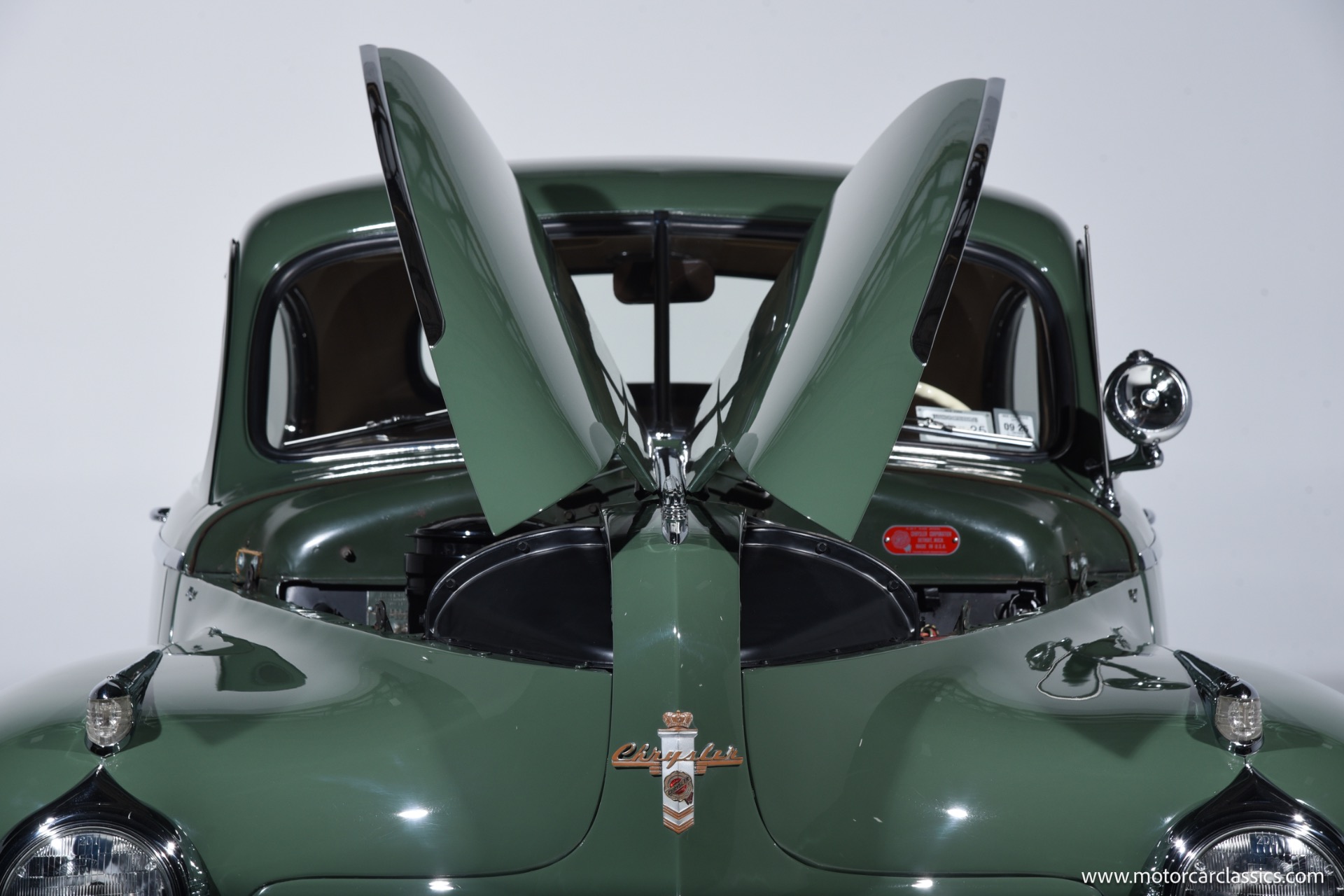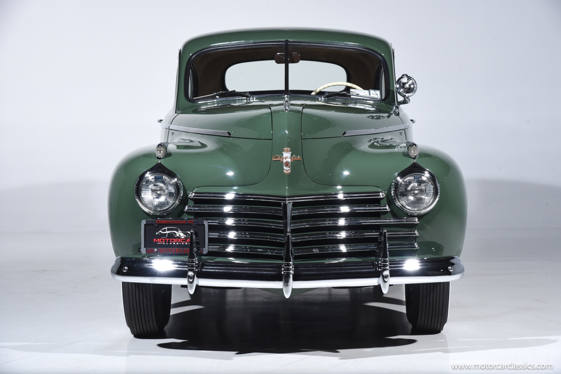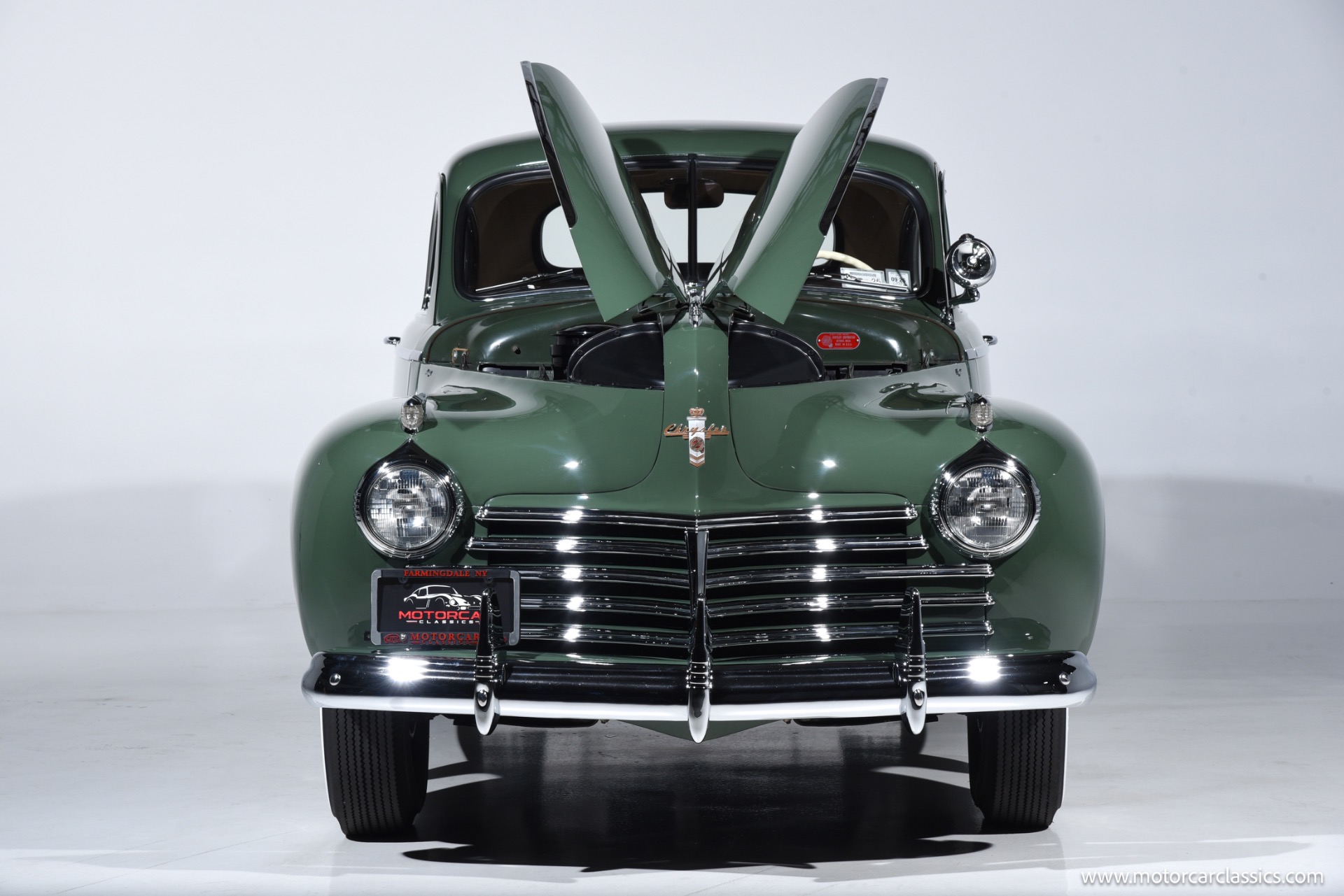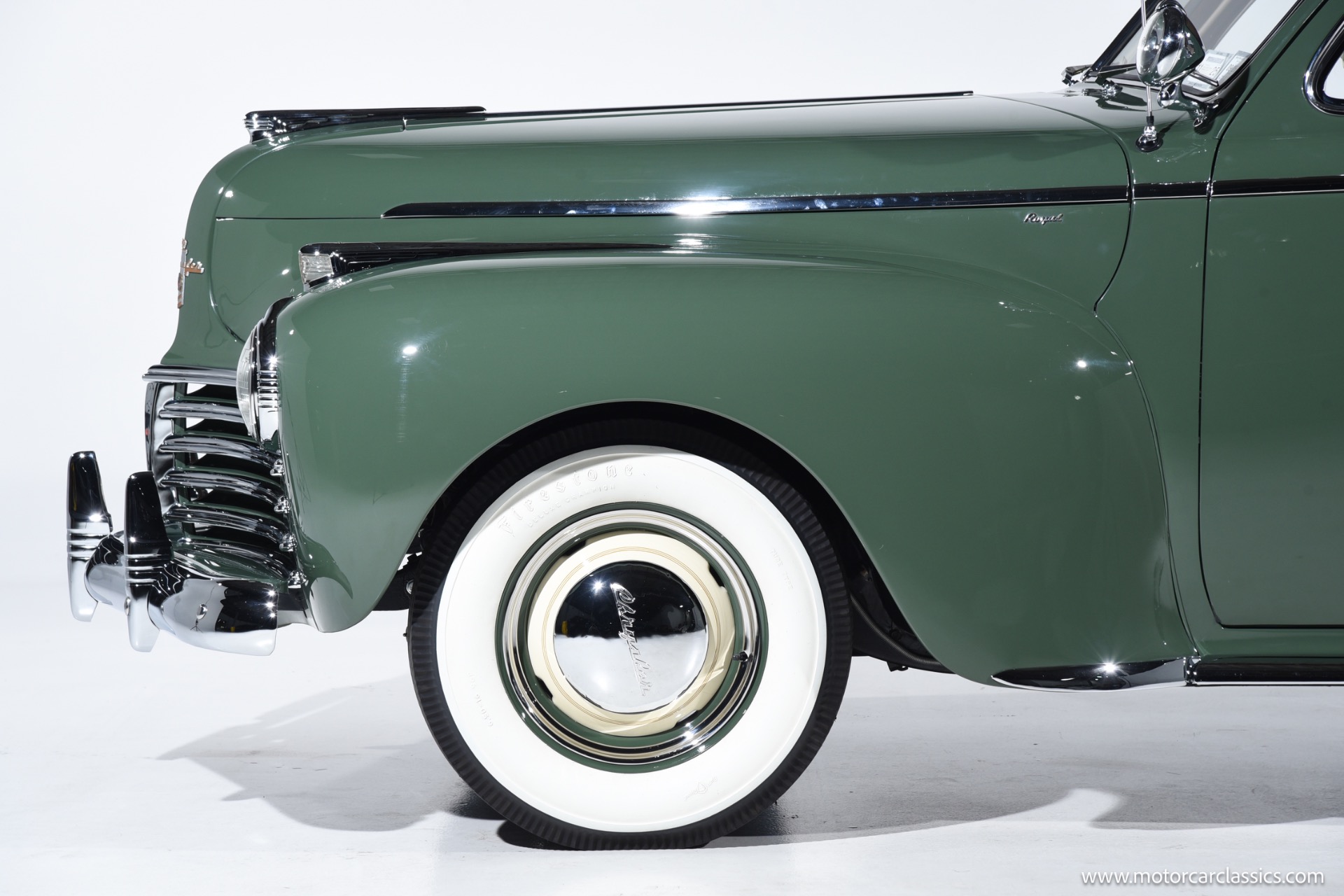 1941 Chrysler Royal Coupe for sale! Motorcar Classics is pleased to present this fully restored 1941 Chrysler Royal Coupe. Presented as an elegant example of pre-war American automotive design, finished in a rich green exterior that pairs beautifully with its tan interior. The body lines showcase Chrysler's streamlined styling of the era, complemented by gleaming chrome accents and period-correct details throughout. Under the hood, it retains its smooth-running inline six-cylinder engine, paired with Chrysler's innovative Fluid Drive semi-automatic transmissionoffering a driving experience that was considered advanced for its time. The restoration has been completed to a high standard, with attention to both mechanical reliability and cosmetic authenticity, making this coupe a true standout at vintage events or on weekend drives. Classic, sophisticated, and ready to enjoy, this 1941 Chrysler Royal embodies the grace and craftsmanship of the early 1940s. Also included is a full binder with color photos of the restoration. Your inspection is invited!