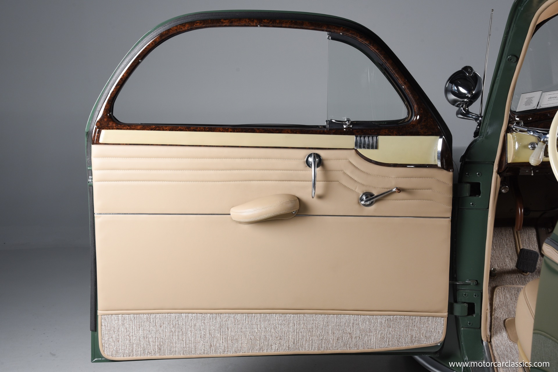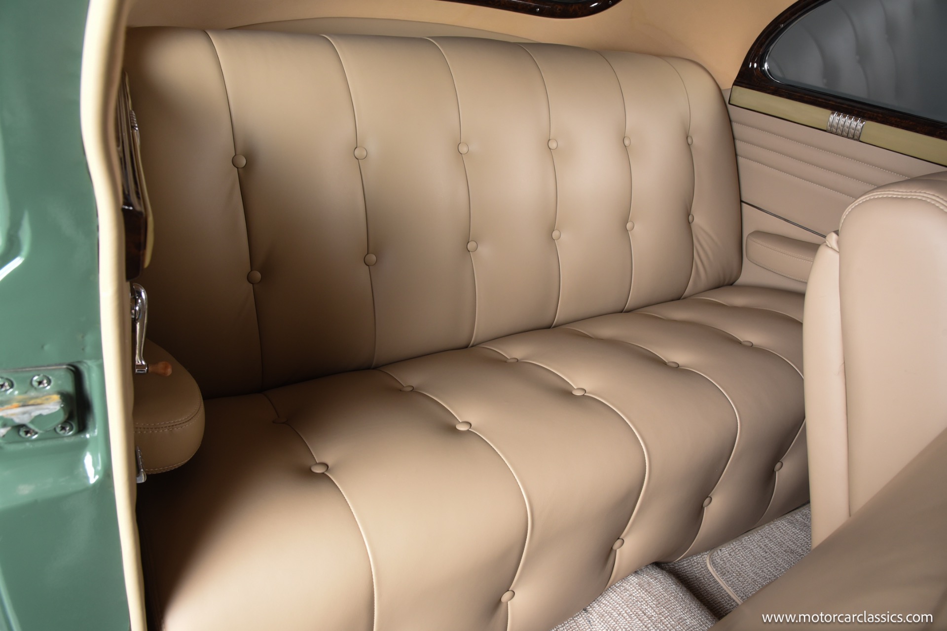 1941 Chrysler Royal Coupe for sale! Motorcar Classics is pleased to present this fully restored 1941 Chrysler Royal Coupe. Presented as an elegant example of pre-war American automotive design, finished in a rich green exterior that pairs beautifully with its tan interior. The body lines showcase Chrysler's streamlined styling of the era, complemented by gleaming chrome accents and period-correct details throughout. Under the hood, it retains its smooth-running inline six-cylinder engine, paired with Chrysler's innovative Fluid Drive semi-automatic transmissionoffering a driving experience that was considered advanced for its time. The restoration has been completed to a high standard, with attention to both mechanical reliability and cosmetic authenticity, making this coupe a true standout at vintage events or on weekend drives. Classic, sophisticated, and ready to enjoy, this 1941 Chrysler Royal embodies the grace and craftsmanship of the early 1940s. Also included is a full binder with color photos of the restoration. Your inspection is invited!