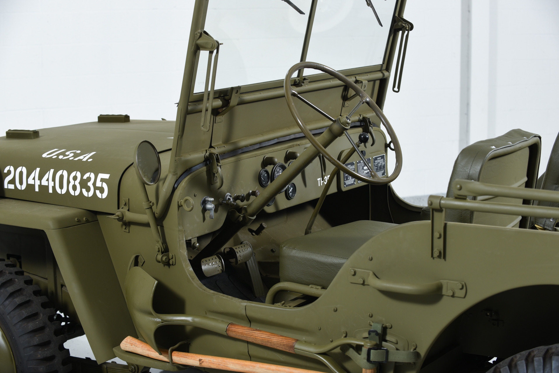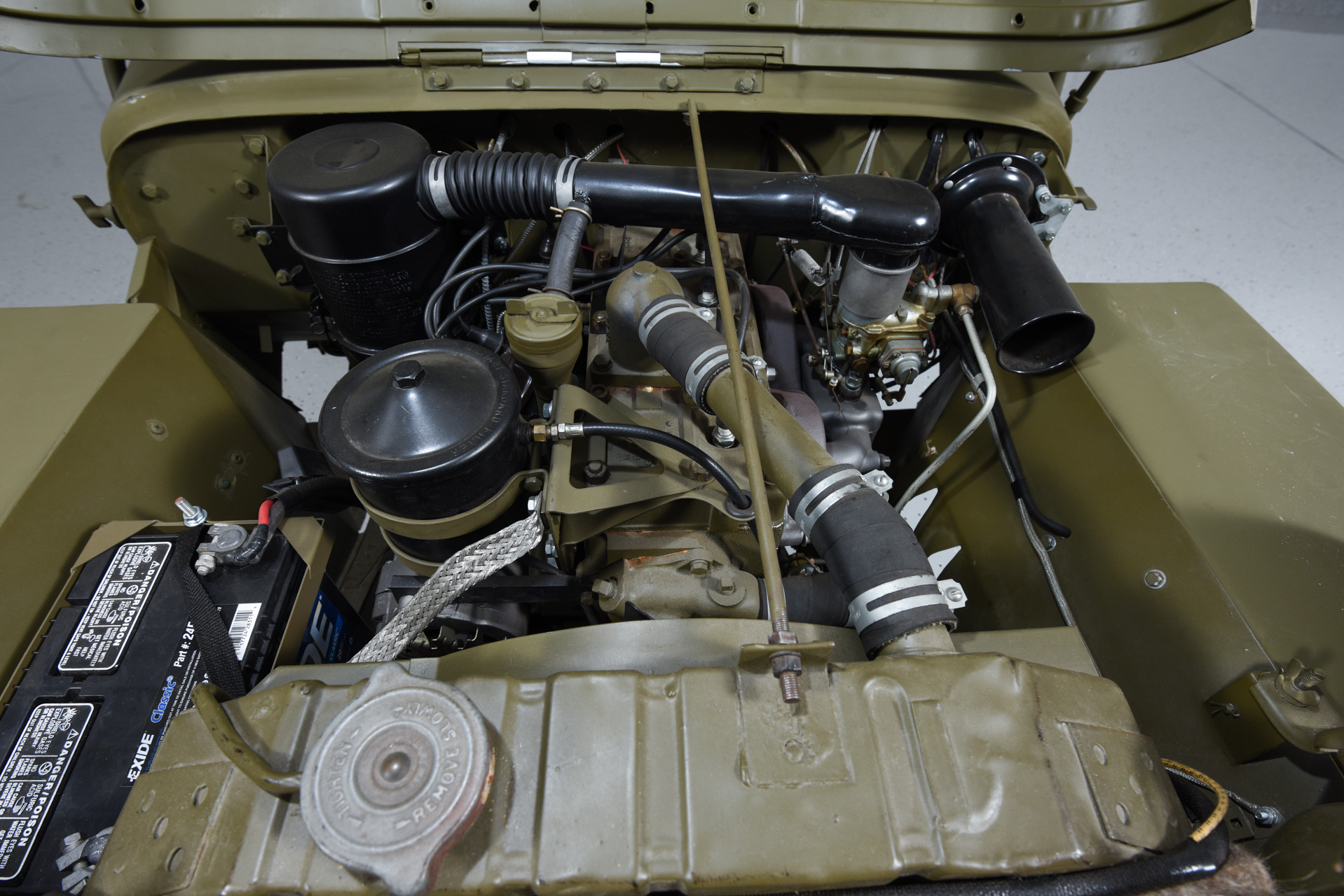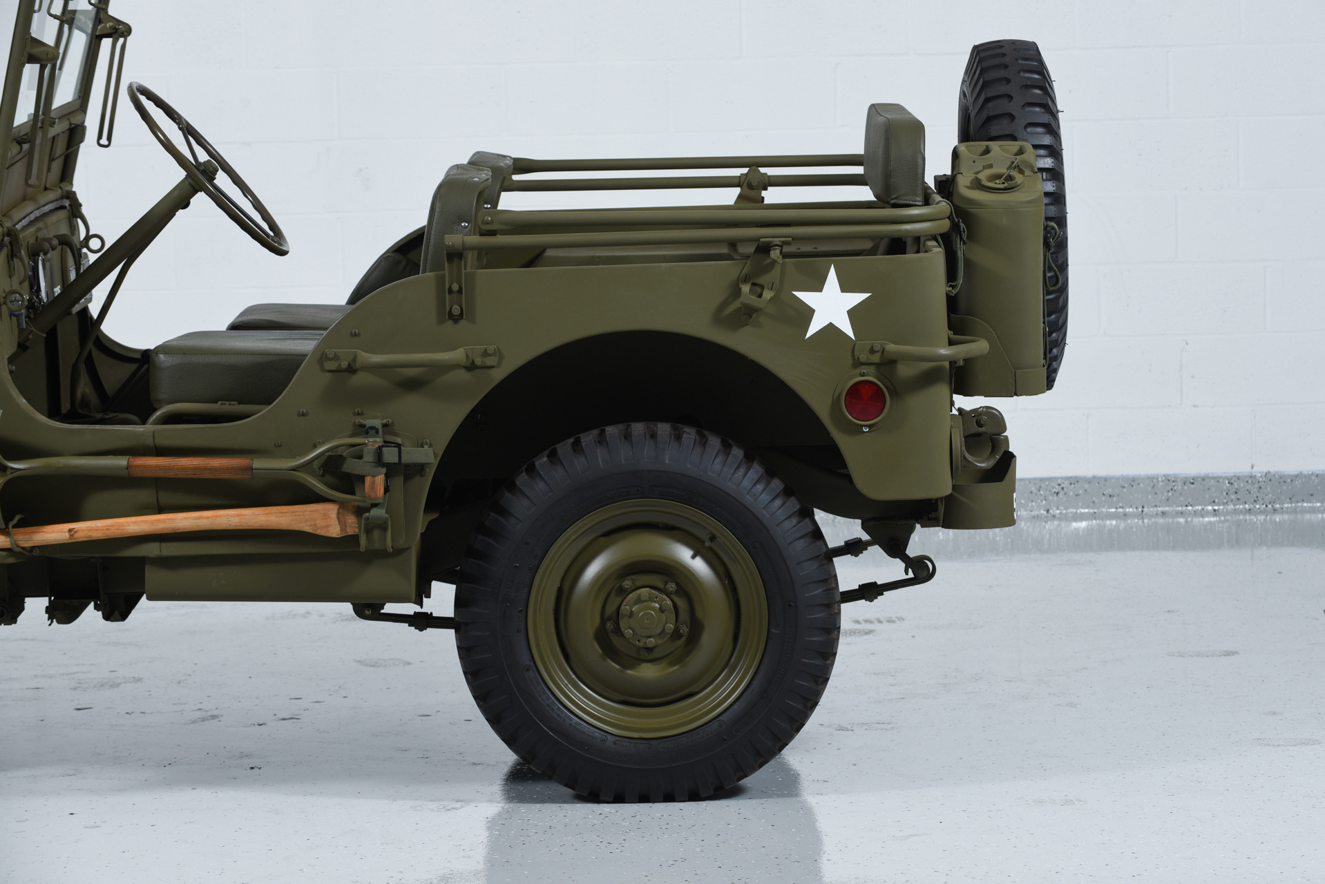 The Willys MB (commonly known as a Jeep or jeep, formally as the U.S. Army Truck, 1/4 ton, 4x4) and the Ford GPW are four-wheel drive utility vehicles that were manufactured during World War II. Produced from 1941 to 1945, it evolved post-war into the civilian Jeep CJ, and inspired both an entire category of recreational 4WDs and several generations of military light utility vehicles. This Jeep is powered by the Willys Go Devil Engine with 3-speed transmission, 2 range transfer case, and 4-wheel drive. It is cosmetically and mechanically superb.