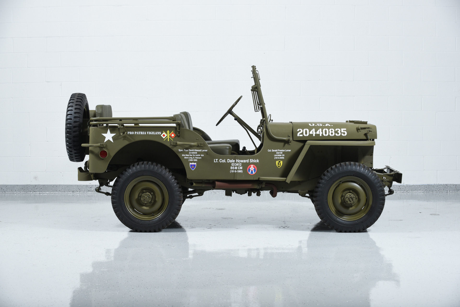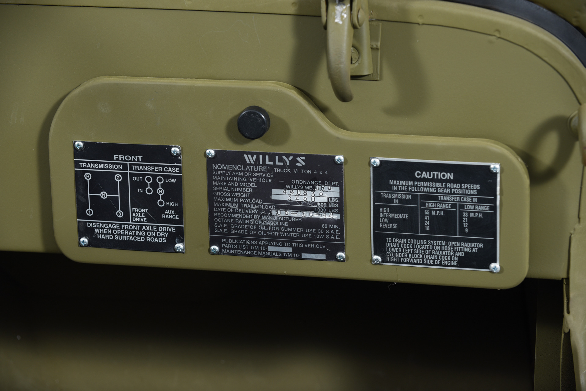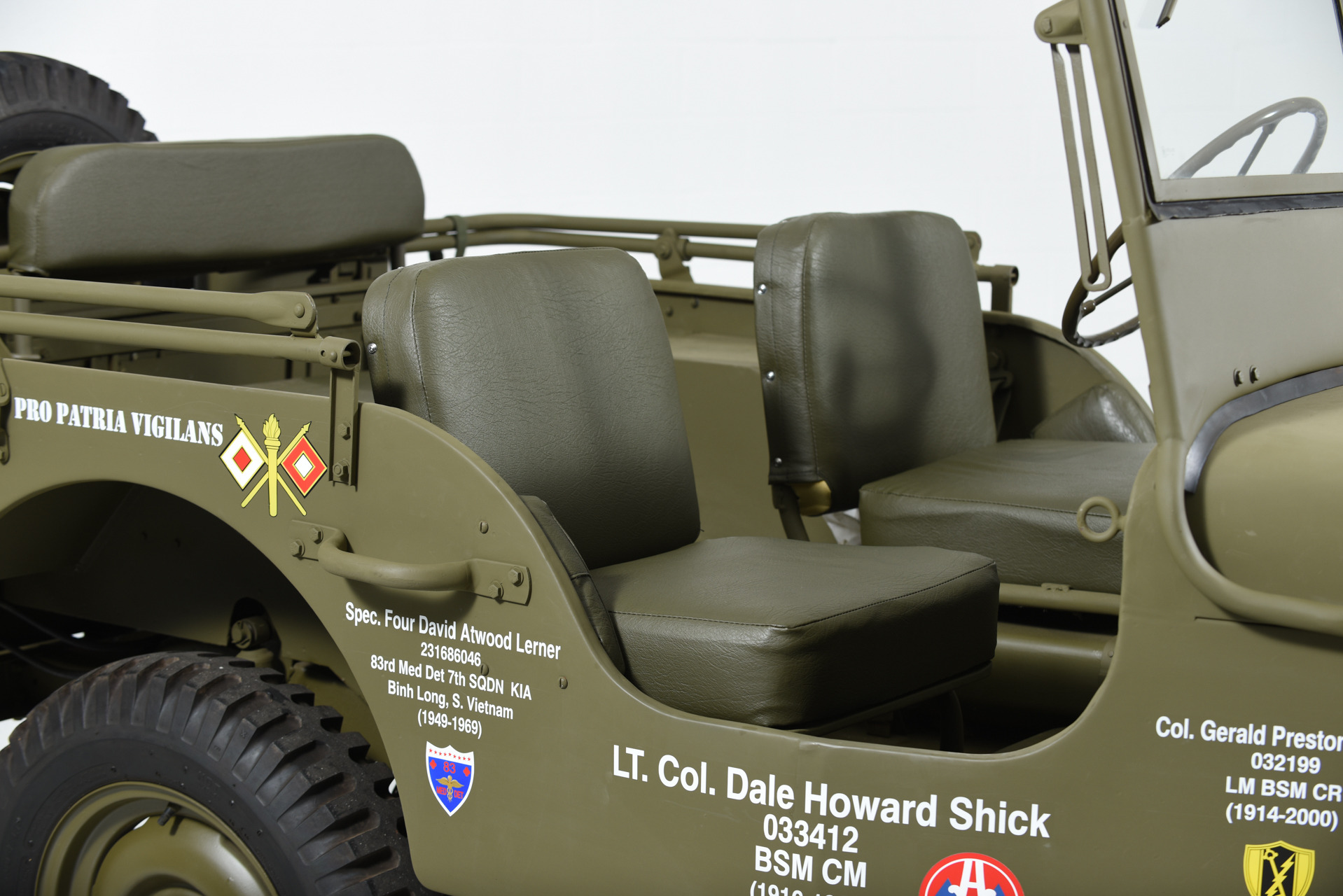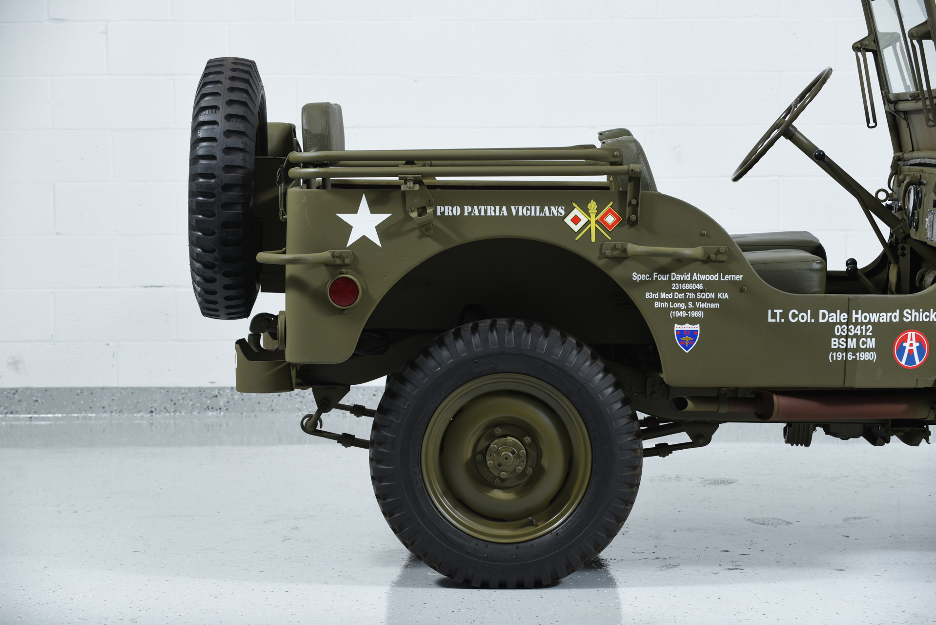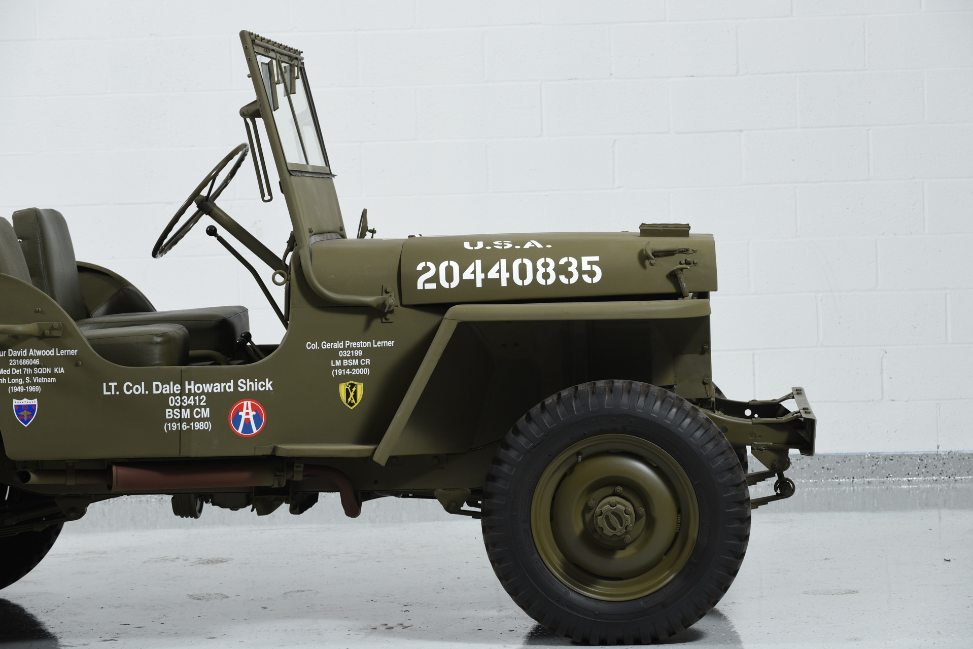 1941 WILLYS MB MILITARY JEEP for sale. Motorcar Classics is proud to present this spectacular 1941 Willys MB Jeep. This genuine WWII Jeep, which saw service in the European Theater, was meticulously and authentically restored by Max Weinberg to honor the military service of his wife, Beckys, father, uncle, and cousin, whose names and service records within the United States Army Signal Corps are inscribed on the right side of the vehicle. Mr. Weinberg personally researched the history of the Jeep with the Department of defense and its history is documented. The markings, numbers, and military insignias are true to its original configuration. We have never seen a military Jeep restored to such a high standard.