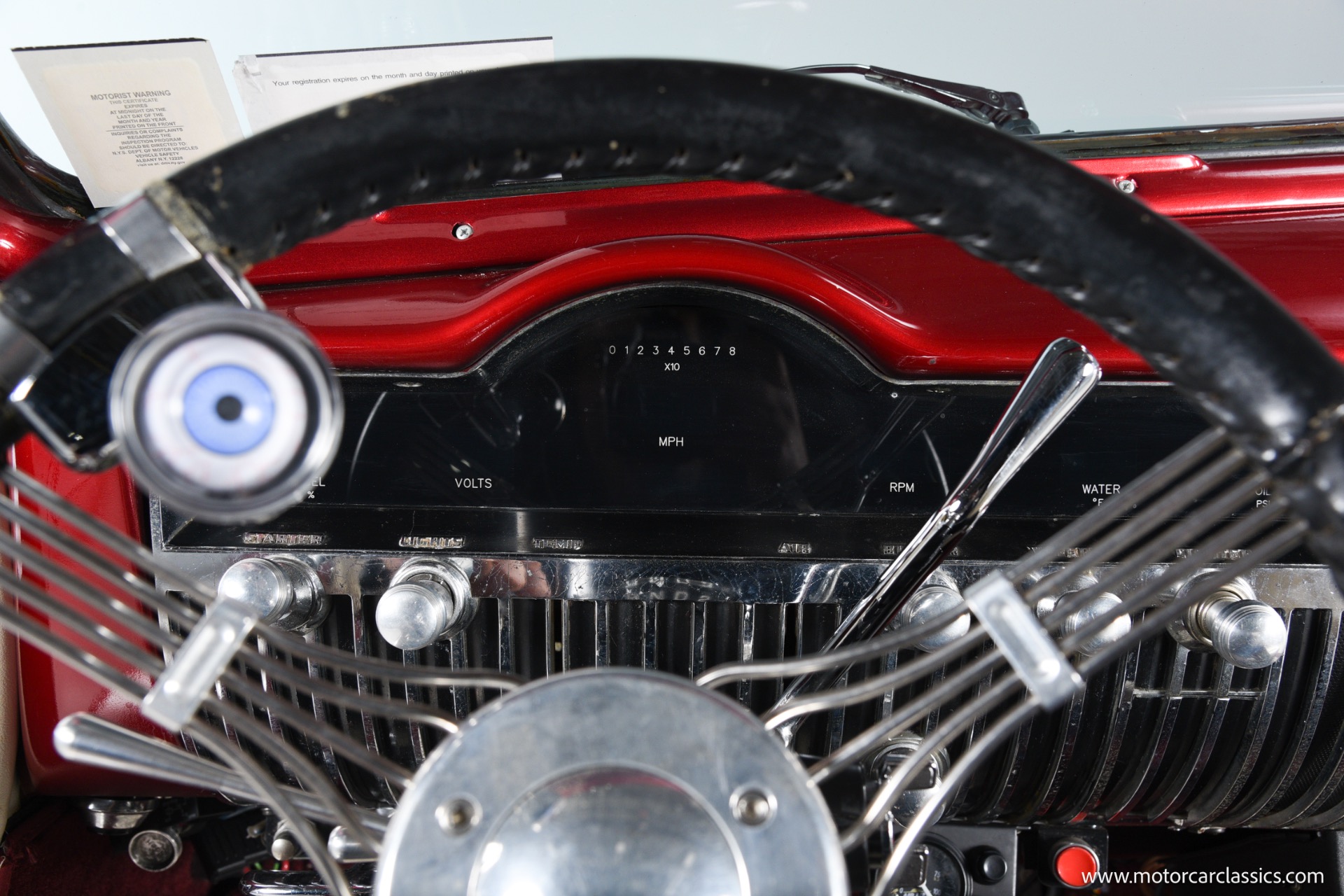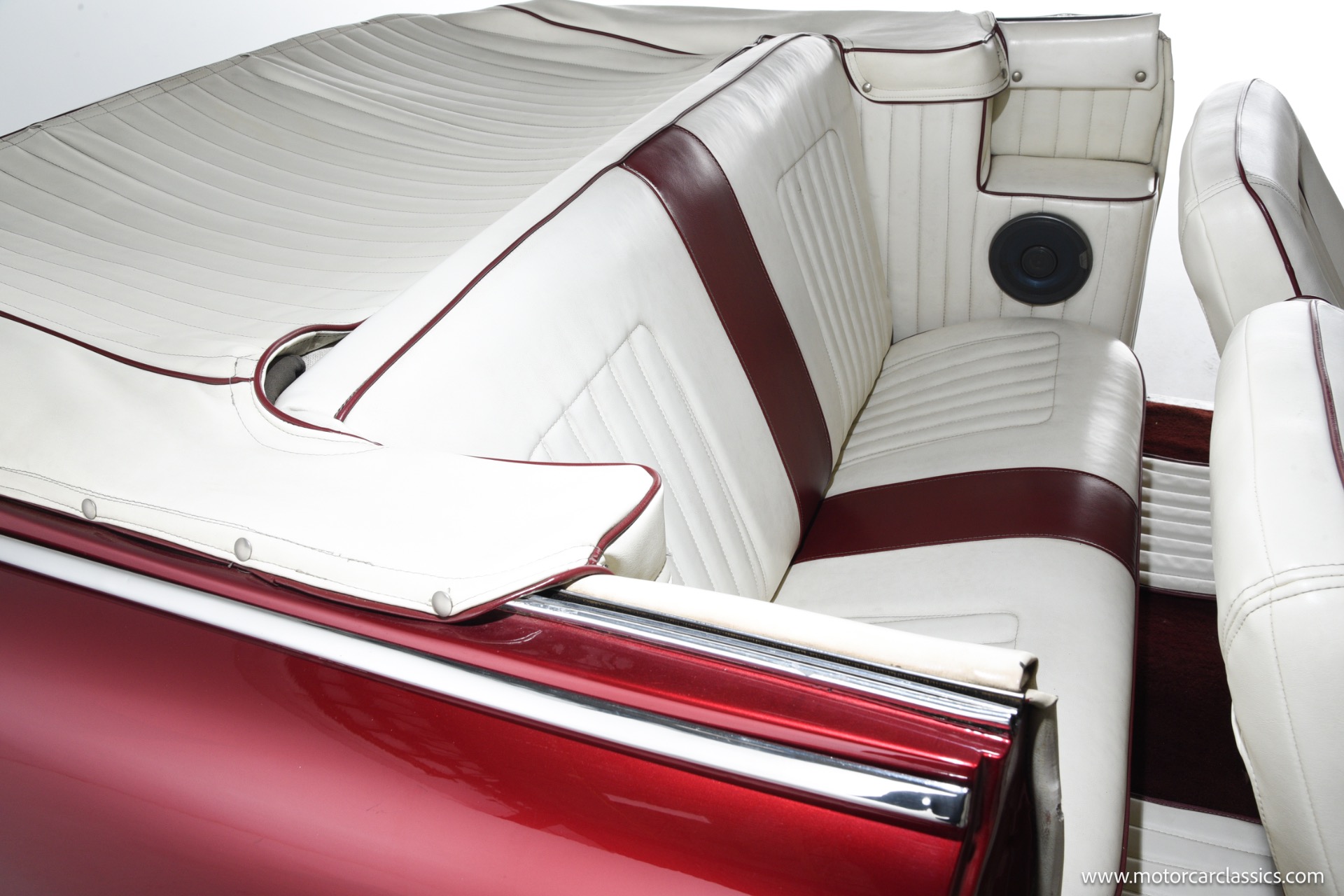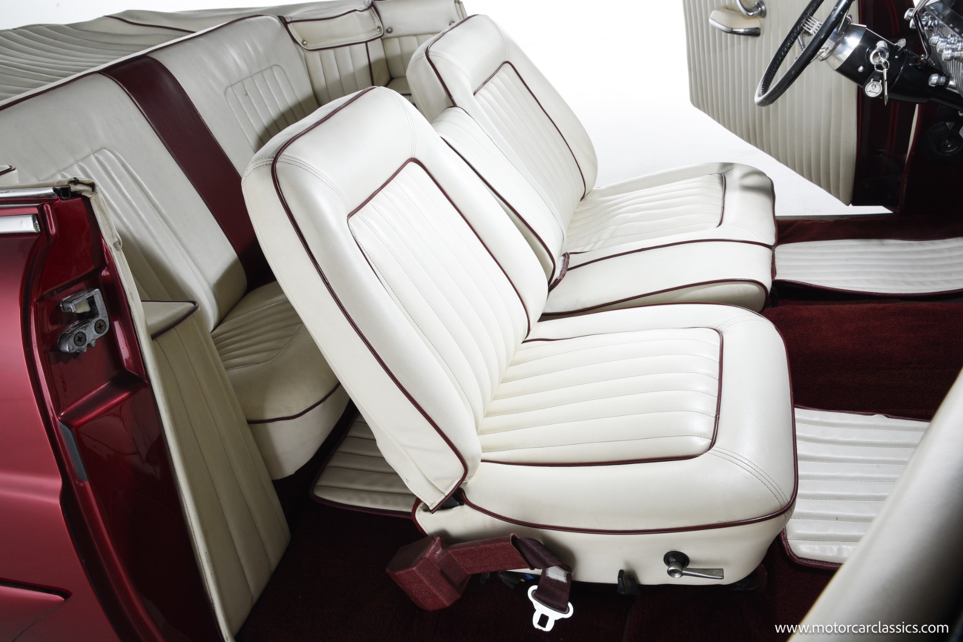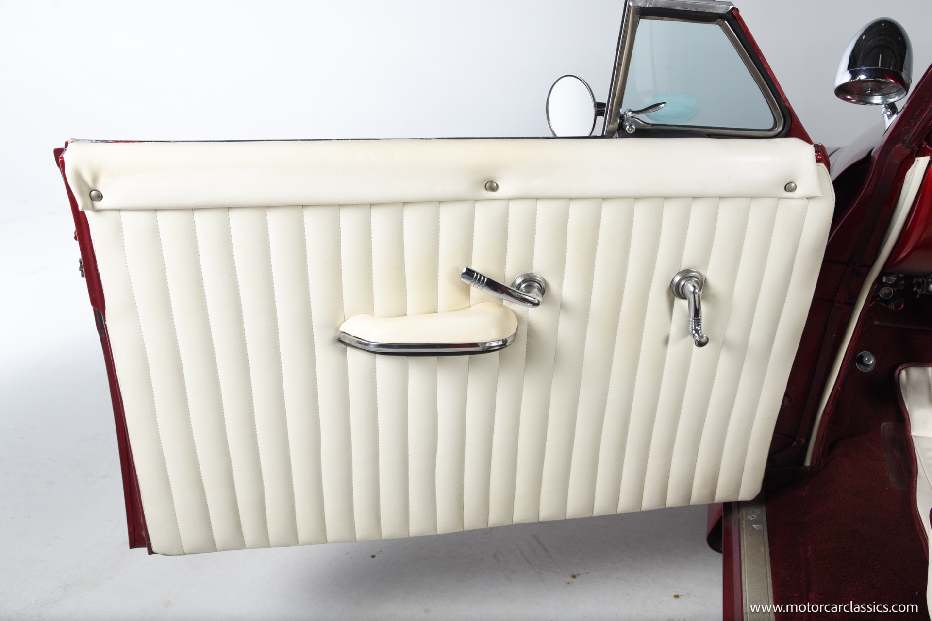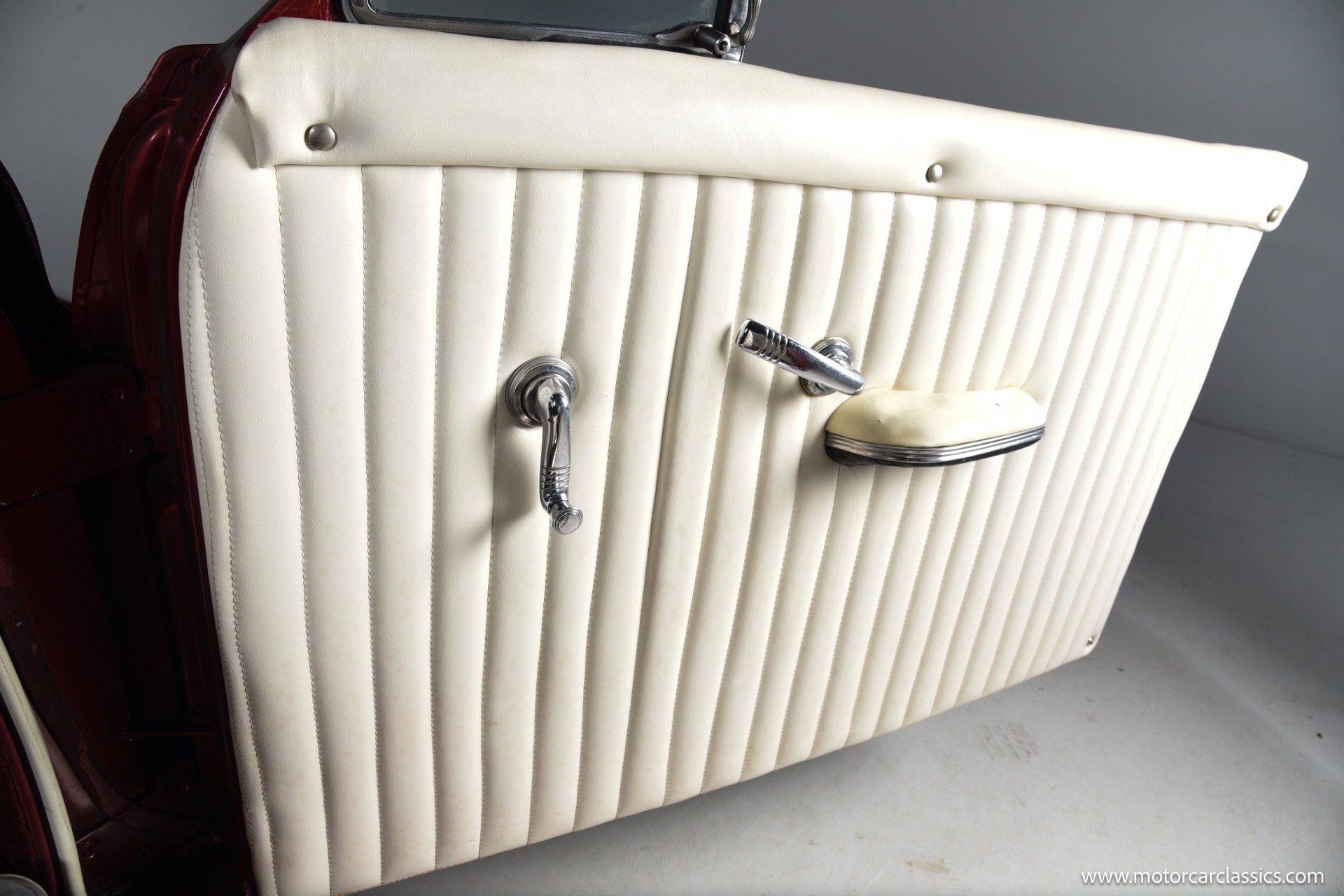 1950 chopped Mercury Convertible for sale! Motorcar Classics is pleased to offer this 1950 Mercury presented in Cadi Crimson Red with GHOST FLAMES and custom black convertible top. This Merc is equipped with a Chevy 350 engine and upgraded Edelbrock Carburetor with a Turbo 400 transmission. Additional options include air ride rear suspension, power brakes and steering, no power windows, no AC but has heat, Monti Carlo front clip, Chevy 3.55 rear, digital dash, Disk player and more. The odometer reads 20 miles, however the true mileage is unknown. This unique Mercury started out as a coupe with many modifications done by previous owners, the build started in 1980 and then was rebuilt again in 1991 with some more recent paint and work done in 2004. The car was chopped 4 inches and has been with its current owner's family for over 25 years. The car is represented as a nice driver and is ready for its next ownership.