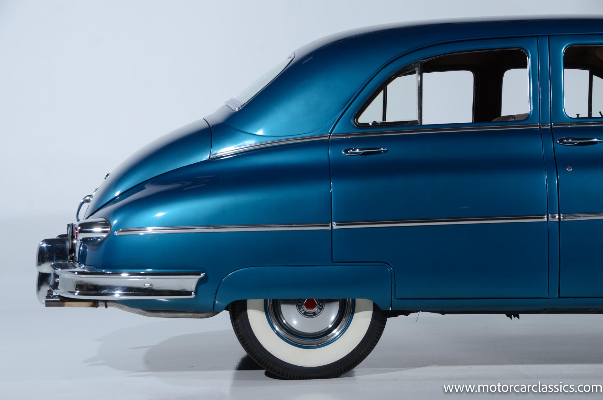 1950 Packard Super 8 for sale! Motorcar classics is pleased to present the epitome of classic American elegance with this meticulously restored 1950 Packard Super 8. Finished in the coveted Astral Blue Iridescent hue, this stunning vehicle boasts a rich history and impeccable style. Its beautiful restoration, completed in 2000, showcases vibrant paint, new chrome accents, and sleek stainless steel trim, evoking the luxury and sophistication of a bygone era.