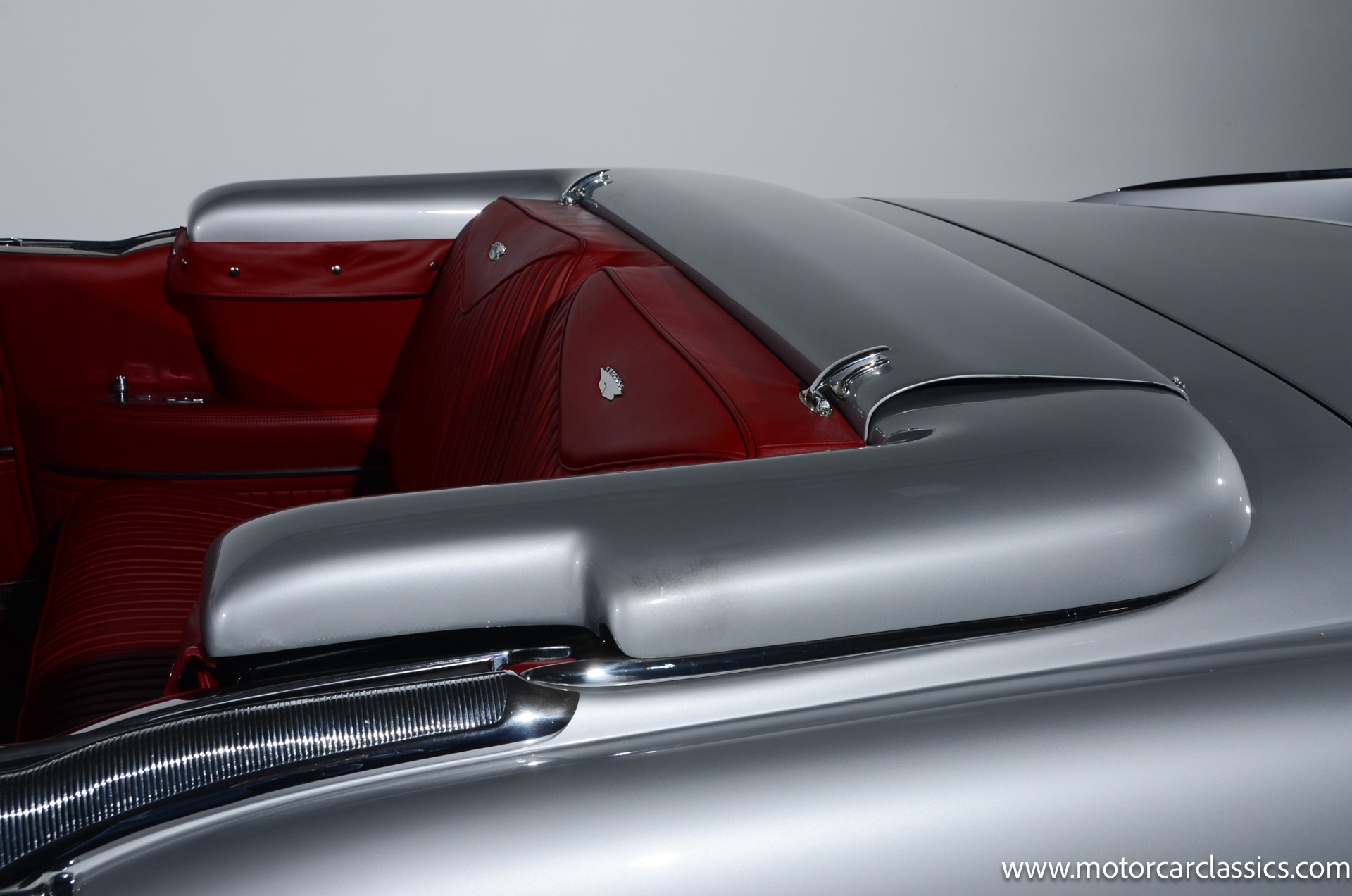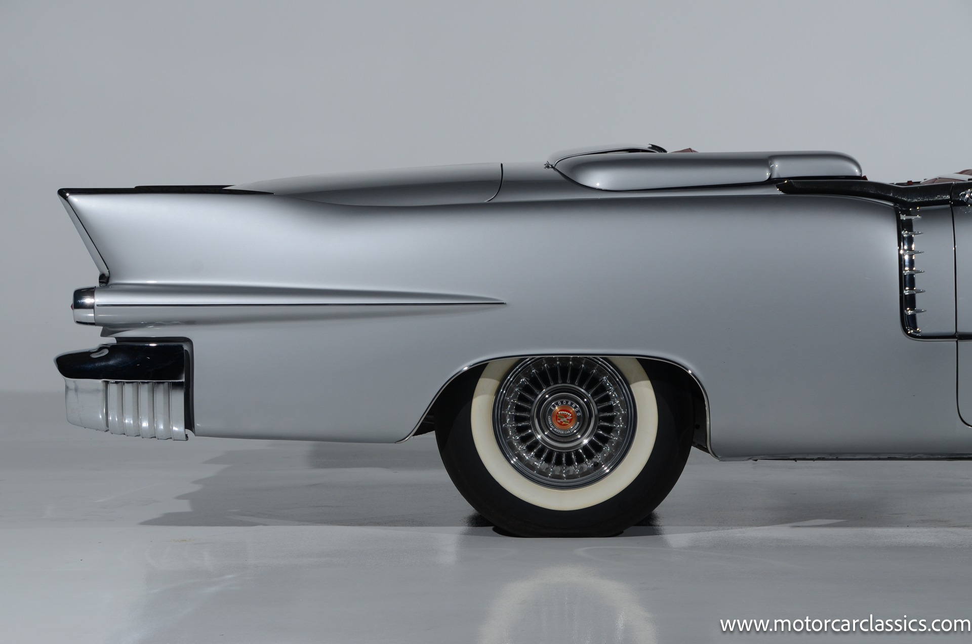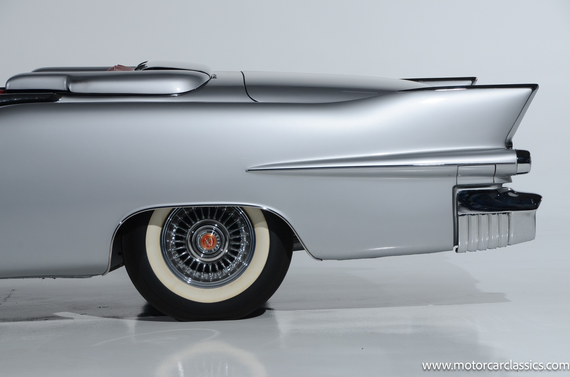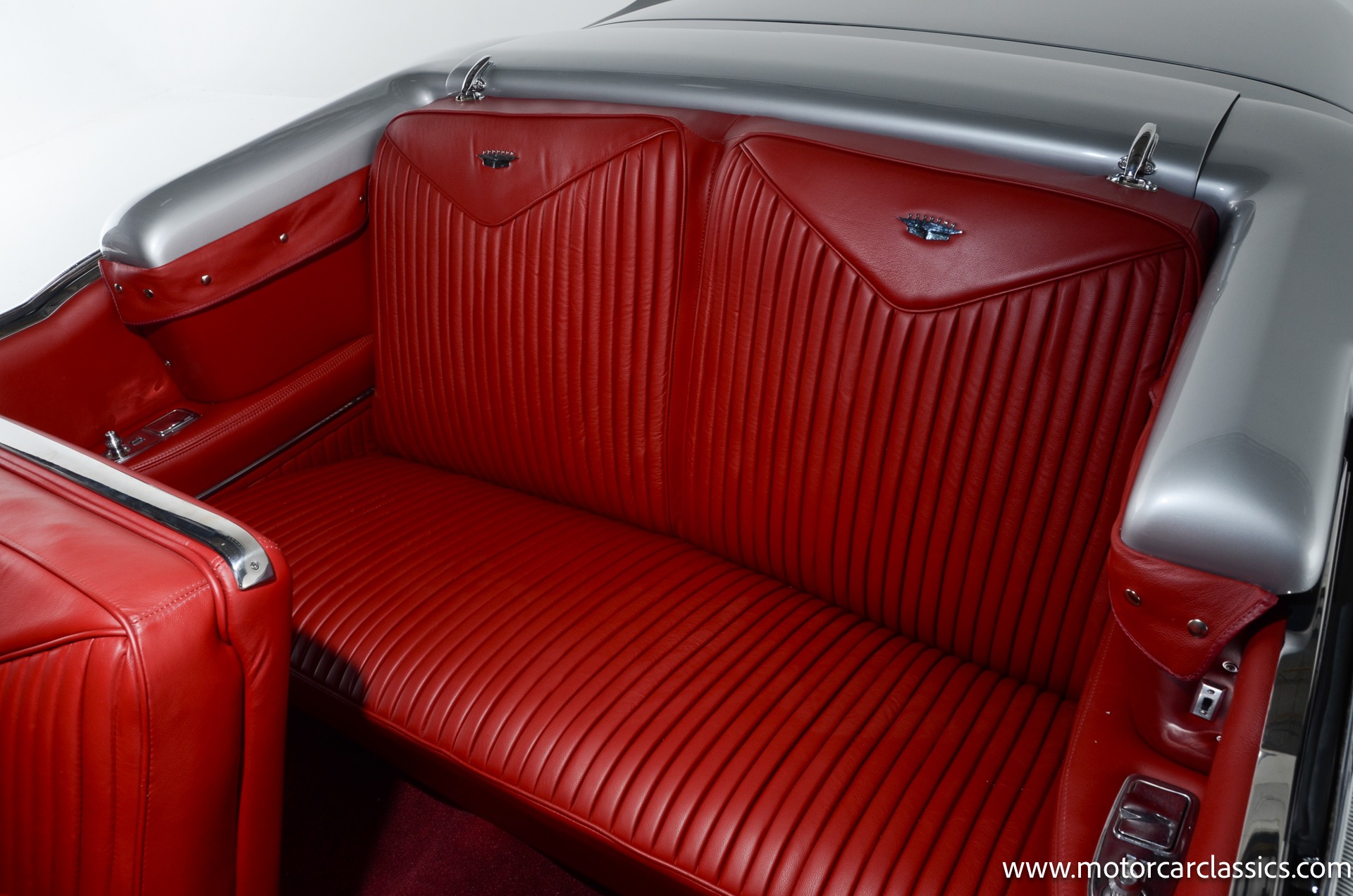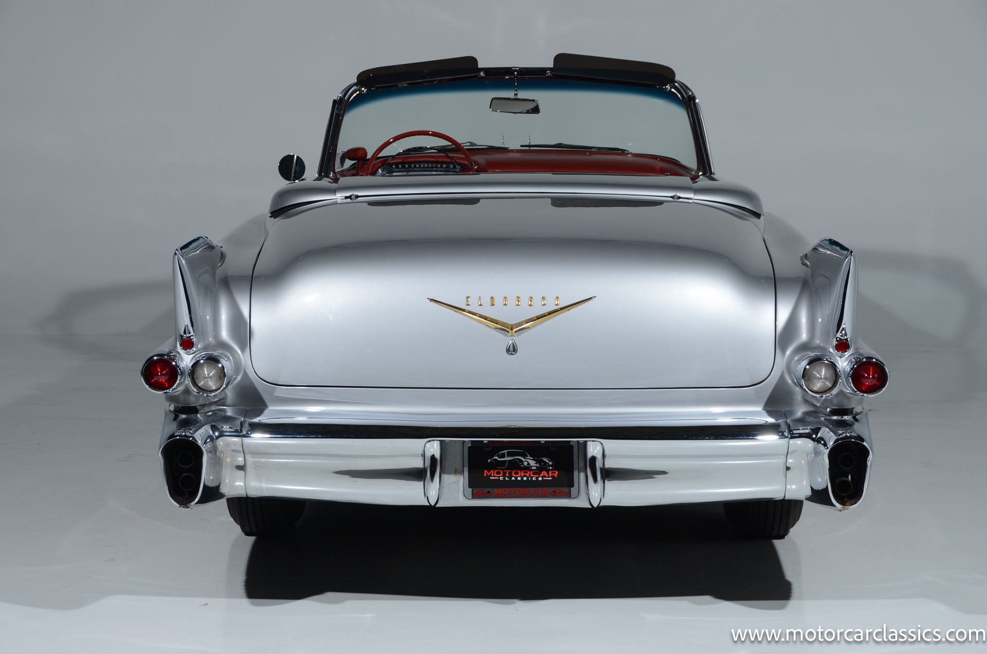 1956 Cadillac Eldorado for sale! Motorcar Classics is proud to present this beautiful 1956 Cadillac Eldorado Convertible, a distinguished example of mid-century American automotive luxury. This vehicle, part of the second generation of Eldorados introduced in 1954, represents Cadillac's commitment to combining performance, style, and innovation. It is presented in meticulously restored condition in metallic silver with red leather interior and black convertible top and original fiberglass Eldorado hard parade boot. The car features a robust 365 CID V8, with dual 4-bbl carburettors and correct Gold Batwing air cleaner producing over 305 HP, paired with a smooth Hydra-Matic automatic transmission, delivering the powerful yet smooth performance characteristic of Cadillac's luxury vehicles of this era. Luxury features include original power steering, power brakes, power windows, power top, power electric antenna, and Wonderbar Radio.