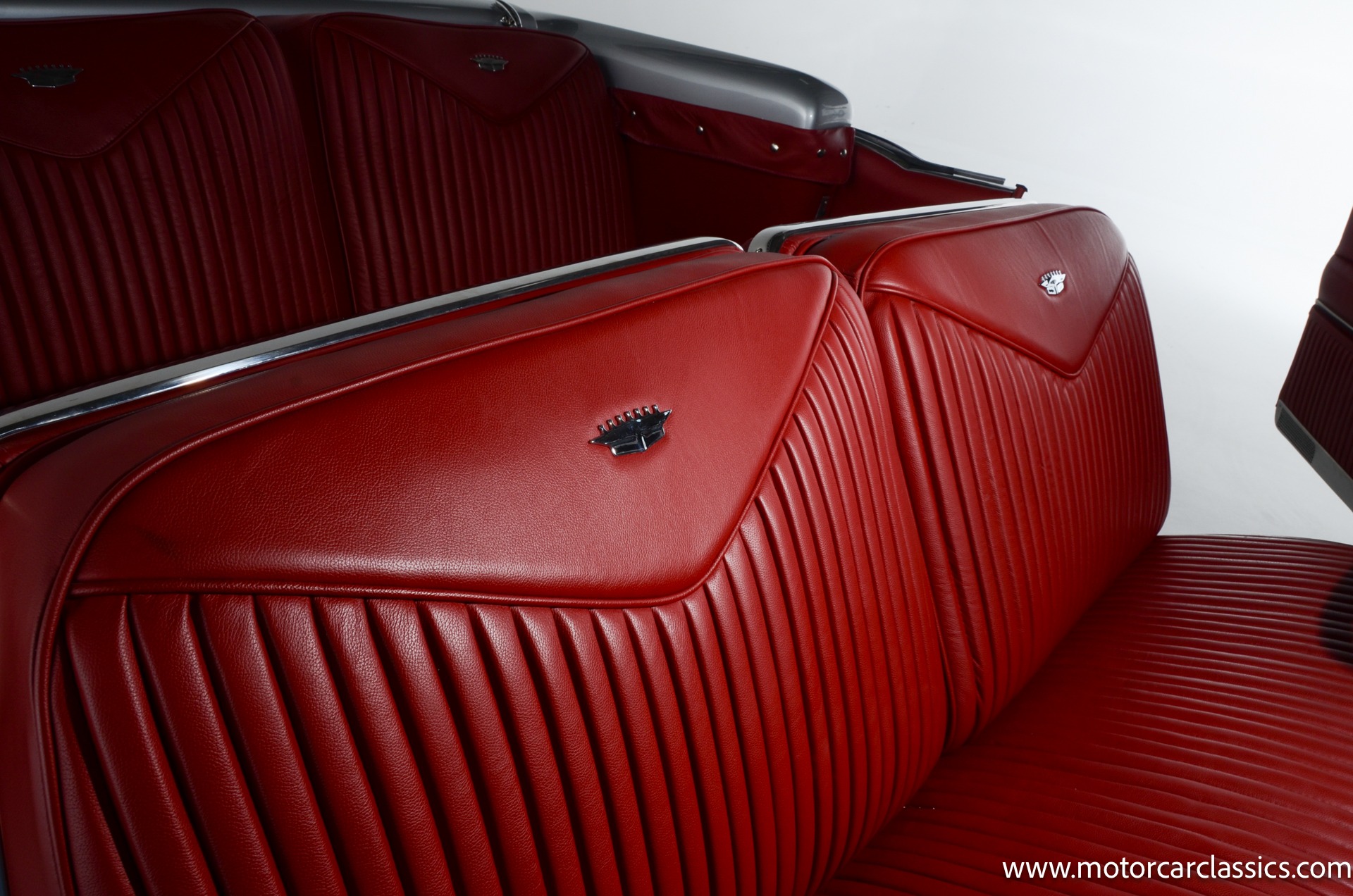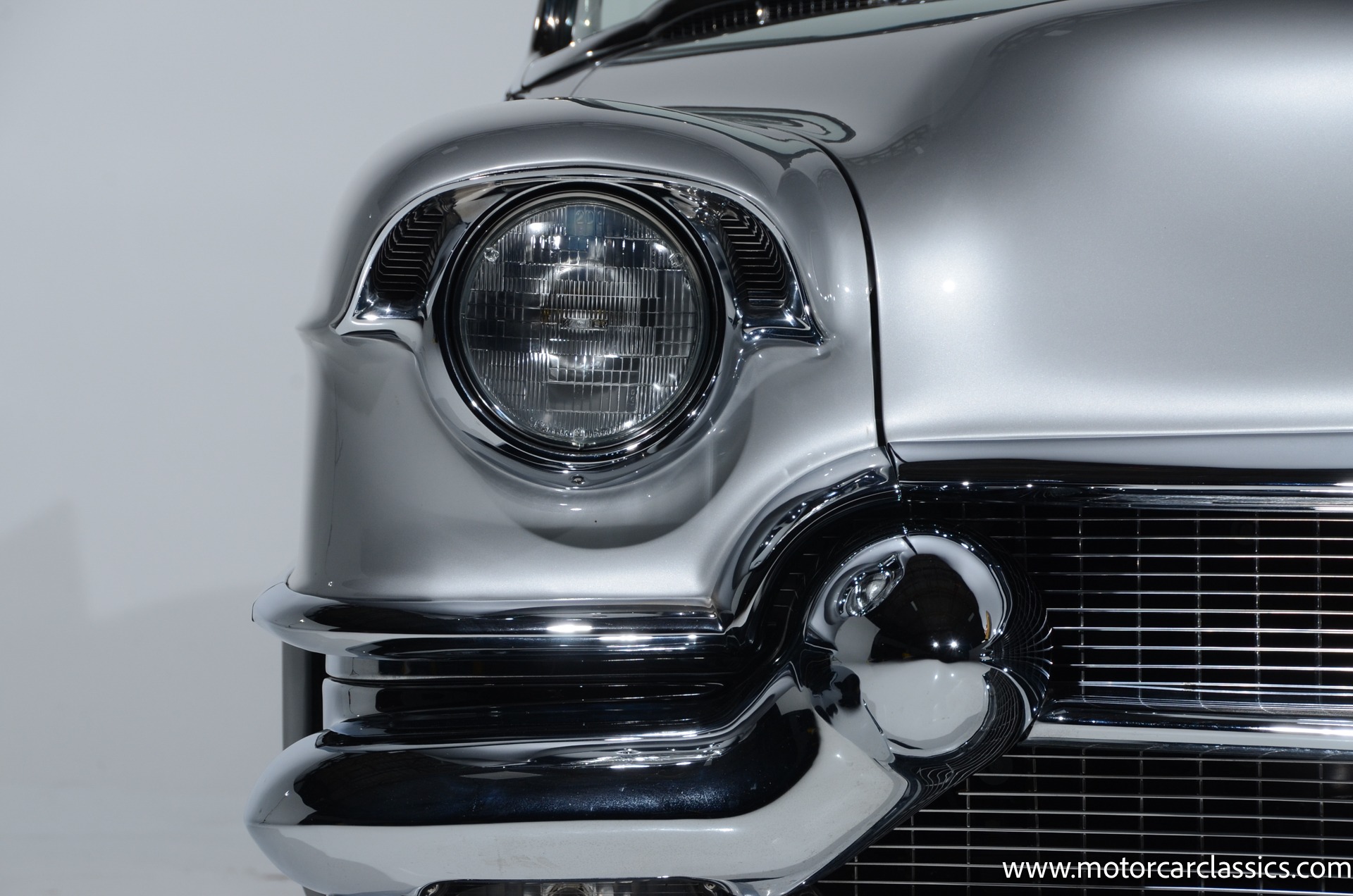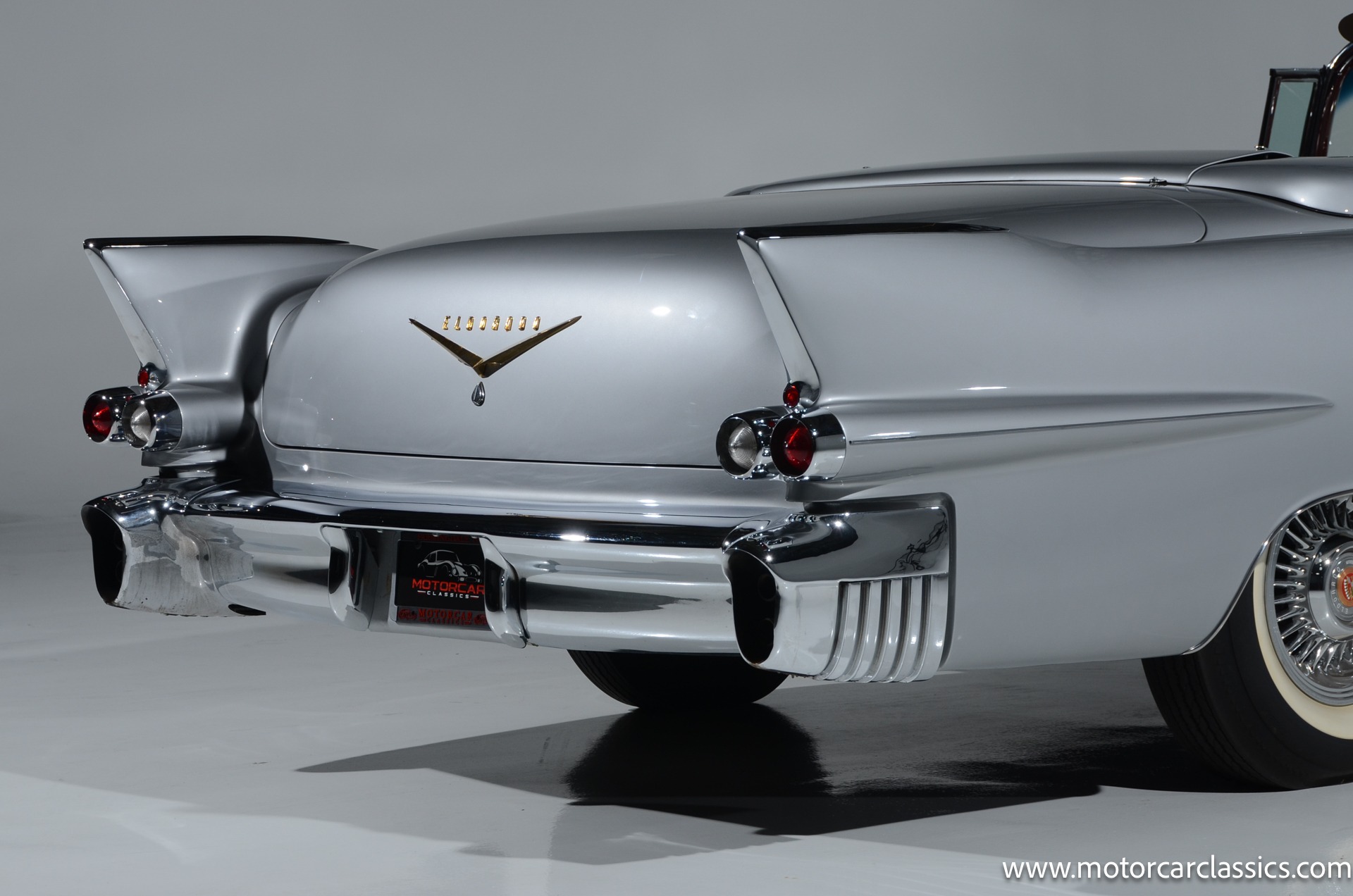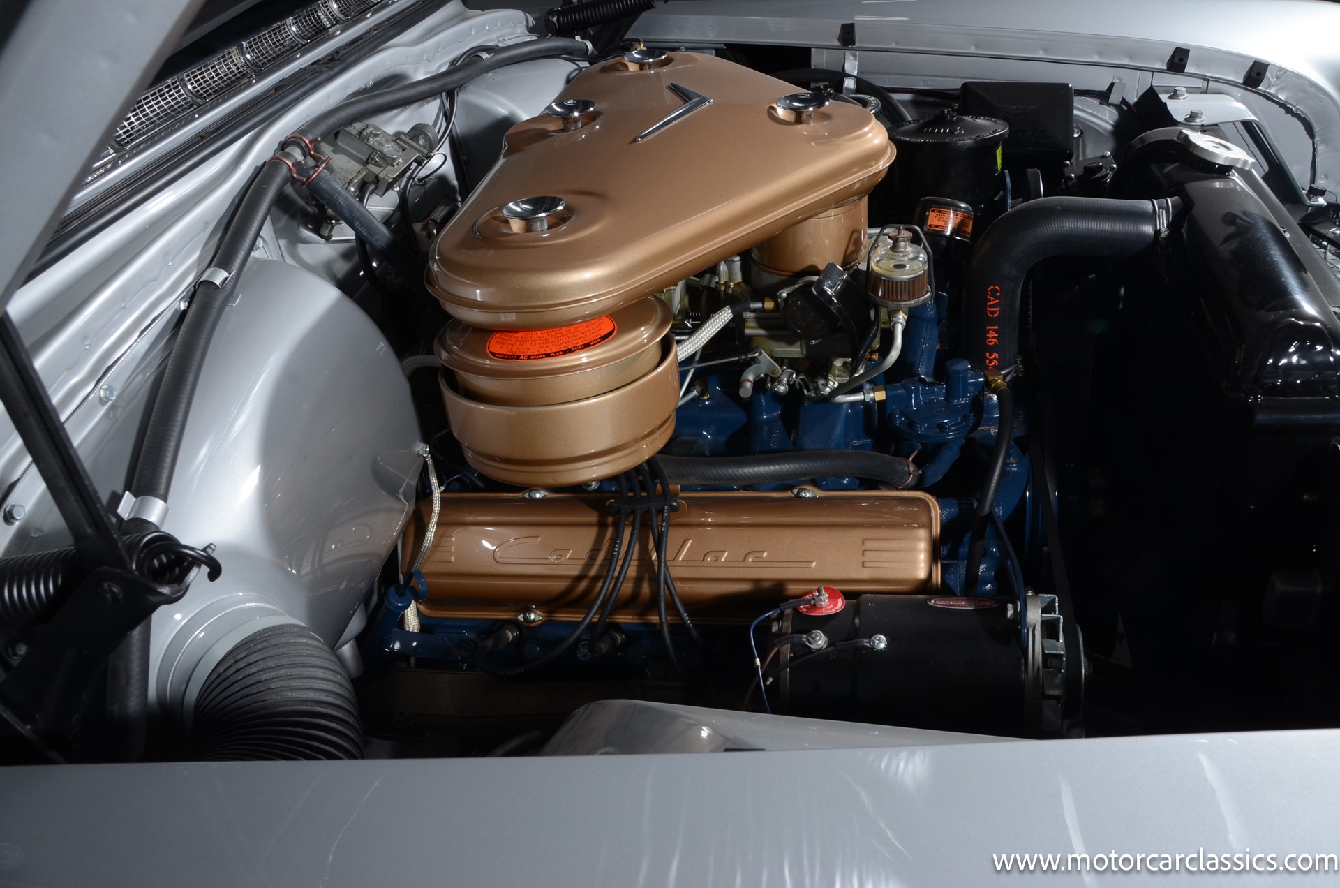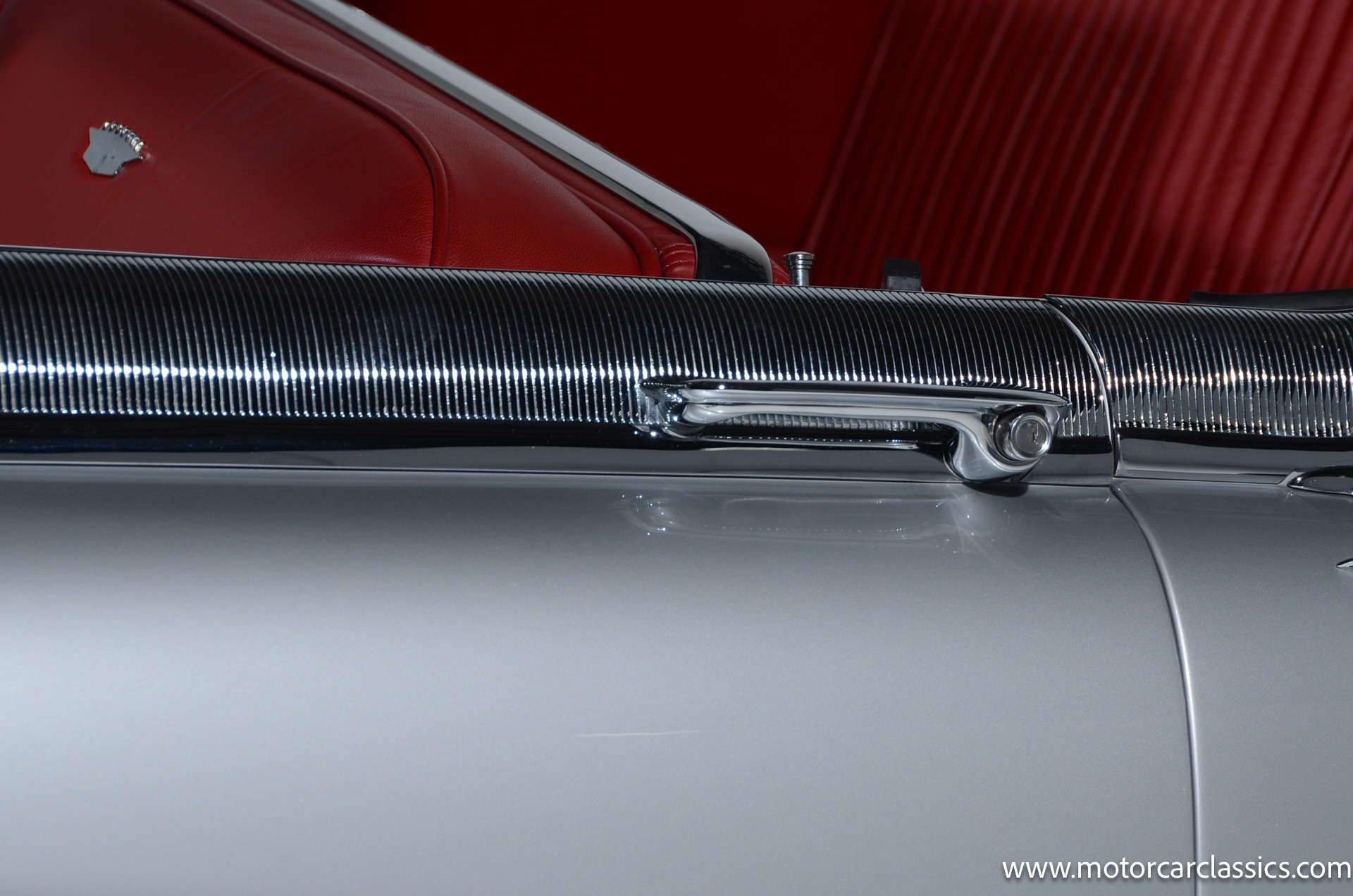 1956 Cadillac Eldorado for sale! Motorcar Classics is proud to present this beautiful 1956 Cadillac Eldorado Convertible, a distinguished example of mid-century American automotive luxury. This vehicle, part of the second generation of Eldorados introduced in 1954, represents Cadillac's commitment to combining performance, style, and innovation. It is presented in meticulously restored condition in metallic silver with red leather interior and black convertible top and original fiberglass Eldorado hard parade boot. The car features a robust 365 CID V8, with dual 4-bbl carburettors and correct Gold Batwing air cleaner producing over 305 HP, paired with a smooth Hydra-Matic automatic transmission, delivering the powerful yet smooth performance characteristic of Cadillac's luxury vehicles of this era. Luxury features include original power steering, power brakes, power windows, power top, power electric antenna, and Wonderbar Radio.