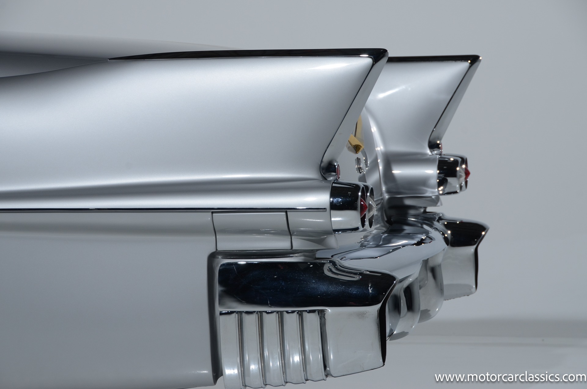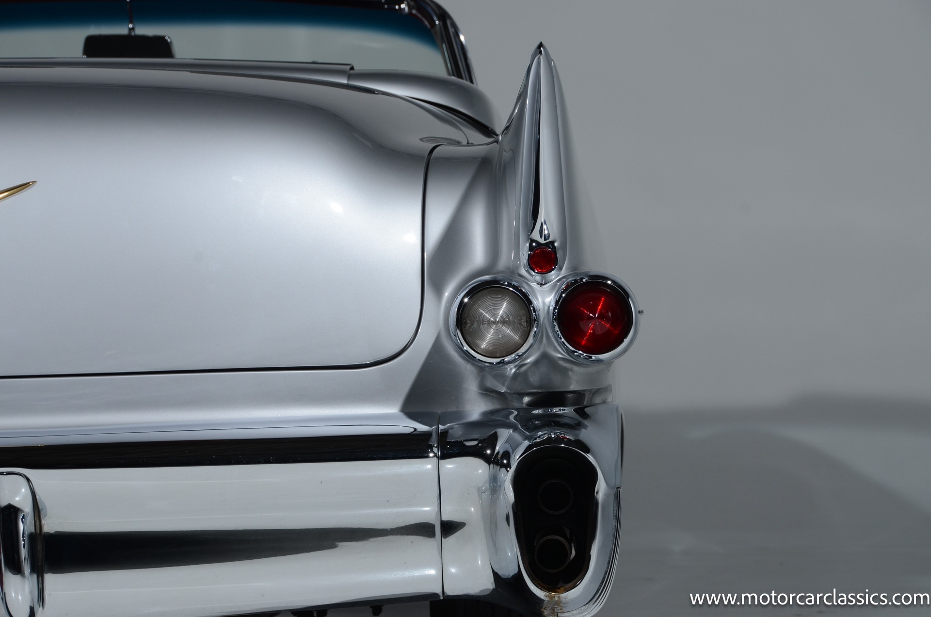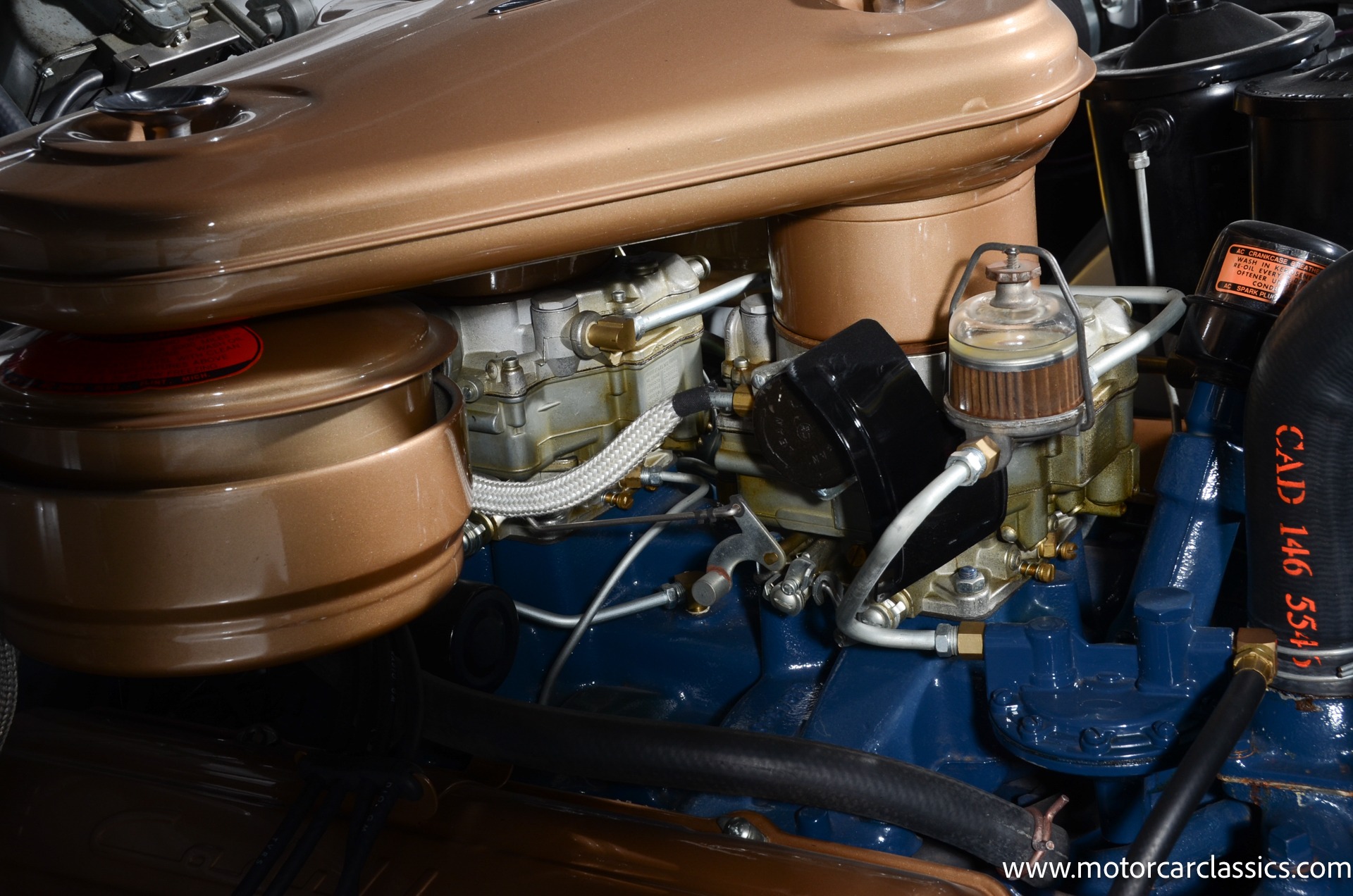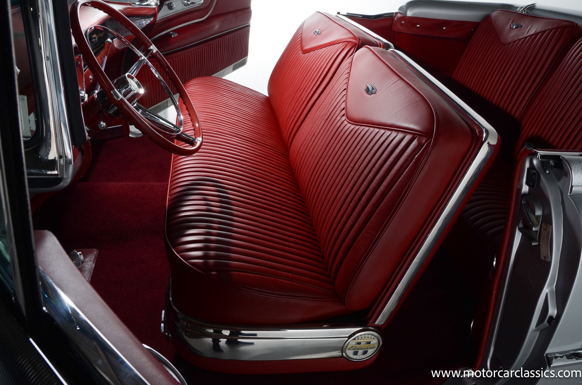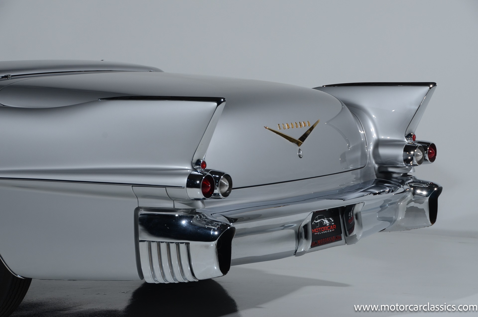 1956 Cadillac Eldorado for sale! Motorcar Classics is proud to present this beautiful 1956 Cadillac Eldorado Convertible, a distinguished example of mid-century American automotive luxury. This vehicle, part of the second generation of Eldorados introduced in 1954, represents Cadillac's commitment to combining performance, style, and innovation. It is presented in meticulously restored condition in metallic silver with red leather interior and black convertible top and original fiberglass Eldorado hard parade boot. The car features a robust 365 CID V8, with dual 4-bbl carburettors and correct Gold Batwing air cleaner producing over 305 HP, paired with a smooth Hydra-Matic automatic transmission, delivering the powerful yet smooth performance characteristic of Cadillac's luxury vehicles of this era. Luxury features include original power steering, power brakes, power windows, power top, power electric antenna, and Wonderbar Radio.