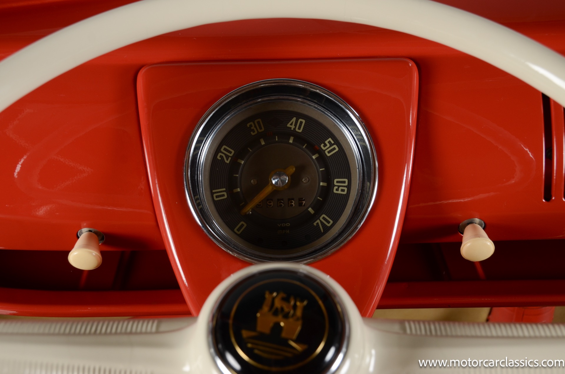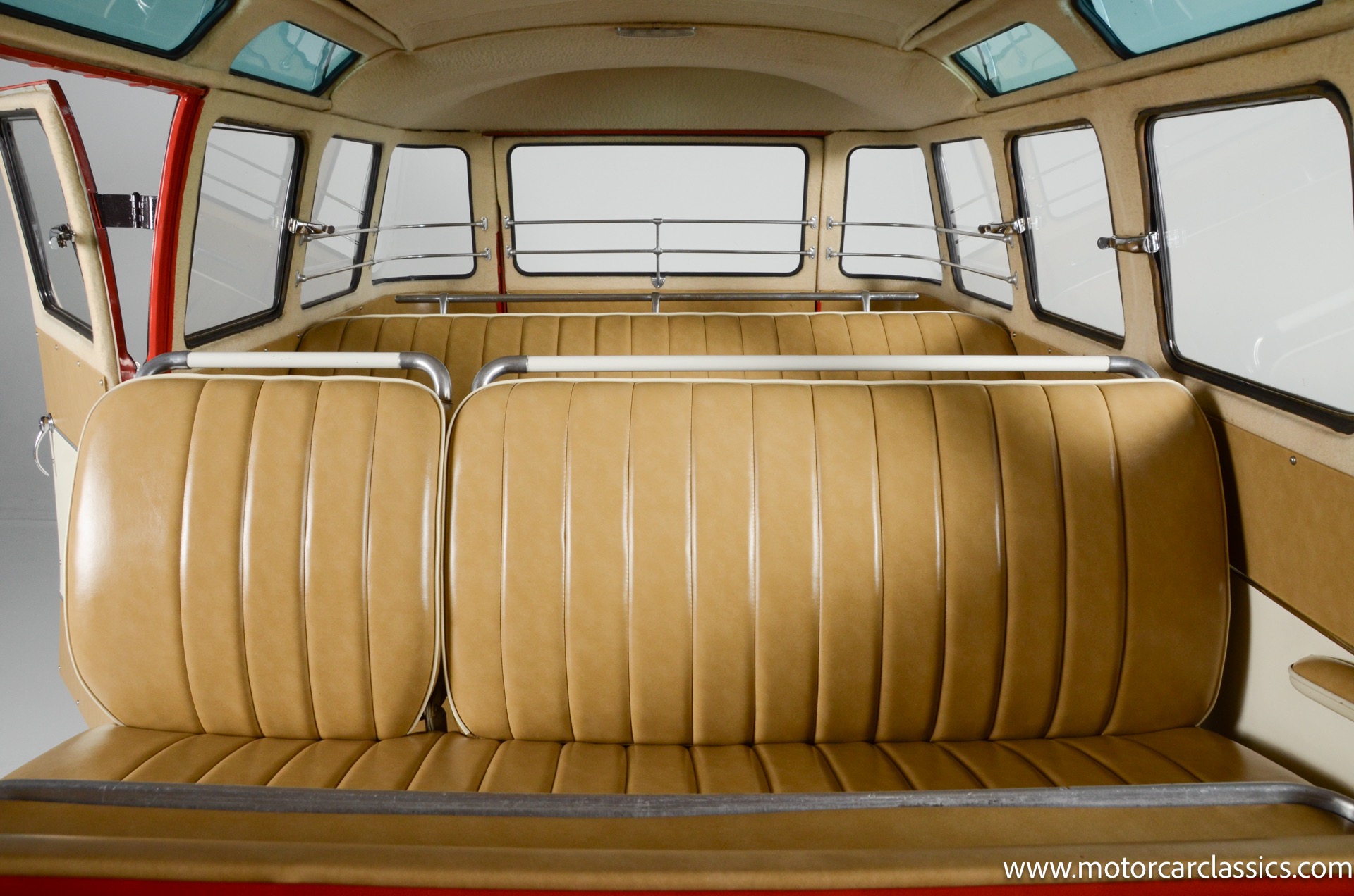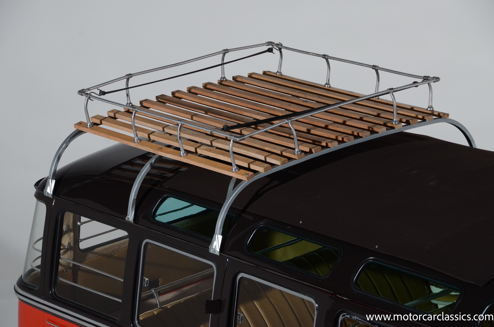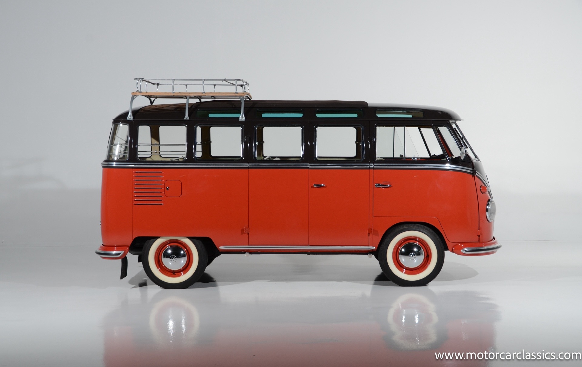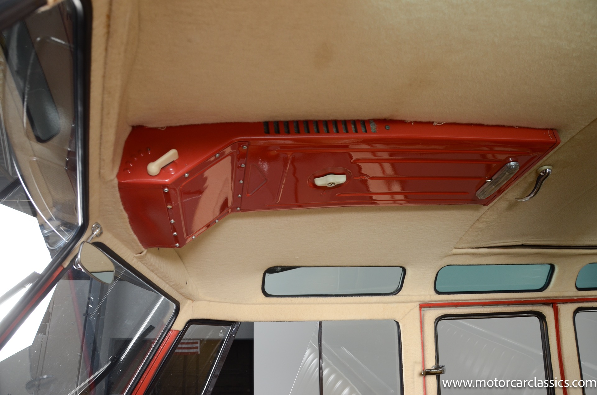 1956 Volkswagen Bus for sale! Motorcar Classics is proud to present this 1956 Volkswagen Type 2 23-Window Transporter, a rare piece of Volkswagen's history. As one of the last hand-built transporters to roll out of the Wolfsburg plant before production transitioned to another automated assembly plant at Johannesburg, Bavaria, this bus holds a special place in Volkswagen's legacy. Imported to Texas in April 1956, it boasts a unique rear transmission mount crossmember that distinguishes it from the later automated assembly transporters, a telltale sign of its hand-crafted origins and collectibility. This dry-state vehicle has spent its entire life in the arid climates of Texas, New Mexico, and Arizona, resulting in a completely rust-free body - a true rarity for a VW of this vintage. Still bearing its Arizona title, this meticulously preserved and beautifully restored Type 2 offers collectors and enthusiasts alike the opportunity to own a piece of Volkswagen's storied past. With its 23 windows providing ample natural light and panoramic views, along with a full sunroof, this Transporter embodies the spirit of adventure and freedom that made these vehicles iconic. Featured in black over red with beige interior, this is arguably the most desirable color combination. A period-correct rooftop luggage rack, and wide whitewall tires complete the classic look. For improved performance, and safety, the bus is upgraded with a circa 1970 VW 1,600 cc motor. Don't miss this chance to acquire a pristine, hand-built example of one of the most beloved and recognizable vehicles in automotive history.