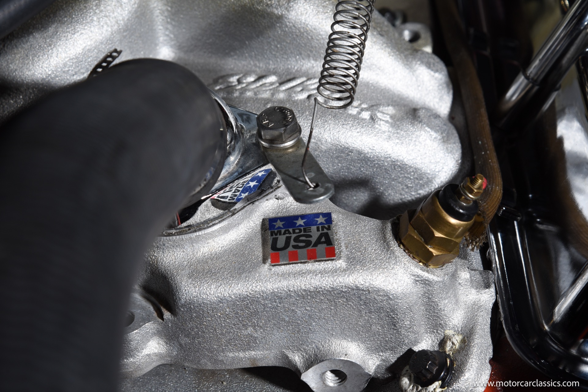 Under the hood, a built 350 cubic inch V8 engine with an Edelbrock high-rise intake and a 750 dual-feed double pumper carburetor delivers impressive power and smooth acceleration. The engine bay also features an electric fan and an electric fuel pump for improved cooling and fuel delivery. Exhaust gases flow through Hedman headers and a robust 3-inch exhaust system, producing a deep, throaty rumble that's music to any classic car lover's ears.