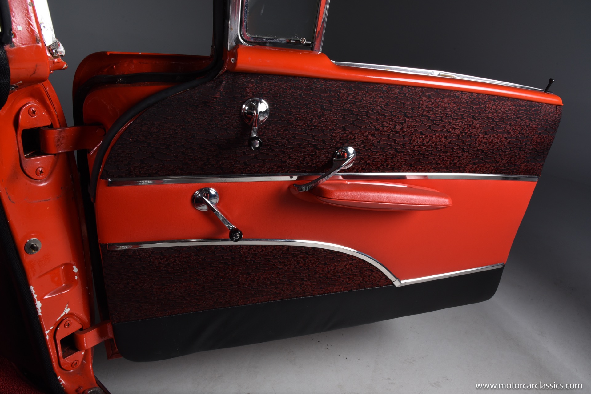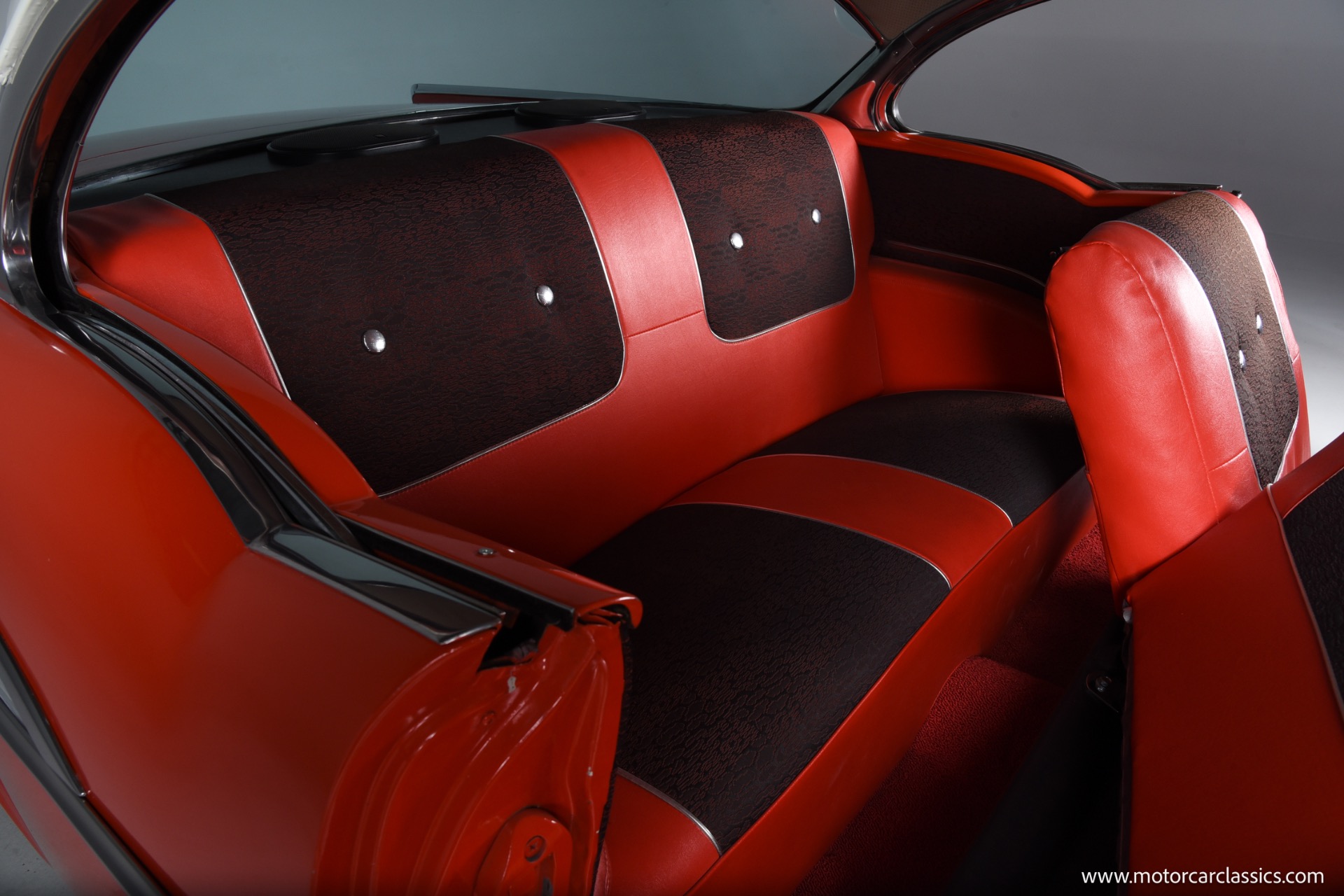Inside, the Bel Air boasts a striking red and black interior that complements its red and white exterior. Classic instrument gauges keep you informed, while new wiring throughout ensures reliability. Enjoy your favorite tunes with the RetroSound Bluetooth stereo, and benefit from LED courtesy lighting for a touch of modern convenience.