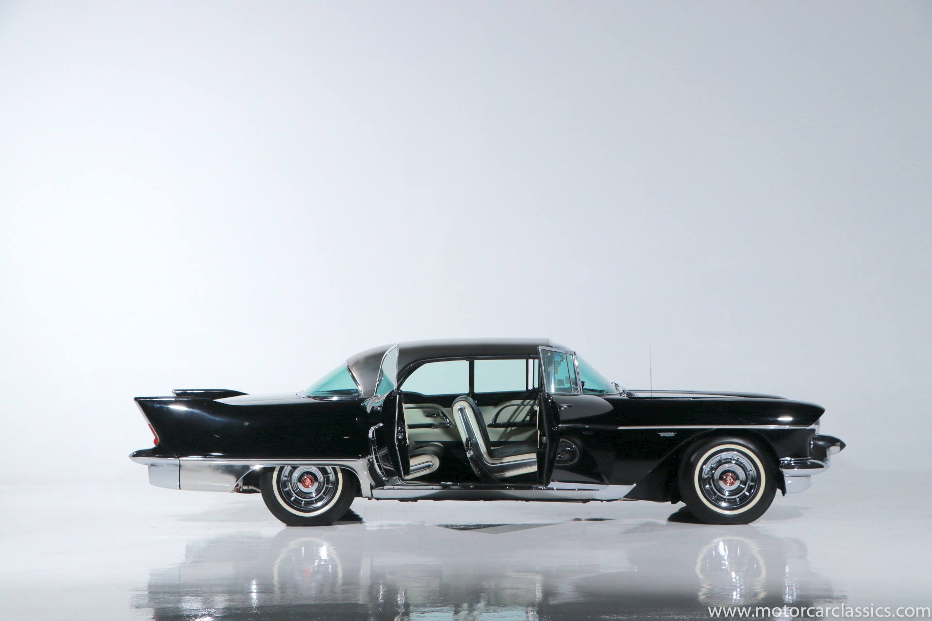 1958 Cadillac Eldorado Brougham for sale! Motorcar Classics is proud to present this stunning 1958 Cadillac Eldorado Brougham. Imagine if an American automaker today built a four-door sedan that was priced higher than a new Ferrari or Rolls-Royce. This is exactly what happened back in the late 1950s. Ford had upped the ante with the introduction of its 1956 Continental Mark II, a two-door coupe so elite that the Blue Oval didn't even bother calling it a Lincoln. General Motors needed an answer. A car so outlandish, so well-equipped, and so exclusive, that it would set the bar for American luxury. Cadillac's answer was the 1957 Eldorado Brougham, a four-door hardtop sedan that featured quad headlights; side windows that disappeared completely, frames and all; rear-hinged rear doors, which were a throwback to the 1930s; and a broad expanse of sparkling brushed stainless steel for the roof. The engineering staff worked out a litany of power accessories. The trunk lid and not only opened with the push of a button, but they closed with one too, and the doors would lock automatically when the transmission was put in gear. A memory front seat was a first for a production car, as were the forged aluminum wheels. Naturally, there was air conditioning. All of this elegance came at a cost of over $13,000. Cadillac reportedly lost $10,000 on every car built, which was why the model lasted for only two years with just 704 examples produced, 400 in 1957, and 304 in 1958.