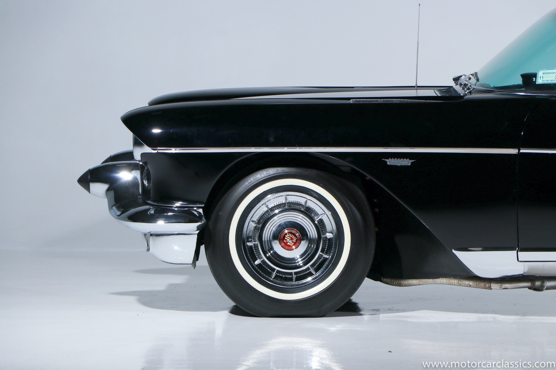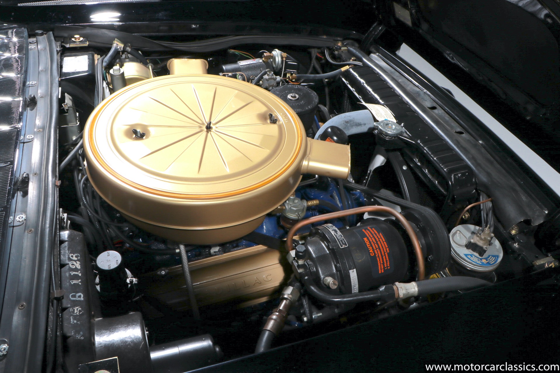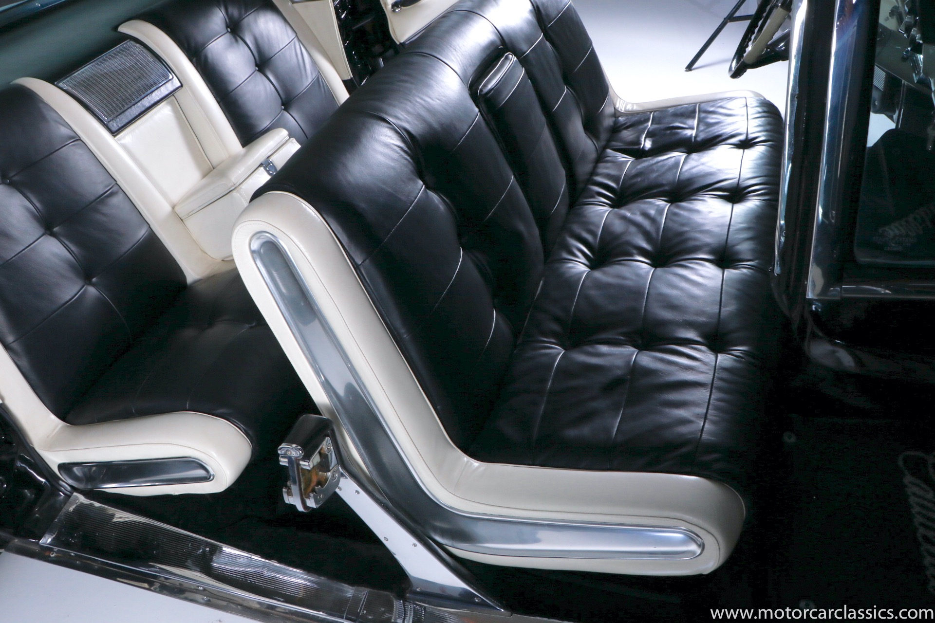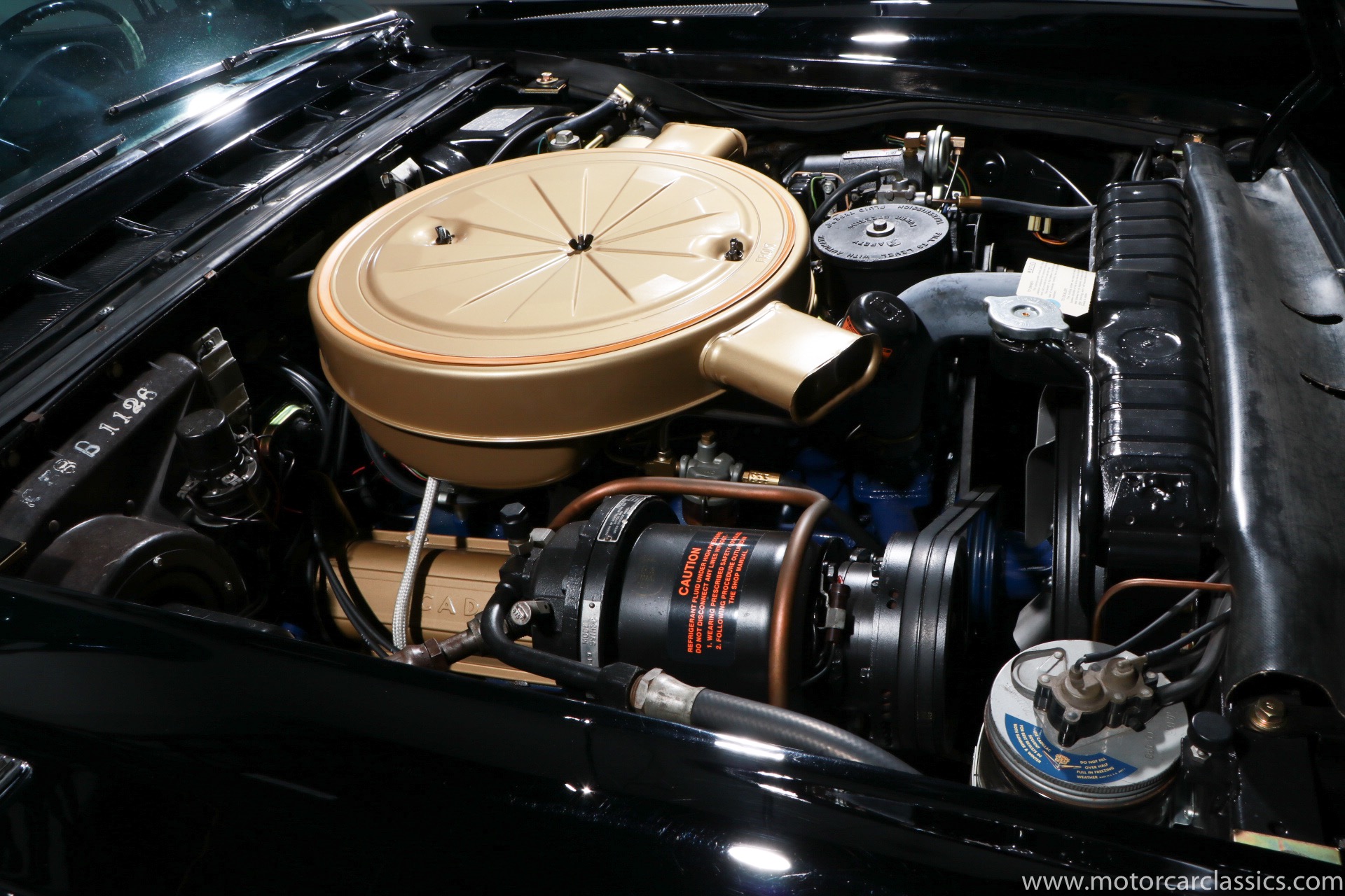 Although its early history is unknown, this Eldorado was once part of the famed John O'Quinn Collection. It is finished in Black over a white leather interior accented by black buttons, matching the original Cadillac build records from the GM Archives. It was restored in the late 1990s and the original air springs changed to conventional coil springs for reliability. Body contours and panel fit are very good, with the paint and brightwork free from flaws. The engine compartment is clean and appropriately detailed. The select items from the coveted vanity set include tumblers, acrylic cigarette case, perfume bottle, notepad, and vanity case. The car has been an important part of serious collections, and it is still capable of turning heads on prestigious concur lawns.