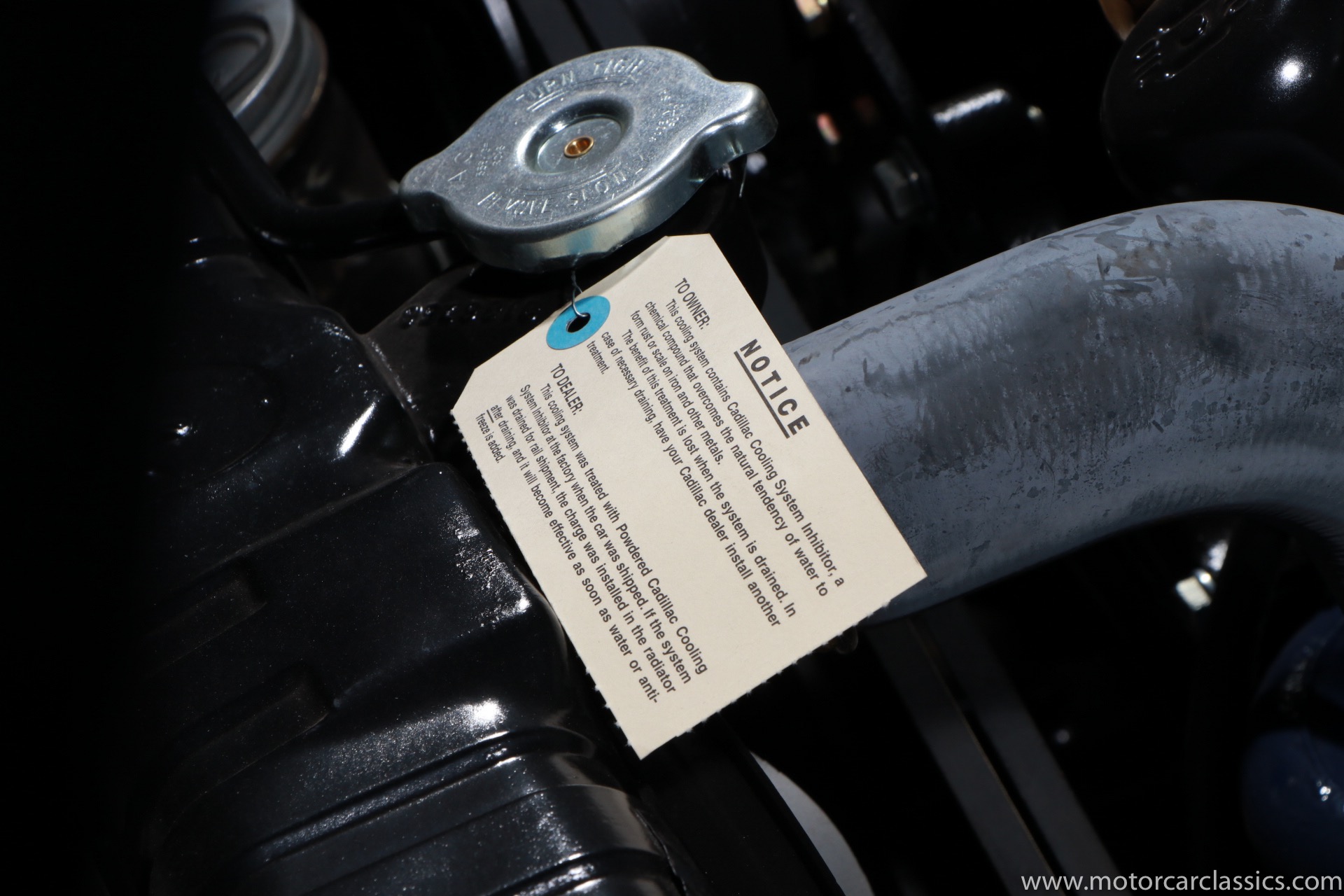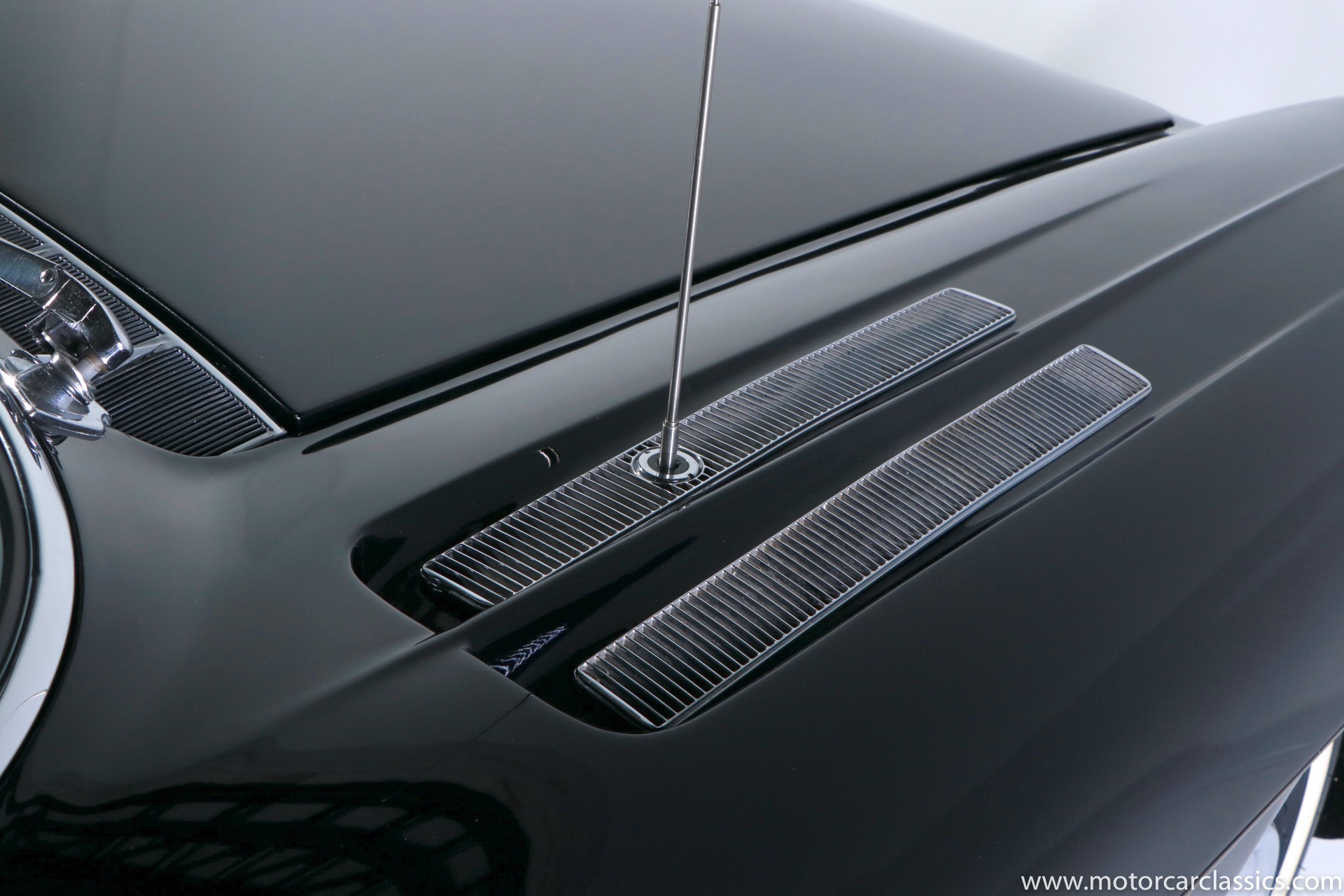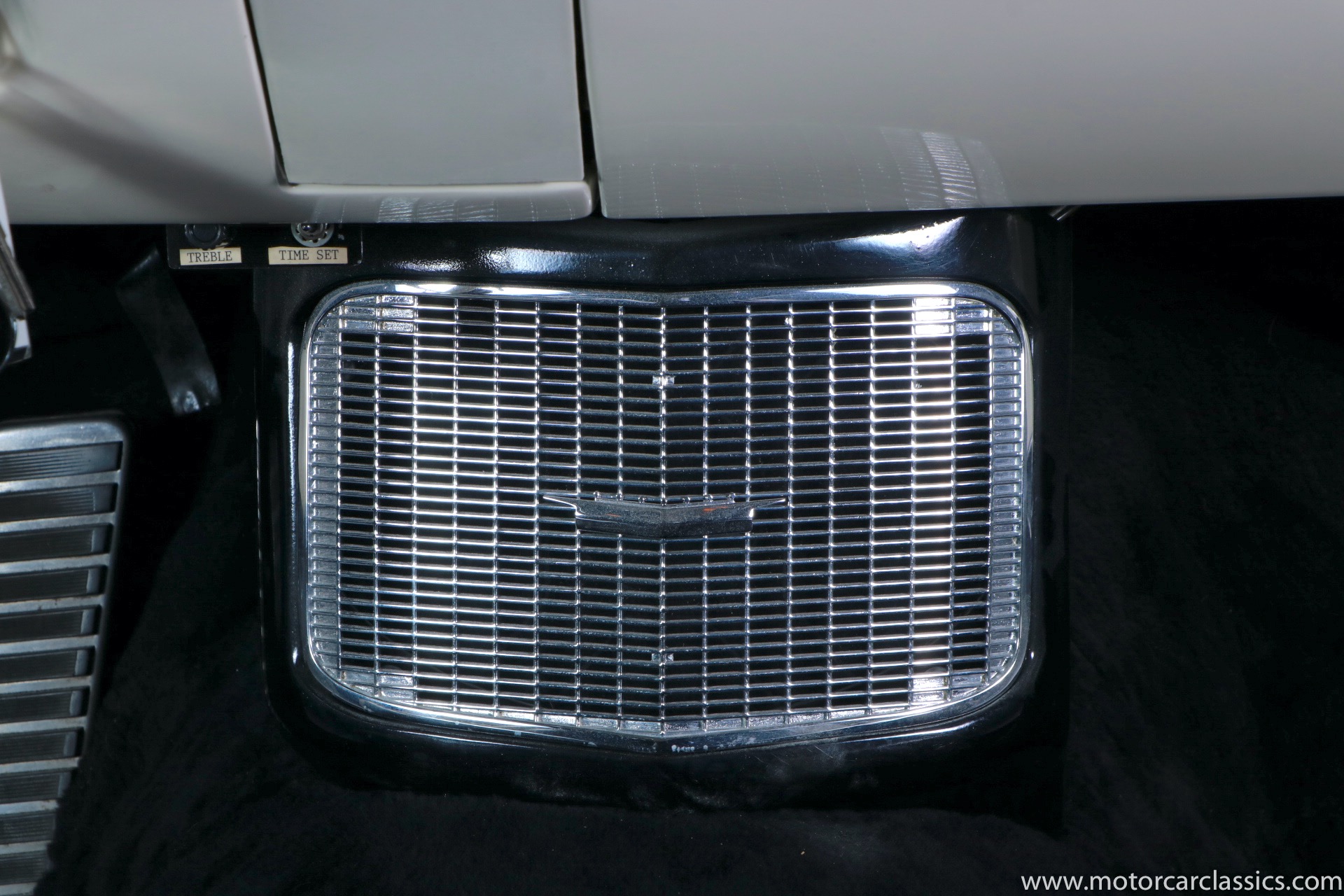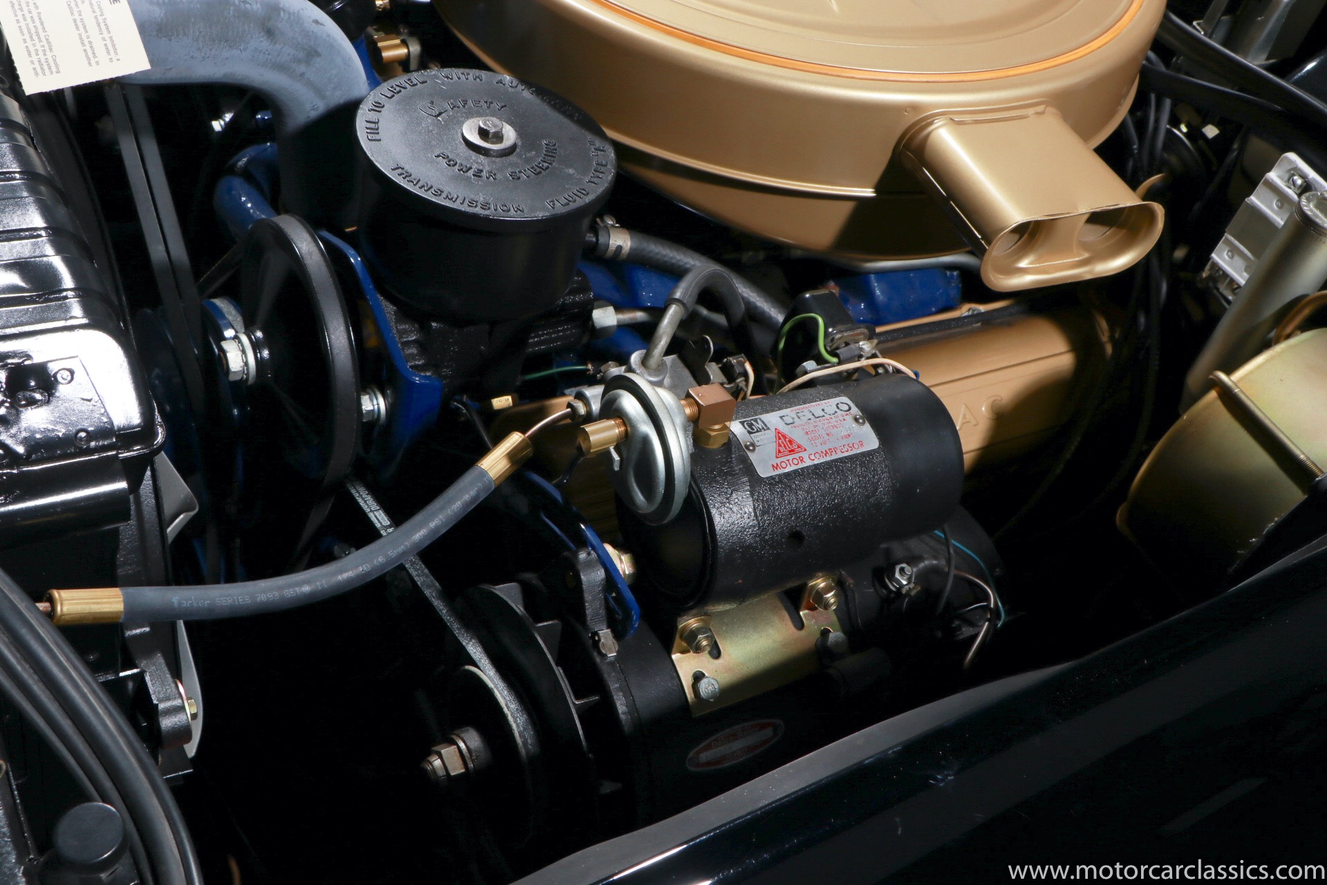 Although its early history is unknown, this Eldorado was once part of the famed John O'Quinn Collection. It is finished in Black over a white leather interior accented by black buttons, matching the original Cadillac build records from the GM Archives. It was restored in the late 1990s and the original air springs changed to conventional coil springs for reliability. Body contours and panel fit are very good, with the paint and brightwork free from flaws. The engine compartment is clean and appropriately detailed. The select items from the coveted vanity set include tumblers, acrylic cigarette case, perfume bottle, notepad, and vanity case. The car has been an important part of serious collections, and it is still capable of turning heads on prestigious concur lawns.