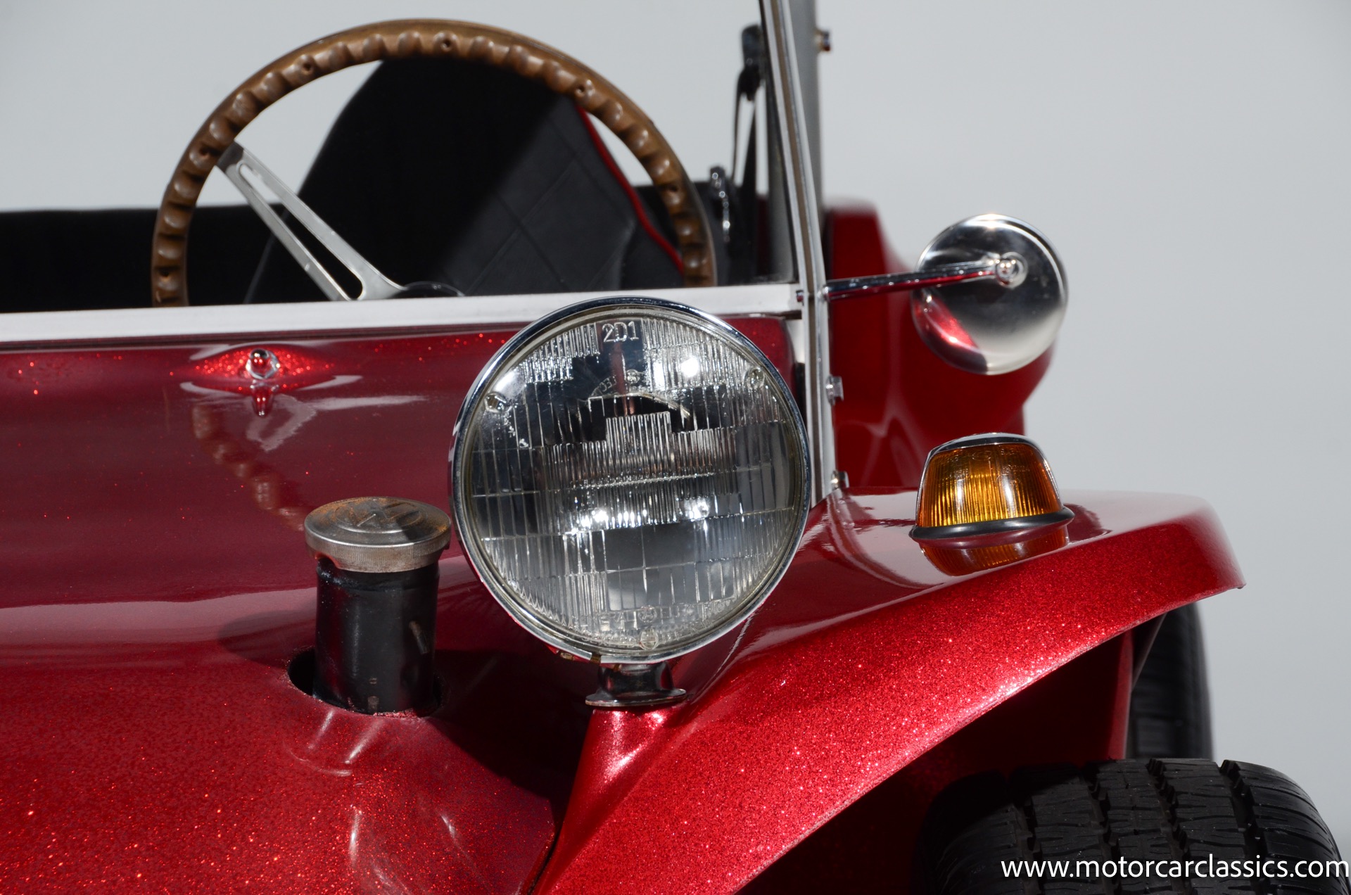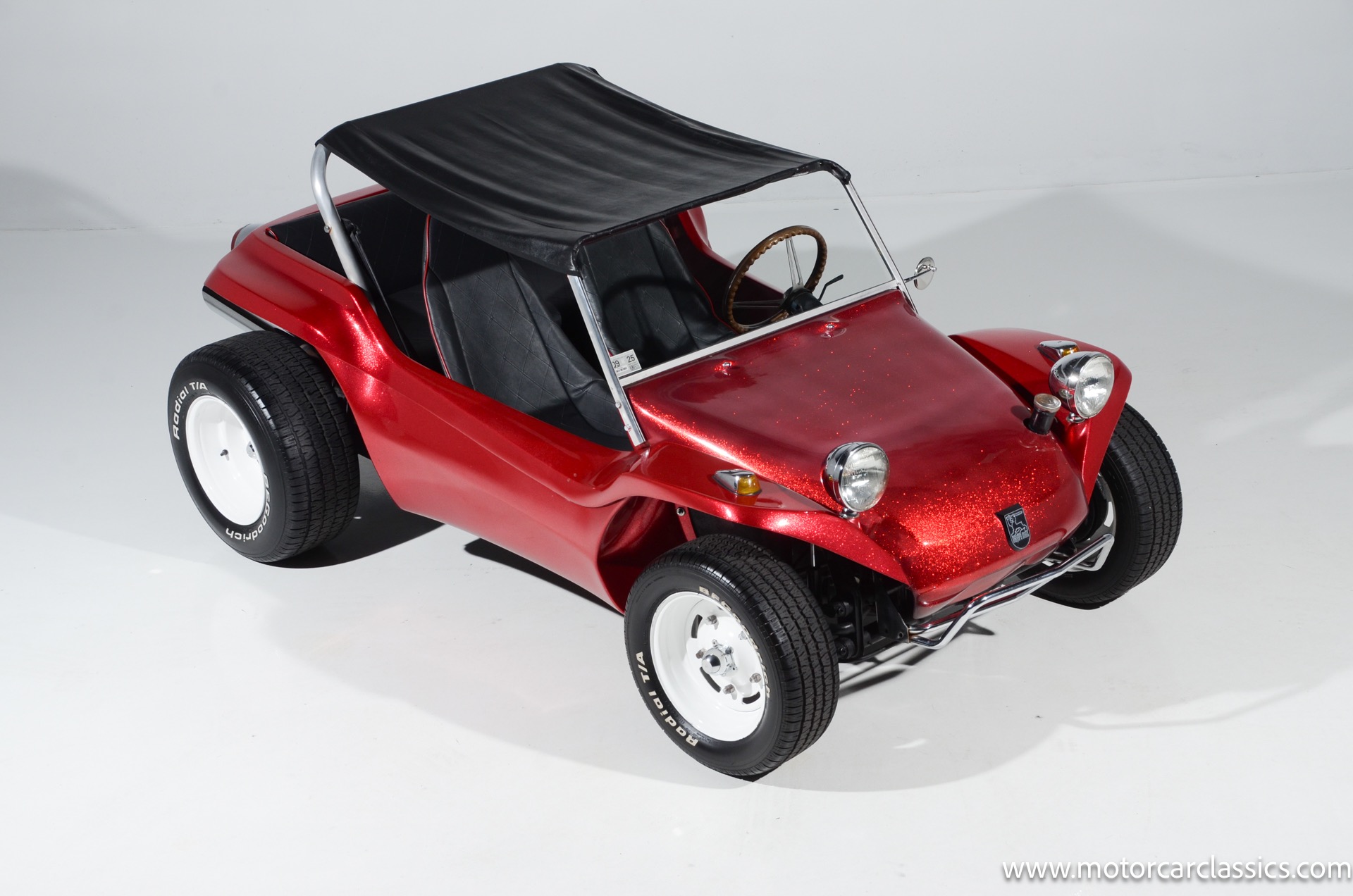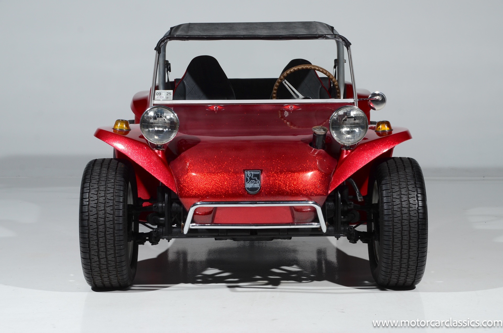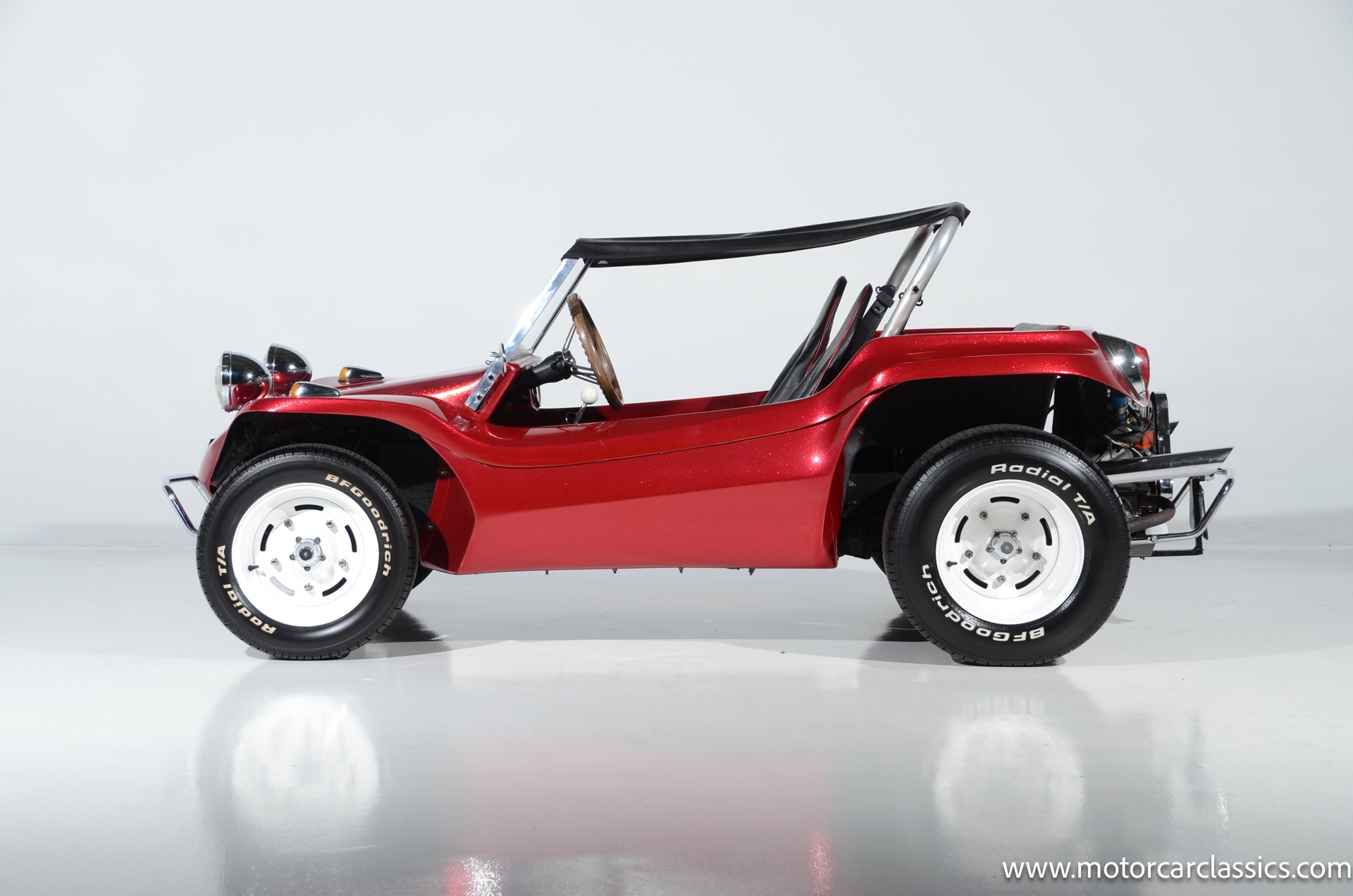 1959 Meyers Manx Dune Buggy for sale! Motorcar Classics is proud to present this genuine 1959 Meyers Manx Dune Buggy. Legendary Bruce Meyers started a legend and an industry when he introduced his Manx Dune Buggy. Our Manx has a Certificate of Authenticity from Bruce Meyers that this is #0088 of his production. This buggy was built circa 1970 on a shortened 1959 VW Type I floorpan and it has been upgraded with a 1,600 cc dual-port engine mated to a 4-speed manual gearbox. It has all the original tags and plates. The rare side pods give our Manx the classic dune buggy look with fully finished and enclosed sides. The car is finished in metal flake red with period-correct white steel rims, chrome headlamps, period-correct interior, surrey top, wood-rim steering wheel, engine dress-up kit, and bamboo floor mats. The car is reported to have had a light restoration in 2013 and it is in excellent condition to show and drive with pride. These genuine Meyers Manx buggies are very collectible, a parade of them opened the track with a parade this year each day of the Goodwood Revival. This is a very groovy and investment-grade Manx that is more fun that you can imagine!
