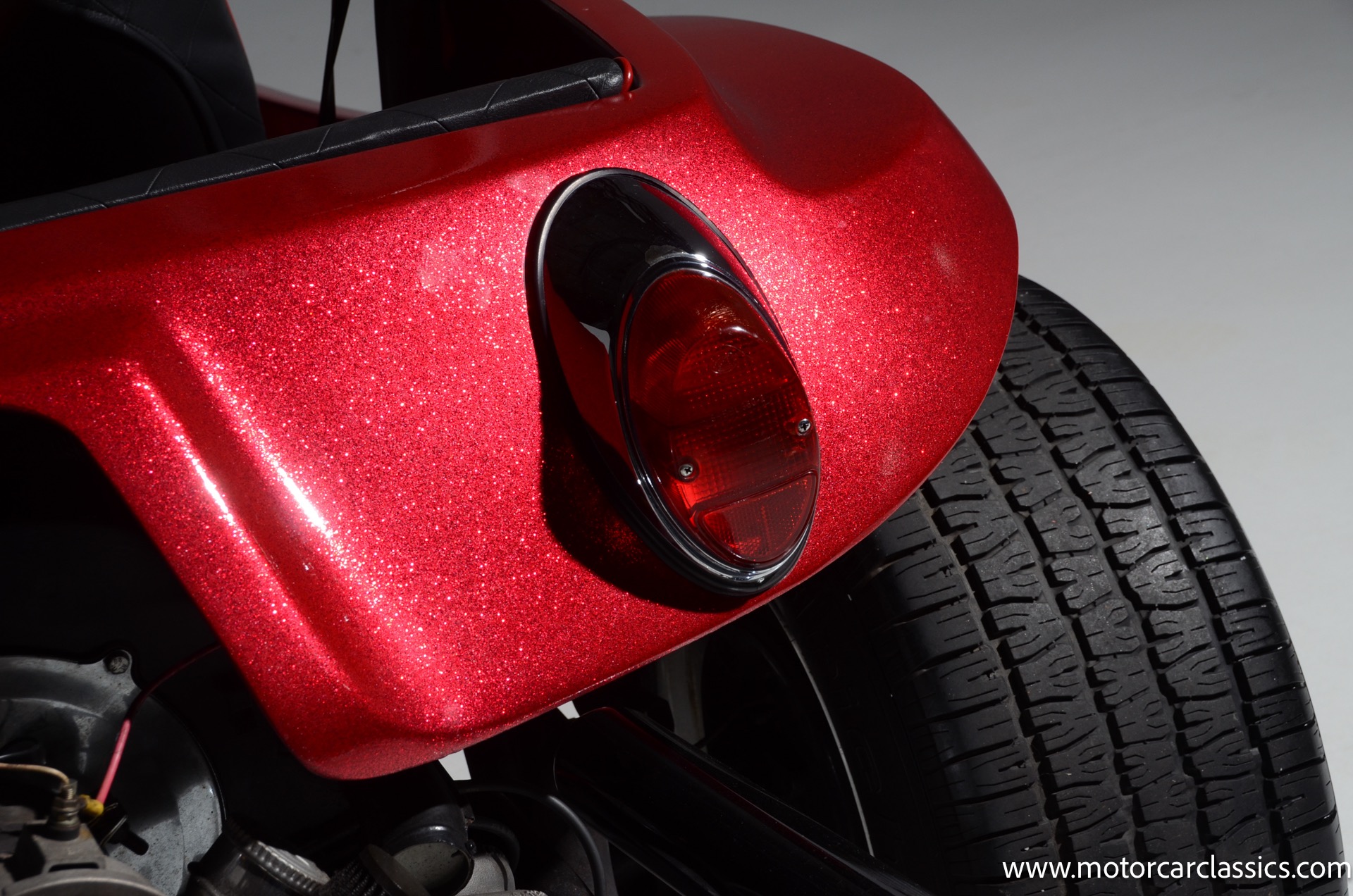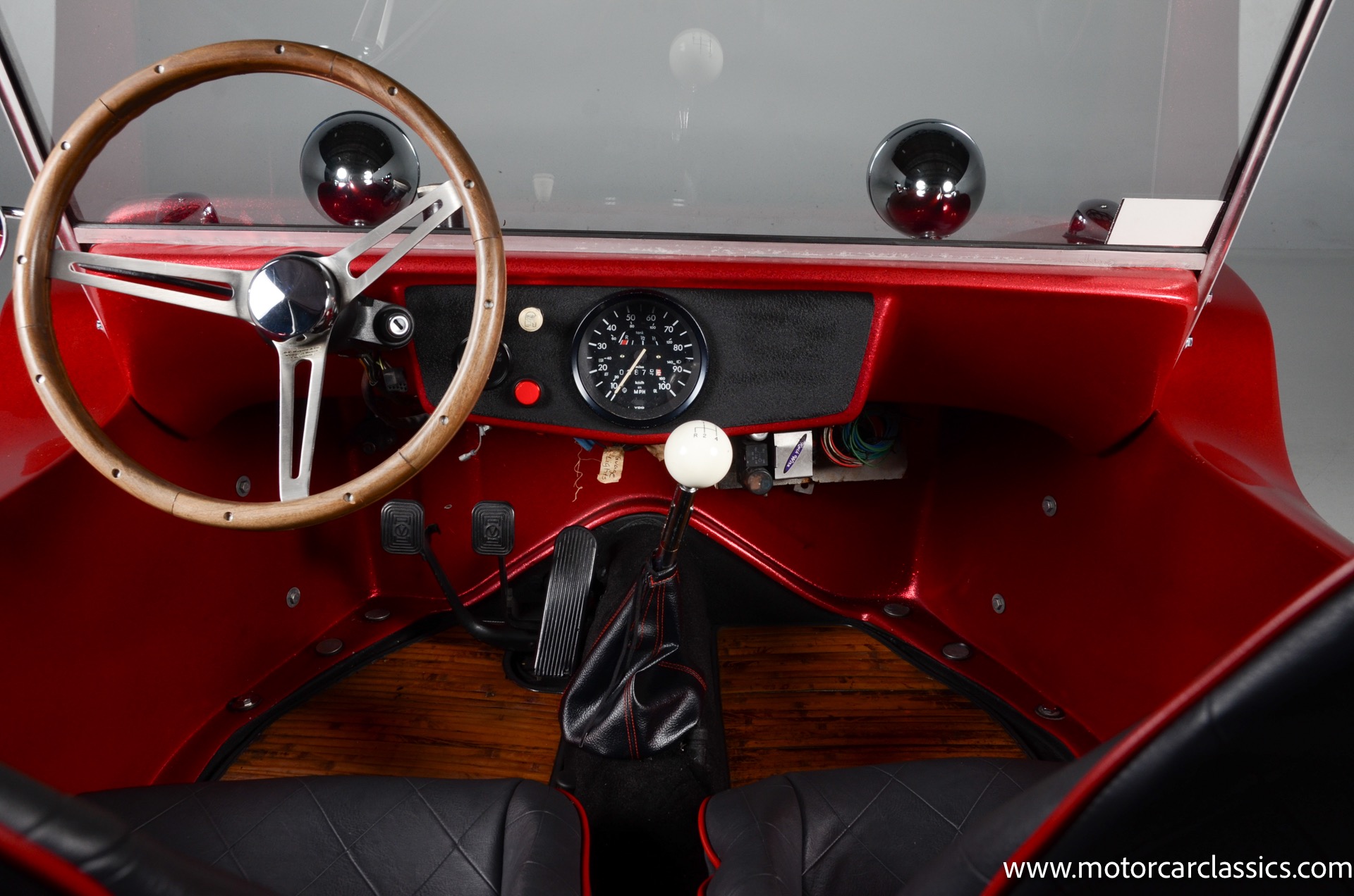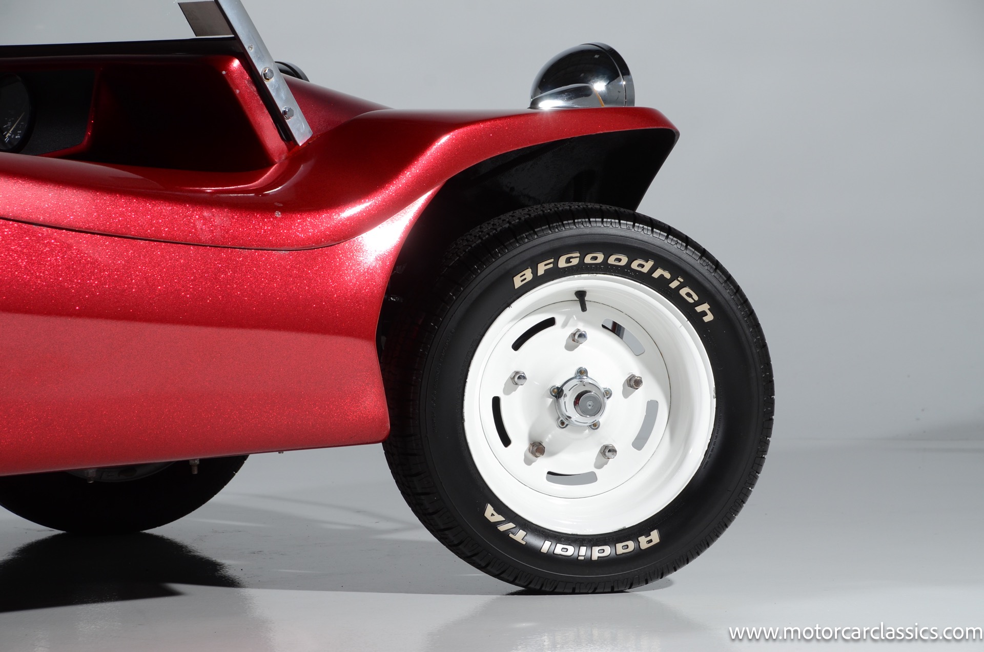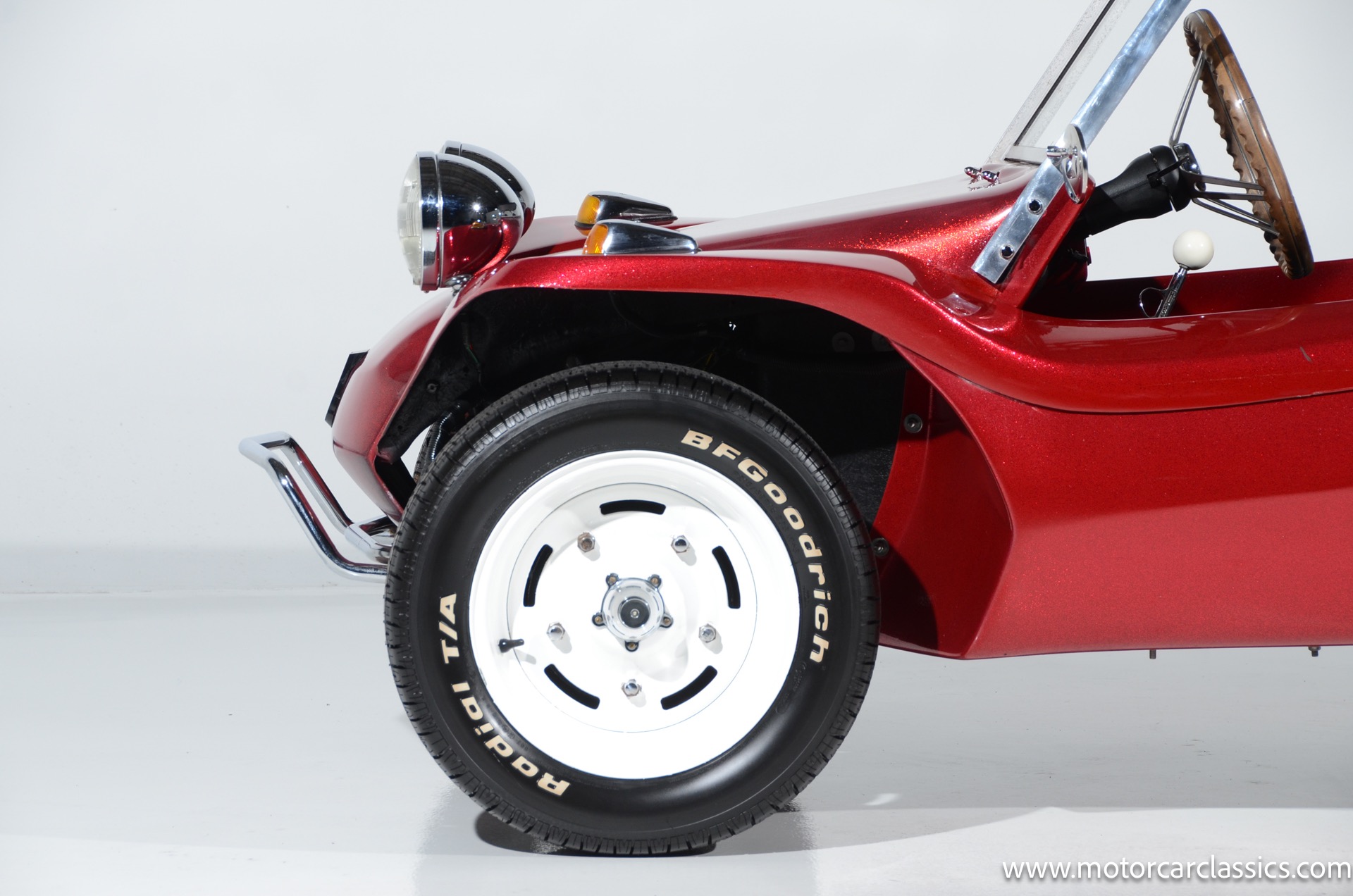 1959 Meyers Manx Dune Buggy for sale! Motorcar Classics is proud to present this genuine 1959 Meyers Manx Dune Buggy. Legendary Bruce Meyers started a legend and an industry when he introduced his Manx Dune Buggy. Our Manx has a Certificate of Authenticity from Bruce Meyers that this is #0088 of his production. This buggy was built circa 1970 on a shortened 1959 VW Type I floorpan and it has been upgraded with a 1,600 cc dual-port engine mated to a 4-speed manual gearbox. It has all the original tags and plates. The rare side pods give our Manx the classic dune buggy look with fully finished and enclosed sides. The car is finished in metal flake red with period-correct white steel rims, chrome headlamps, period-correct interior, surrey top, wood-rim steering wheel, engine dress-up kit, and bamboo floor mats. The car is reported to have had a light restoration in 2013 and it is in excellent condition to show and drive with pride. These genuine Meyers Manx buggies are very collectible, a parade of them opened the track with a parade this year each day of the Goodwood Revival. This is a very groovy and investment-grade Manx that is more fun that you can imagine!