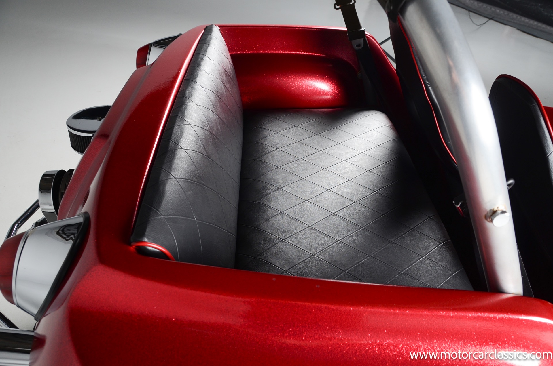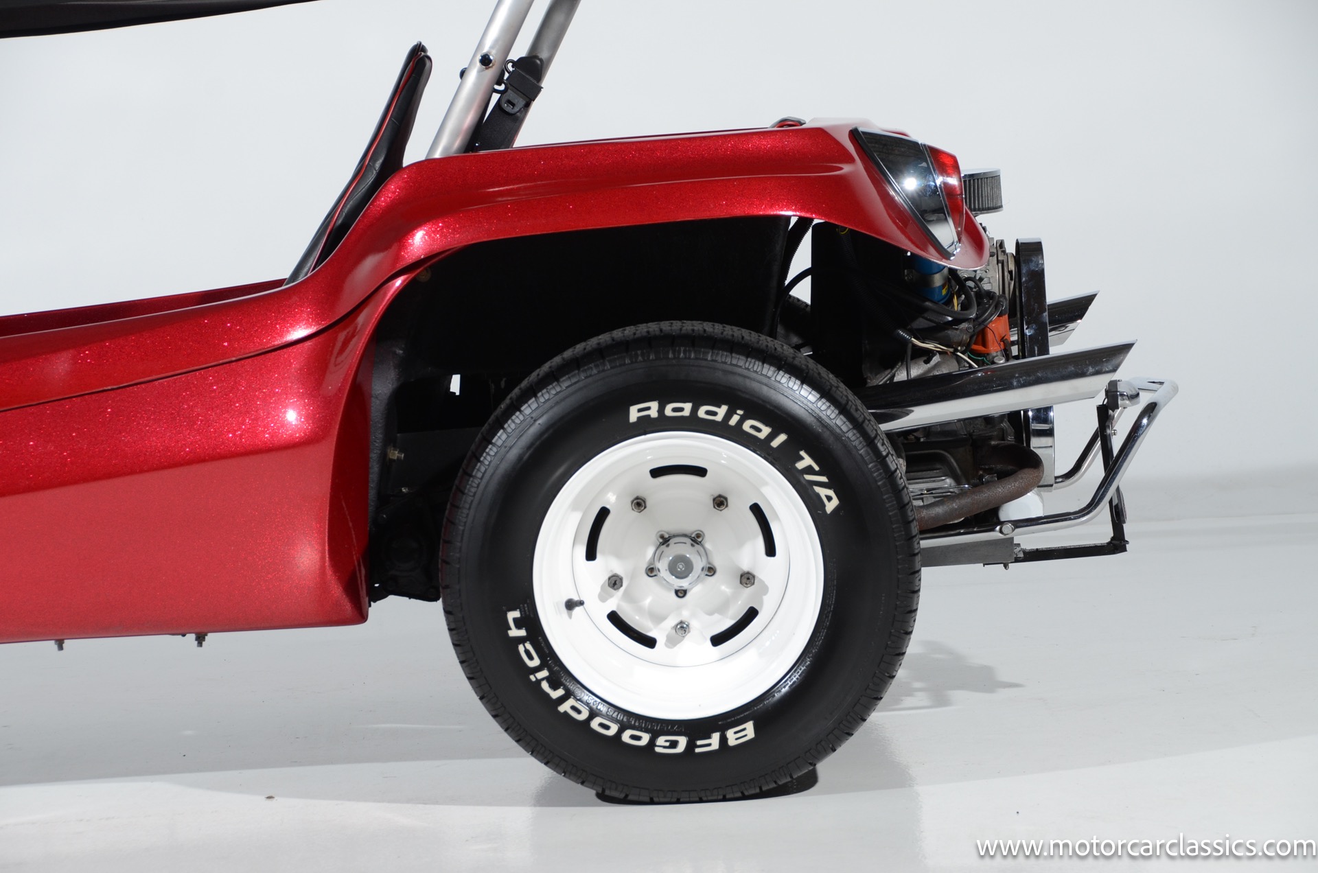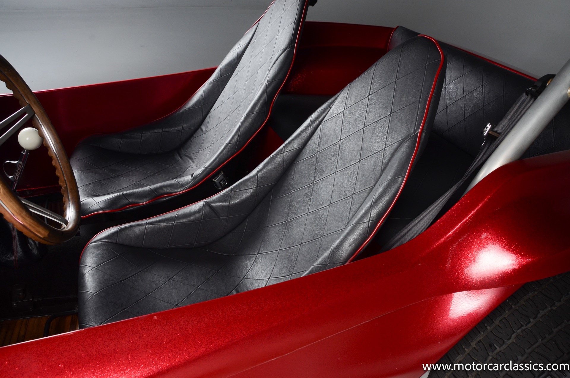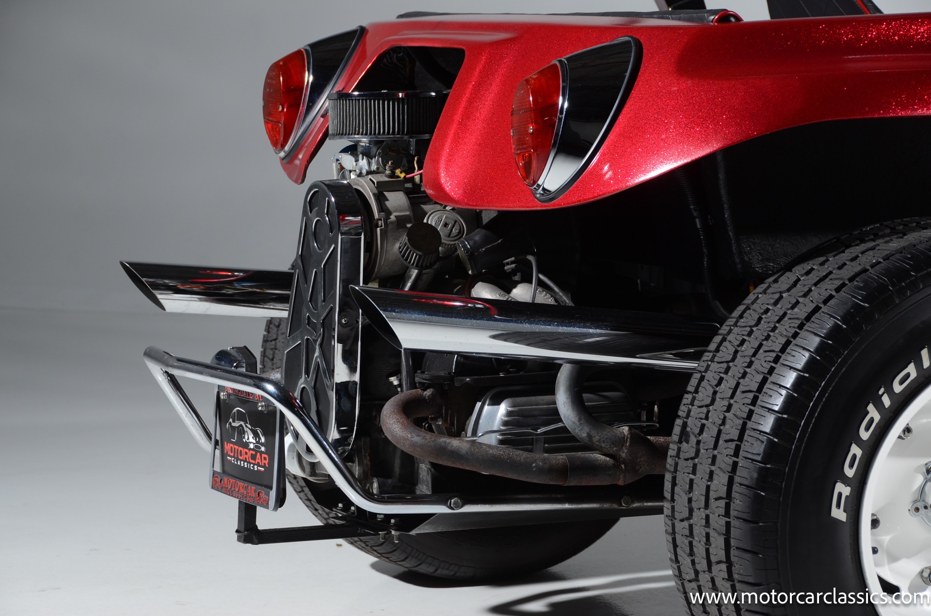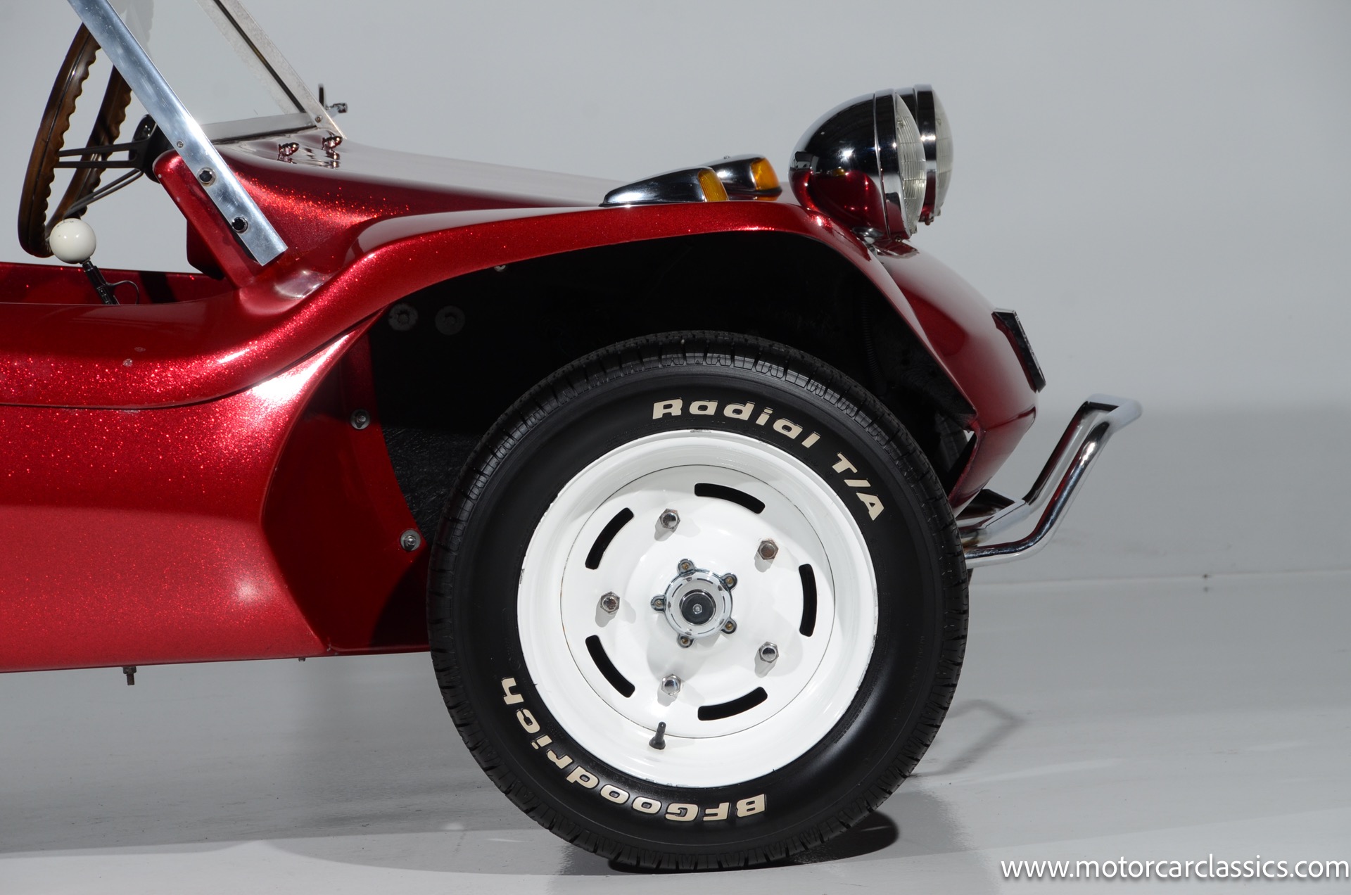 1959 Meyers Manx Dune Buggy for sale! Motorcar Classics is proud to present this genuine 1959 Meyers Manx Dune Buggy. Legendary Bruce Meyers started a legend and an industry when he introduced his Manx Dune Buggy. Our Manx has a Certificate of Authenticity from Bruce Meyers that this is #0088 of his production. This buggy was built circa 1970 on a shortened 1959 VW Type I floorpan and it has been upgraded with a 1,600 cc dual-port engine mated to a 4-speed manual gearbox. It has all the original tags and plates. The rare side pods give our Manx the classic dune buggy look with fully finished and enclosed sides. The car is finished in metal flake red with period-correct white steel rims, chrome headlamps, period-correct interior, surrey top, wood-rim steering wheel, engine dress-up kit, and bamboo floor mats. The car is reported to have had a light restoration in 2013 and it is in excellent condition to show and drive with pride. These genuine Meyers Manx buggies are very collectible, a parade of them opened the track with a parade this year each day of the Goodwood Revival. This is a very groovy and investment-grade Manx that is more fun that you can imagine!