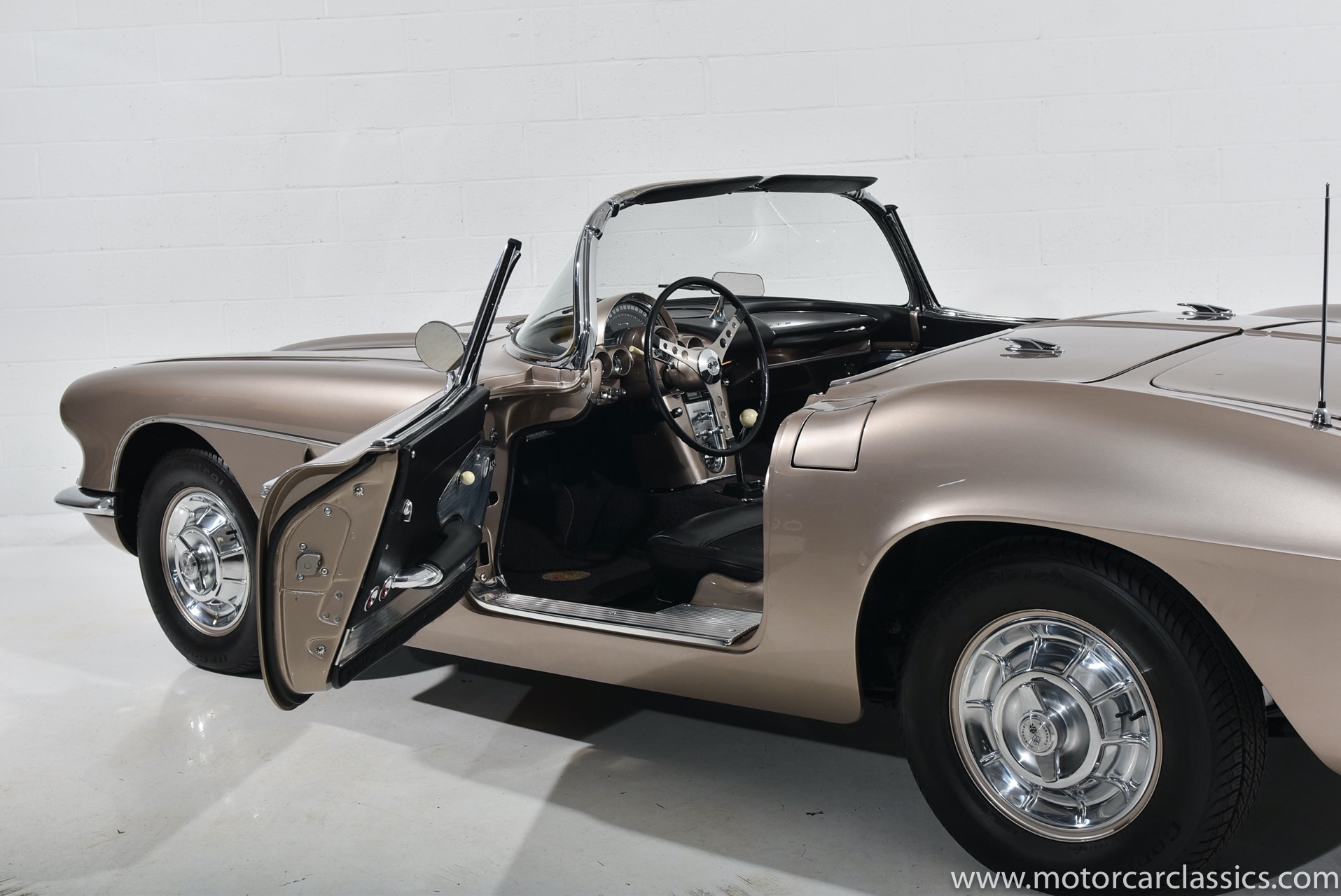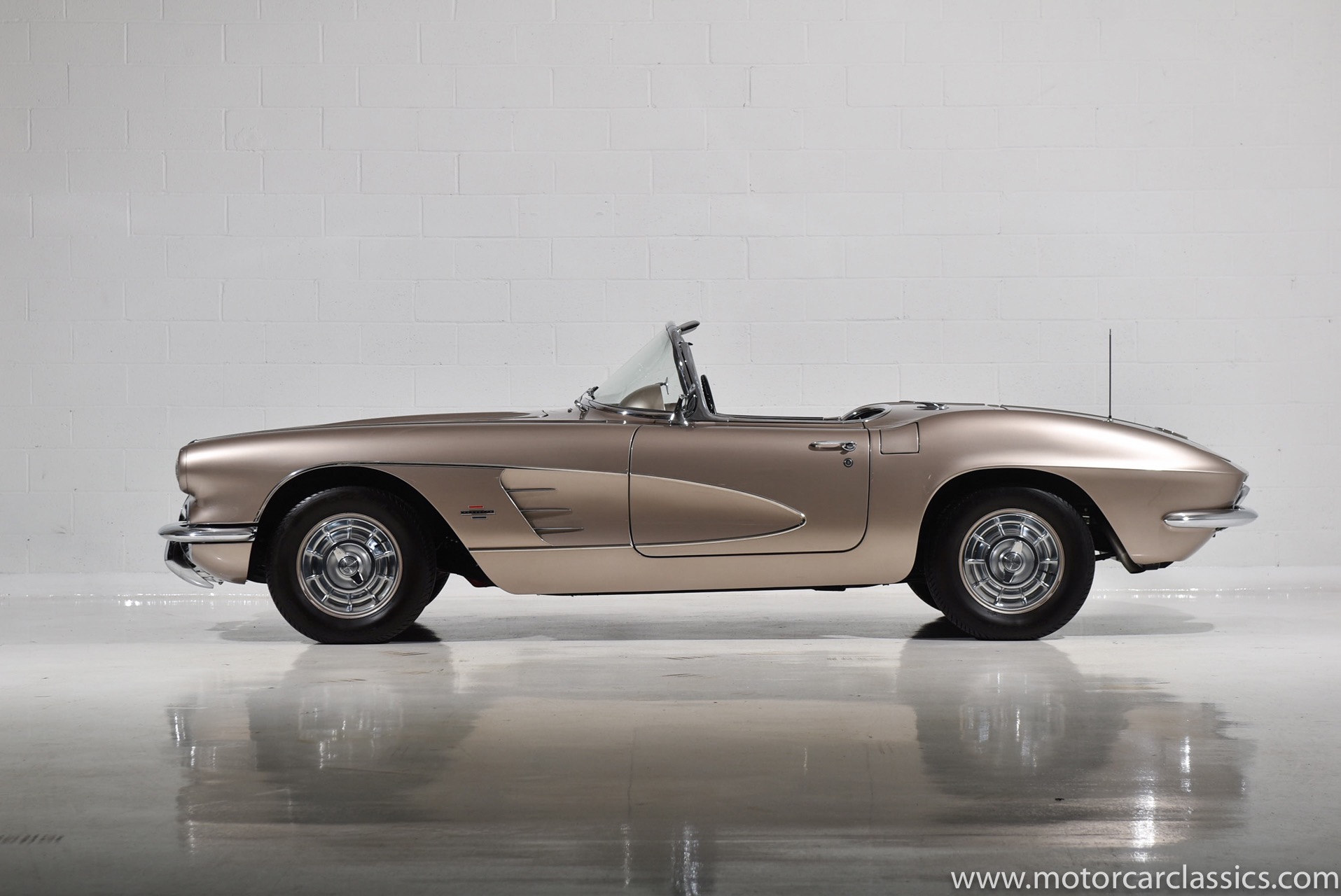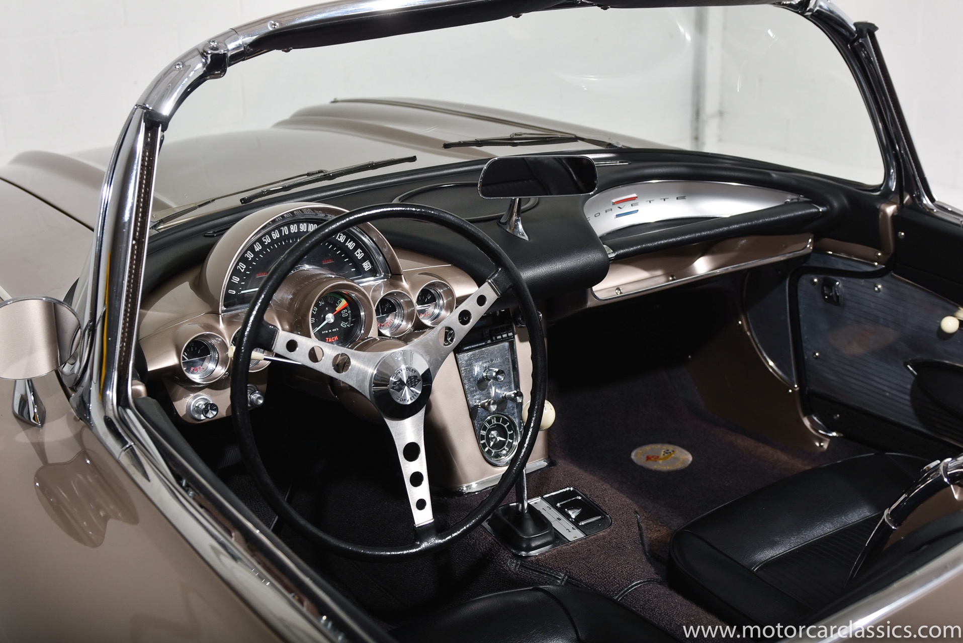 Motorcar Classics is pleased to present this 1961 Corvette featured in Fawn Beige with Black interior and Black convertible top. It is powered by Chevrolet's 283CI V8 with single 4 barrel carburetor rated at 230HP and has the options of 4-speed manual gearbox and power windows. This late C1 Corvette survives in largely original, unmodified condition and is a nice driver.