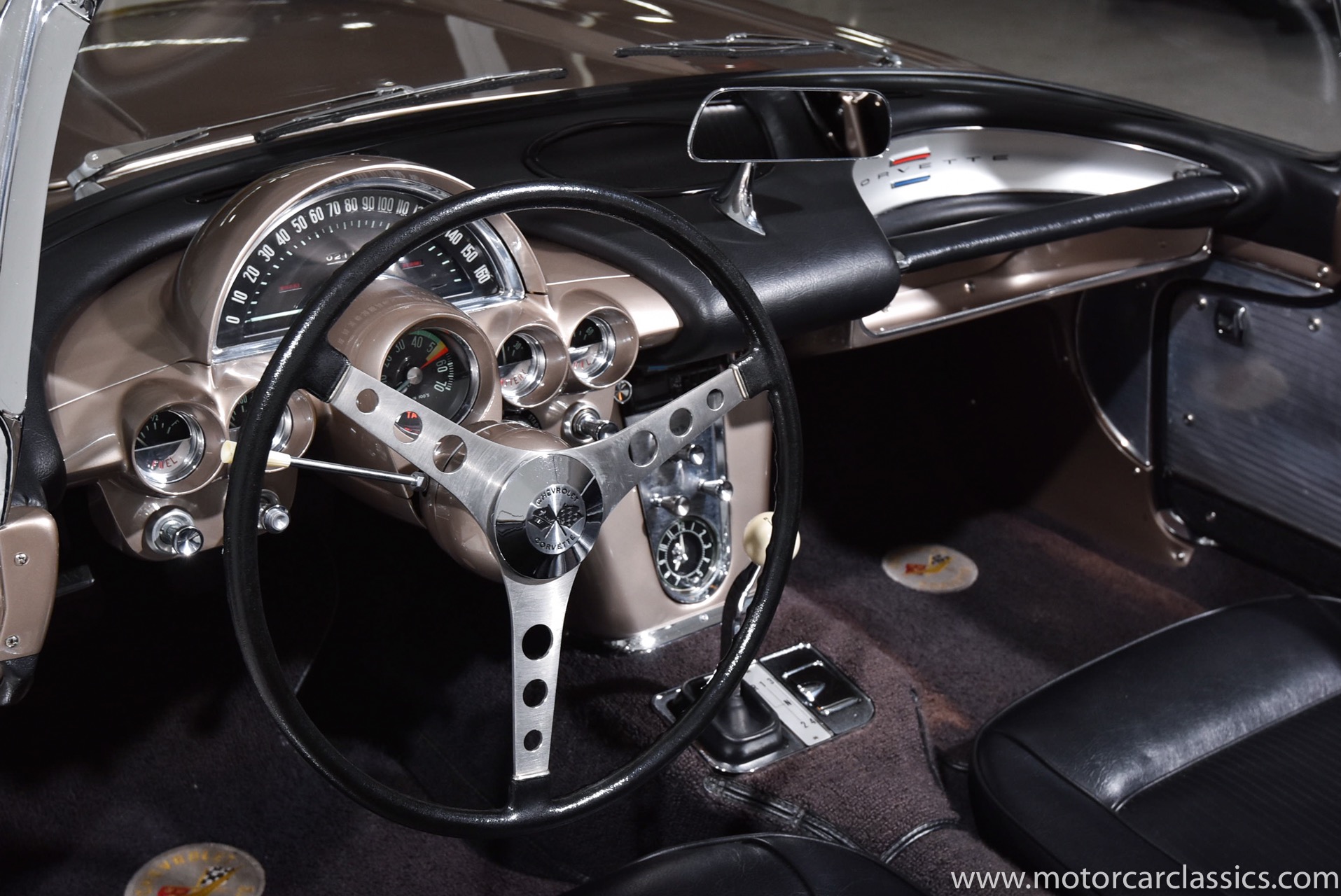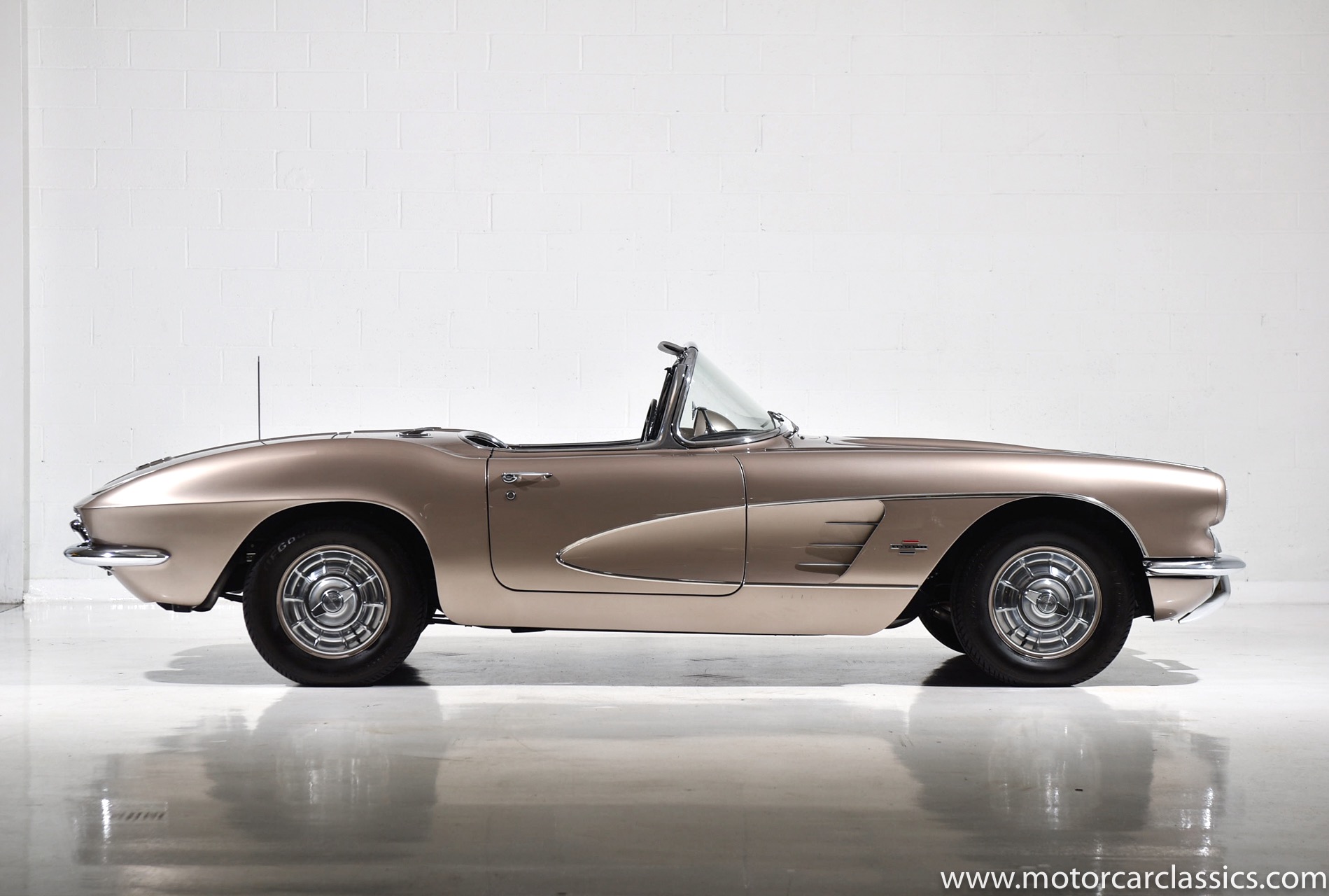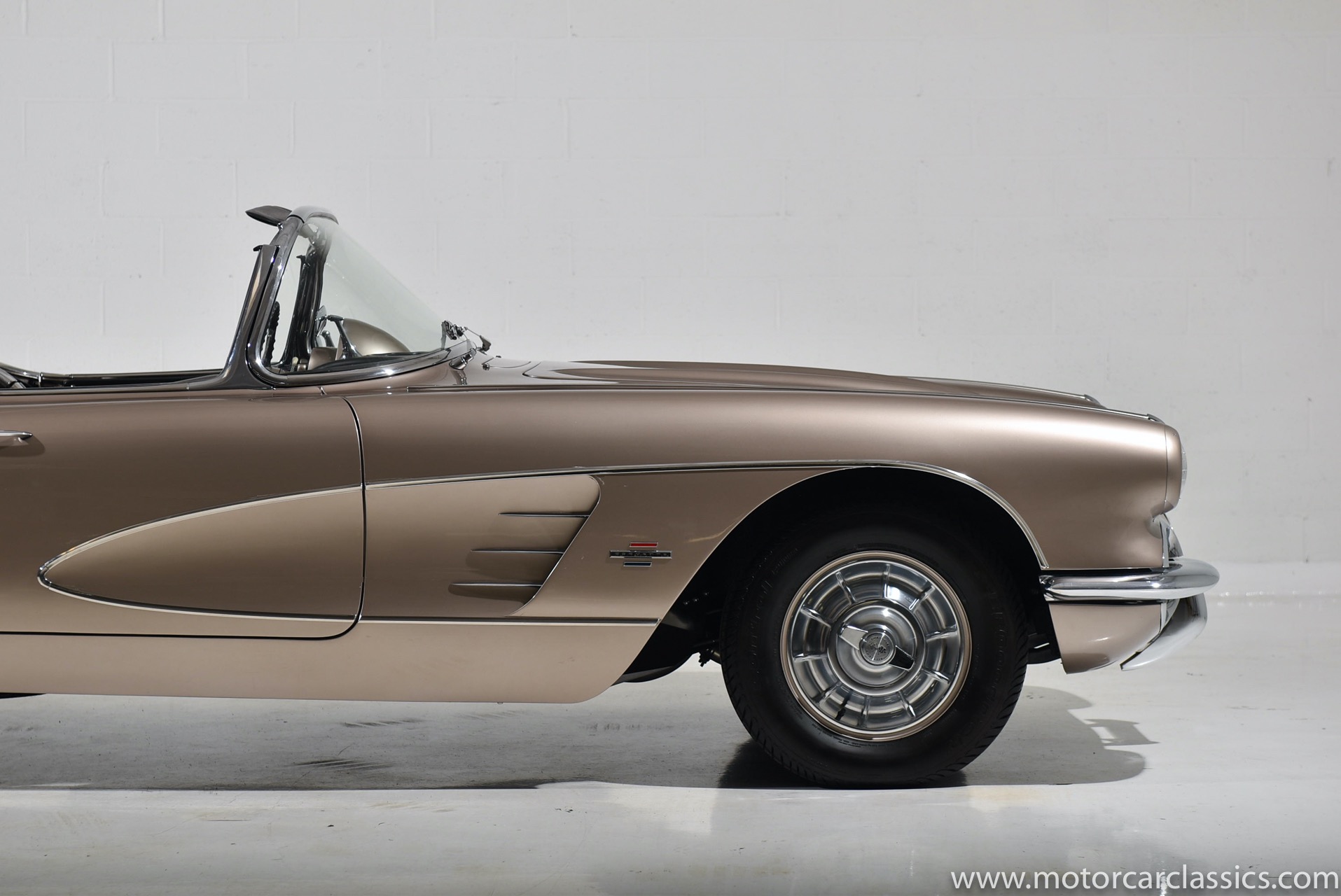 Motorcar Classics is pleased to present this 1961 Corvette featured in Fawn Beige with Black interior and Black convertible top. It is powered by Chevrolet's 283CI V8 with single 4 barrel carburetor rated at 230HP and has the options of 4-speed manual gearbox and power windows. This late C1 Corvette survives in largely original, unmodified condition and is a nice driver.