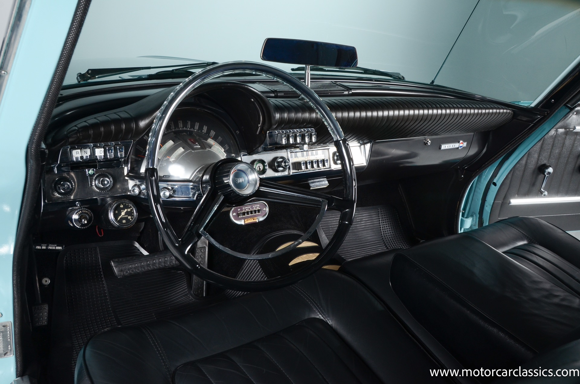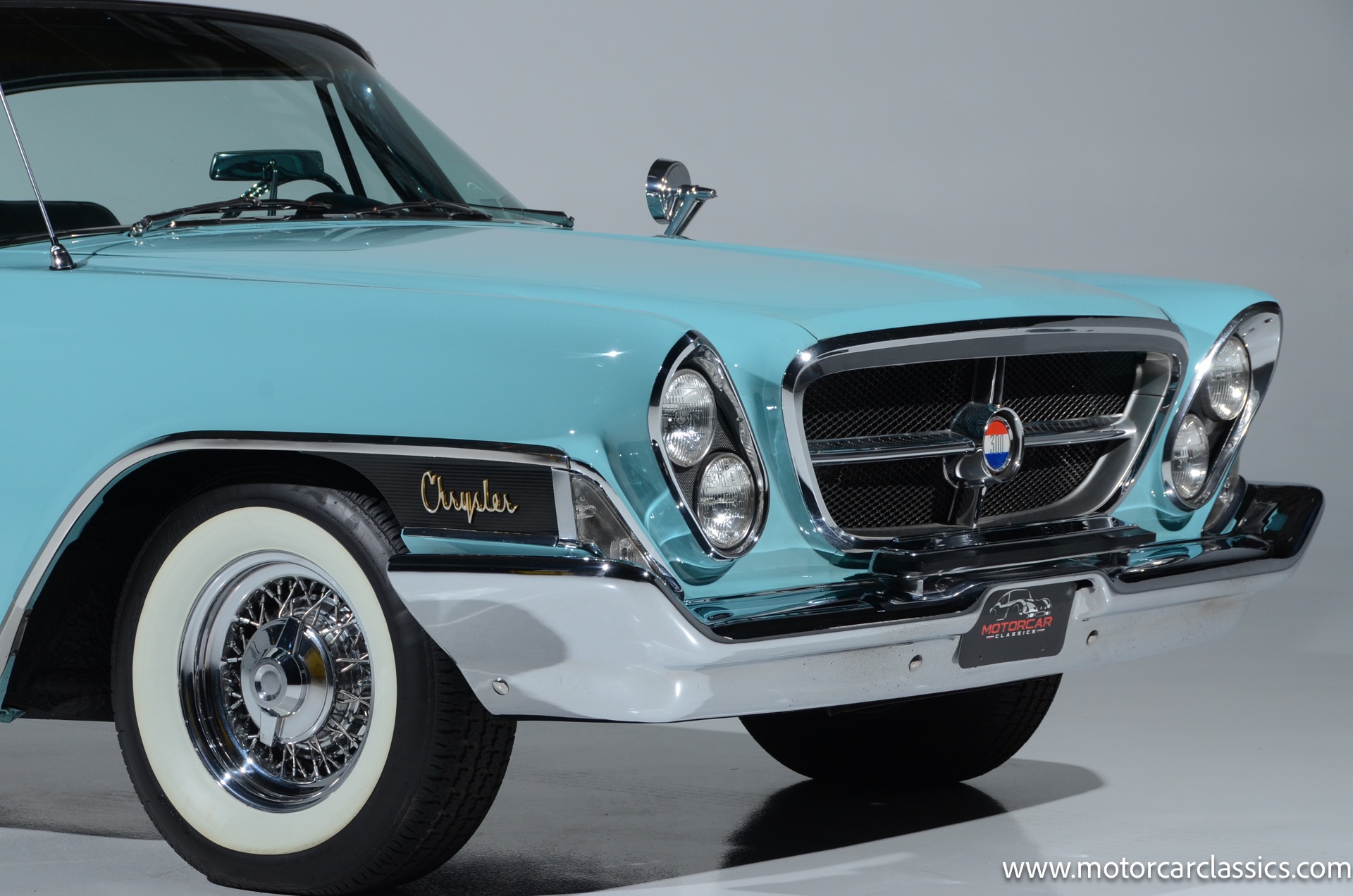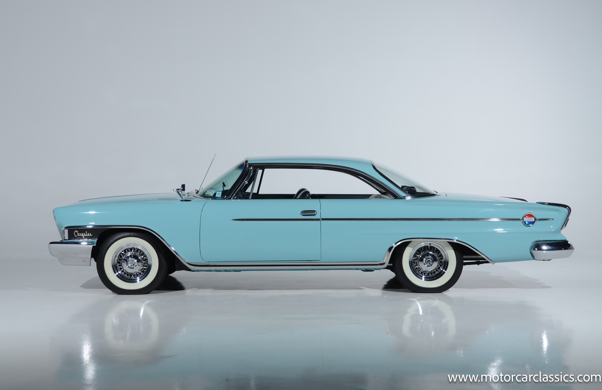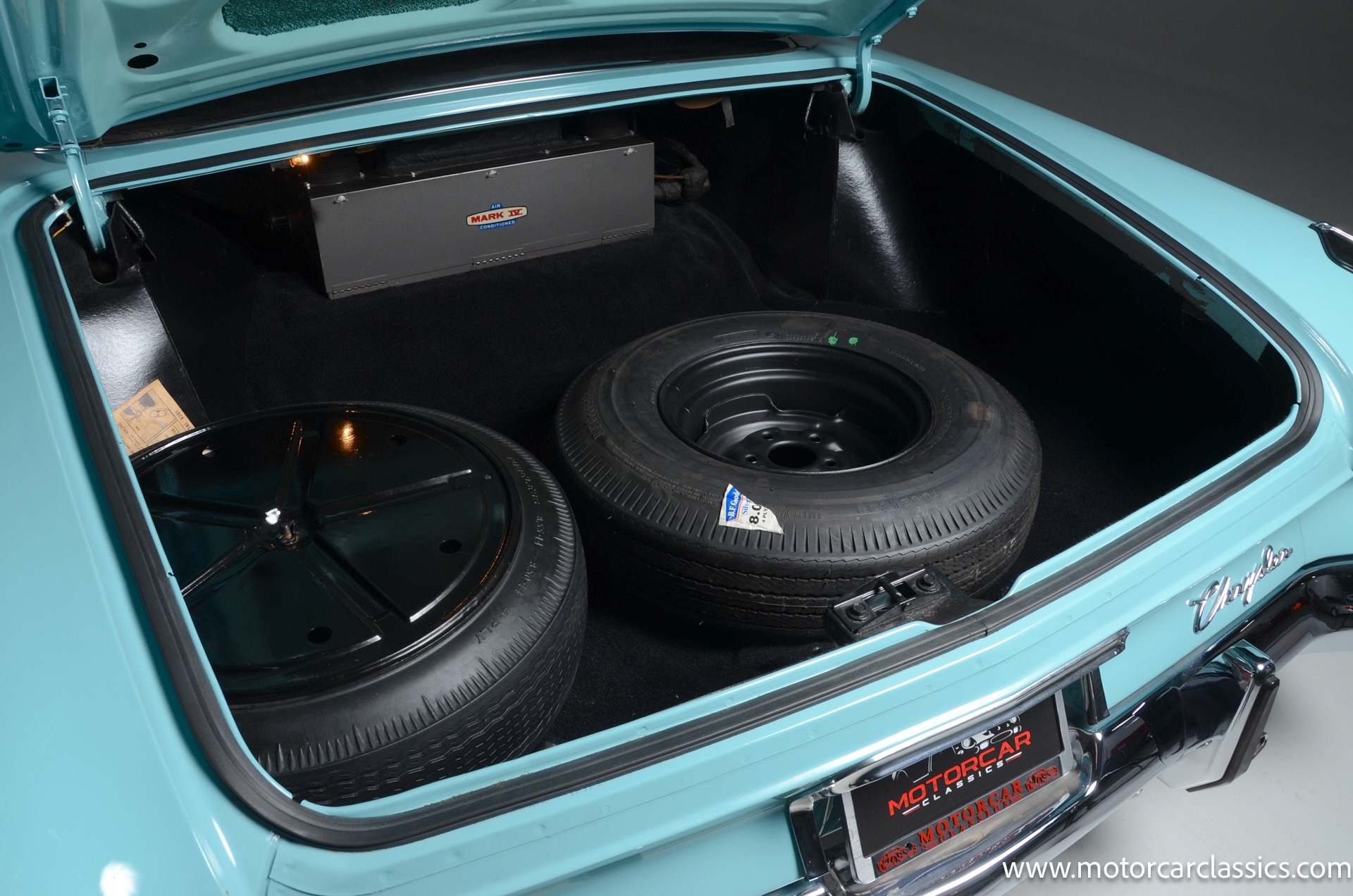 Our car is featured in Bermuda Turquoise with a black interior. It rides on genuine chrome wire wheels fitted with period-appropriate wide whitewall tires. It has a period Mark IV air-conditioning system which blows cold. The car benefits from a body-off nut & bolt restoration that still presents in concours condition. Everything works. The car is well-sorted and it is a delight on the road. This Chrysler will attract attention and be a contender for awards wherever you show it.