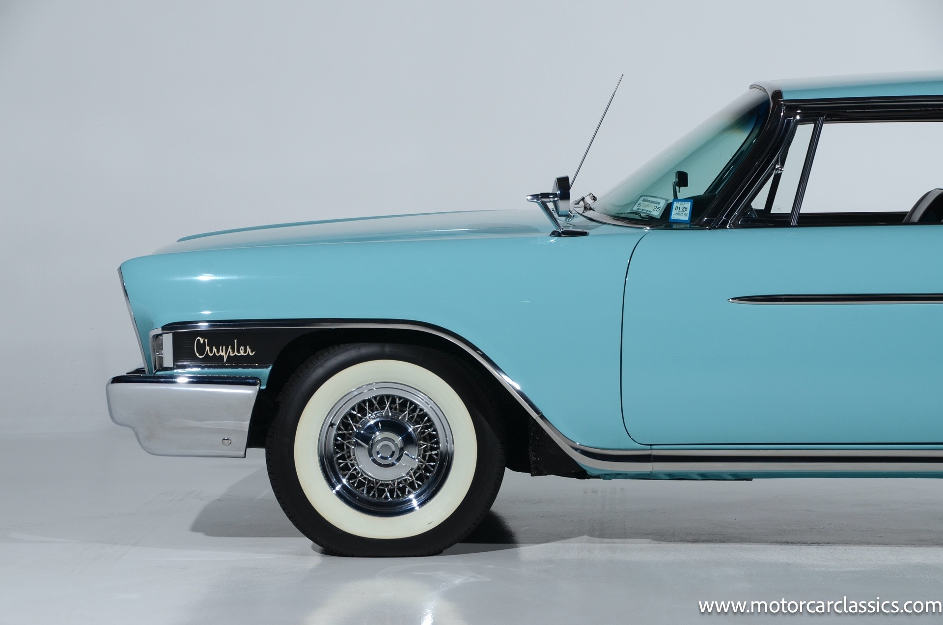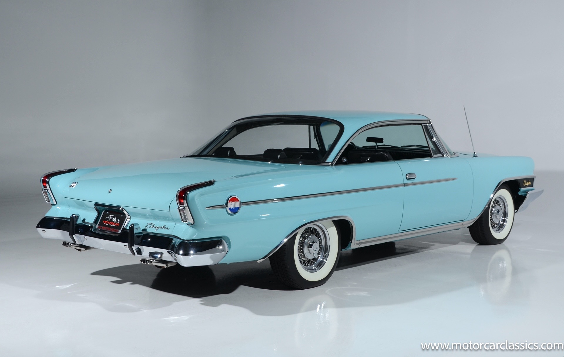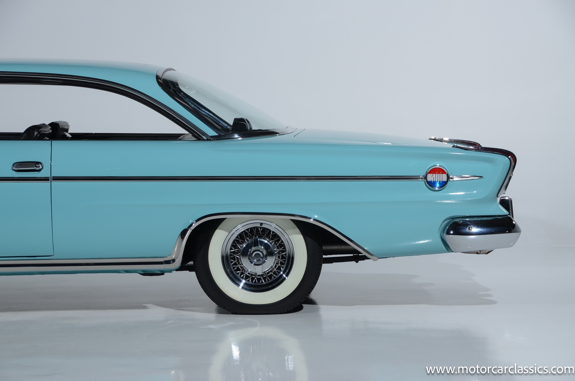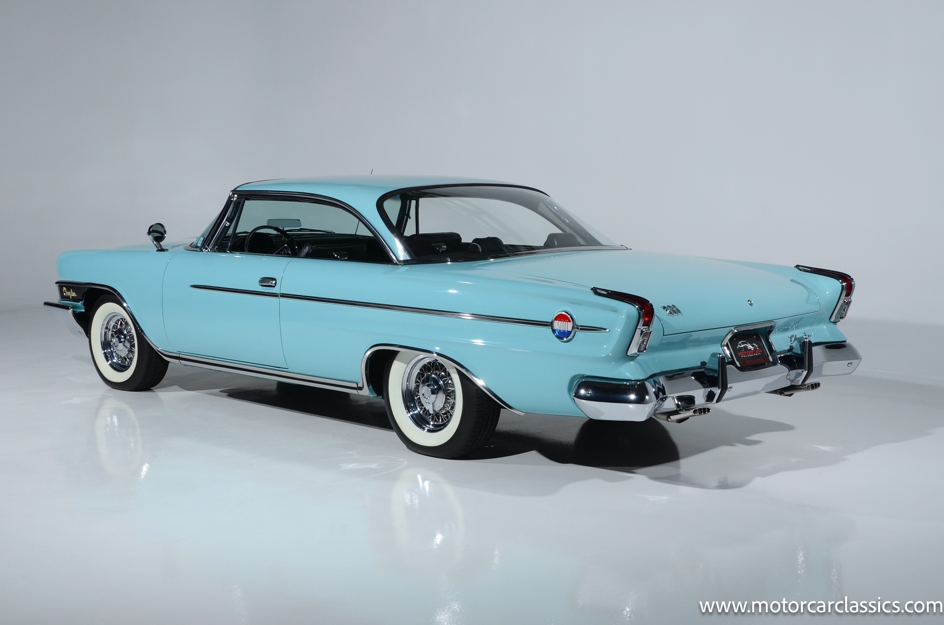 Our car is featured in Bermuda Turquoise with a black interior. It rides on genuine chrome wire wheels fitted with period-appropriate wide whitewall tires. It has a period Mark IV air-conditioning system which blows cold. The car benefits from a body-off nut & bolt restoration that still presents in concours condition. Everything works. The car is well-sorted and it is a delight on the road. This Chrysler will attract attention and be a contender for awards wherever you show it.