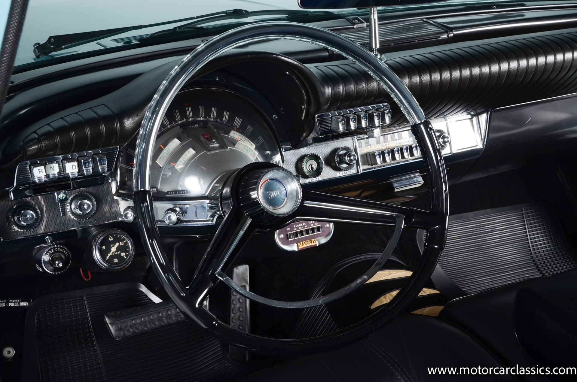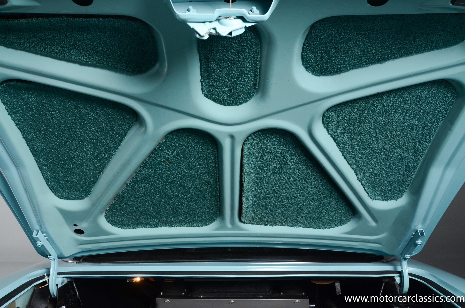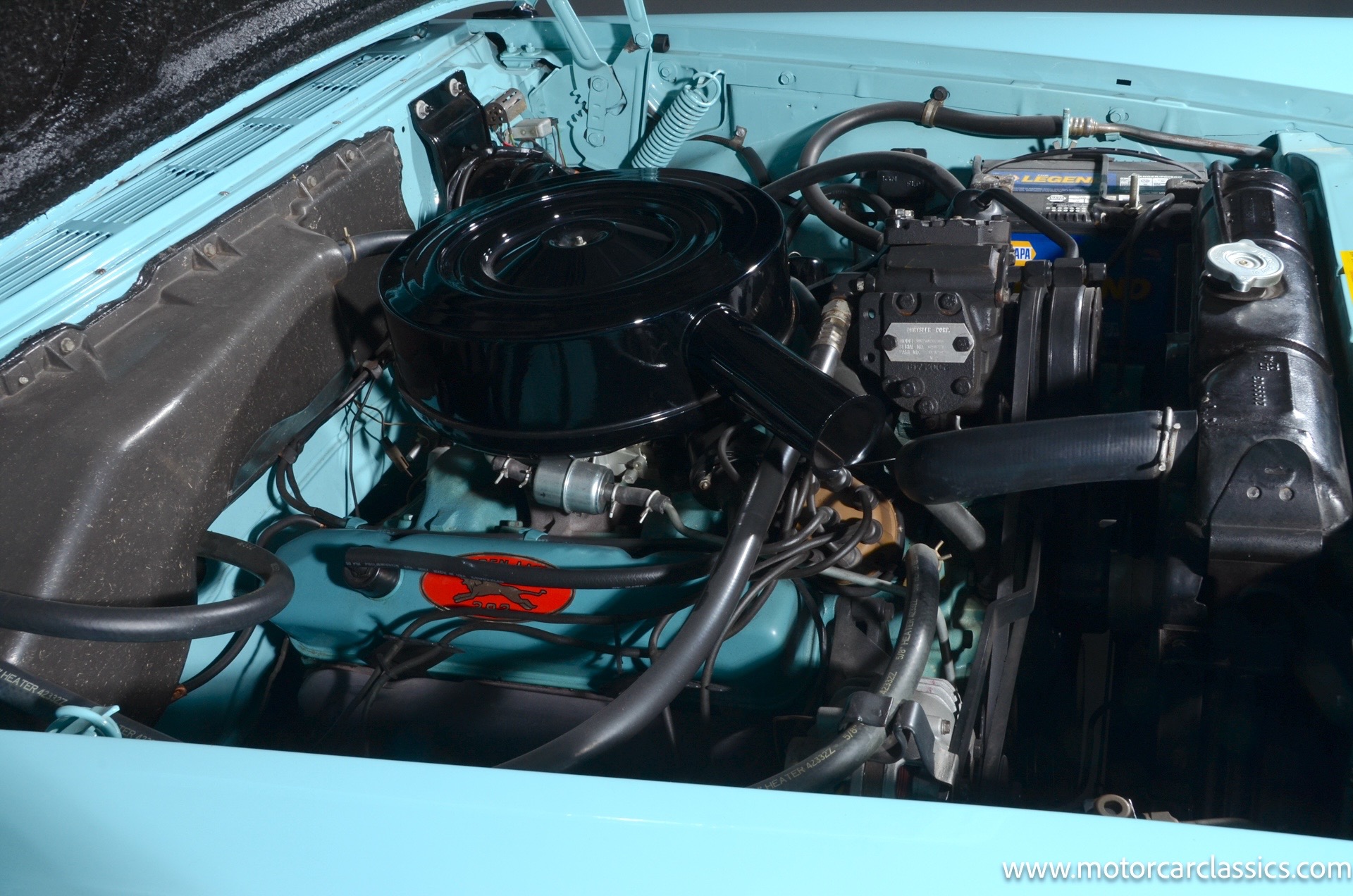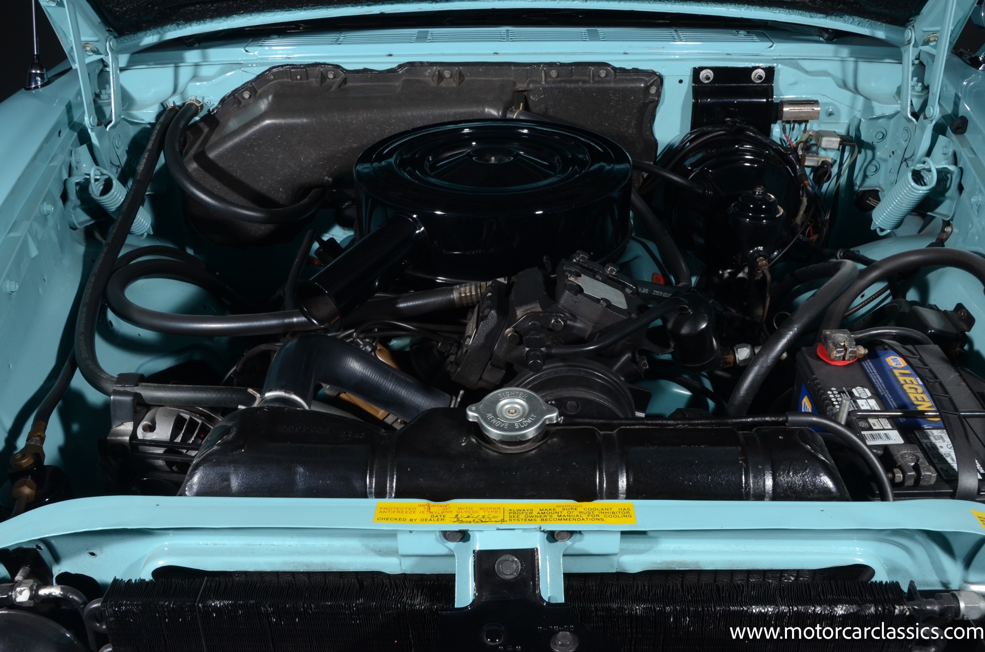Our car is featured in Bermuda Turquoise with a black interior. It rides on genuine chrome wire wheels fitted with period-appropriate wide whitewall tires. It has a period Mark IV air-conditioning system which blows cold. The car benefits from a body-off nut & bolt restoration that still presents in concours condition. Everything works. The car is well-sorted and it is a delight on the road. This Chrysler will attract attention and be a contender for awards wherever you show it.