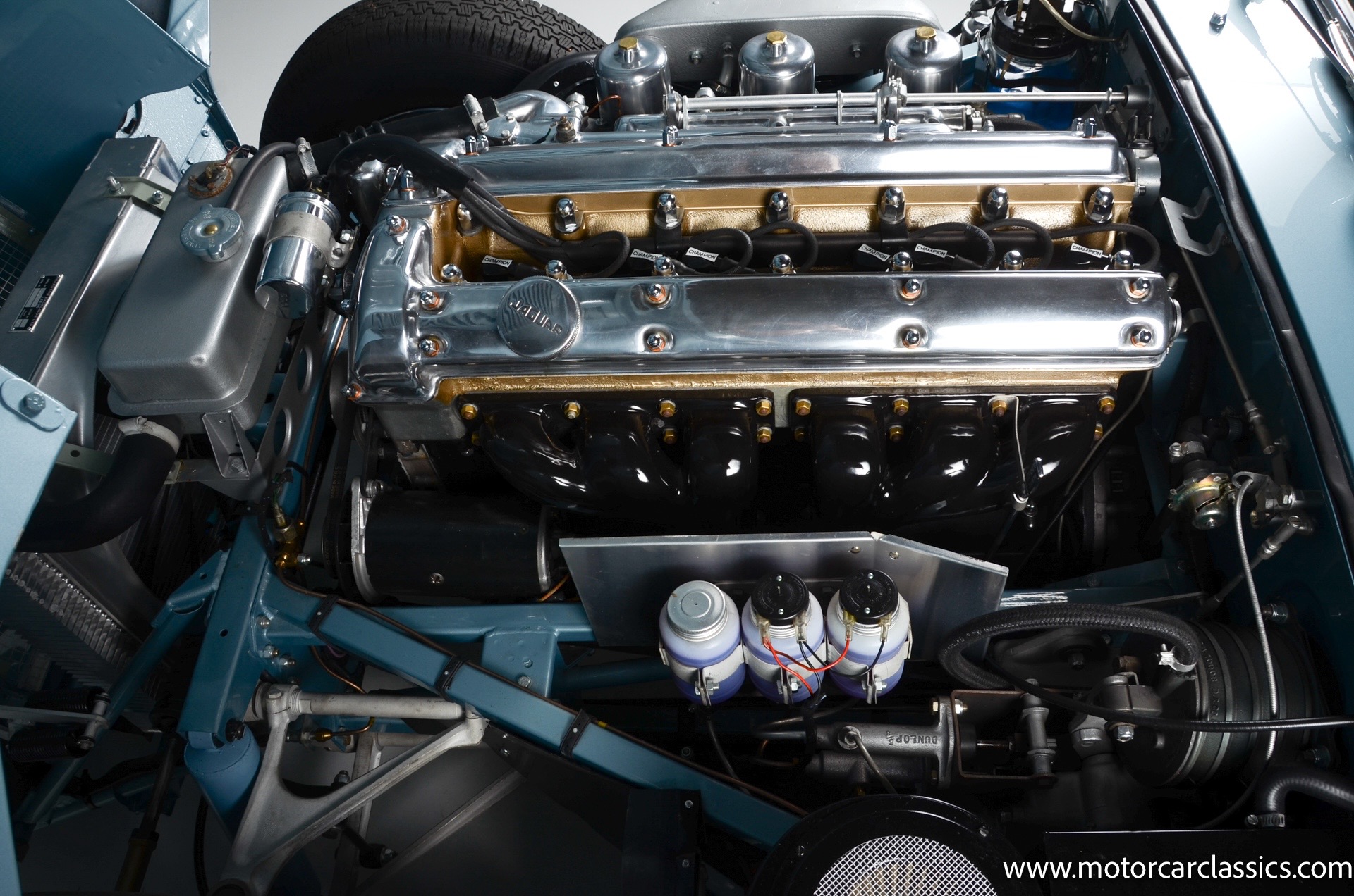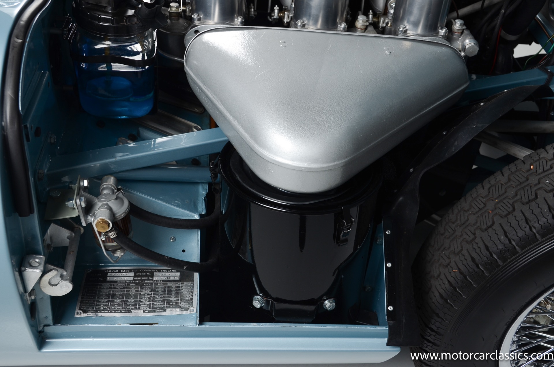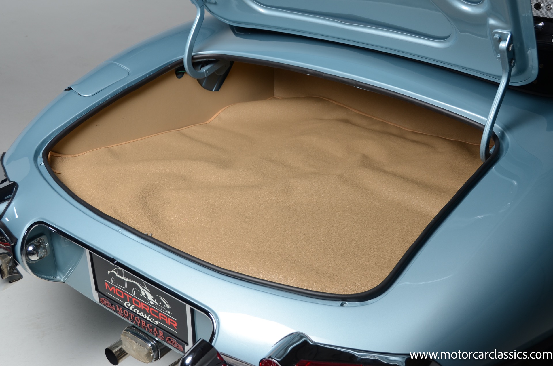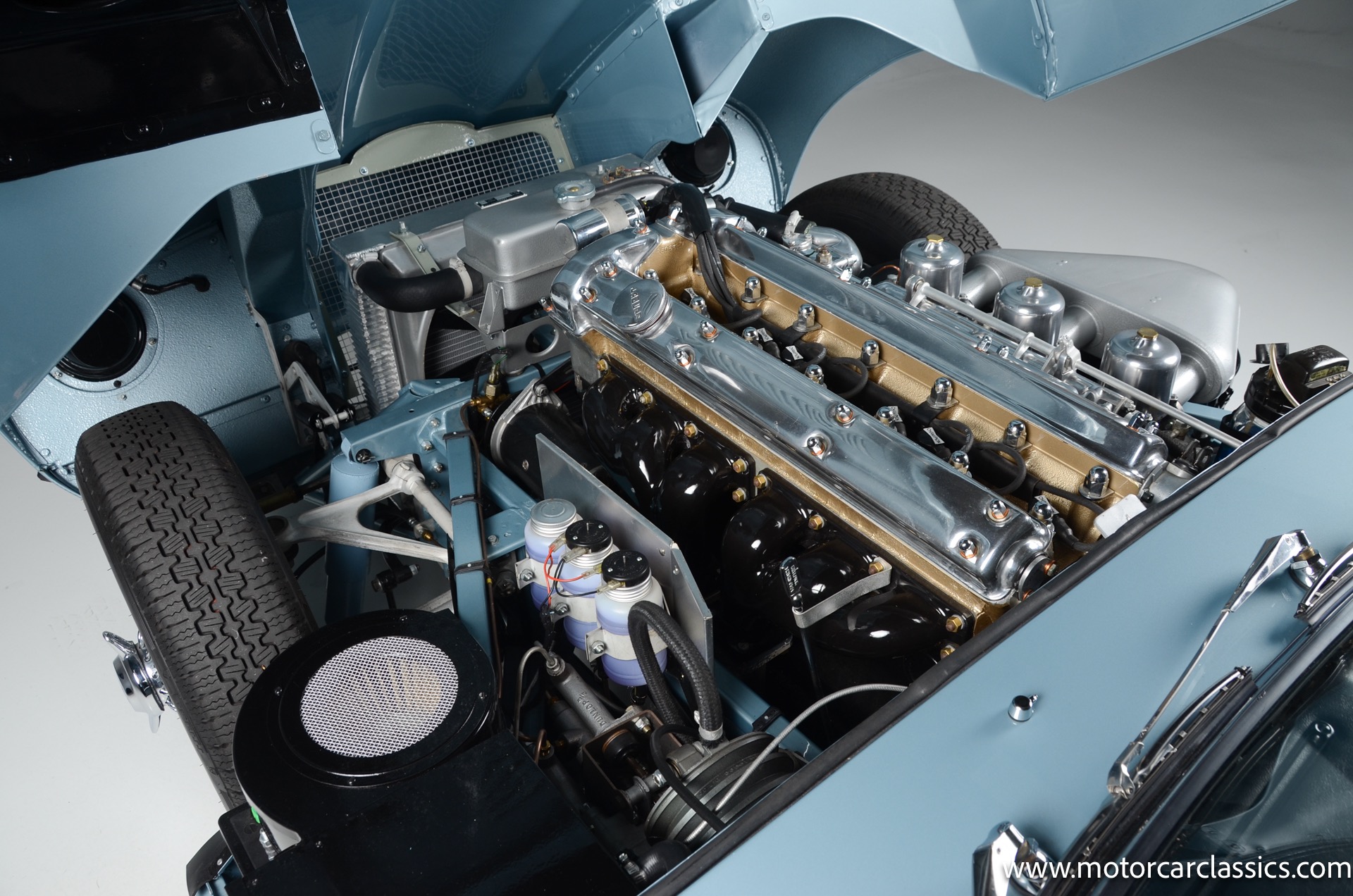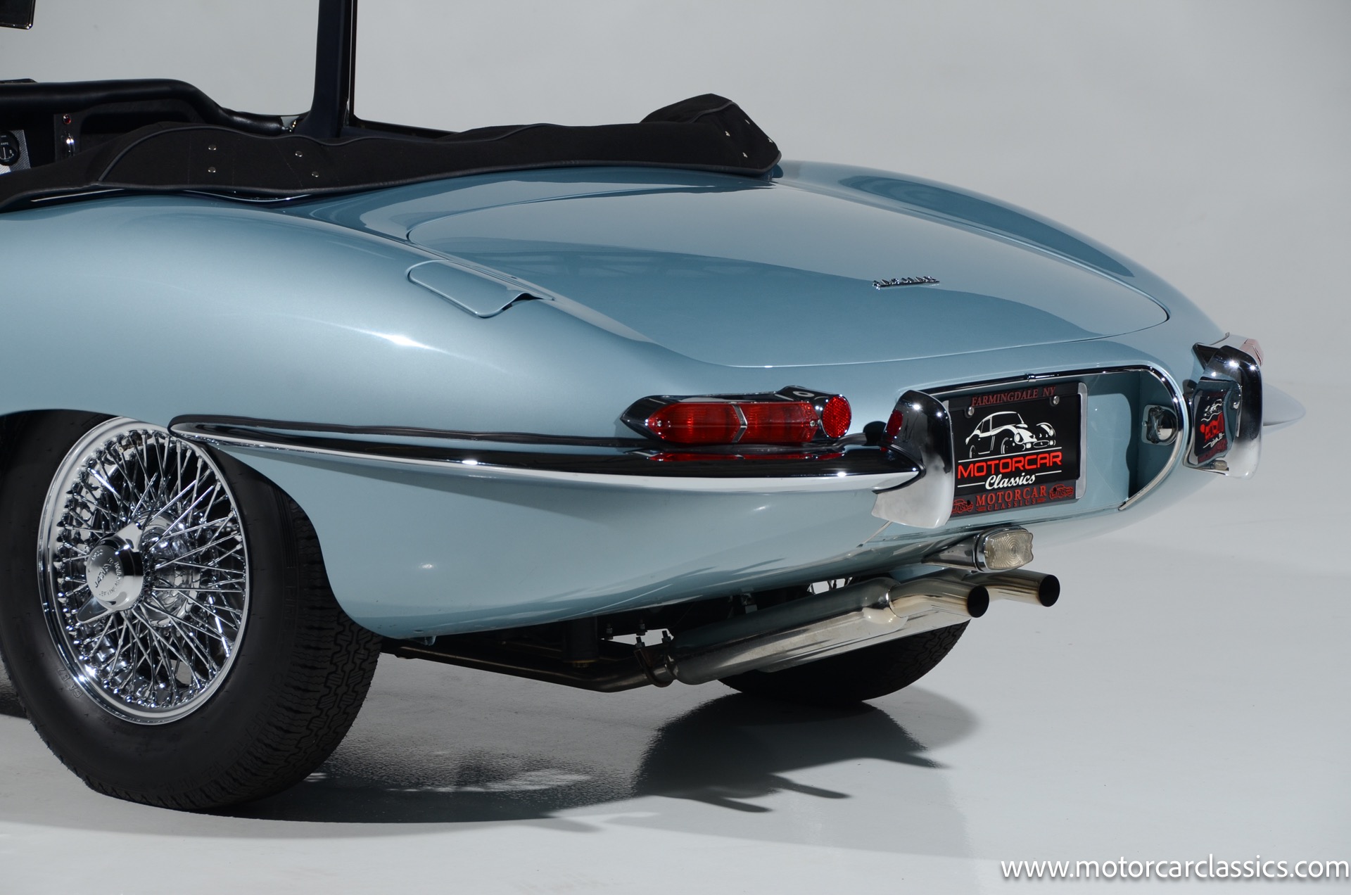 1962 Jaguar E-Type XKE for sale! 1962 Jaguar E Type for sale. Motorcar Classics is proud to present this world of classic elegance with this stunning 1962 Jaguar E-Type Roadster, presented in the exquisite hue of opalescent silver blue. This iconic sports car is not just a vehicle; it's a statement of style and performance, perfectly blending beauty with engineering excellence. The opalescent silver blue finish shimmers in the sunlight, showcasing the timeless design that has captivated car enthusiasts for decades. The sleek lines and aerodynamic shape are complemented by a dark blue interior, offering a luxurious and inviting atmosphere. The matching blue soft top adds a touch of sophistication while providing the option for open-air driving, making every journey a memorable experience.