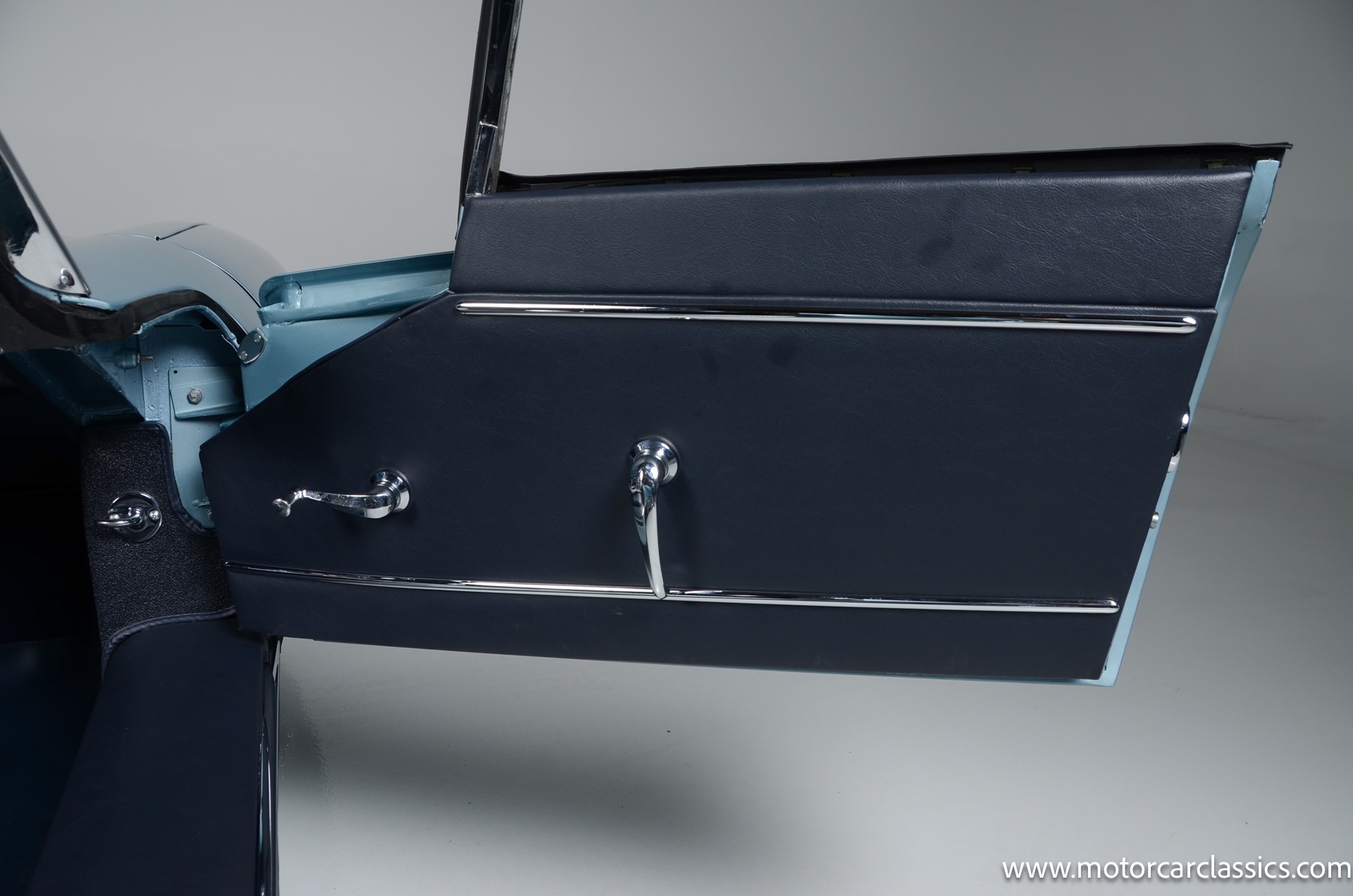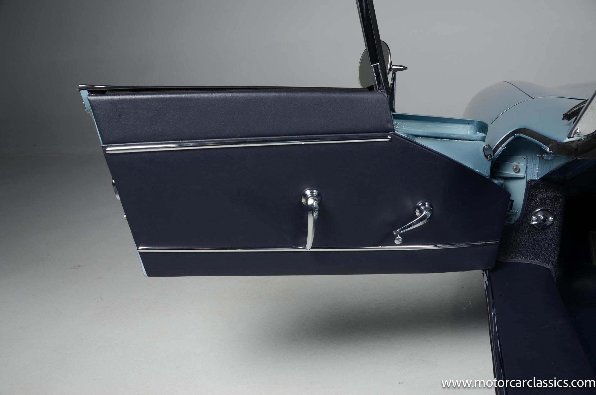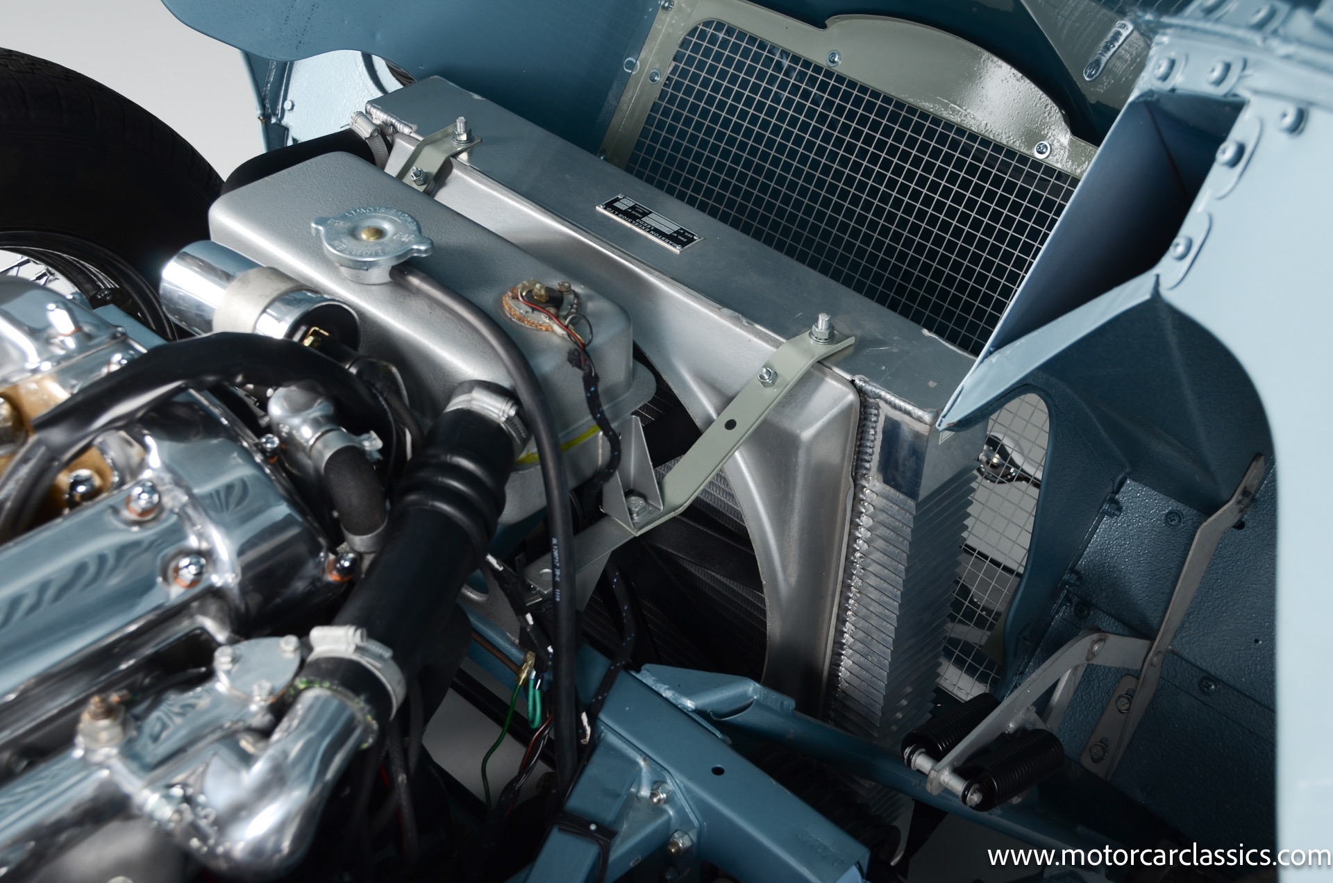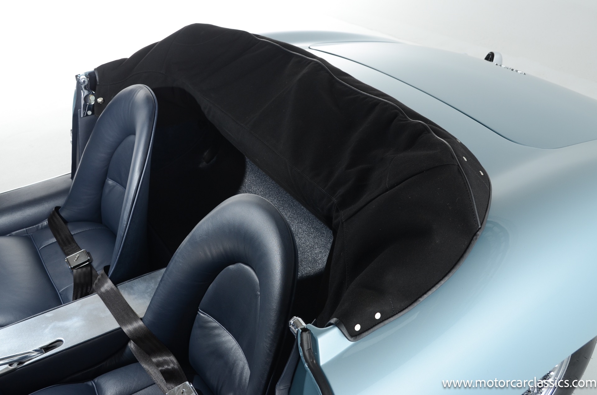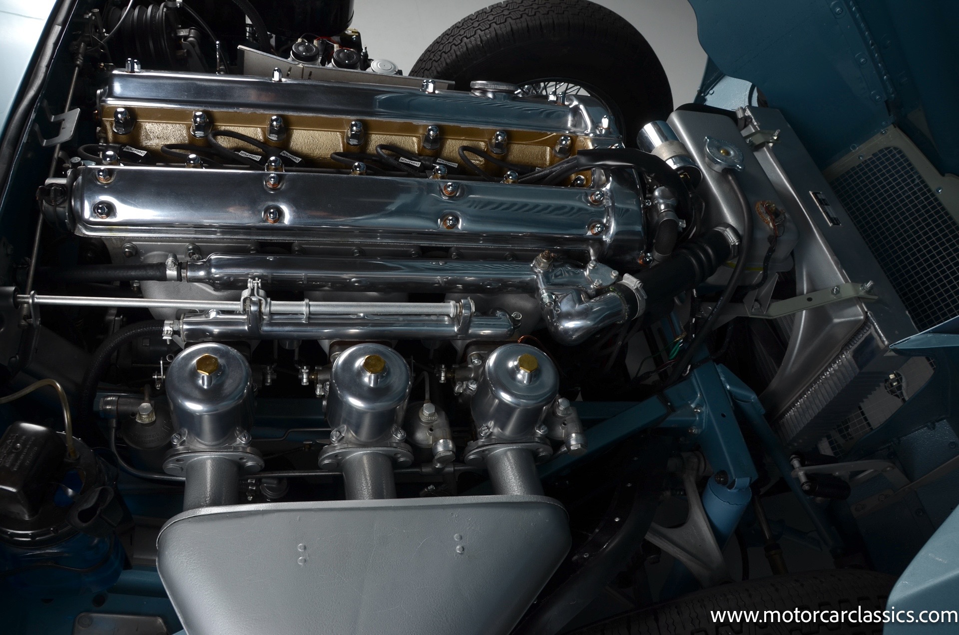 1962 Jaguar E-Type XKE for sale! 1962 Jaguar E Type for sale. Motorcar Classics is proud to present this world of classic elegance with this stunning 1962 Jaguar E-Type Roadster, presented in the exquisite hue of opalescent silver blue. This iconic sports car is not just a vehicle; it's a statement of style and performance, perfectly blending beauty with engineering excellence. The opalescent silver blue finish shimmers in the sunlight, showcasing the timeless design that has captivated car enthusiasts for decades. The sleek lines and aerodynamic shape are complemented by a dark blue interior, offering a luxurious and inviting atmosphere. The matching blue soft top adds a touch of sophistication while providing the option for open-air driving, making every journey a memorable experience.