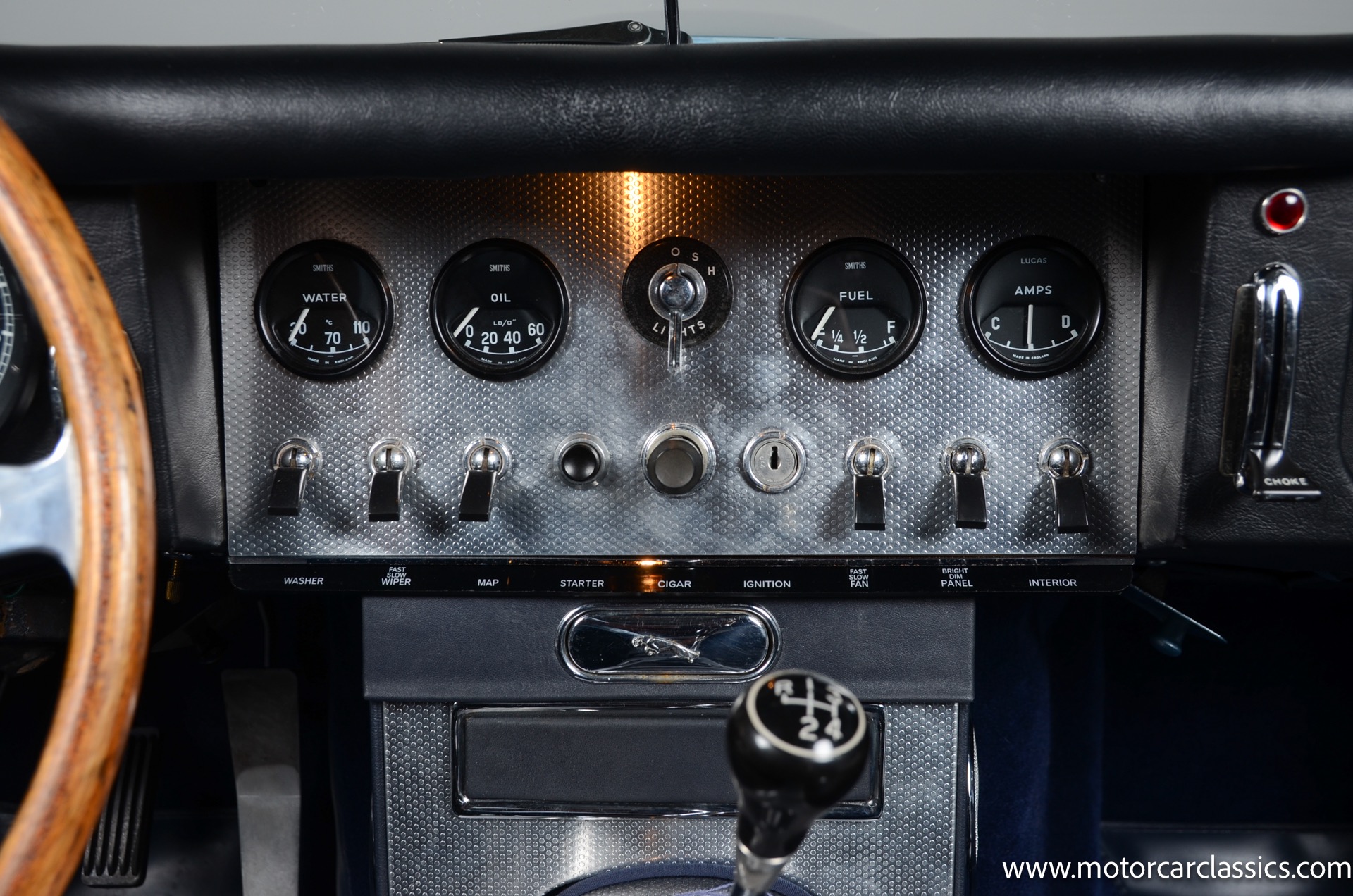 This E-Type has undergone a meticulous restoration, ensuring it performs as beautifully as it looks. The engine has been fully rebuilt, and the transmission has been upgraded to a later Series 1 model that is fully synchronized, enhancing the driving experience. The independent rear suspension has also been fully rebuilt, providing a smooth and responsive ride. Additional upgrades include a Flamethrower electronic distributor, a geared starter motor, a high-capacity reproduction aluminum radiator, a Cool Cat radiator fan, an external fuel pump, and Cerakoted exhaust manifolds to minimize thermal shock to the porcelain. The stainless steel exhaust system, seat belts, outside driver's side mirror, and rebuilt brakes and clutch hydraulics further enhance the car's reliability and safety.
