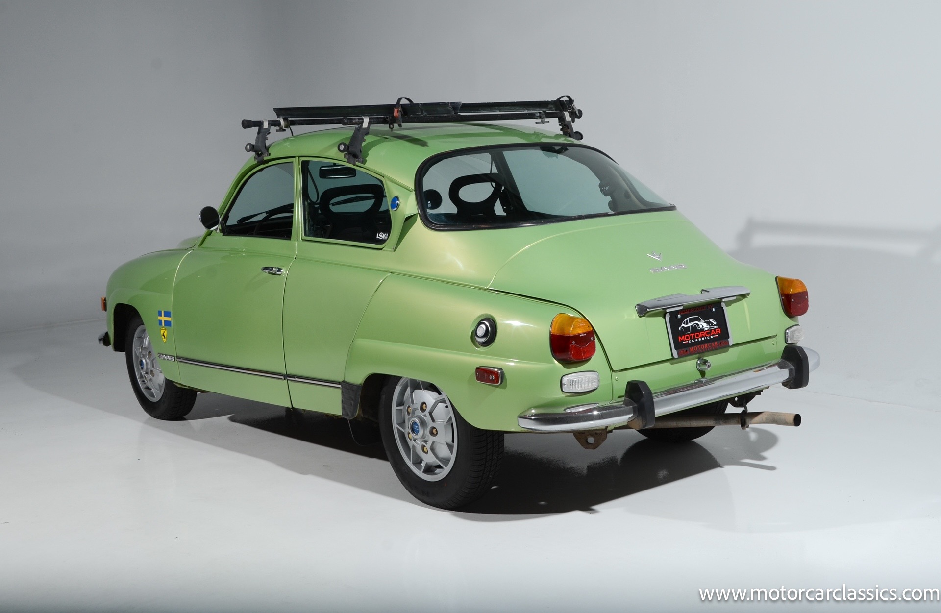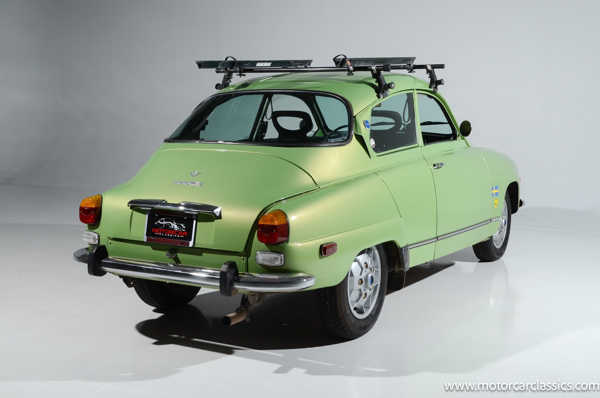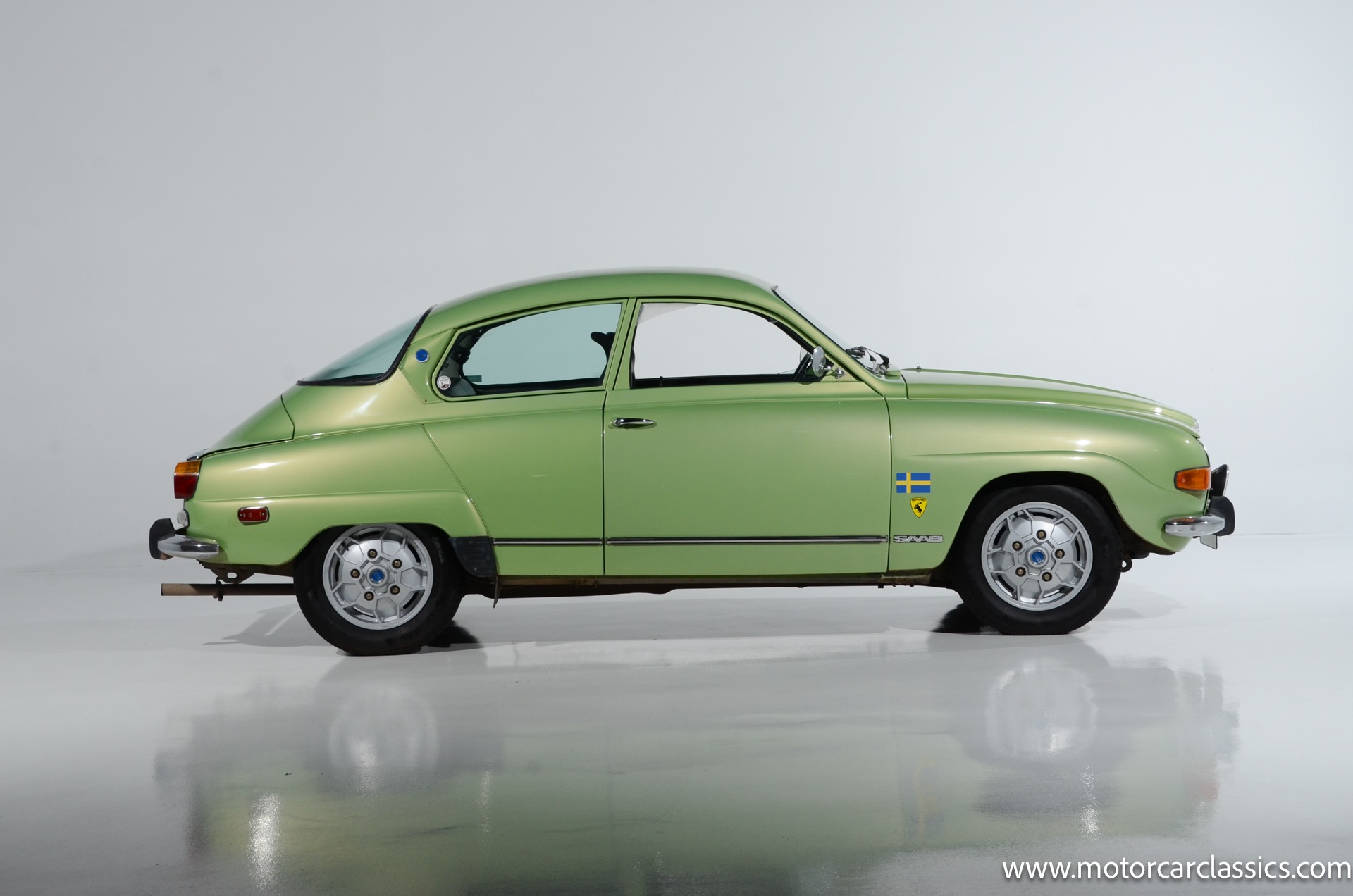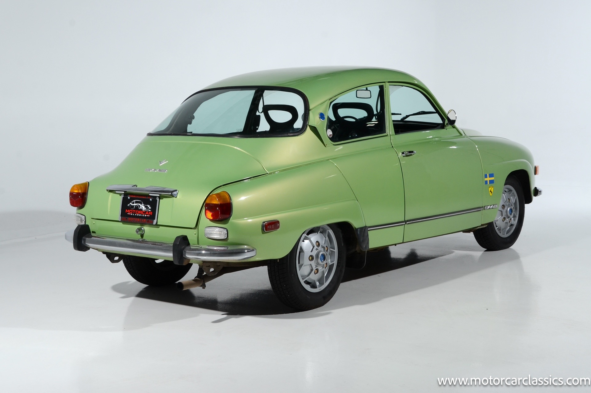 1972 SAAB 96 Coupe for sale! Motorcar Classics is pleased to offer this stunning Saab 96 presented in Cyber Green with dark green interior. A replacement 1.7-liter V4 was installed under last ownership along with 15 soccer ball alloy wheels and Hella auxiliary lights, and power is delivered to the front wheels via a four-speed manual transaxle. The car was repainted in Volkswagen Cyber Green in 2005 and is further equipped with chrome-finished bumpers, a Yakima roof rack, sound-deadening insulation, a cabin heater, and front bucket seats upholstered in green vinyl. This Saab 96 shows 58,877 miles with the original owner?s manual, a workshop manual and some service records.