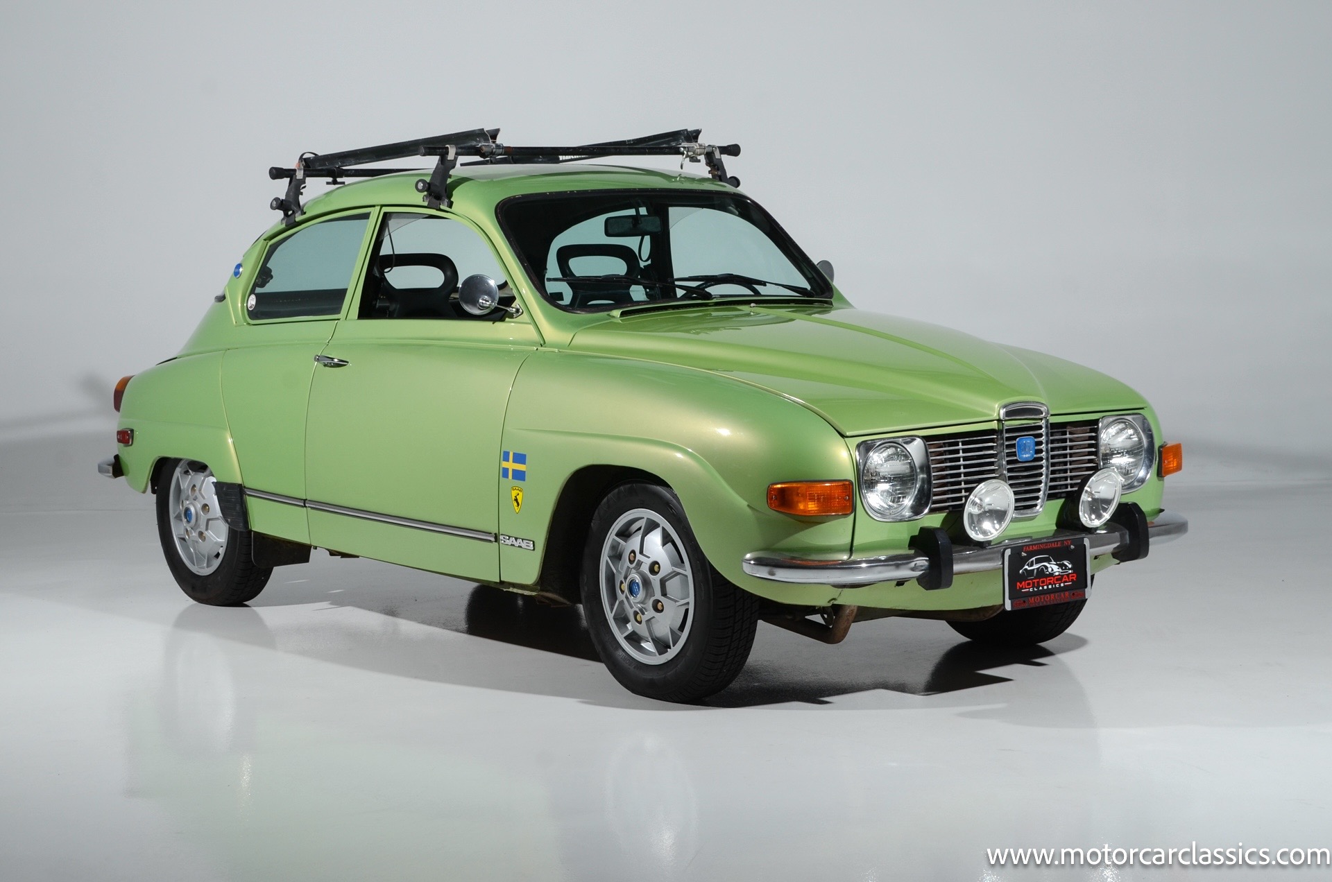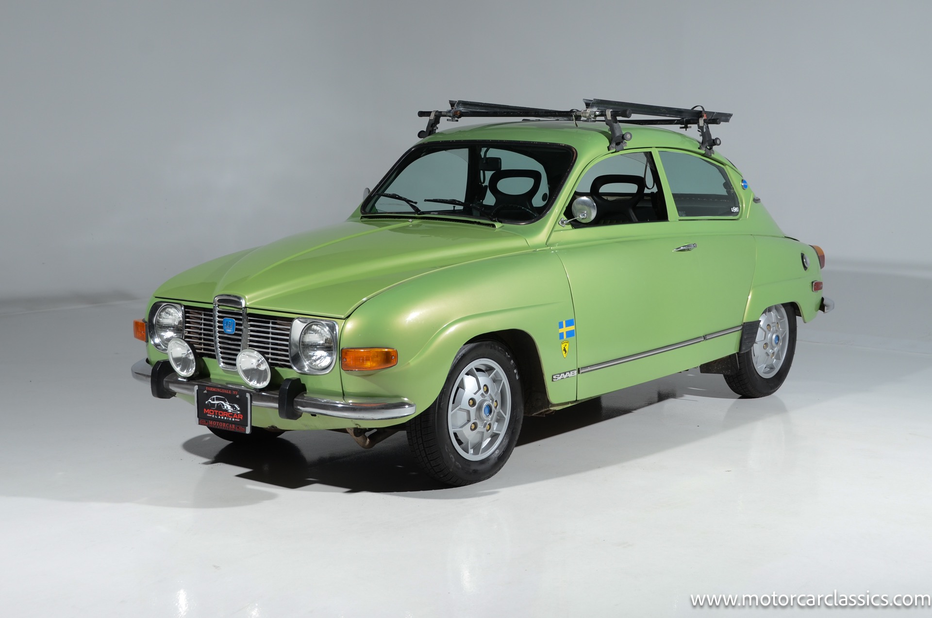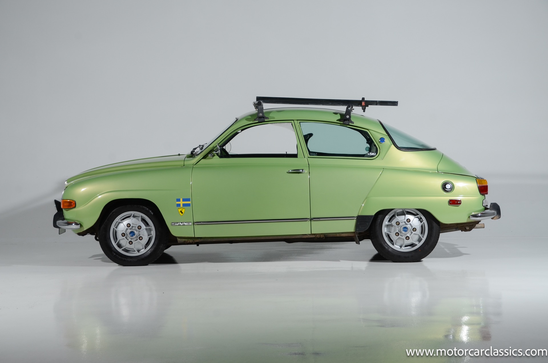 1972 SAAB 96 Coupe for sale! Motorcar Classics is pleased to offer this stunning Saab 96 presented in Cyber Green with dark green interior. A replacement 1.7-liter V4 was installed under last ownership along with 15 soccer ball alloy wheels and Hella auxiliary lights, and power is delivered to the front wheels via a four-speed manual transaxle. The car was repainted in Volkswagen Cyber Green in 2005 and is further equipped with chrome-finished bumpers, a Yakima roof rack, sound-deadening insulation, a cabin heater, and front bucket seats upholstered in green vinyl. This Saab 96 shows 58,877 miles with the original owner?s manual, a workshop manual and some service records.
