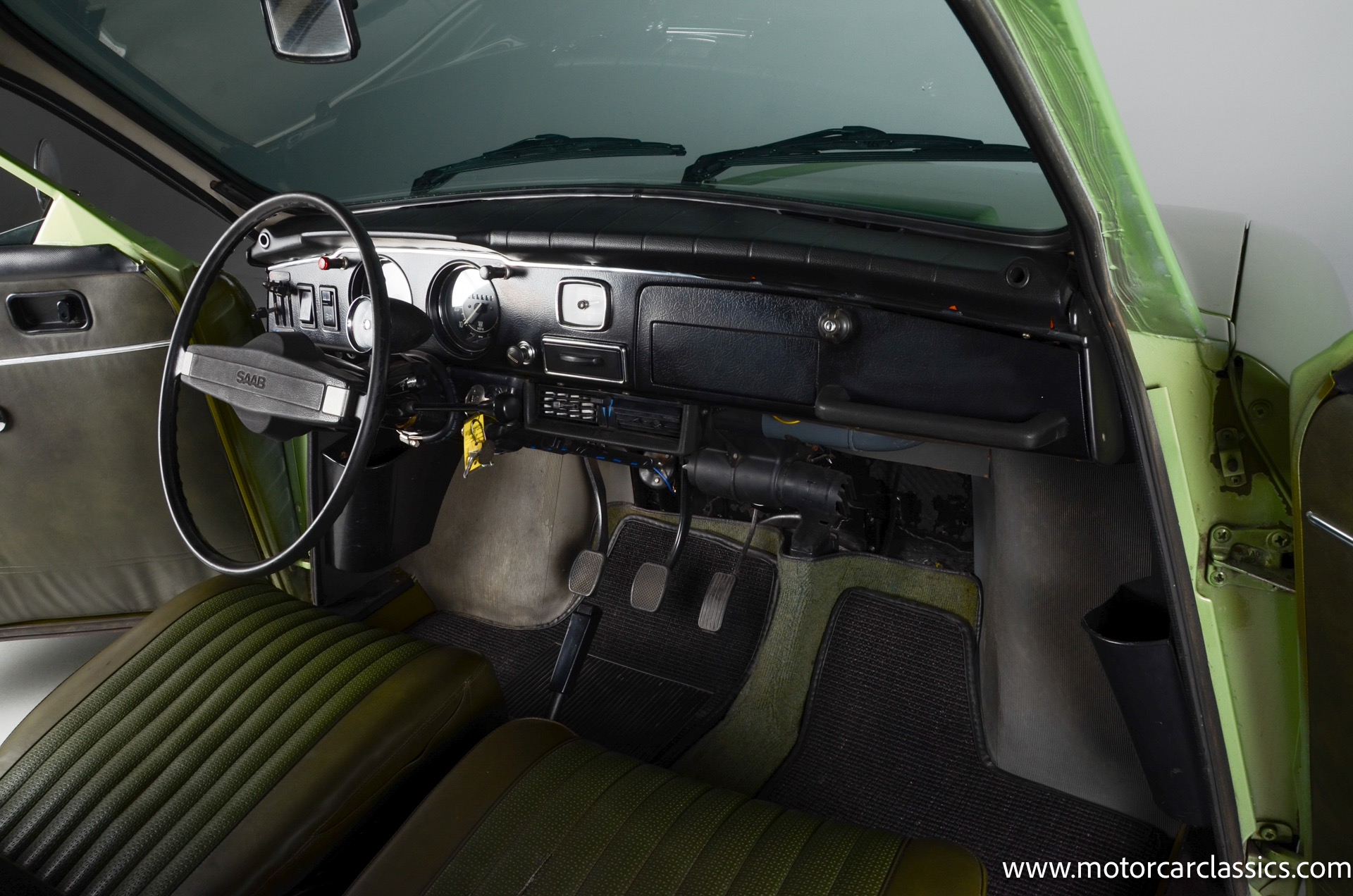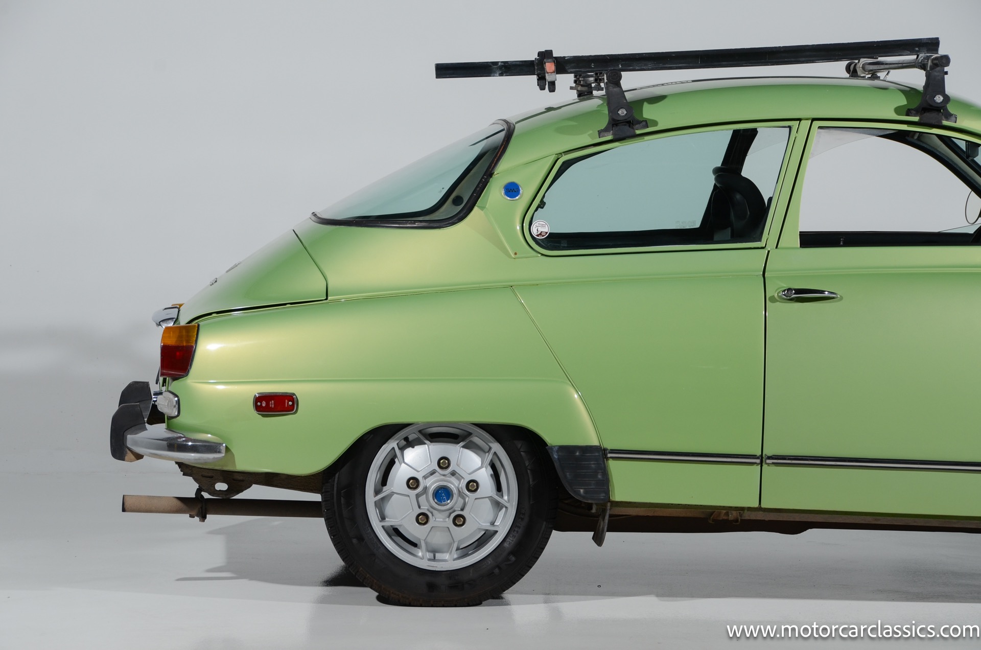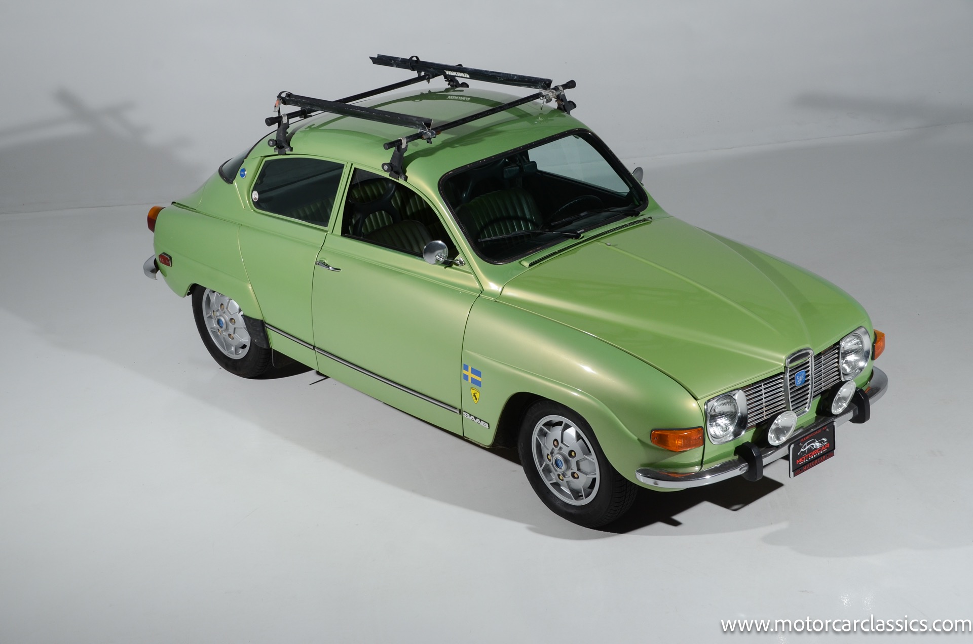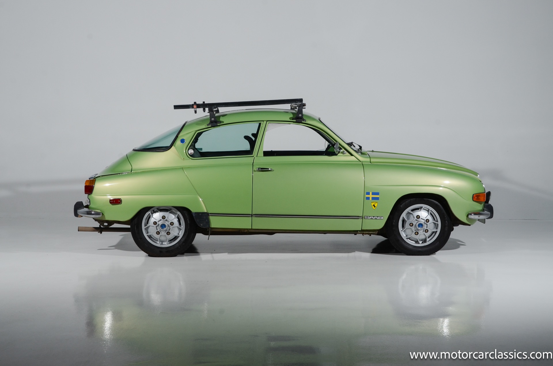 1972 SAAB 96 Coupe for sale! Motorcar Classics is pleased to offer this stunning Saab 96 presented in Cyber Green with dark green interior. A replacement 1.7-liter V4 was installed under last ownership along with 15 soccer ball alloy wheels and Hella auxiliary lights, and power is delivered to the front wheels via a four-speed manual transaxle. The car was repainted in Volkswagen Cyber Green in 2005 and is further equipped with chrome-finished bumpers, a Yakima roof rack, sound-deadening insulation, a cabin heater, and front bucket seats upholstered in green vinyl. This Saab 96 shows 58,877 miles with the original owner?s manual, a workshop manual and some service records.