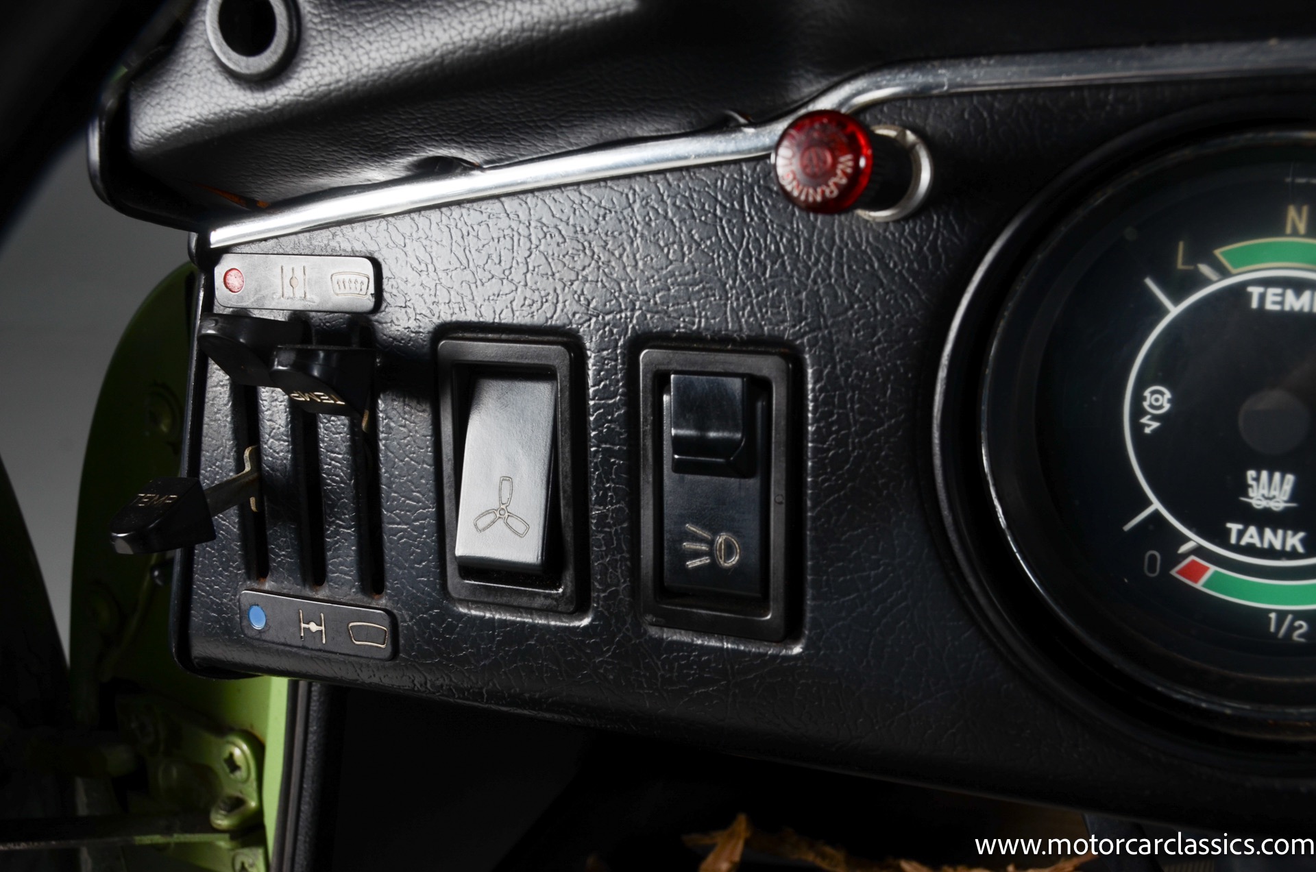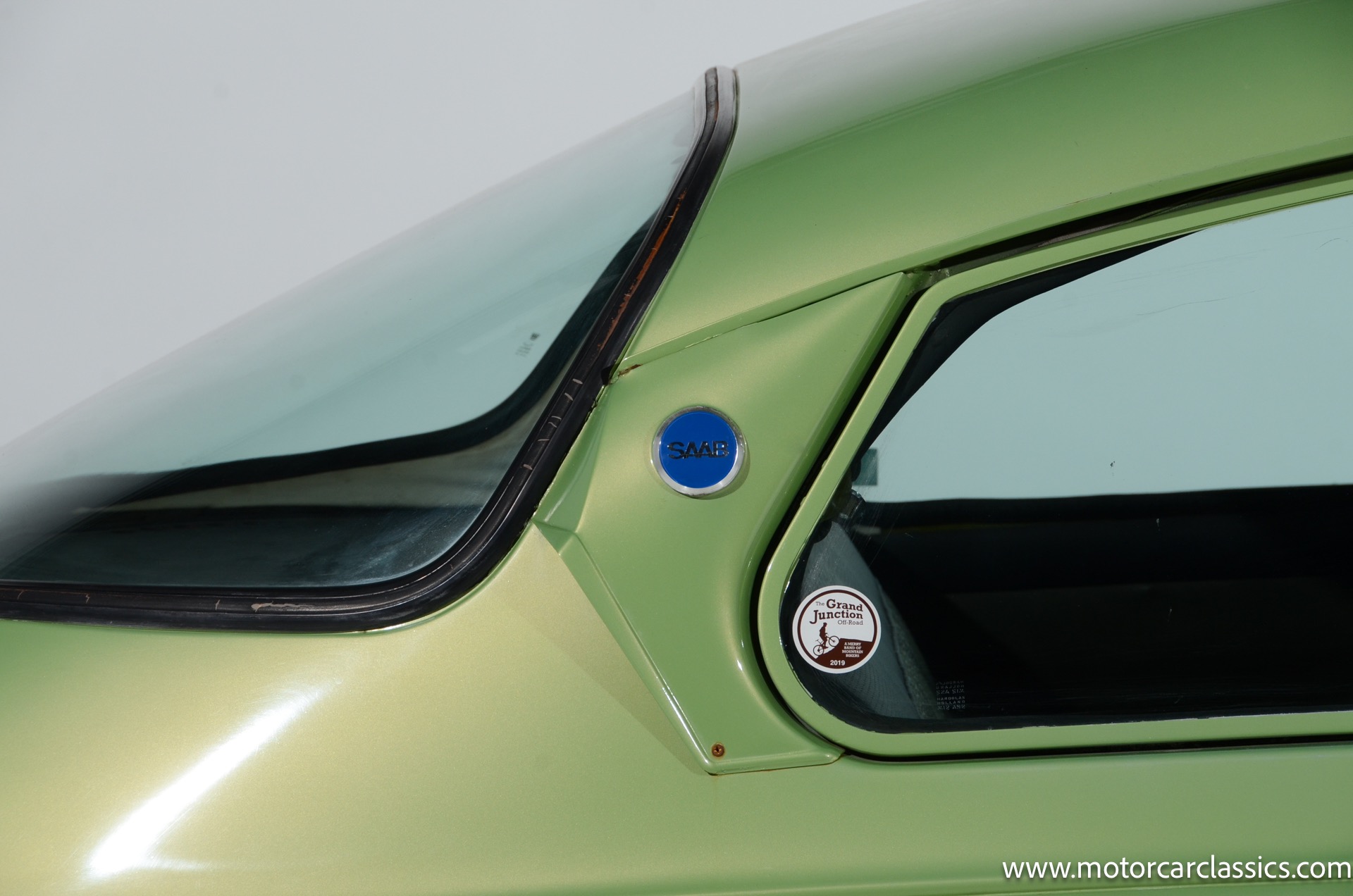 This Saab also features Hella auxiliary lights, lower bodyside moldings, pop-out rear windows, and chrome bumpers with black rubber overriders as well as dual side mirrors and a Yakima roof rack. The hood was repainted circa 2020.