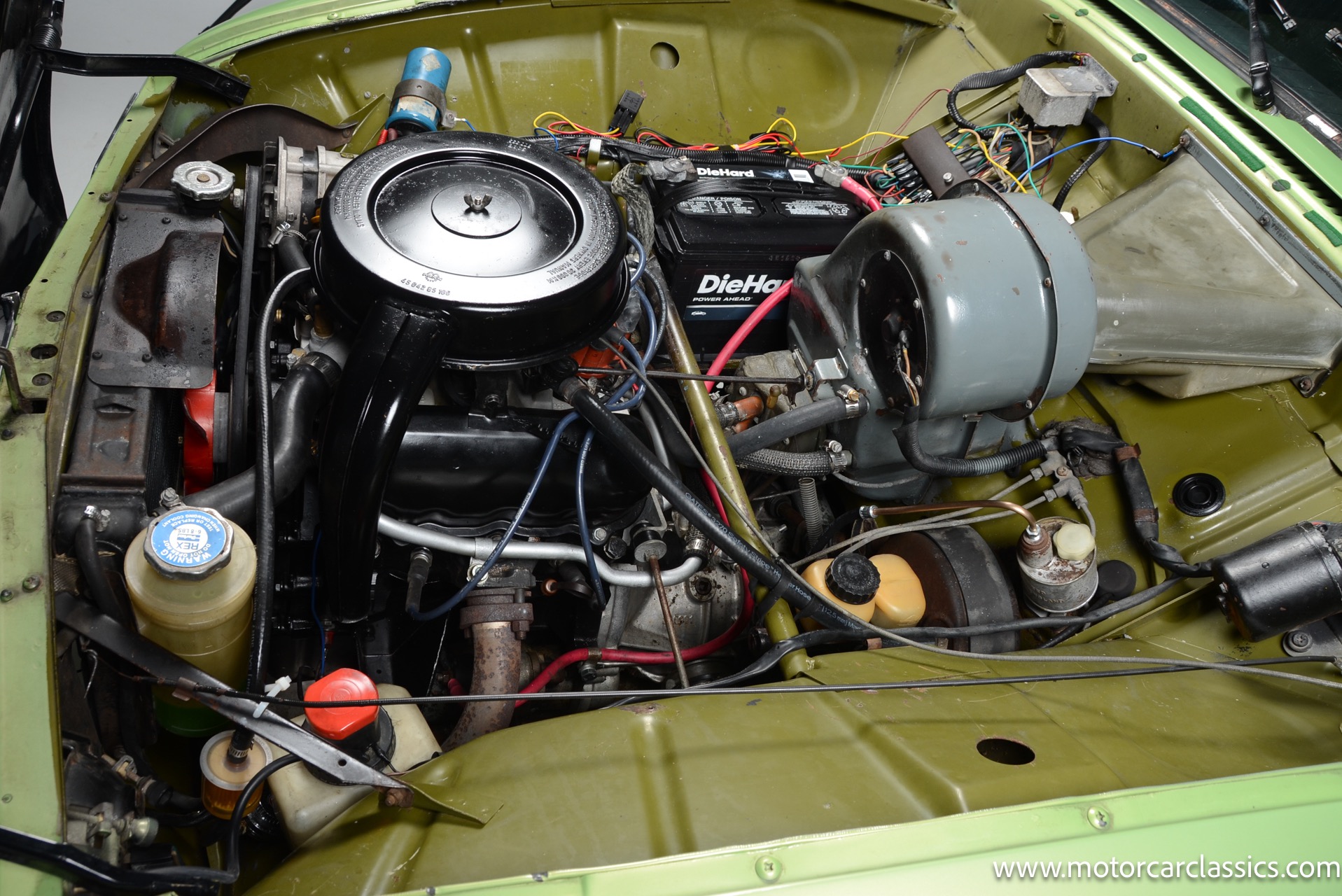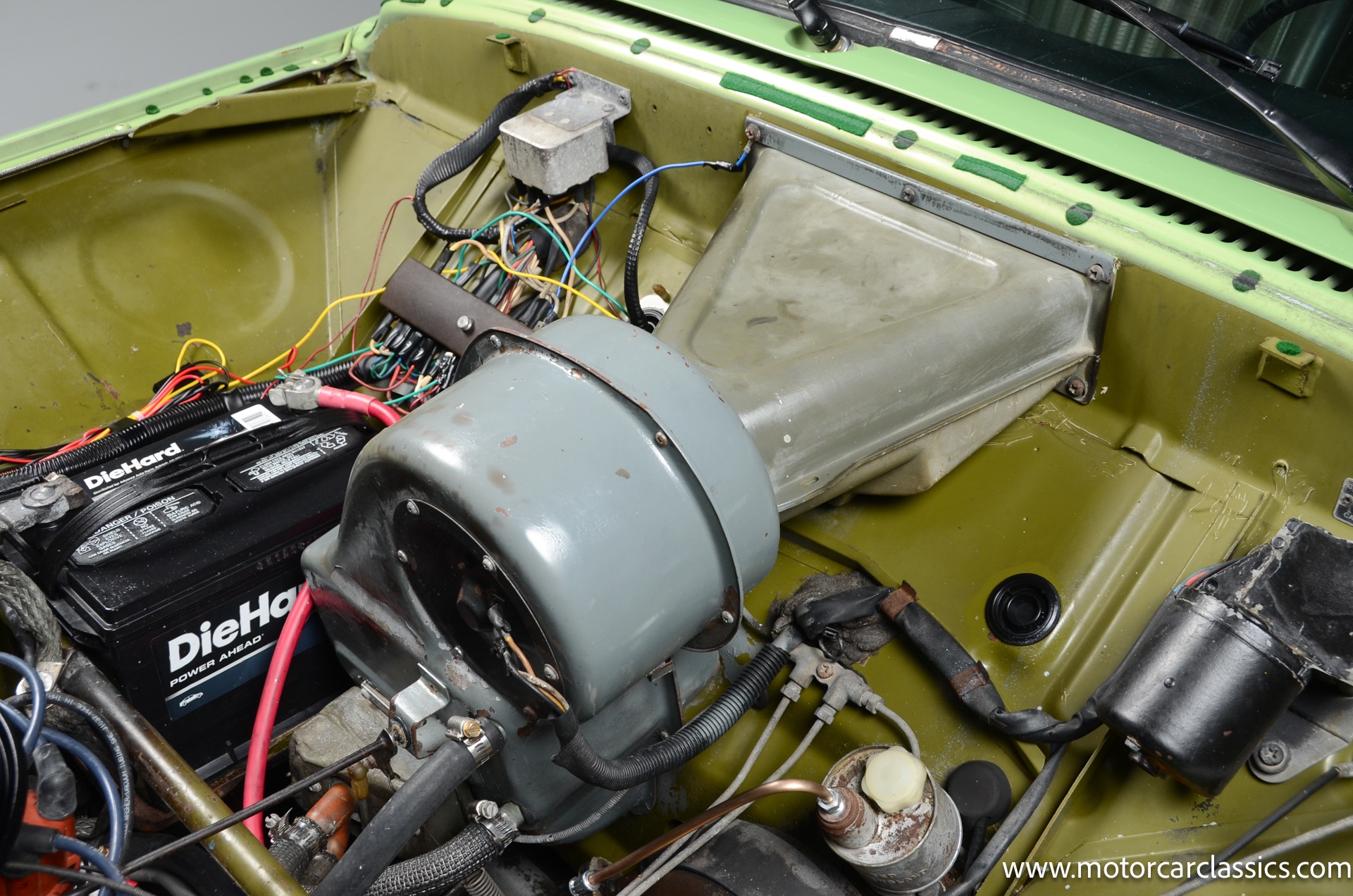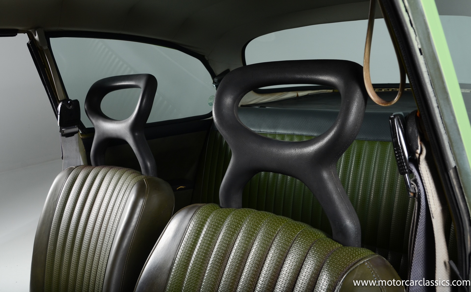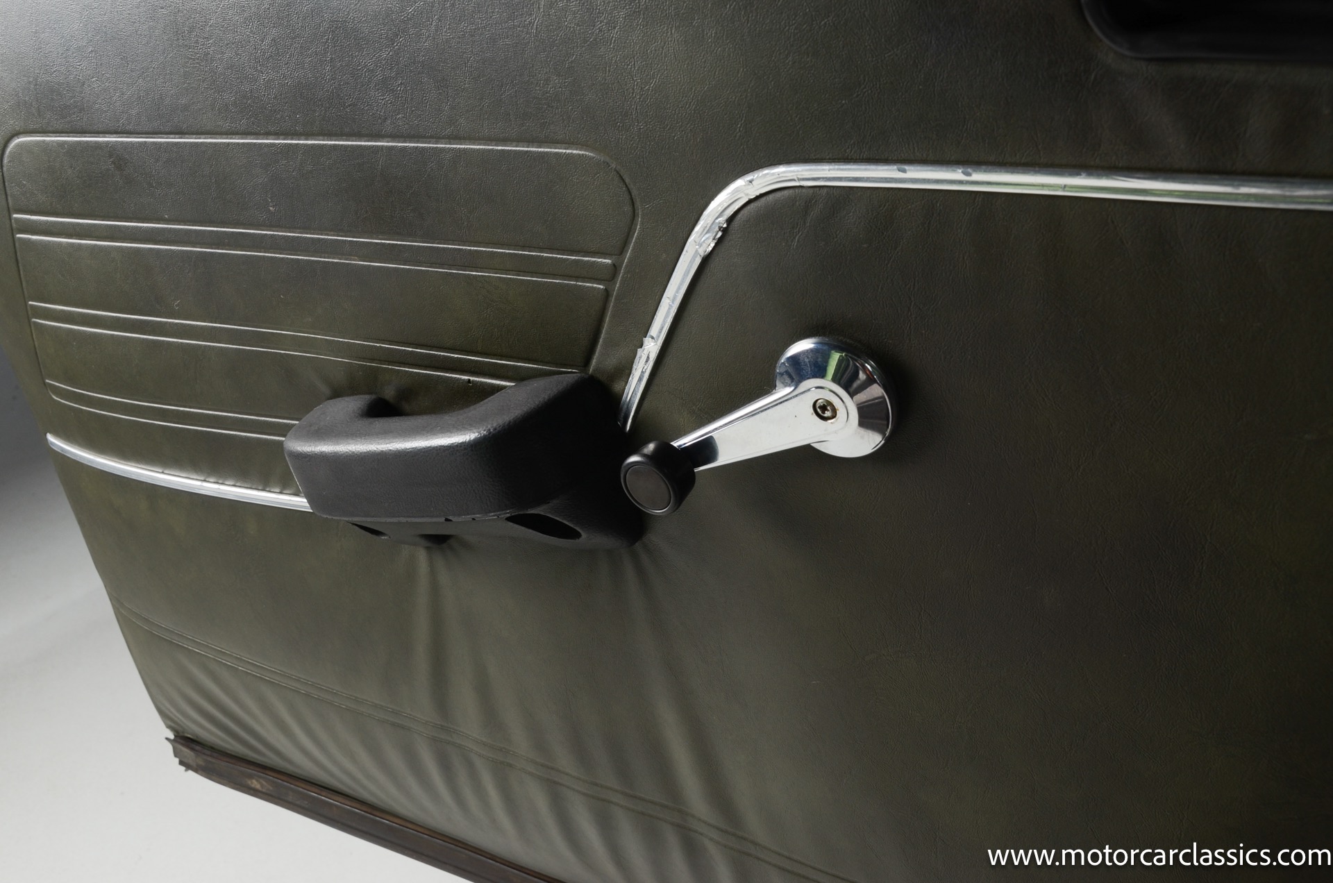 The silver-finished 15inch alloy wheels were added under last ownership, and they are mounted with 165/60 Nexen tires with approximately 1,600 miles. The front bucket seats and the rear bench are upholstered in green vinyl. Sound-deadening insulation has been installed below the green carpeting, and amenities include a heated driver?s-side seat, a lockable glovebox, and crank-operated windows. Cracks are present on the lower front seat cushions. and imperfections in the dash vinyl near the glove box