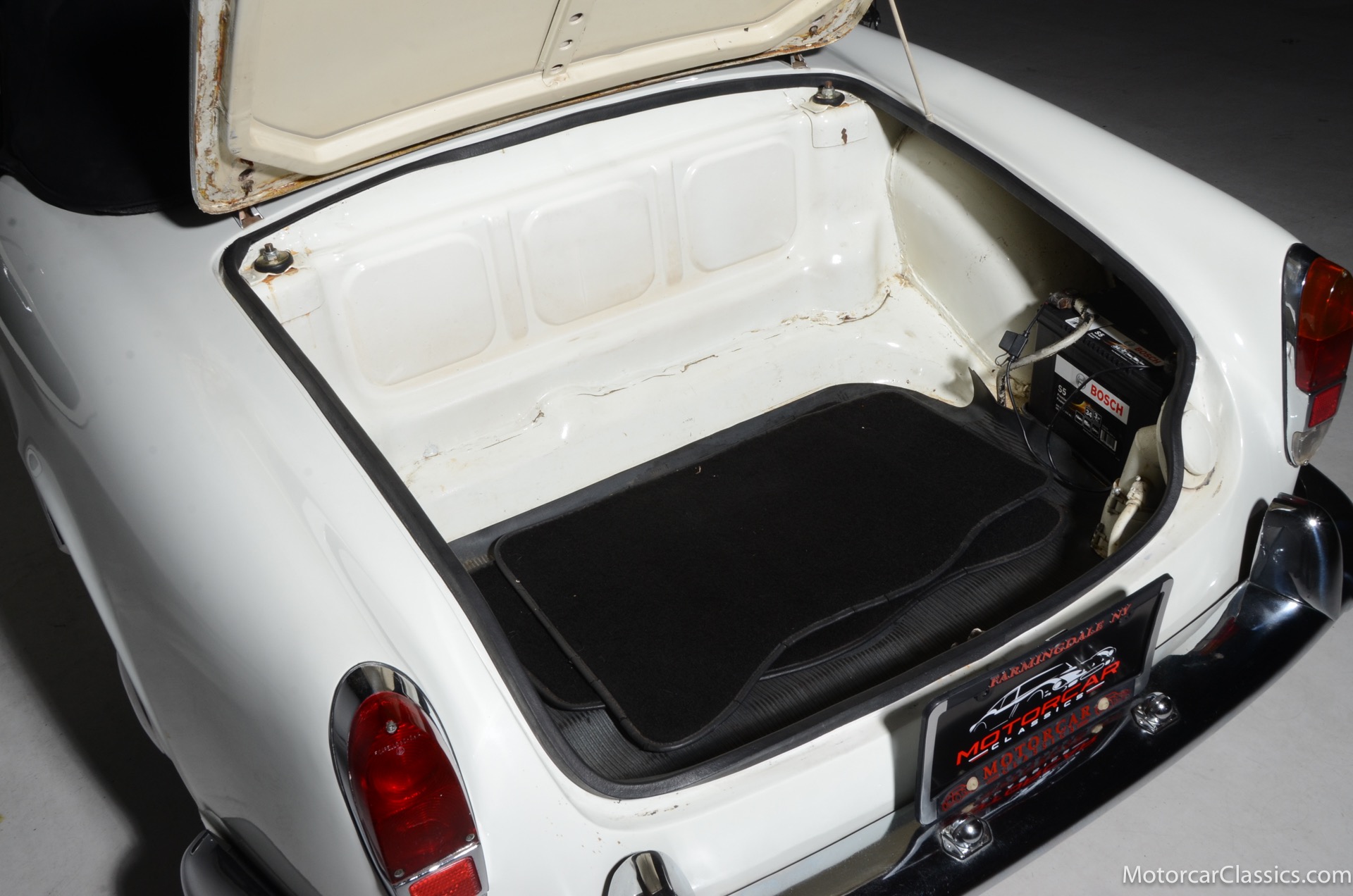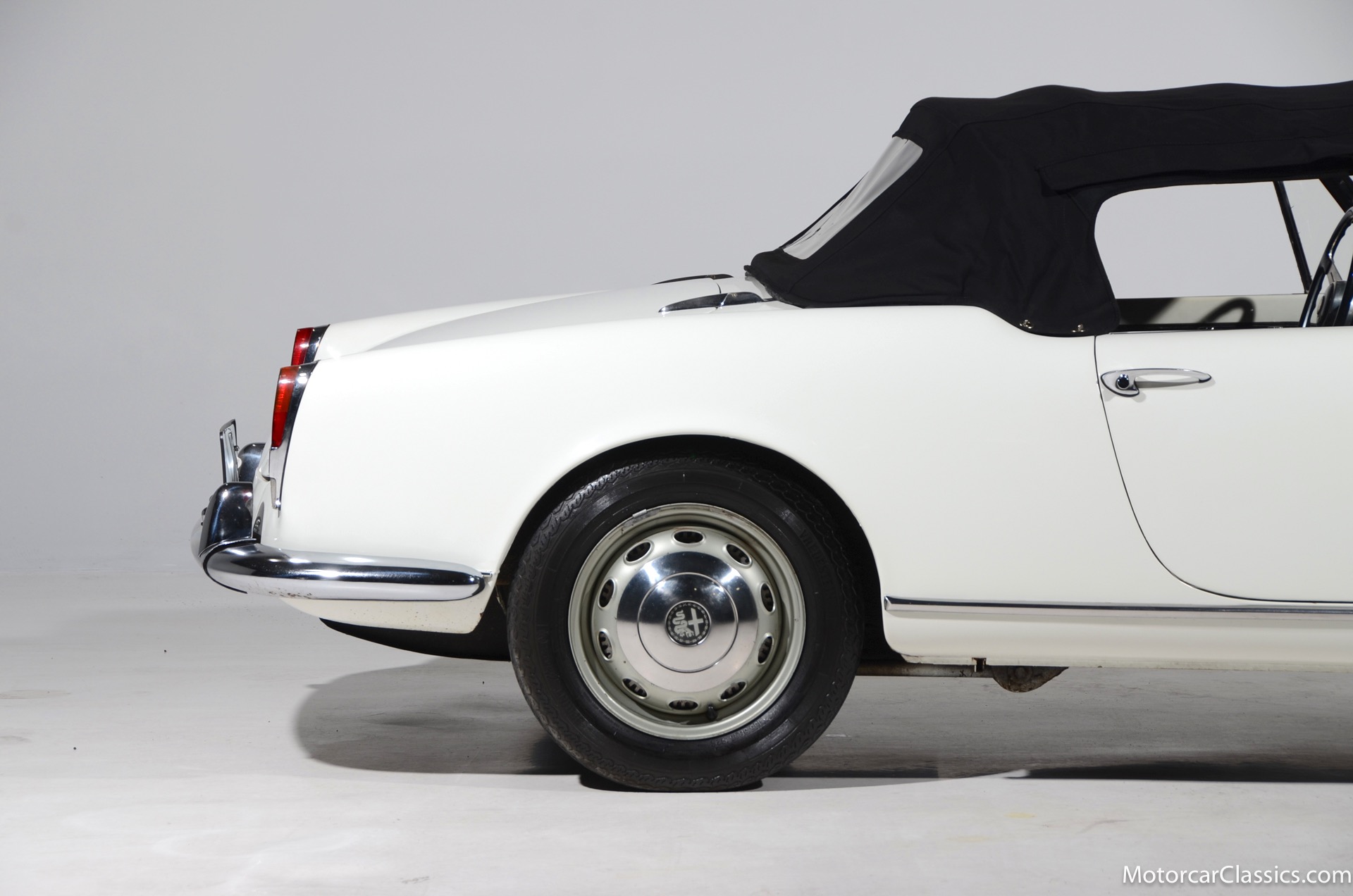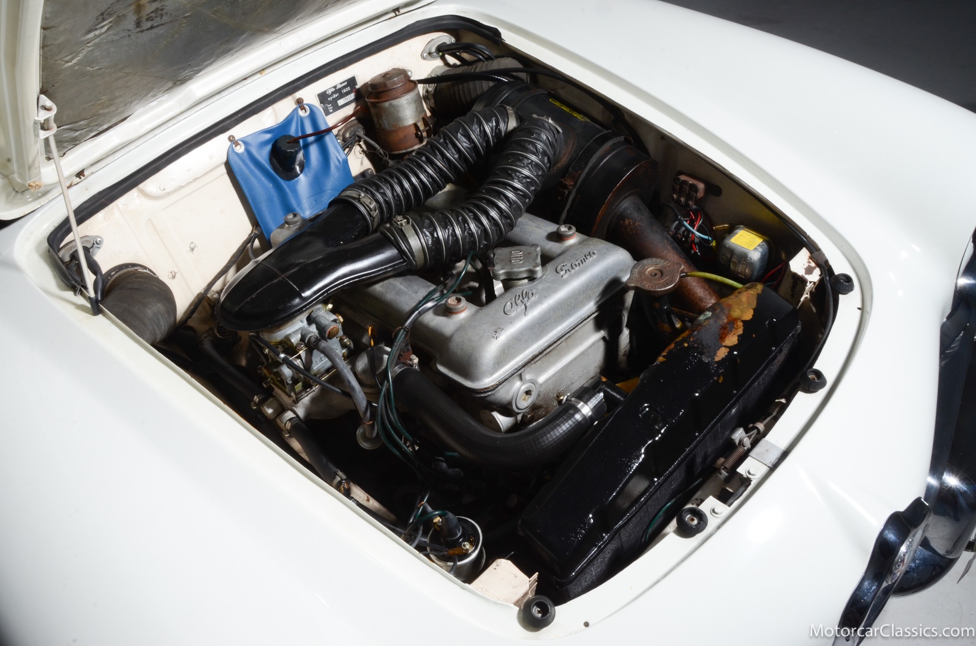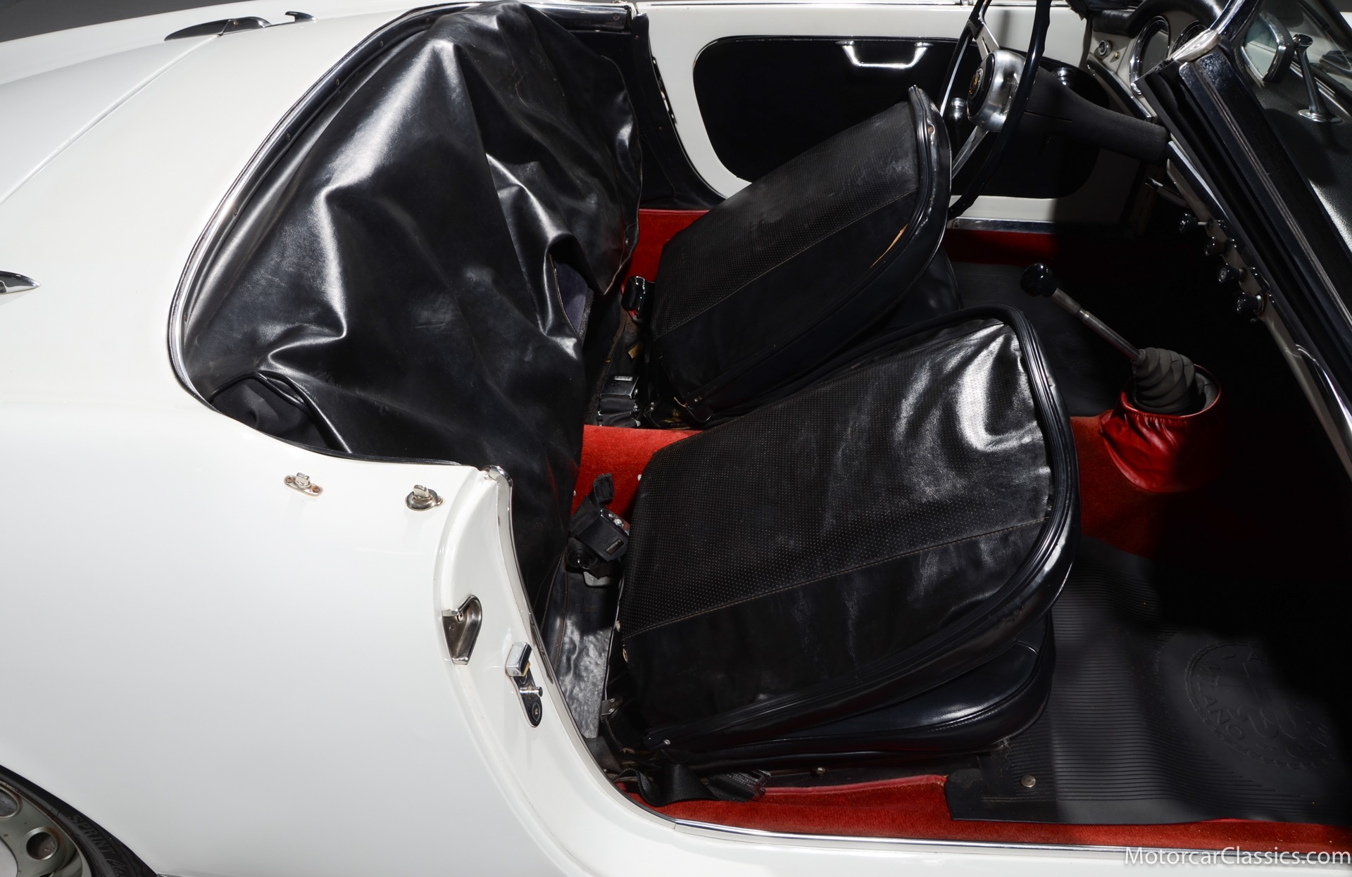 1964 Alfa Romeo Giulia 1600 Spider for sale! Motorcar Classics is proud to present this very original 1964 Alfa Romeo Giulia 1600 Spider. Finished in Correct Bianca White. The interior has correct Black leatherette seats with original Red carpets and Black convertible top.Vin number- 379673. The factory original 1600CC DOHC motor has the correct Solex carburetor and is mated to the 5 speed manual gearbox. The car is mechanically well-sorted. This is an older restoration, from about 25 years ago on a clean and rust free body. Vredestein 165/15 tires on all four wheels.It was ordered radio delete The car shows 30,320 miles. It has been owned by an experienced collector the past ten years, and we sold it to him out of another prominent collection where it resided over two decades.