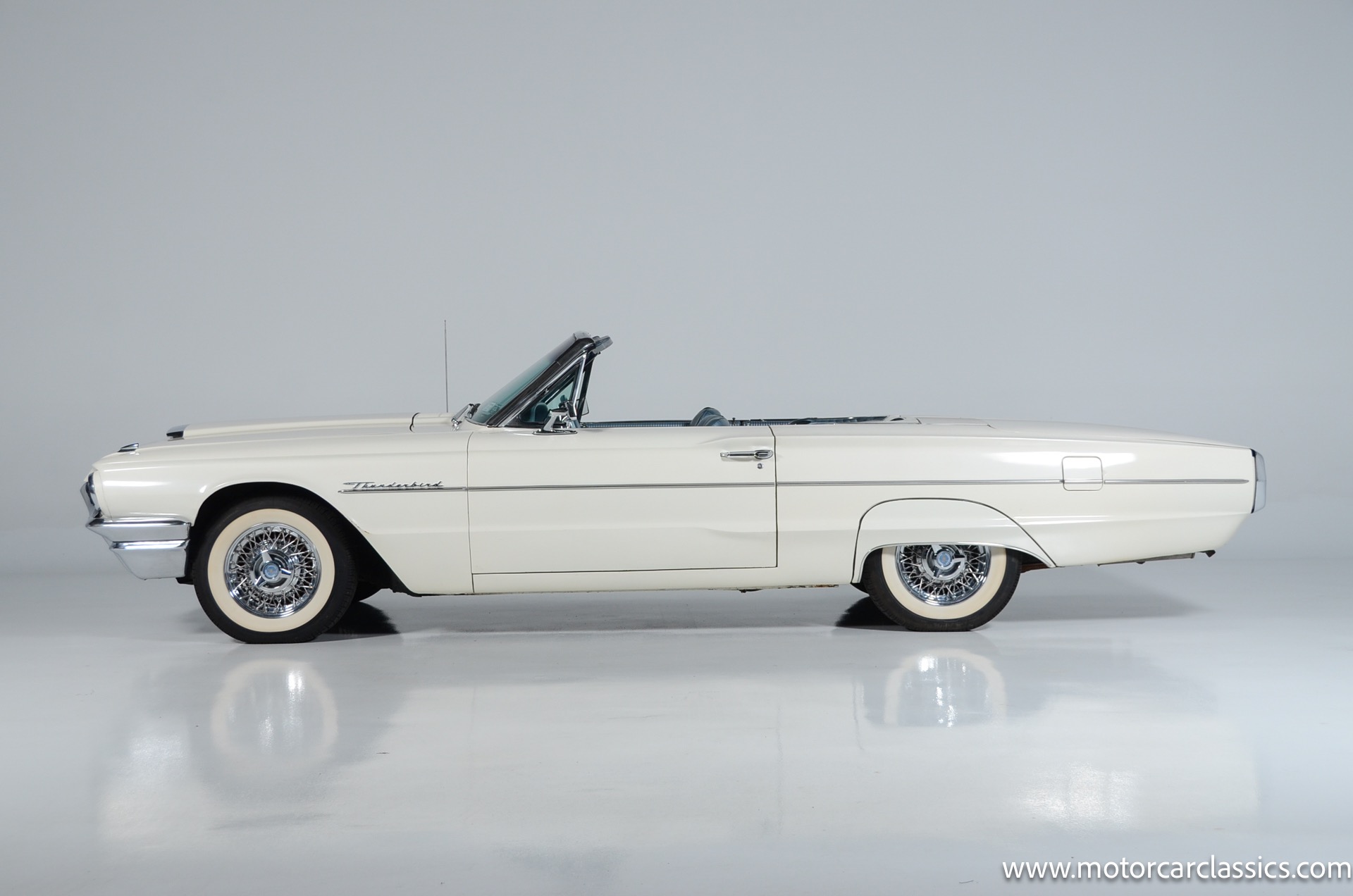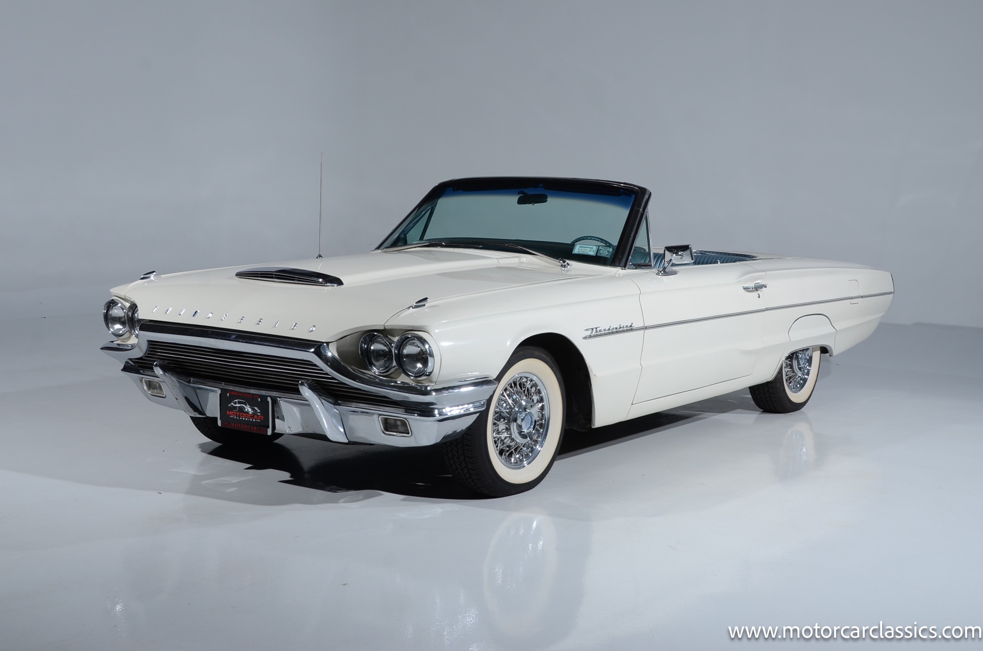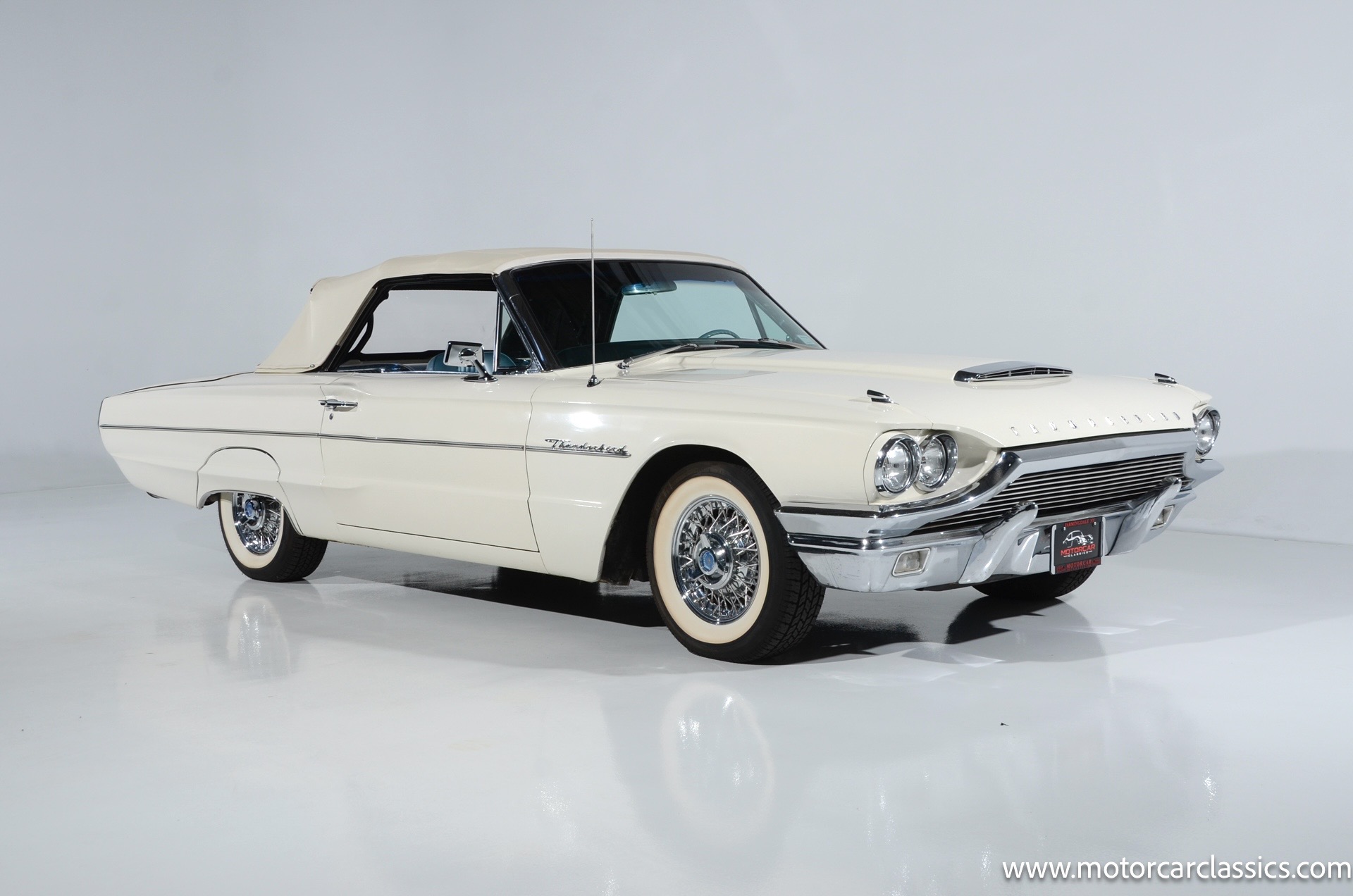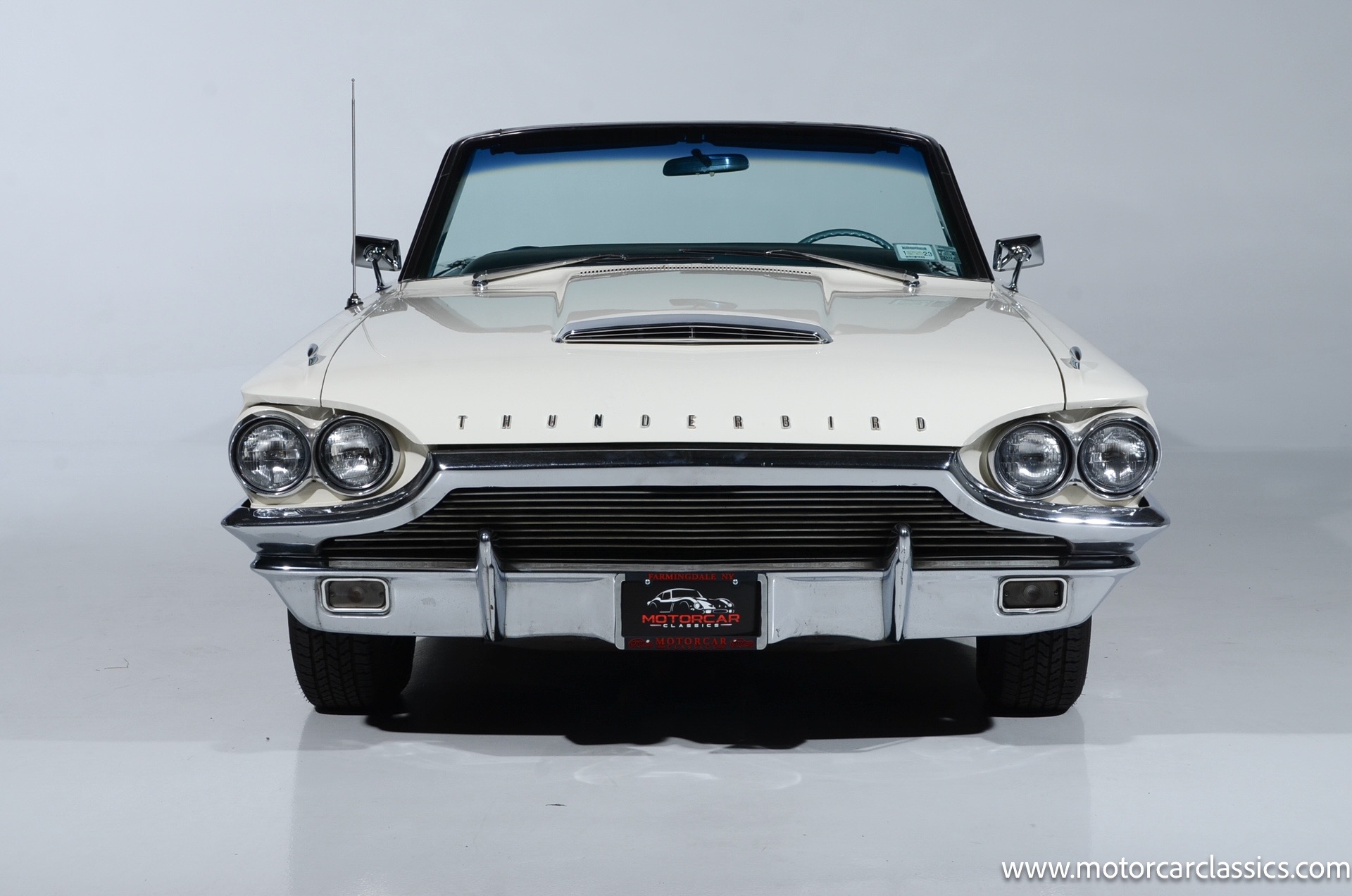 1964 Ford Thunderbird for sale! Motorcar Classics is pleased to present this stunning 1964 Ford Thunderbird Convertible that will transport you back to an era of style and sophistication. Finished in elegant Wimbledon White, the sleek lines and sculpted contours of this Thunderbird are sure to turn heads. The crisp, white convertible top provides an effortless open-air driving experience, perfect for cruising on warm summer evenings.