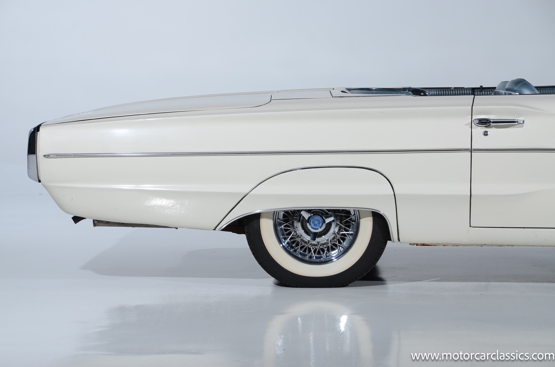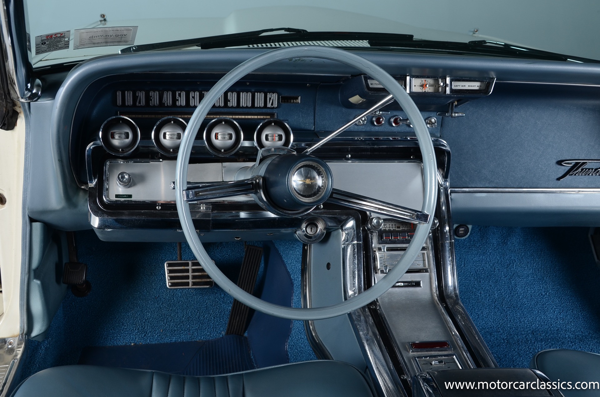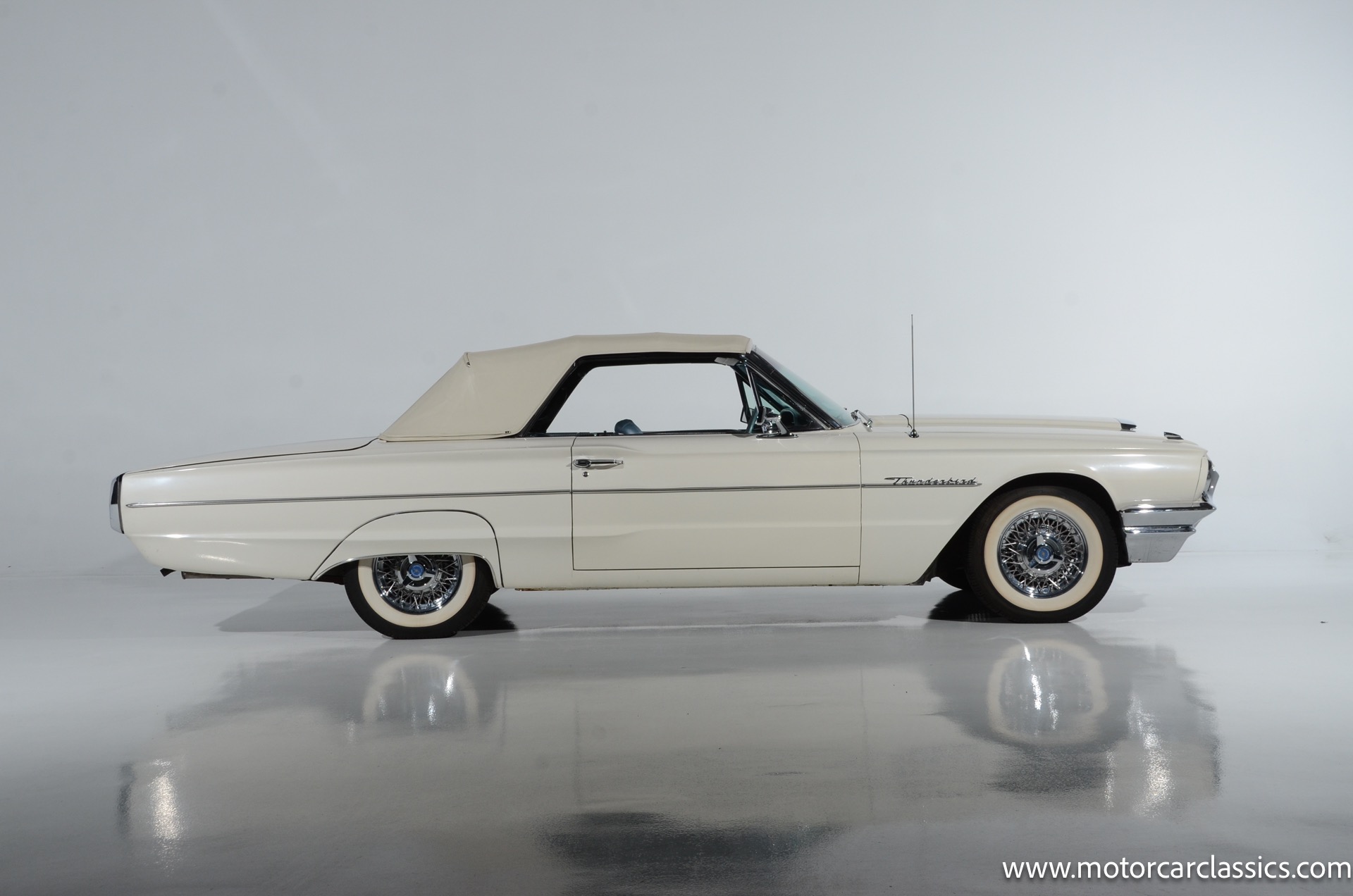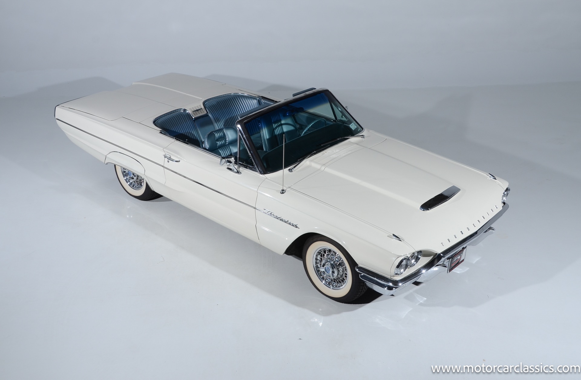 1964 Ford Thunderbird for sale! Motorcar Classics is pleased to present this stunning 1964 Ford Thunderbird Convertible that will transport you back to an era of style and sophistication. Finished in elegant Wimbledon White, the sleek lines and sculpted contours of this Thunderbird are sure to turn heads. The crisp, white convertible top provides an effortless open-air driving experience, perfect for cruising on warm summer evenings.
