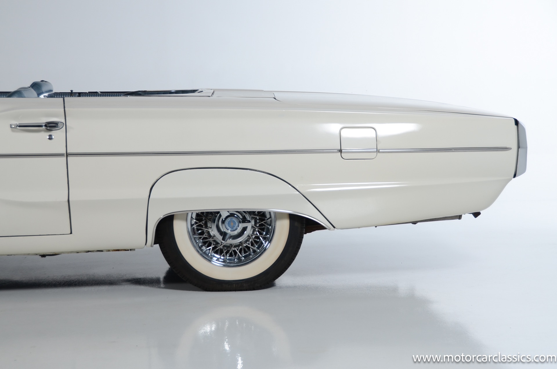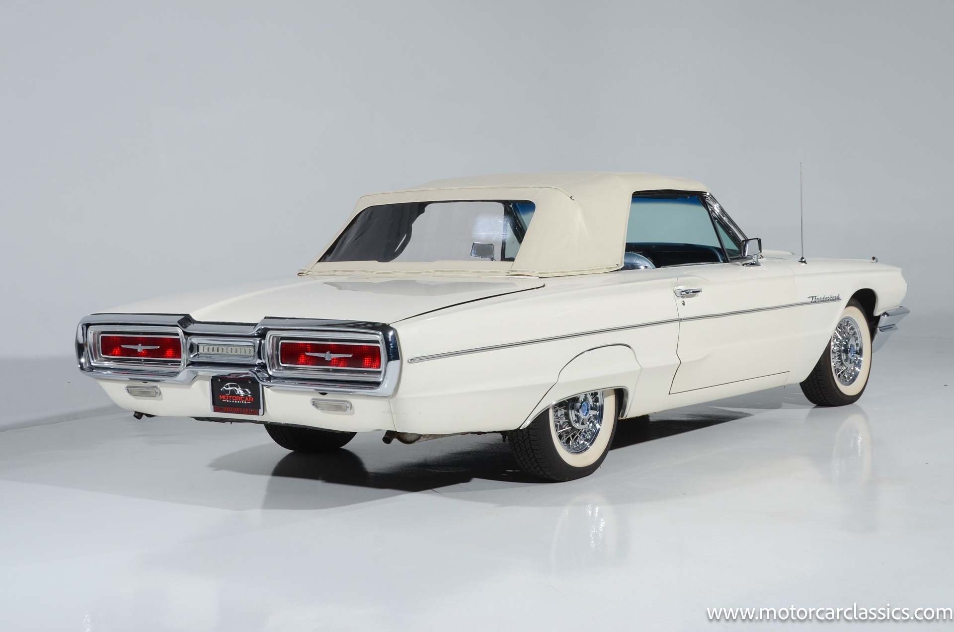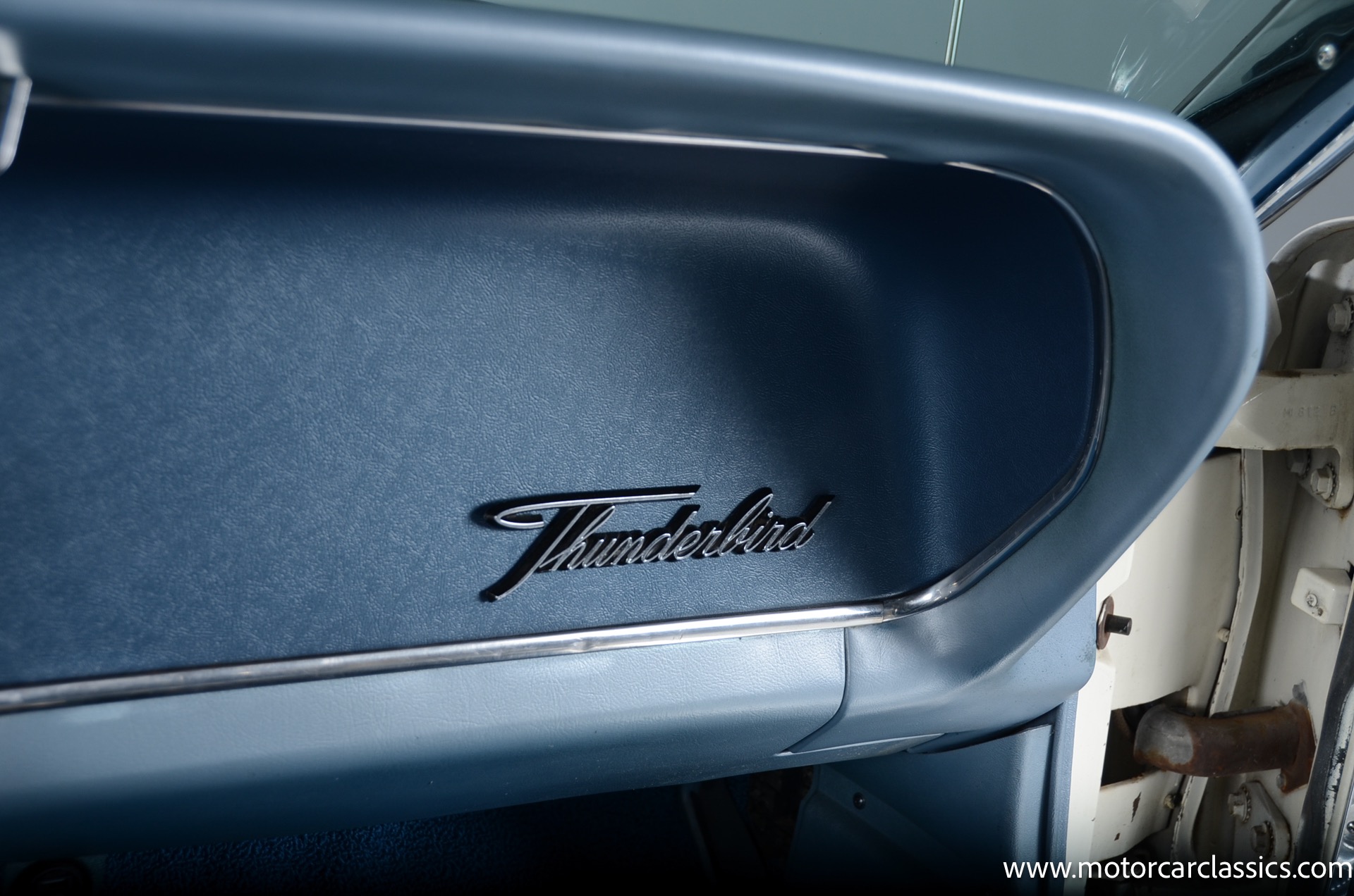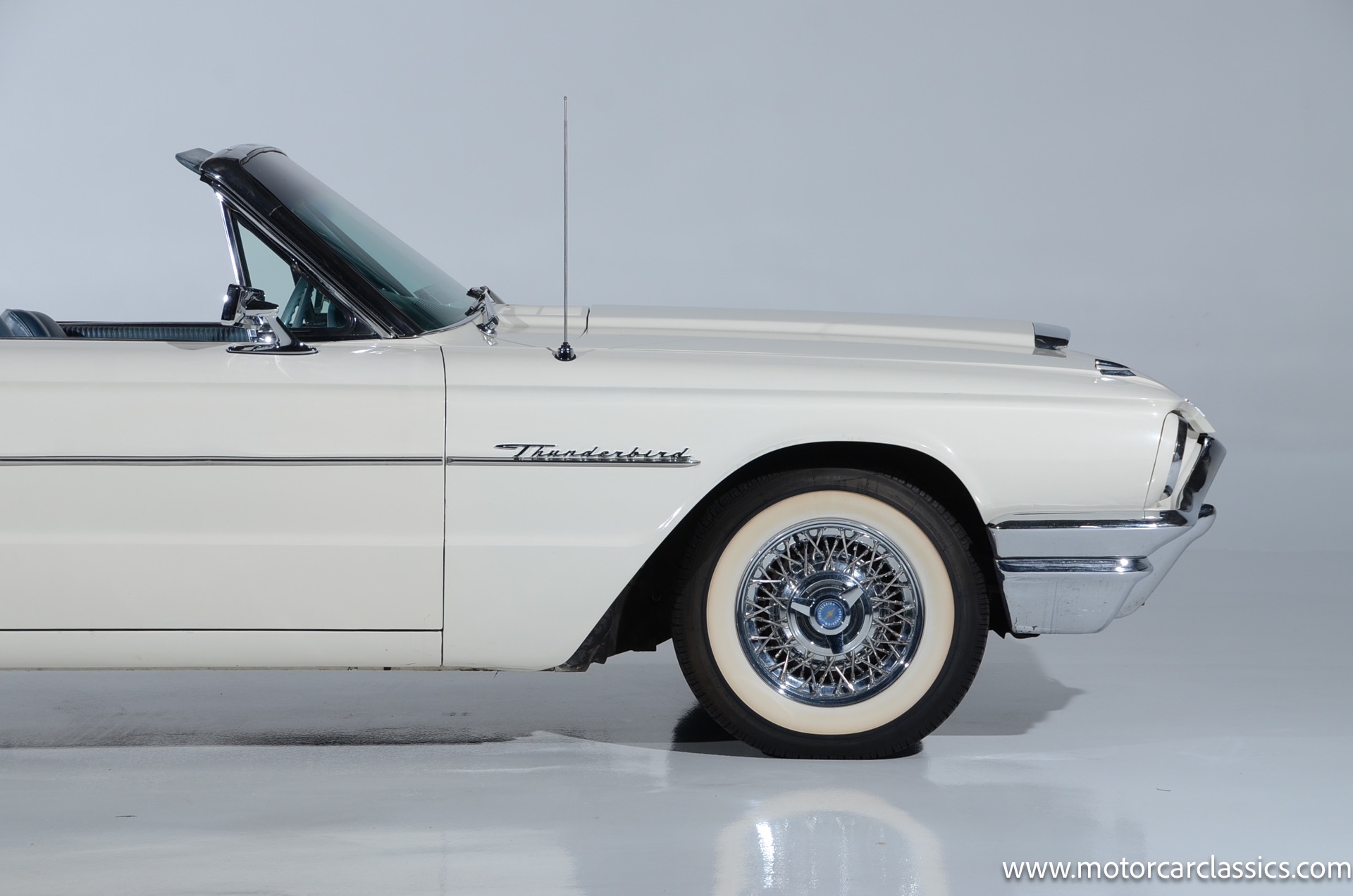 1964 Ford Thunderbird for sale! Motorcar Classics is pleased to present this stunning 1964 Ford Thunderbird Convertible that will transport you back to an era of style and sophistication. Finished in elegant Wimbledon White, the sleek lines and sculpted contours of this Thunderbird are sure to turn heads. The crisp, white convertible top provides an effortless open-air driving experience, perfect for cruising on warm summer evenings.