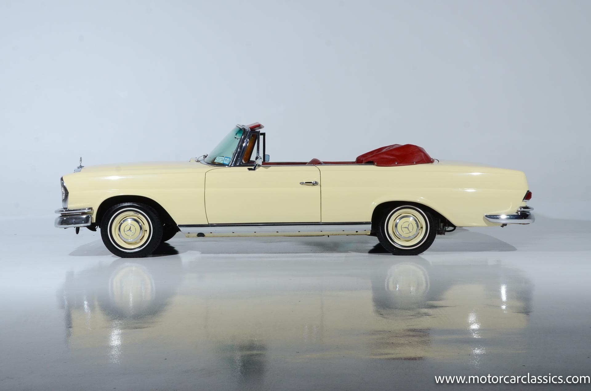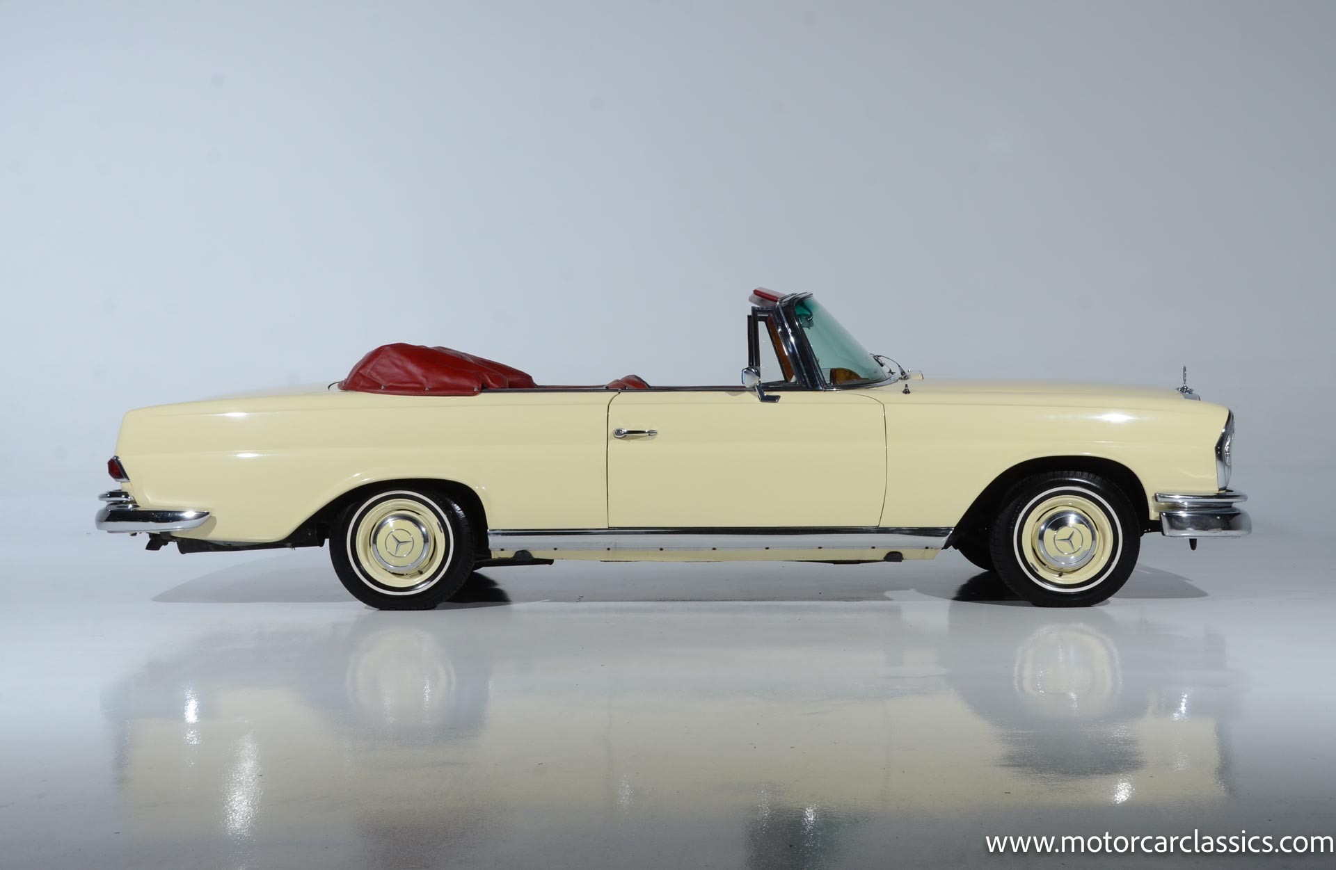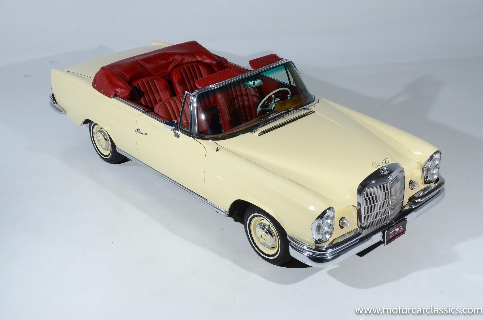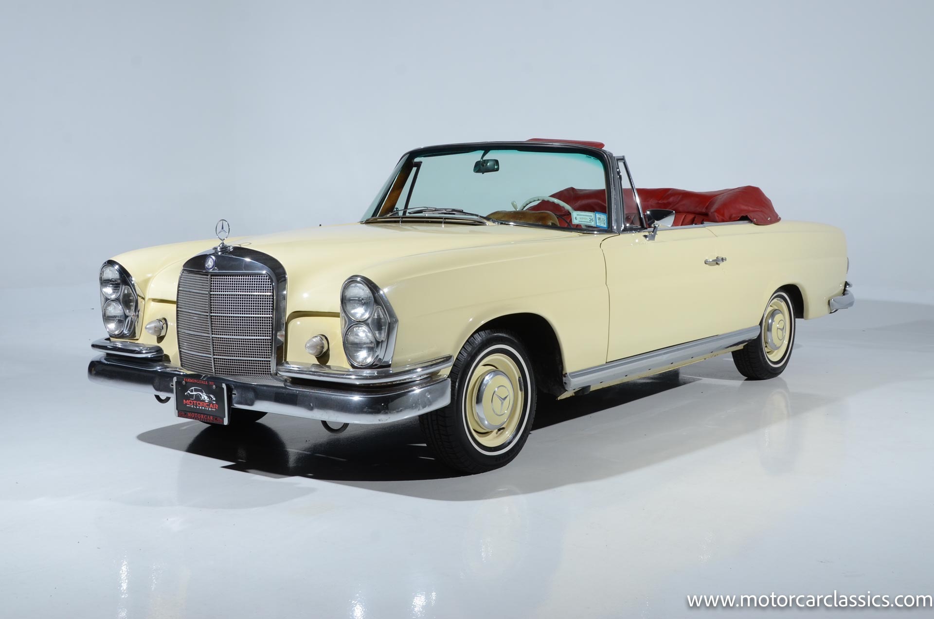 1964 Mercedes-Benz 220 SEb for sale! Motorcar Classics is pleased to present this 1964 Mercedes-Benz 220SEb Cabriolet featured in pale yellow with a contrasting red leather interior and black convertible top. Having remained in the same family's care for decades, this 220SEb Cabriolet has been well-maintained and presents as a nice driver-level example in largely original condition. The odometer shows 24,926 miles, though the true mileage is unknown. Recently treated to a tune-up and service, this Mercedes runs and drives well, ready to be enjoyed on the open road.