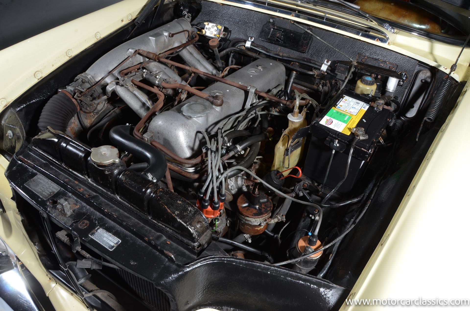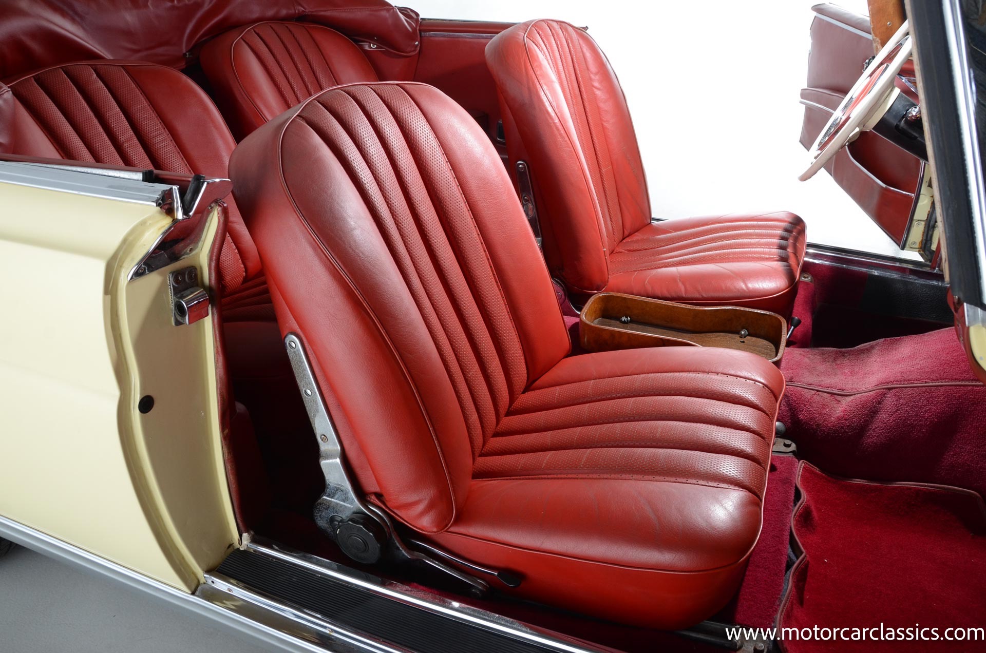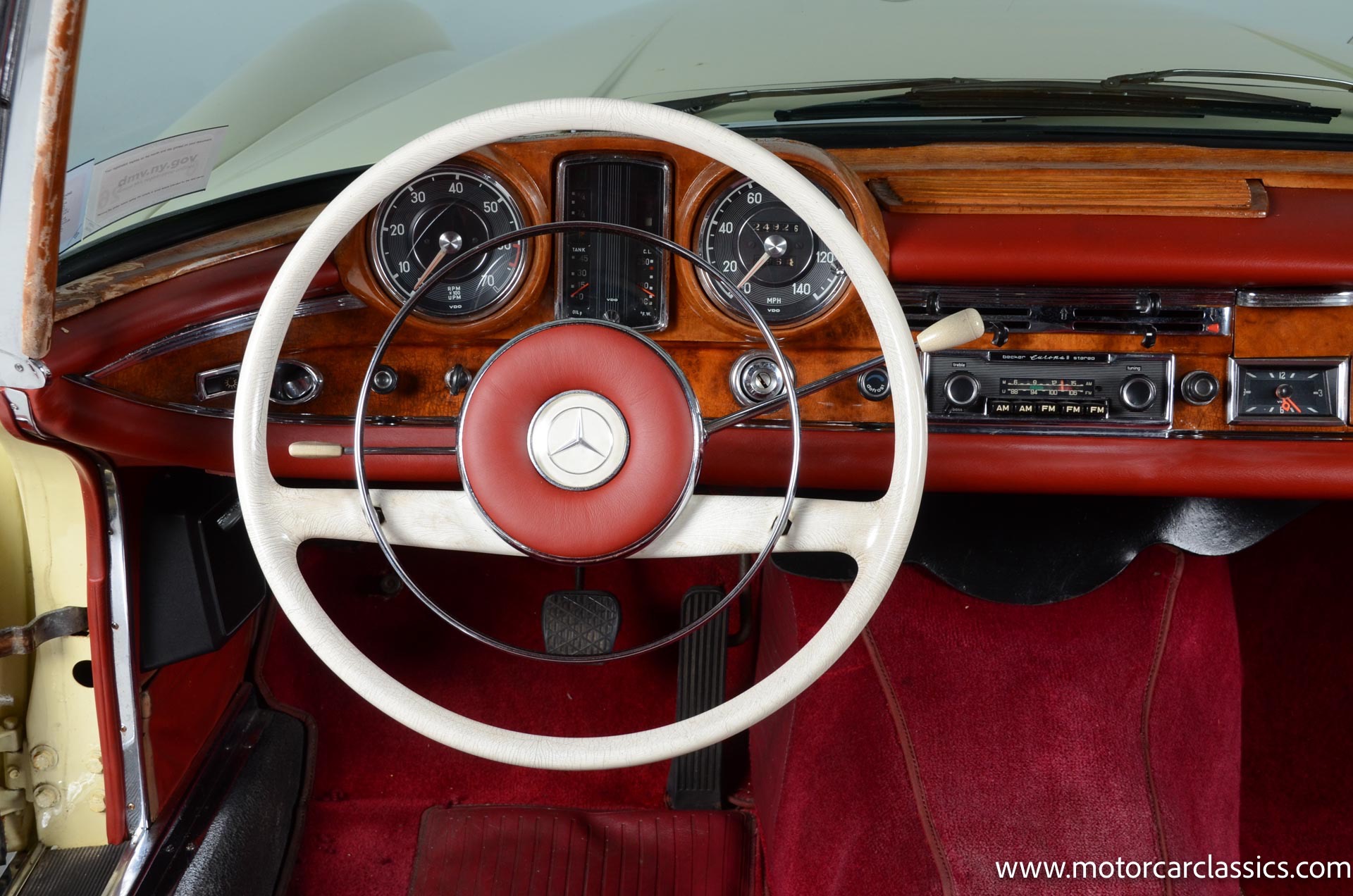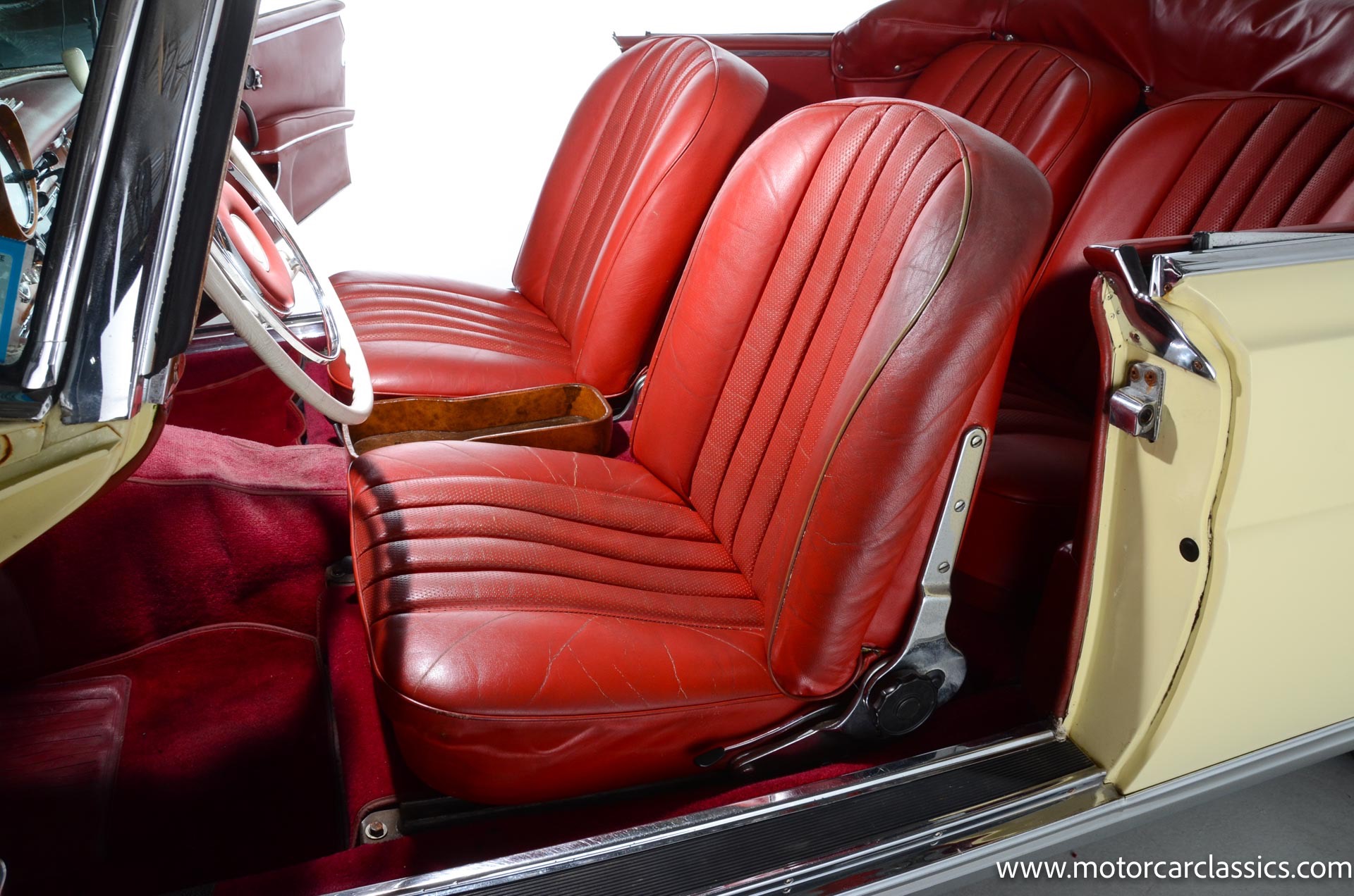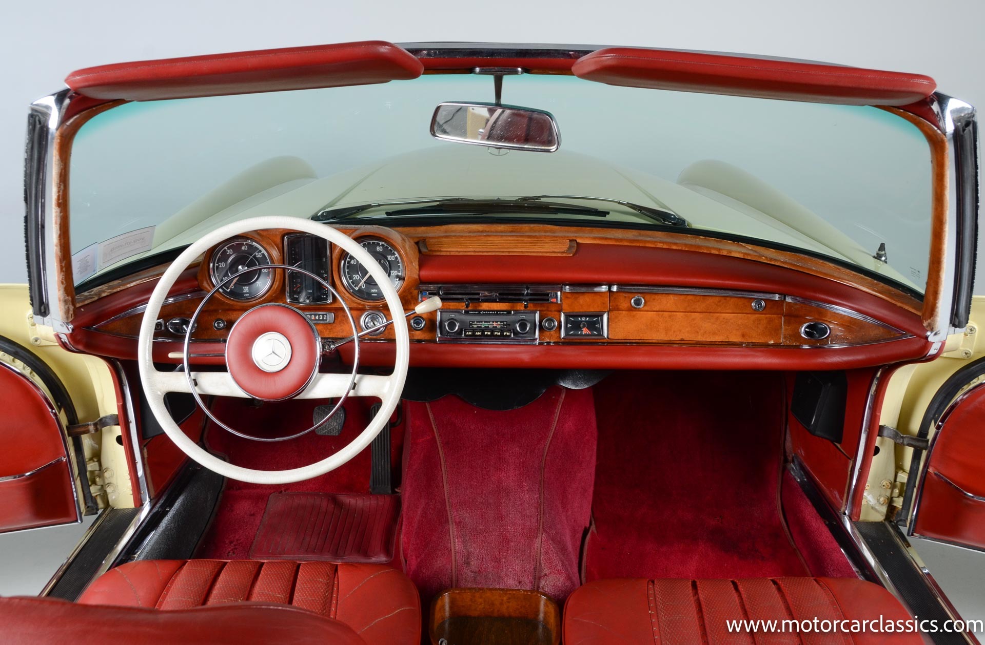 1964 Mercedes-Benz 220 SEb for sale! Motorcar Classics is pleased to present this 1964 Mercedes-Benz 220SEb Cabriolet featured in pale yellow with a contrasting red leather interior and black convertible top. Having remained in the same family's care for decades, this 220SEb Cabriolet has been well-maintained and presents as a nice driver-level example in largely original condition. The odometer shows 24,926 miles, though the true mileage is unknown. Recently treated to a tune-up and service, this Mercedes runs and drives well, ready to be enjoyed on the open road.