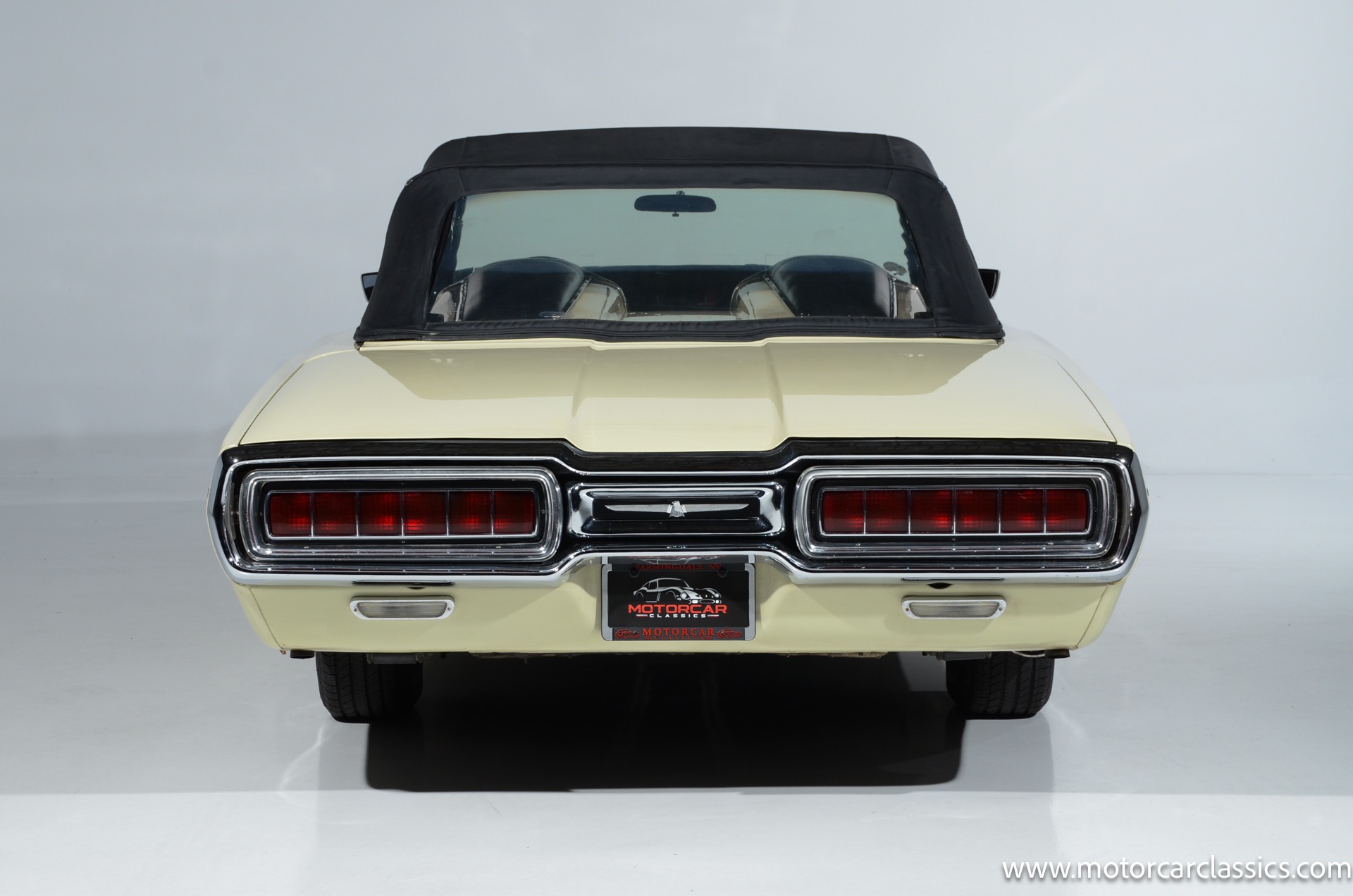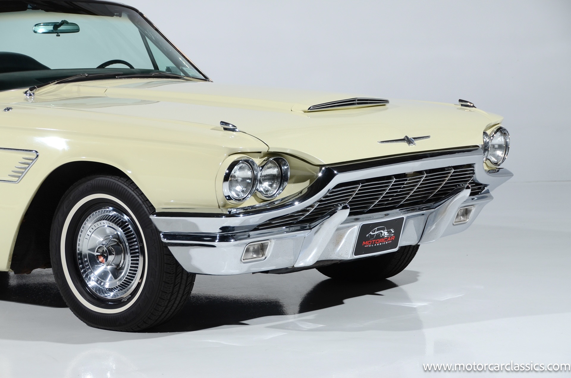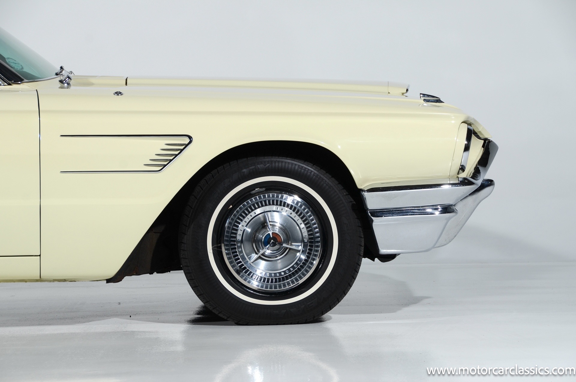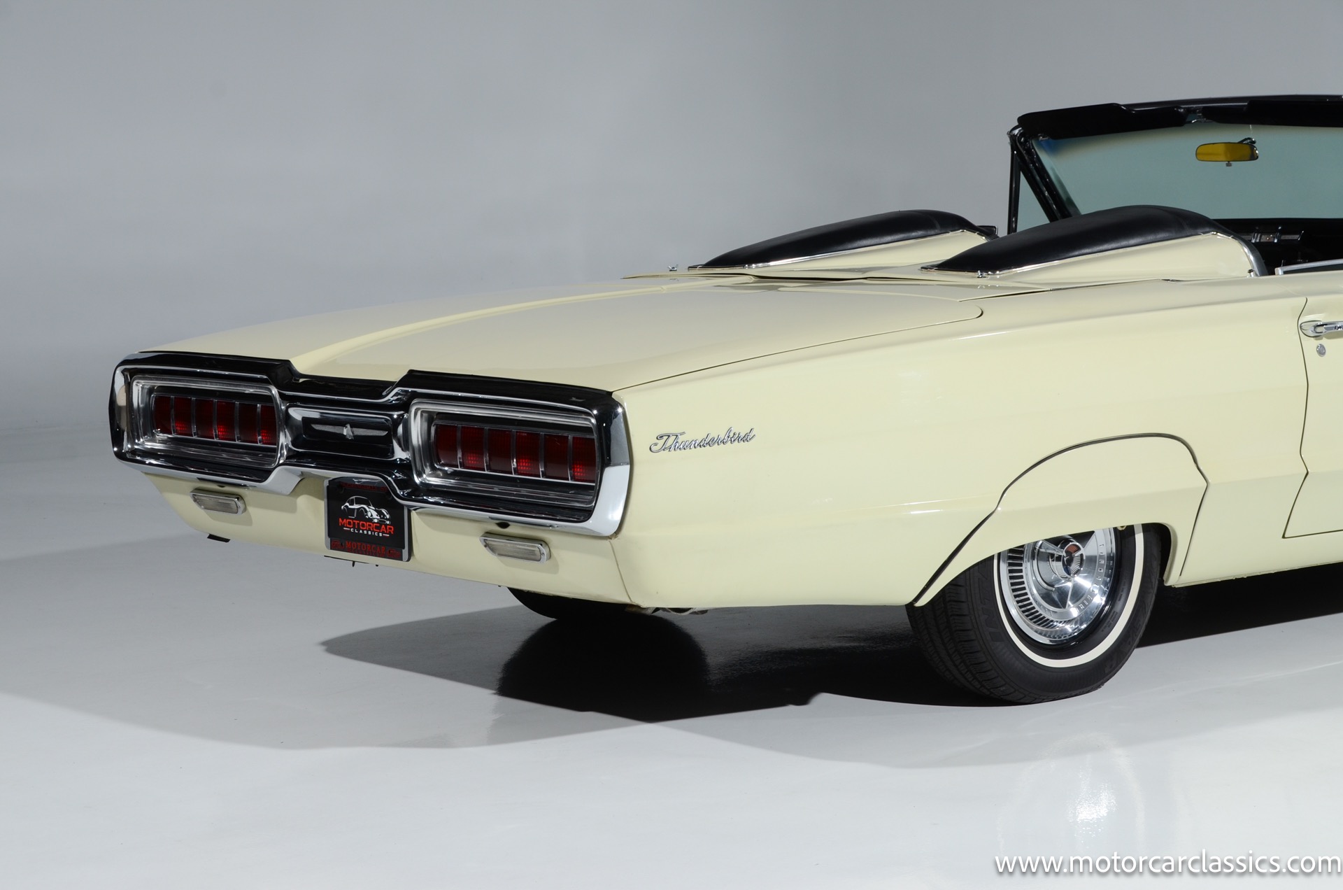 1965 Ford Thunderbird for sale! Motorcar classics is pleased to present a classic blend of American power and luxury - the 1965 Ford Thunderbird Convertible. This iconic machine is finished in a sophisticated pastel yellow exterior that beautifully complements the Black vinyl interior, making it an eye-catching expression of timeless elegance.