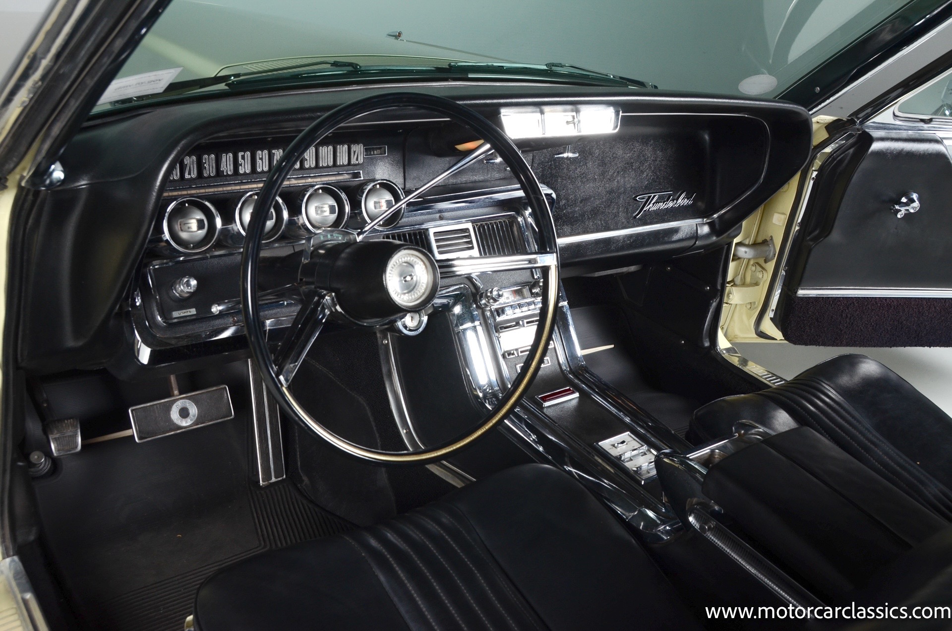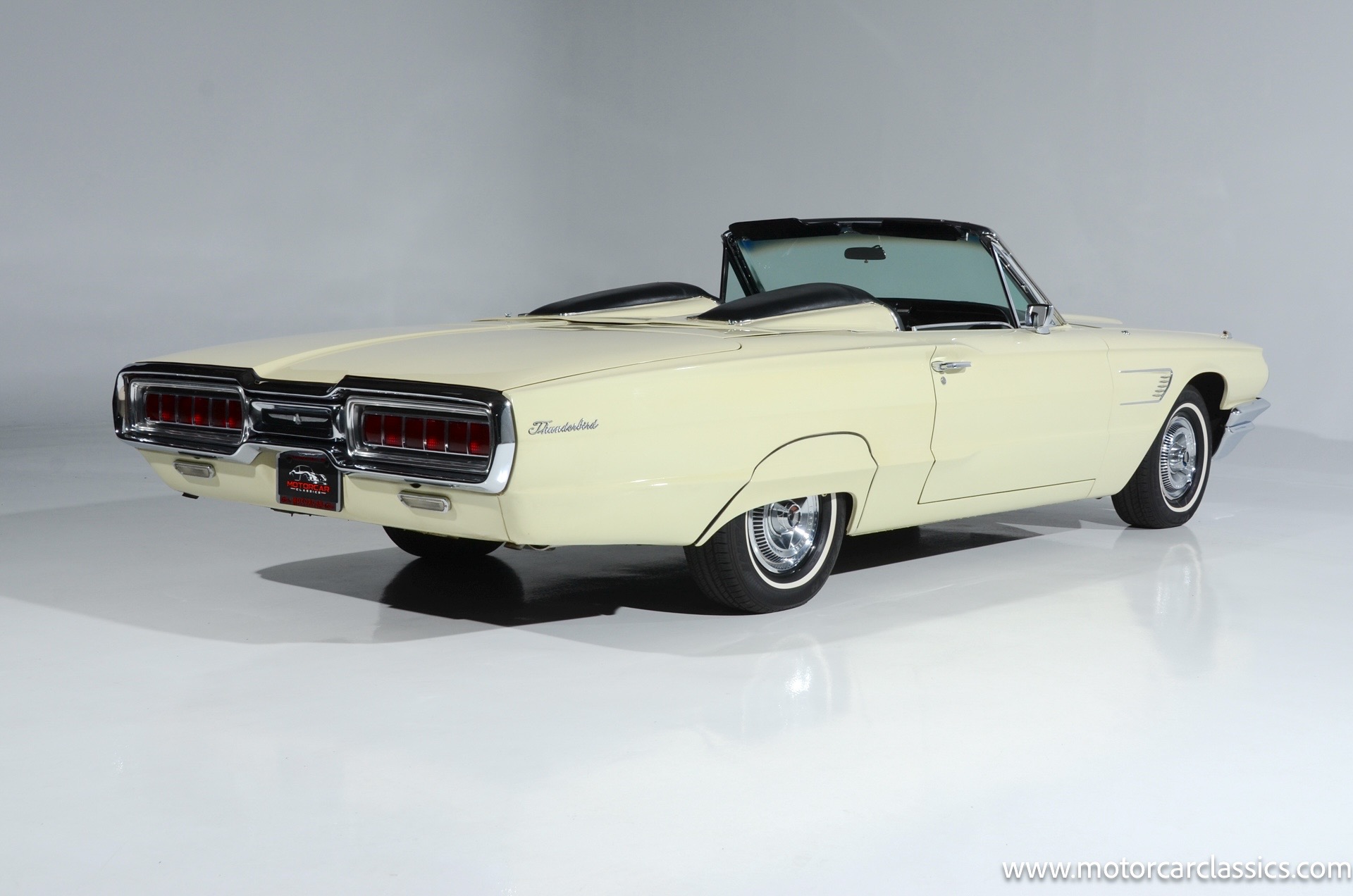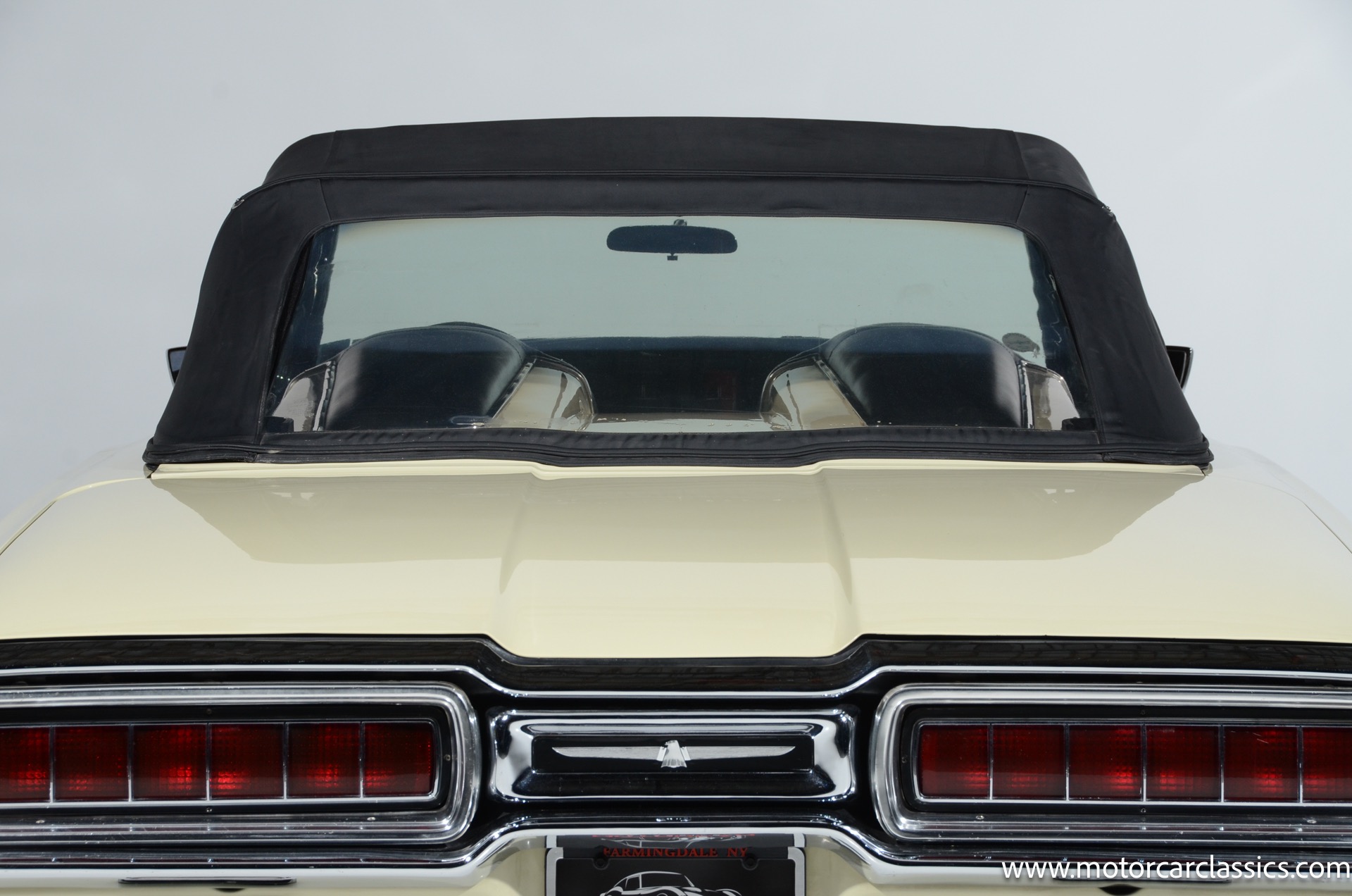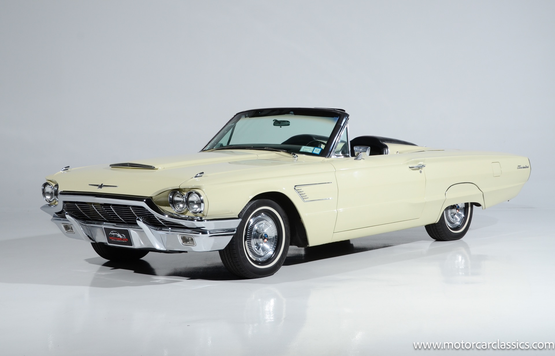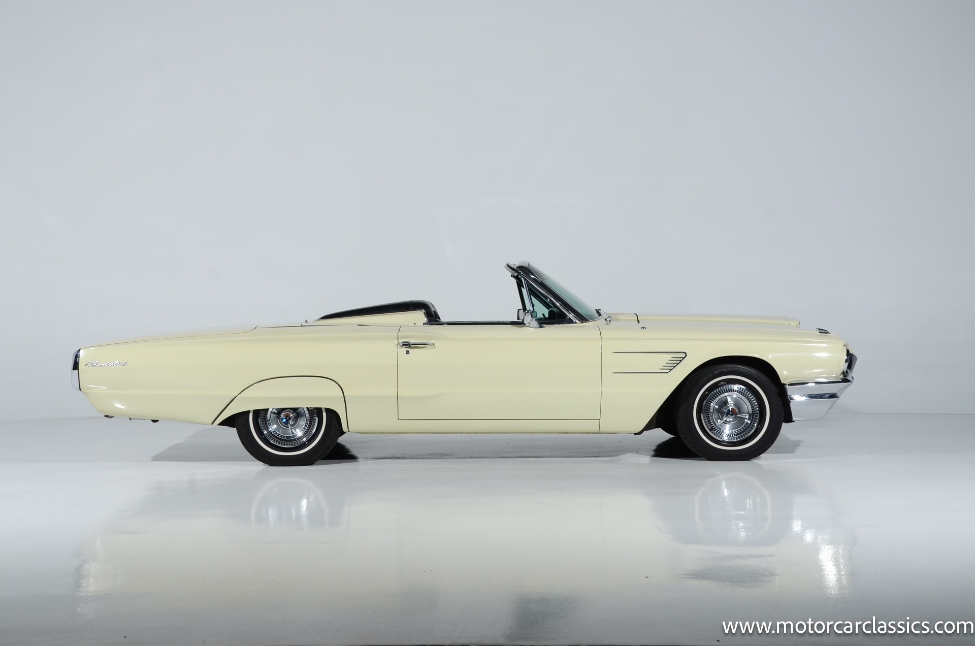 1965 Ford Thunderbird for sale! Motorcar classics is pleased to present a classic blend of American power and luxury - the 1965 Ford Thunderbird Convertible. This iconic machine is finished in a sophisticated pastel yellow exterior that beautifully complements the Black vinyl interior, making it an eye-catching expression of timeless elegance.