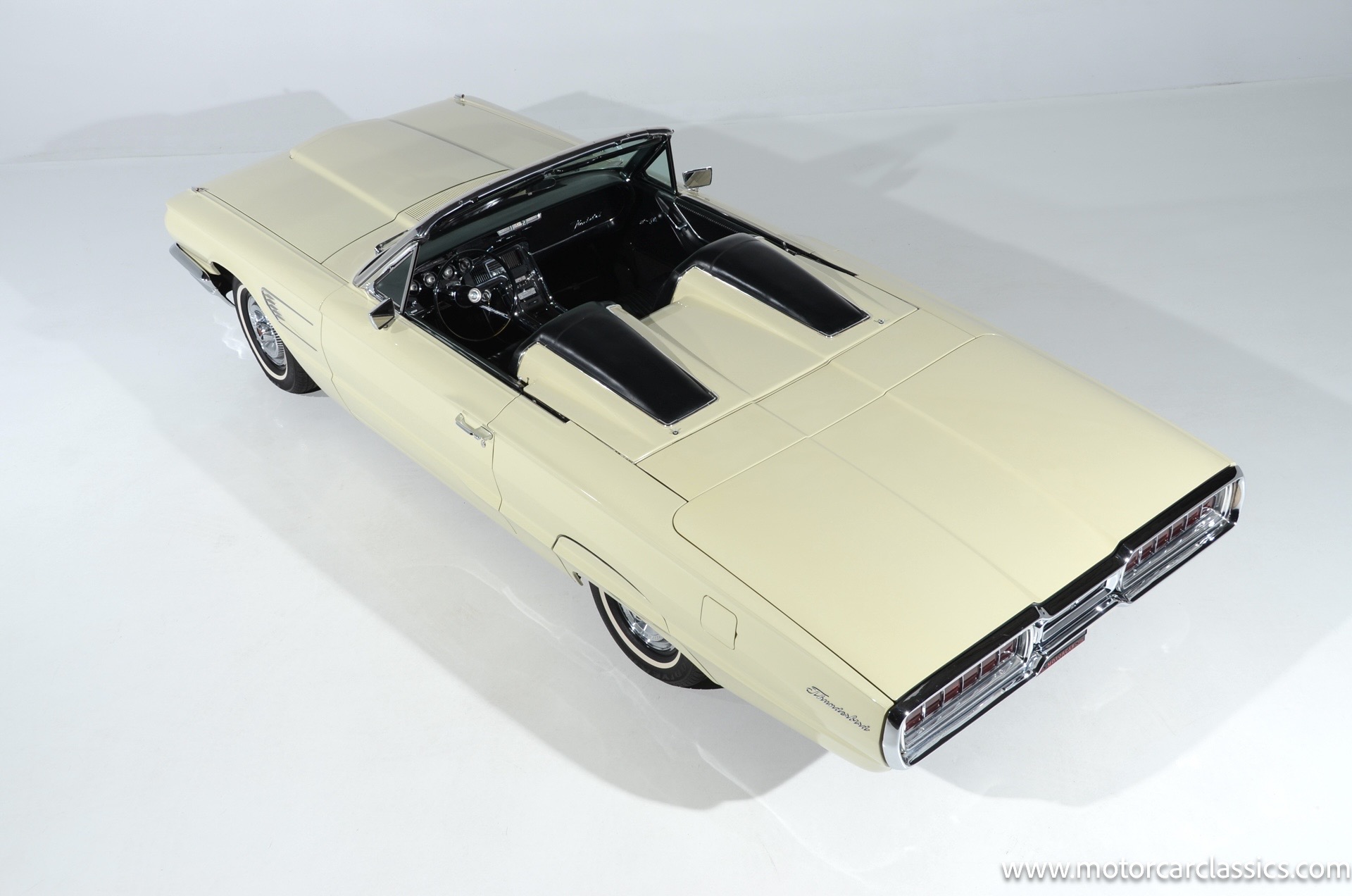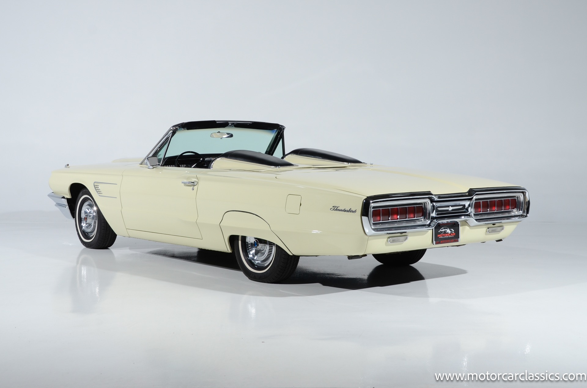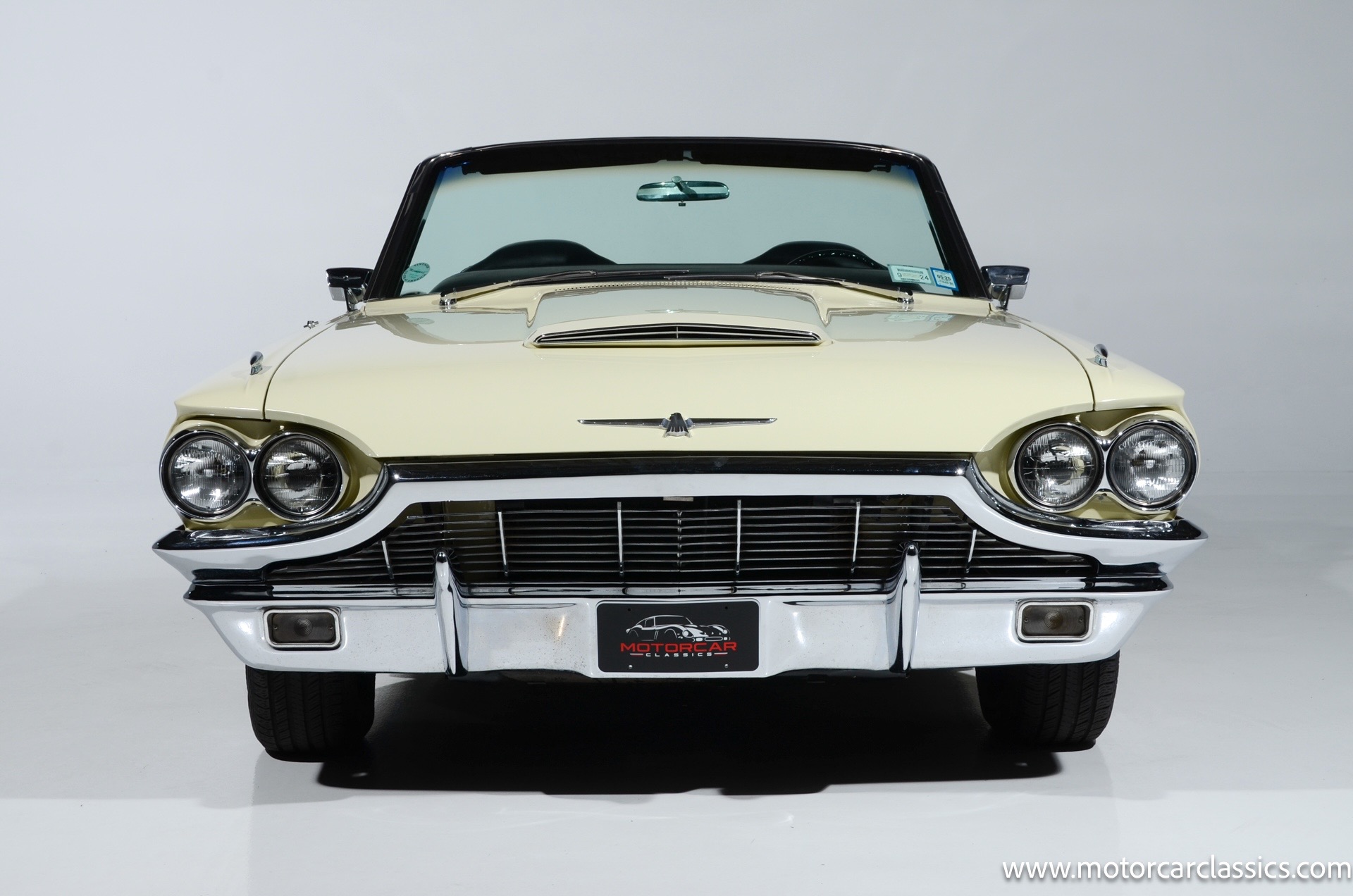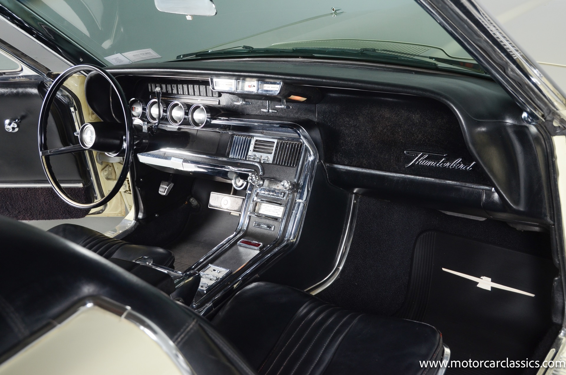 1965 Ford Thunderbird for sale! Motorcar classics is pleased to present a classic blend of American power and luxury - the 1965 Ford Thunderbird Convertible. This iconic machine is finished in a sophisticated pastel yellow exterior that beautifully complements the Black vinyl interior, making it an eye-catching expression of timeless elegance.