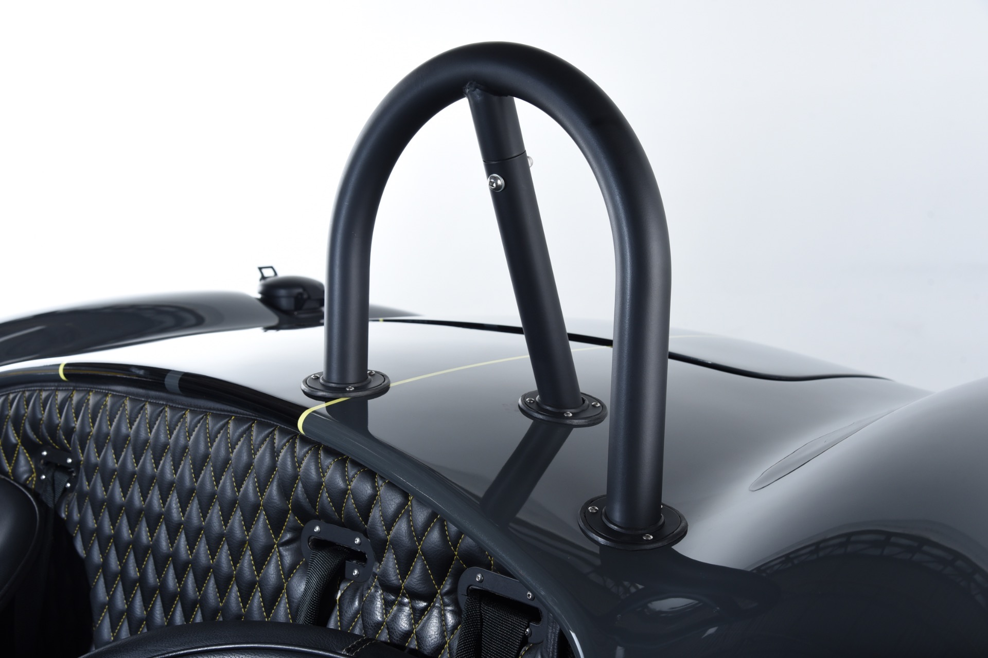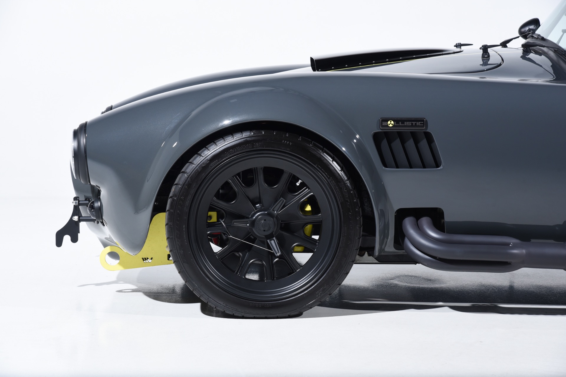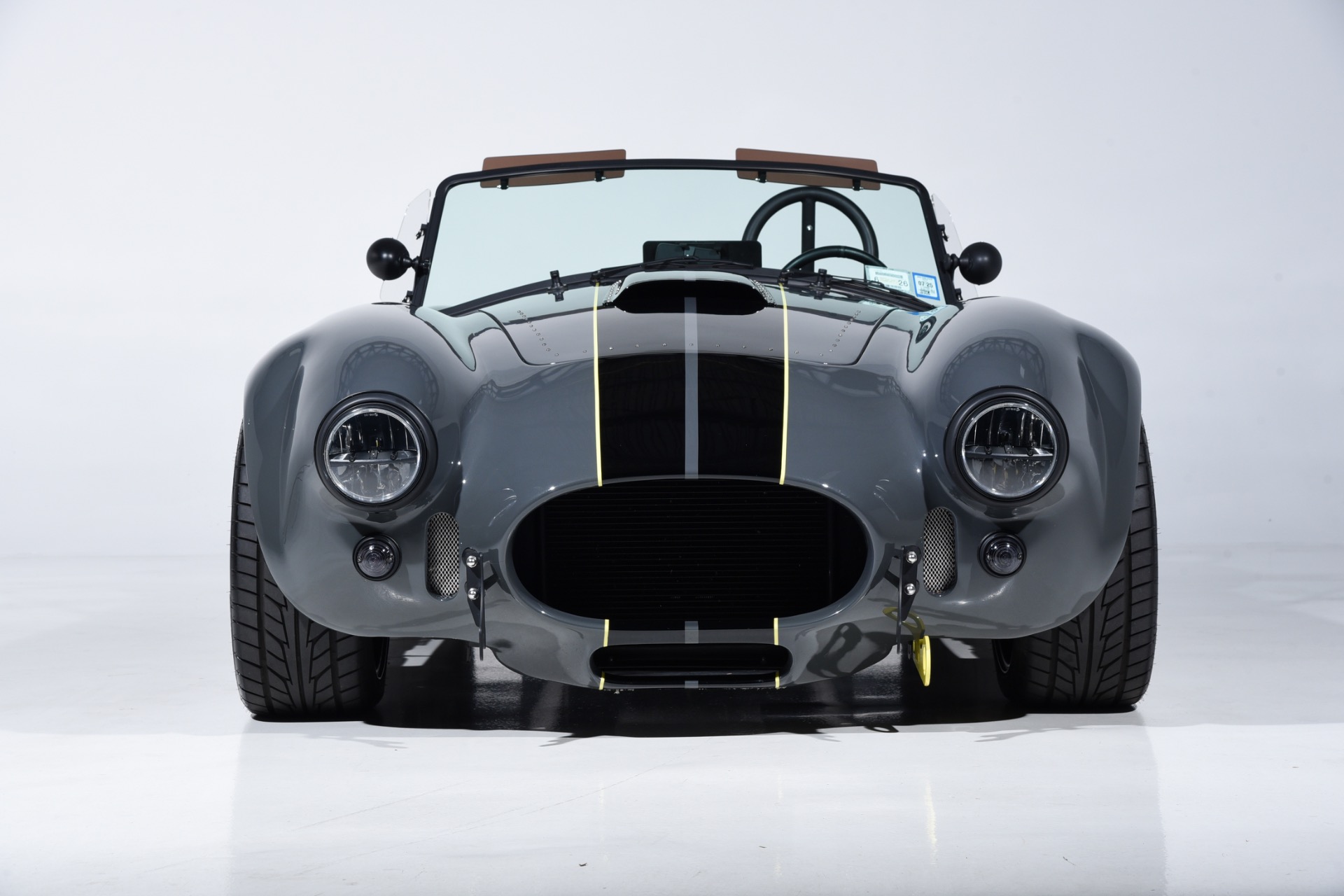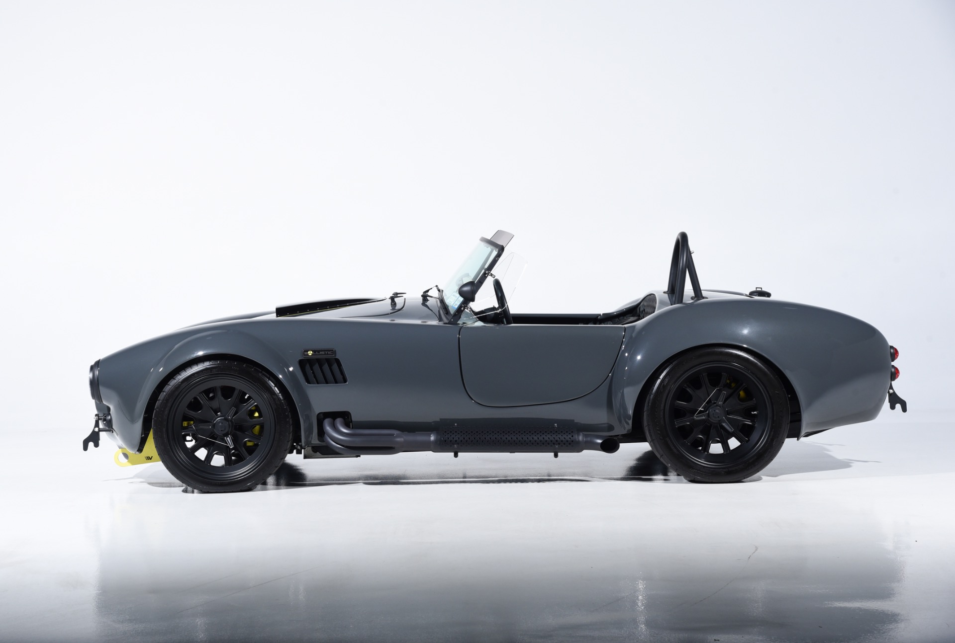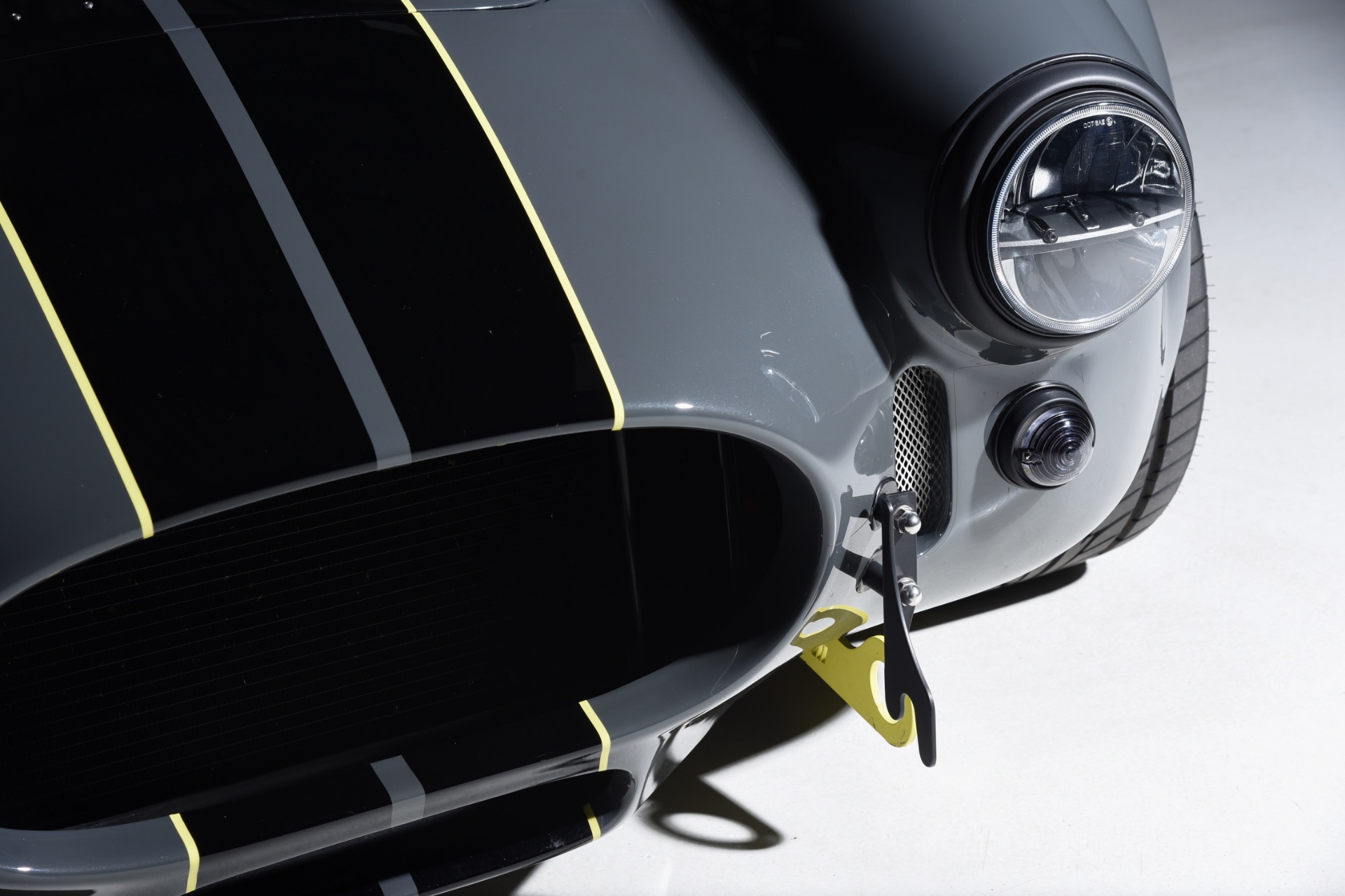 1965 Shelby Cobra Backdraft for sale! Motorcar Classics is proud to present this very special 1966 Shelby Cobra Backdraft for sale. Presented in nearly-new and excellent condition this Backdraft Cobra has only 1,727 miles. Presented in Grigio Telestro with black stripes and yellow outlines. VMS 427 crate engine with 525 HP. Tremec TKO-600 Transmission. Options include: Carbon fiber dash with yellow gauges, Sparco suede steering wheel, Richbrook start button, Suspension upgrade includes springs, billet perches, shocks and sway bar mounts, AFCO aluminum racing radiator upgrade, aluminum fuel tank with internal fuel pump for fuel injection, blacked out wheels, wheel strobe stripes in yellow, Hurst short shift handle with carbon fiber shift knob, yellow brake calipers, Stage 1 cross stitch interior includes transmission tunnel and door panels, Ray Dot mirror, LED projector headlights upgrade, Blackbird style 4 point cam lock harness set, ceramic coated headers, ceramic coated side pipes and heat shields, Backdraft racing solid aluminum motor mounts. In addition, the car has been upgraded with power steering and a backup camera for a more user-friendly driving experience. Your inspection is invited!