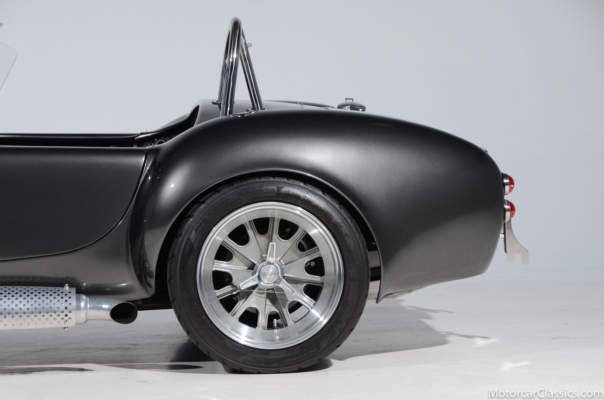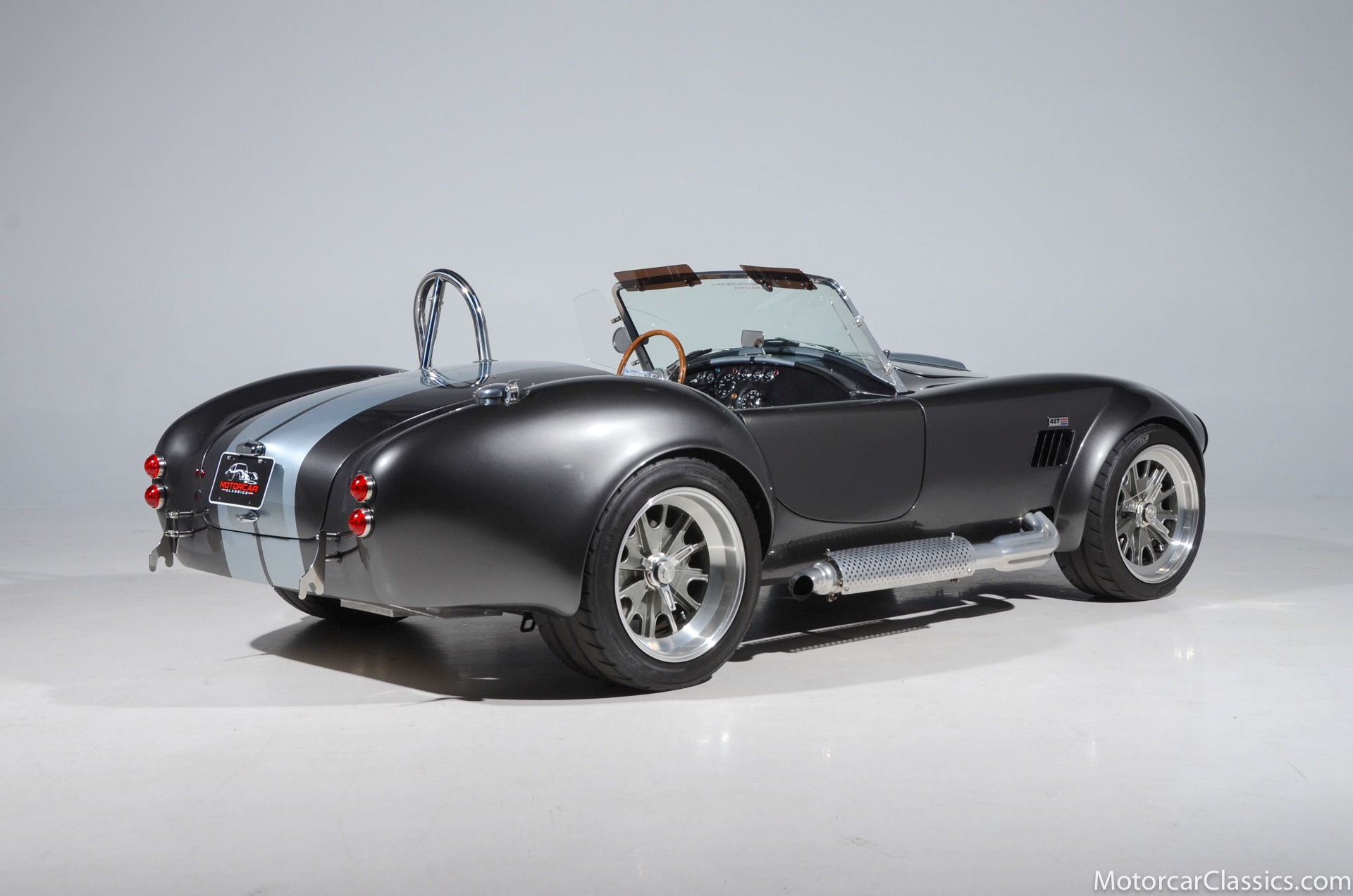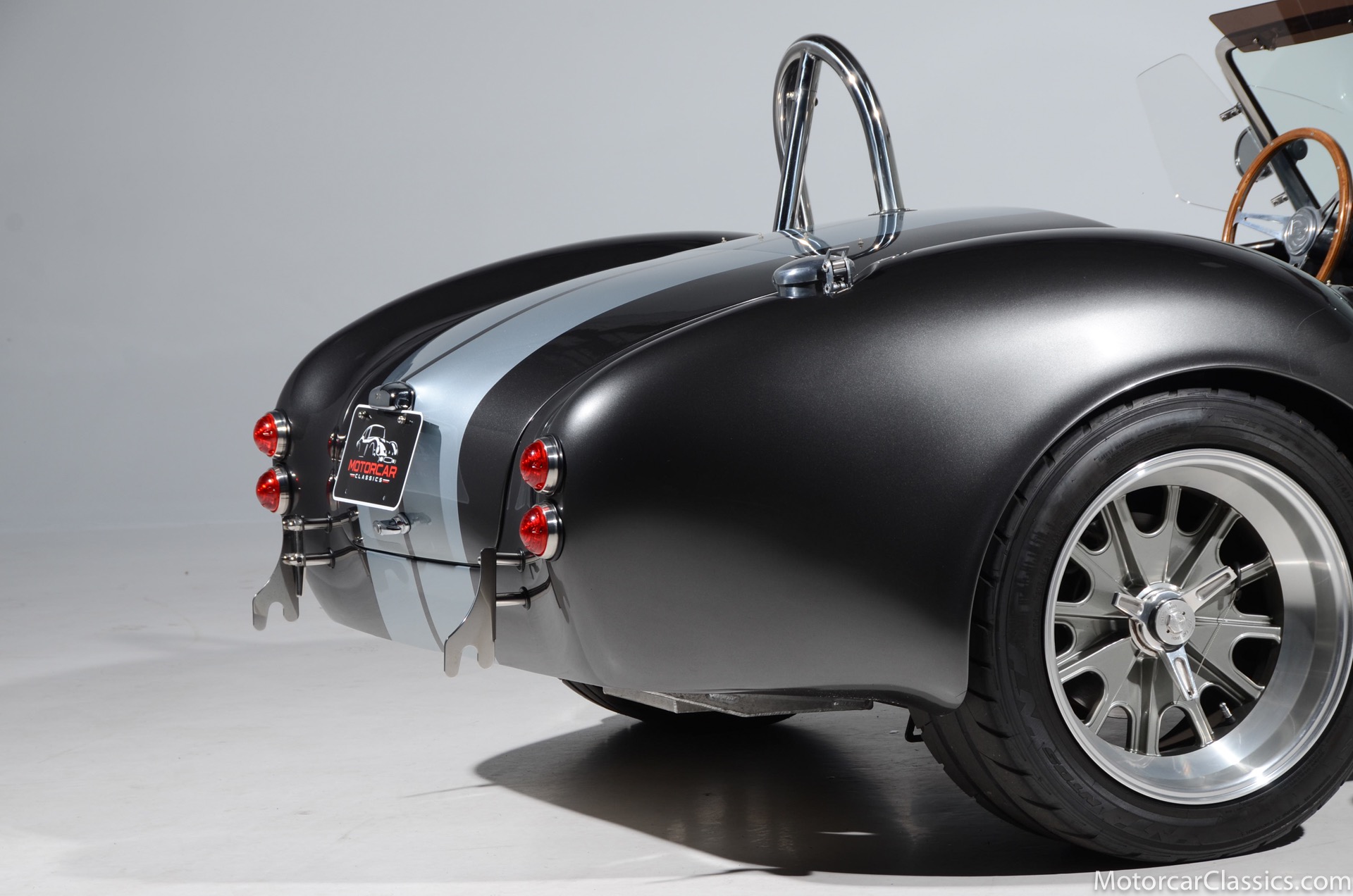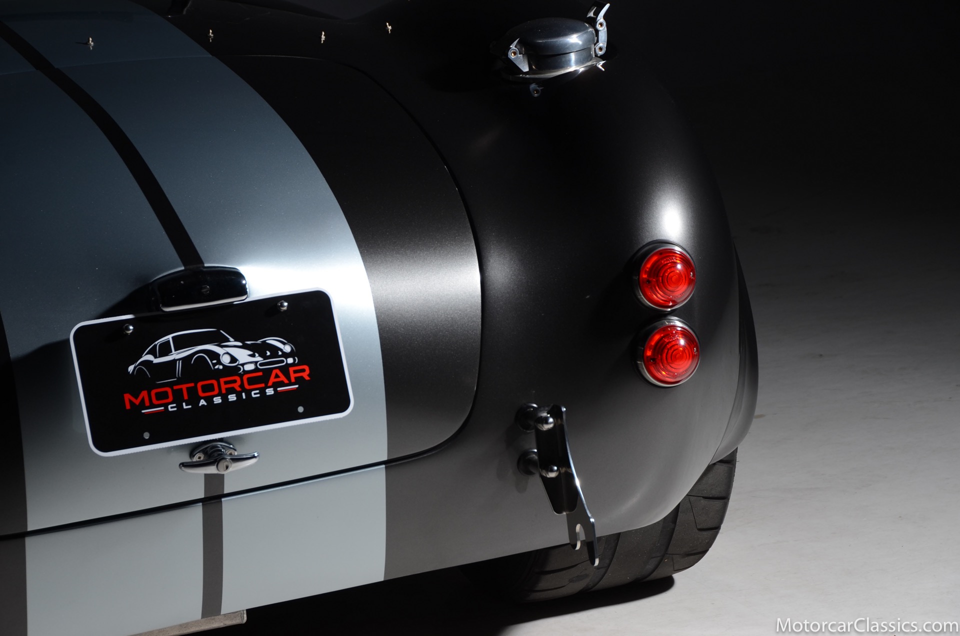 1965 Shelby Cobra Backdraft for sale! Motorcar Classics is pleased to offer this impressive 427 Cobra Backdraft tribute car presented in Grigio Silverstone with a Silverstone Silver stripe and Black interior. This Cobra was completed in 9/7/2016 is still appears to be in excellent condition with only 9,084 miles. Options include side exhaust with shields, roll bar, visor wind deflectors, wood trim steering wheel, diamond stitched seats and interior, 427 Cobra engine, 4 point harness racing seat belts, knock off wheels and more!