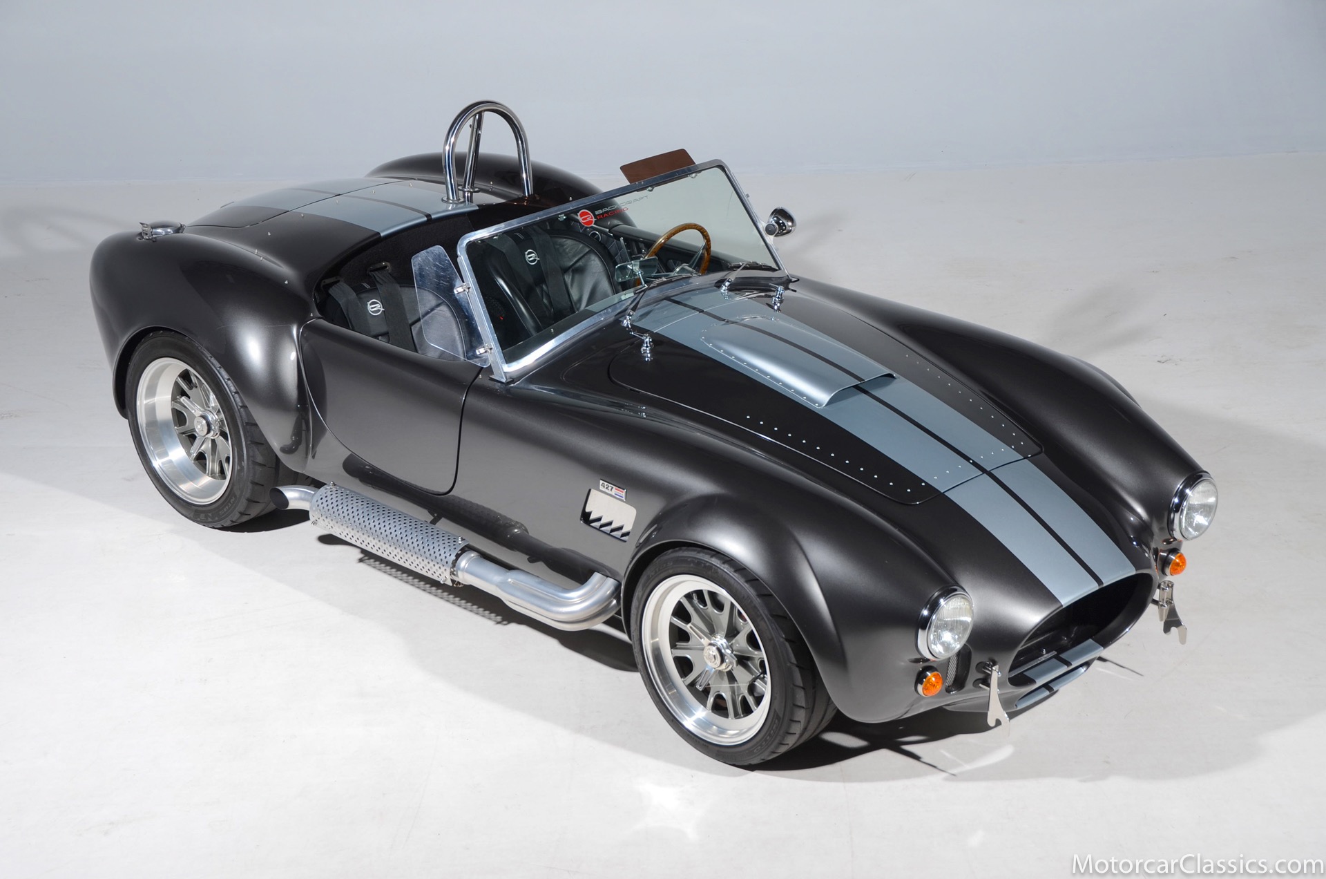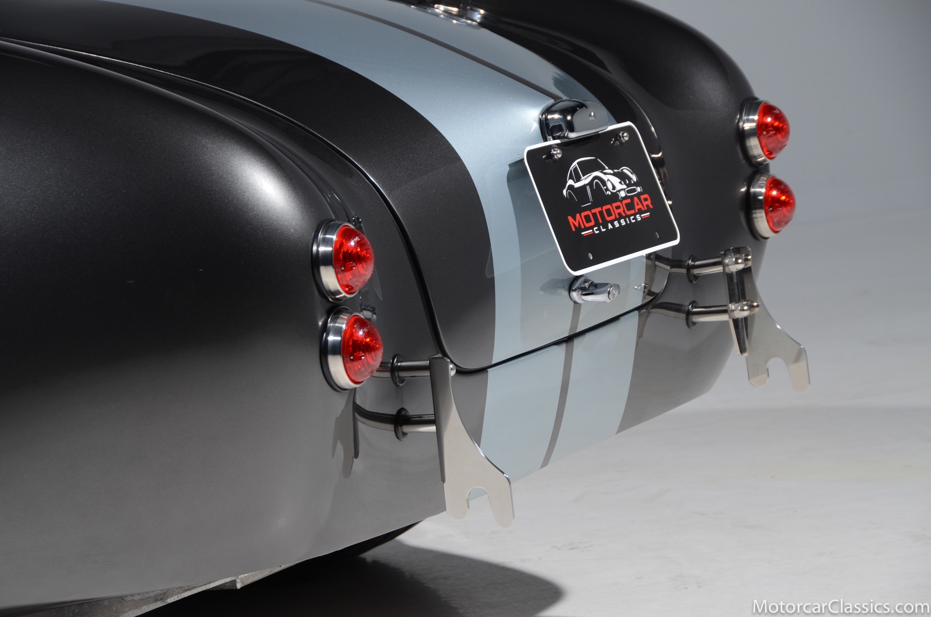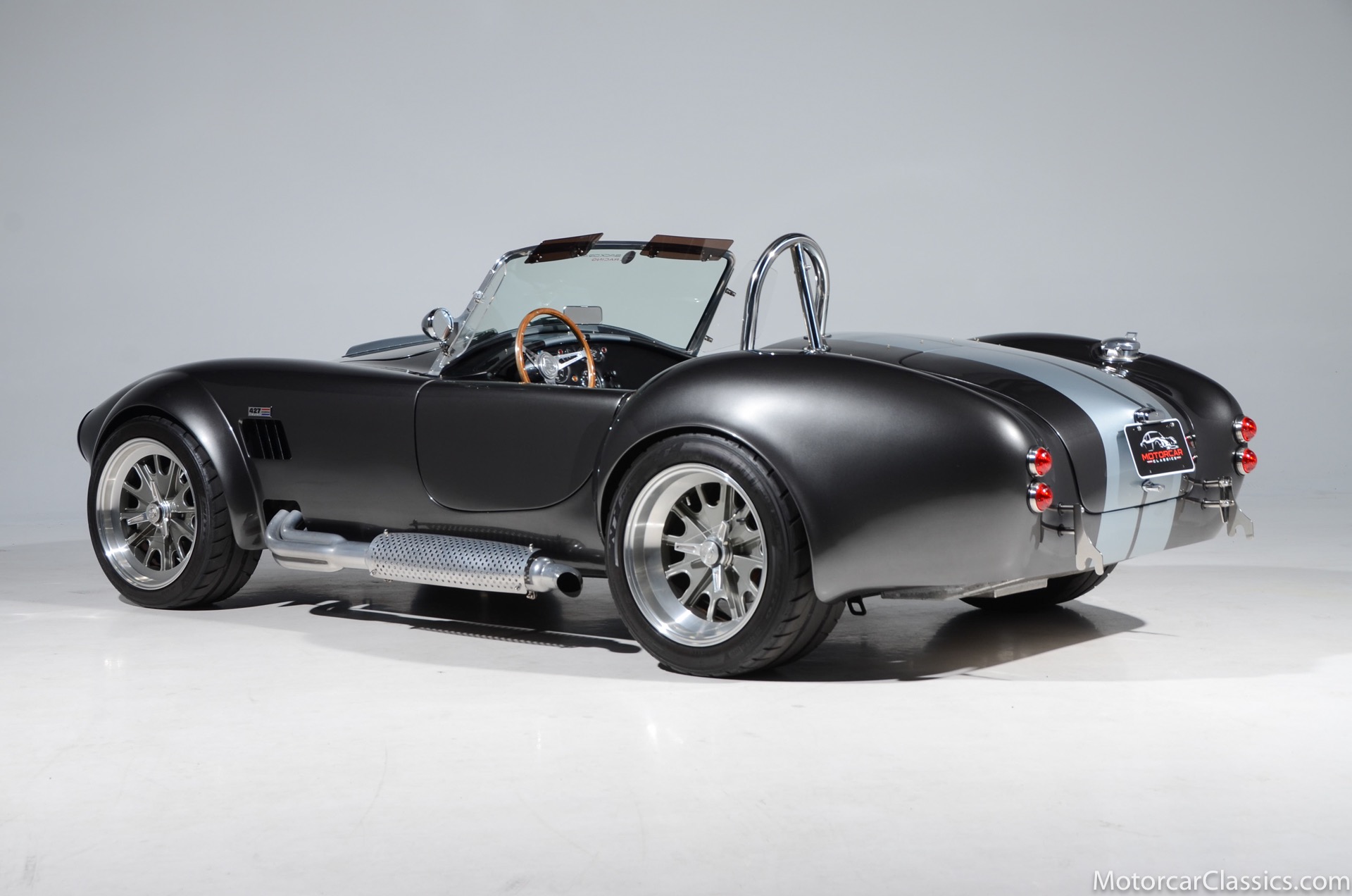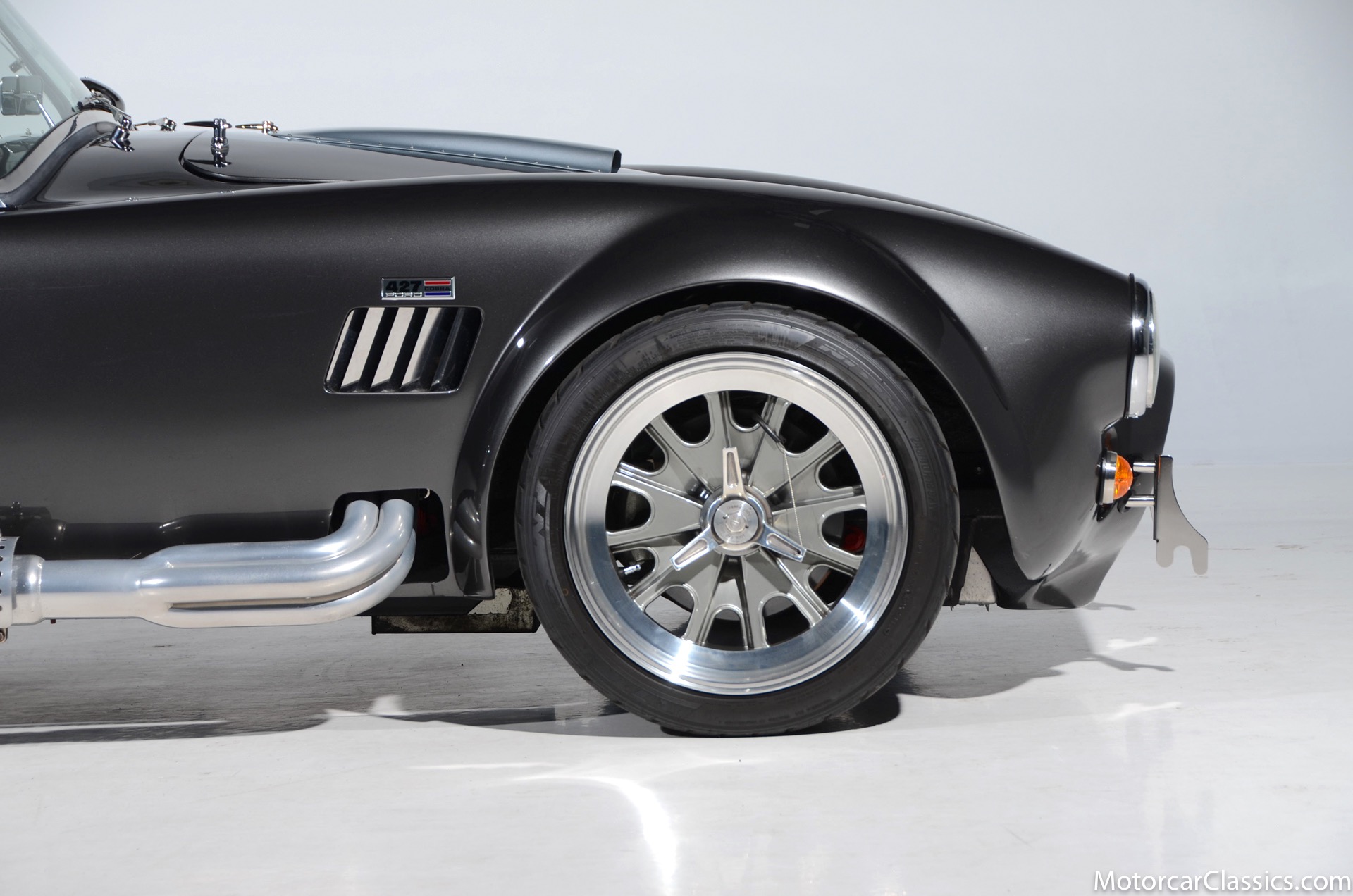 1965 Shelby Cobra Backdraft for sale! Motorcar Classics is pleased to offer this impressive 427 Cobra Backdraft tribute car presented in Grigio Silverstone with a Silverstone Silver stripe and Black interior. This Cobra was completed in 9/7/2016 is still appears to be in excellent condition with only 9,084 miles. Options include side exhaust with shields, roll bar, visor wind deflectors, wood trim steering wheel, diamond stitched seats and interior, 427 Cobra engine, 4 point harness racing seat belts, knock off wheels and more!