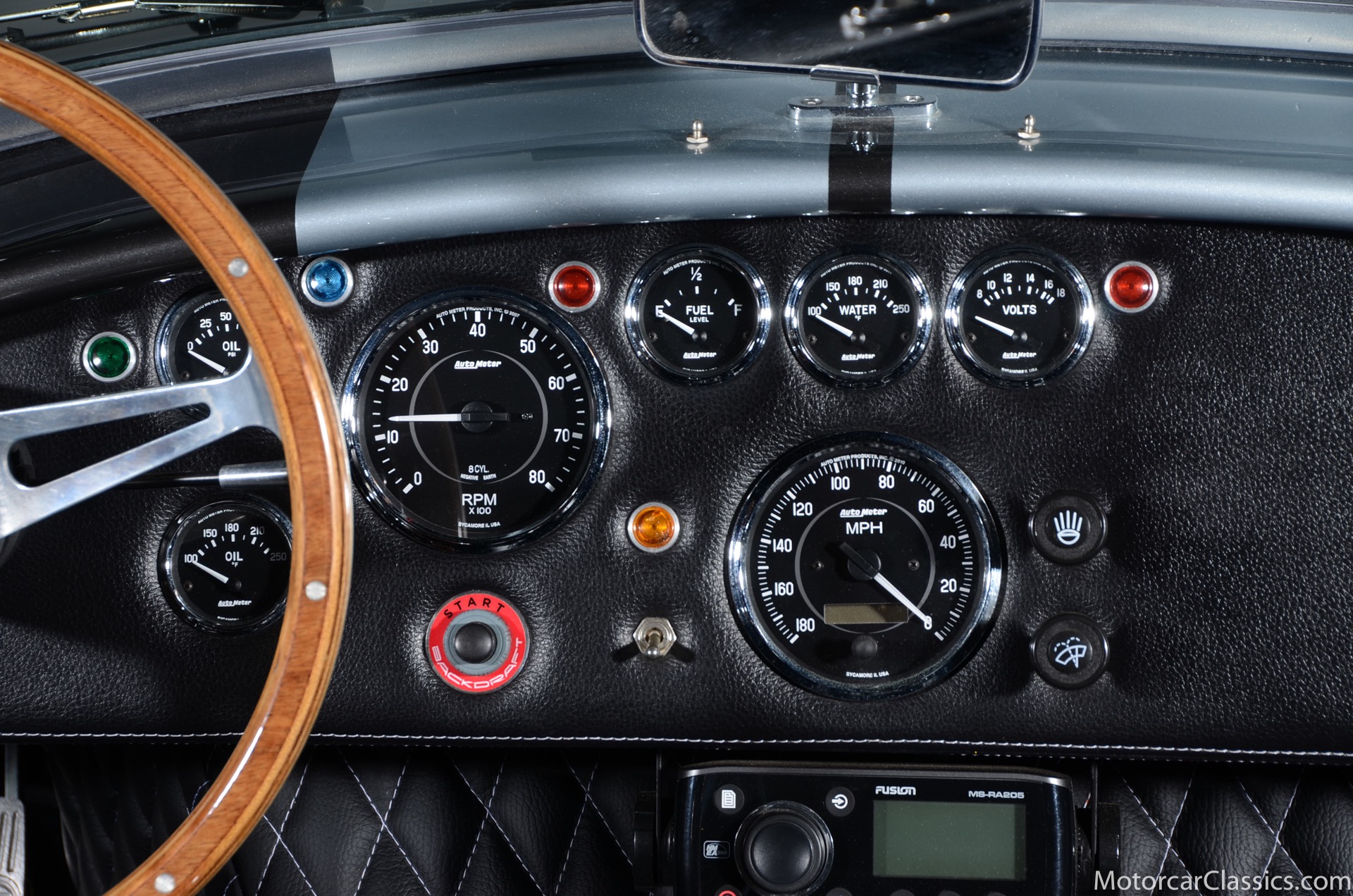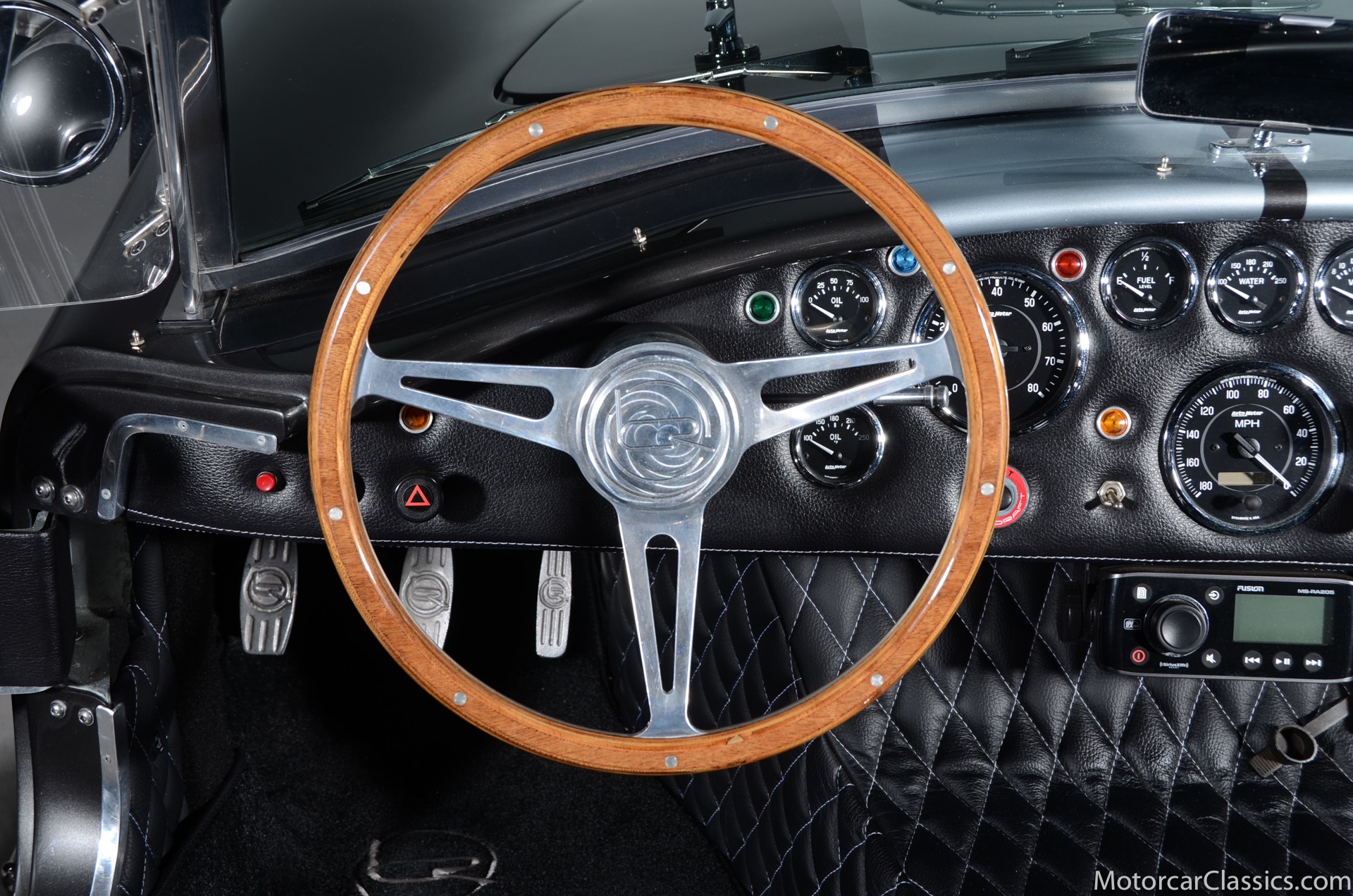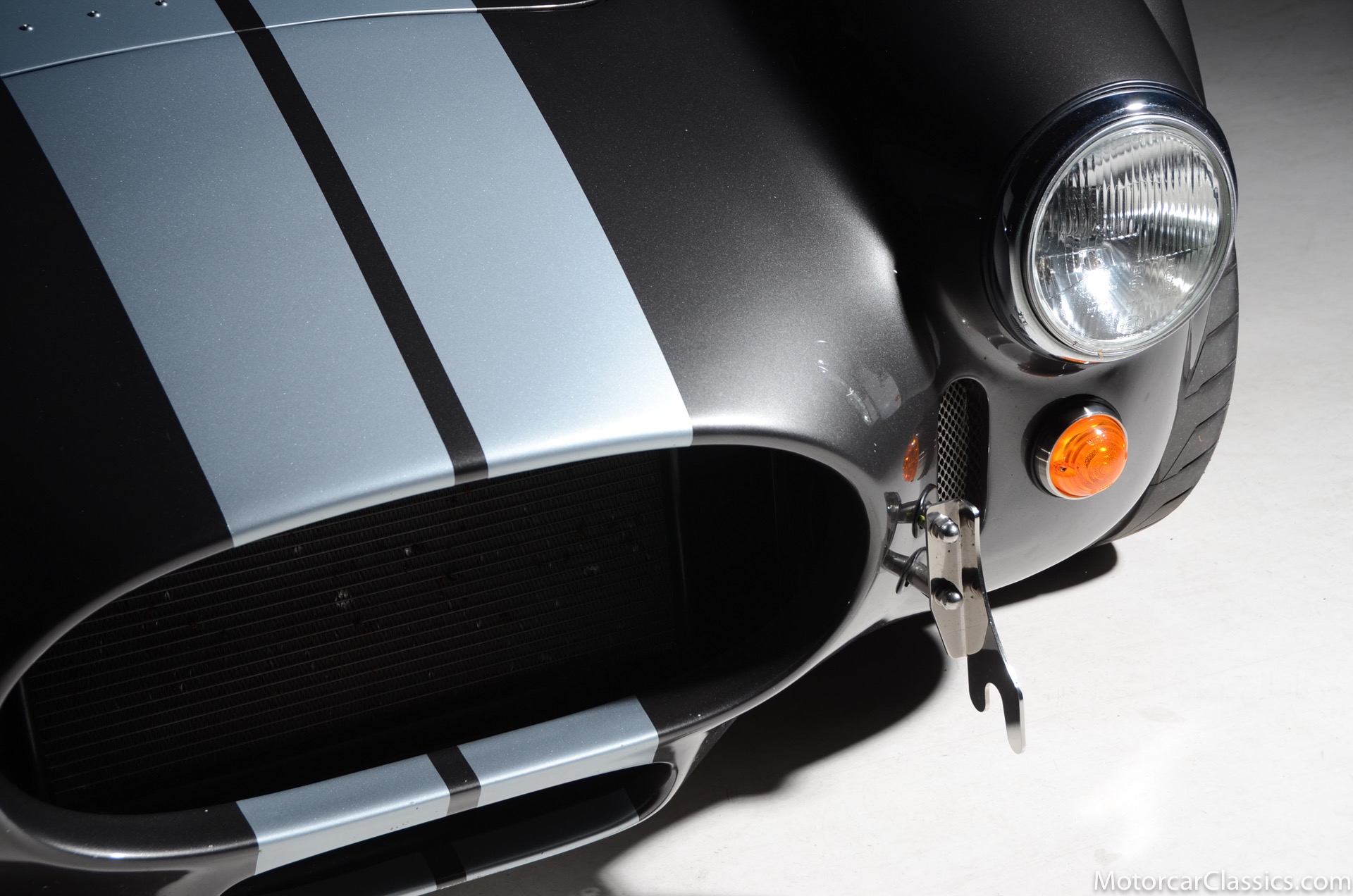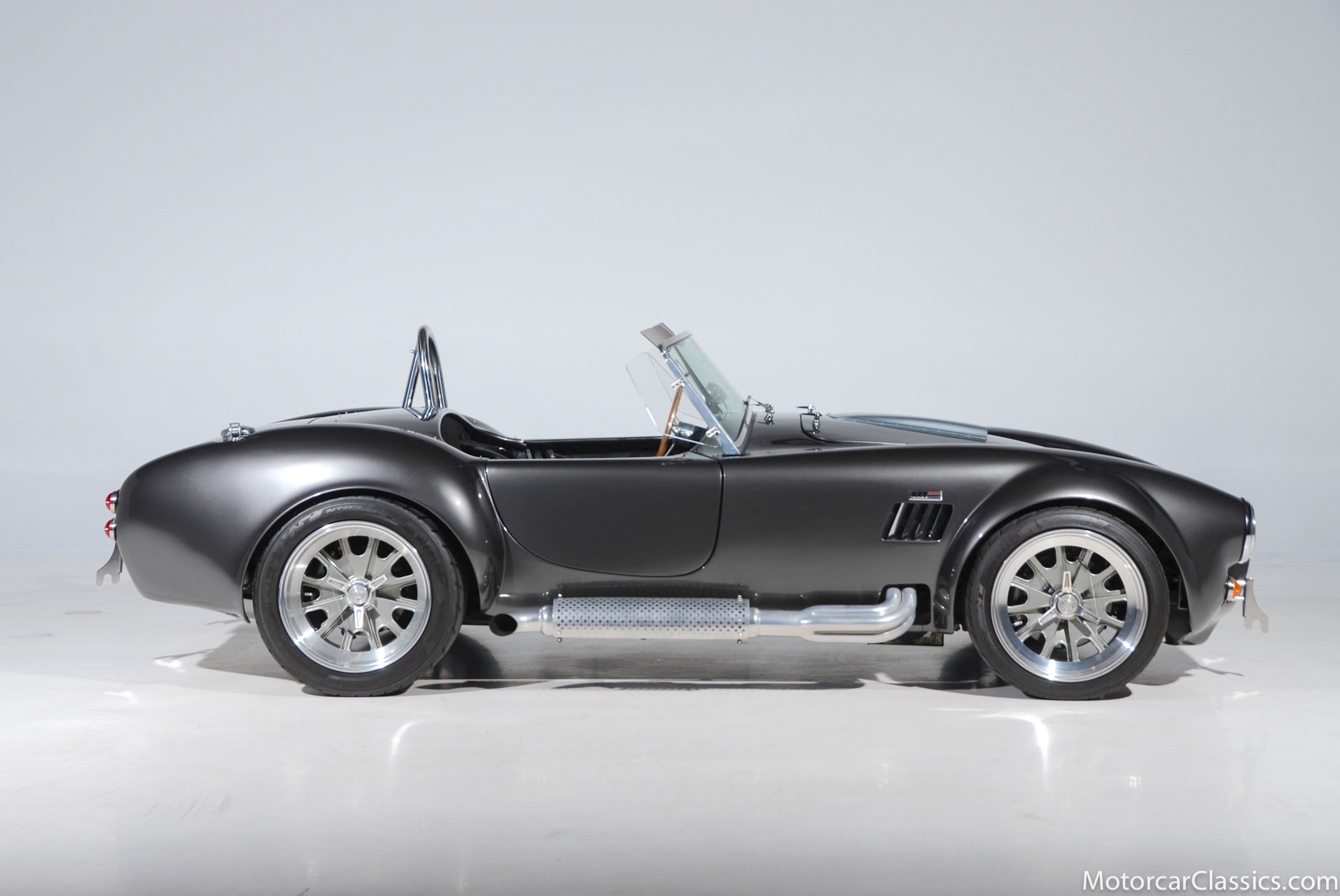 1965 Shelby Cobra Backdraft for sale! Motorcar Classics is pleased to offer this impressive 427 Cobra Backdraft tribute car presented in Grigio Silverstone with a Silverstone Silver stripe and Black interior. This Cobra was completed in 9/7/2016 is still appears to be in excellent condition with only 9,084 miles. Options include side exhaust with shields, roll bar, visor wind deflectors, wood trim steering wheel, diamond stitched seats and interior, 427 Cobra engine, 4 point harness racing seat belts, knock off wheels and more!
